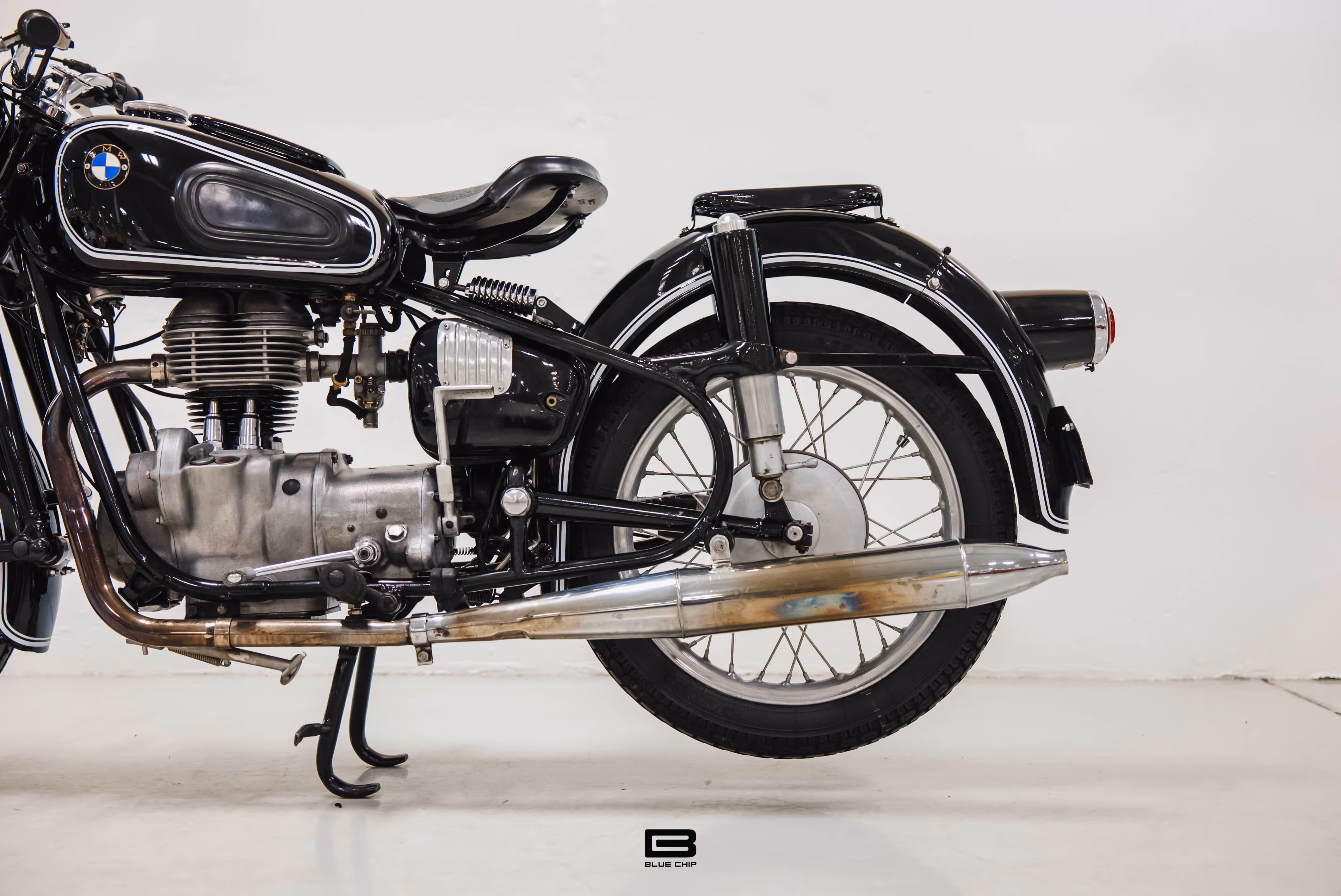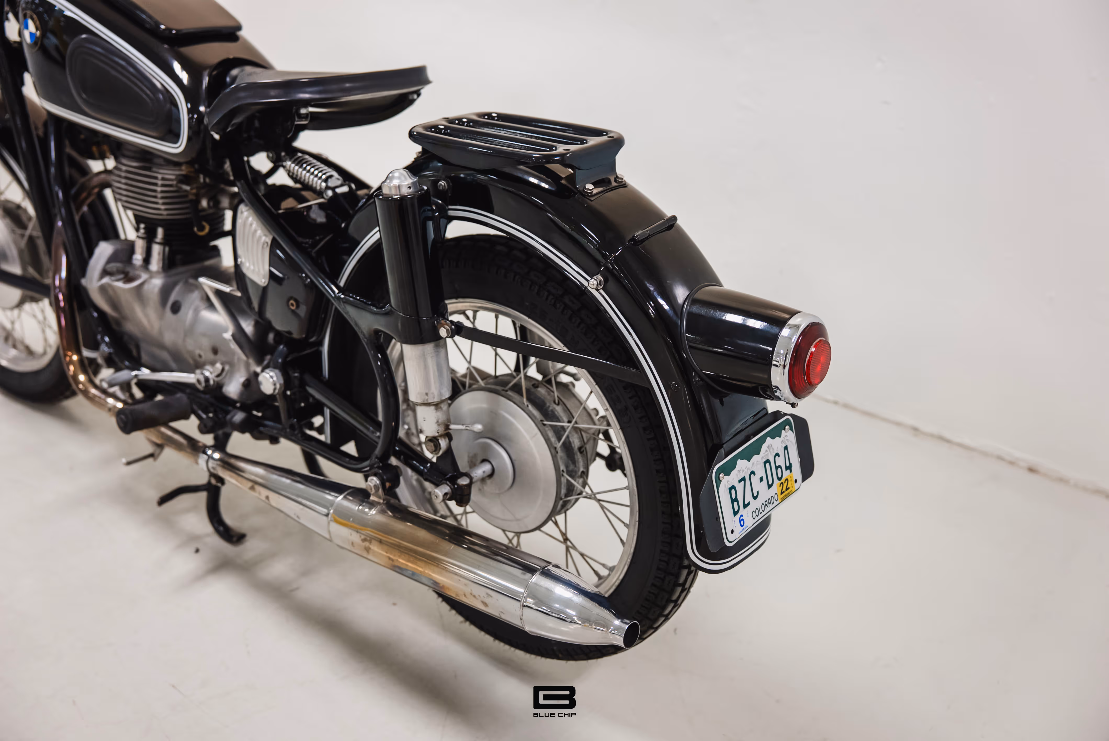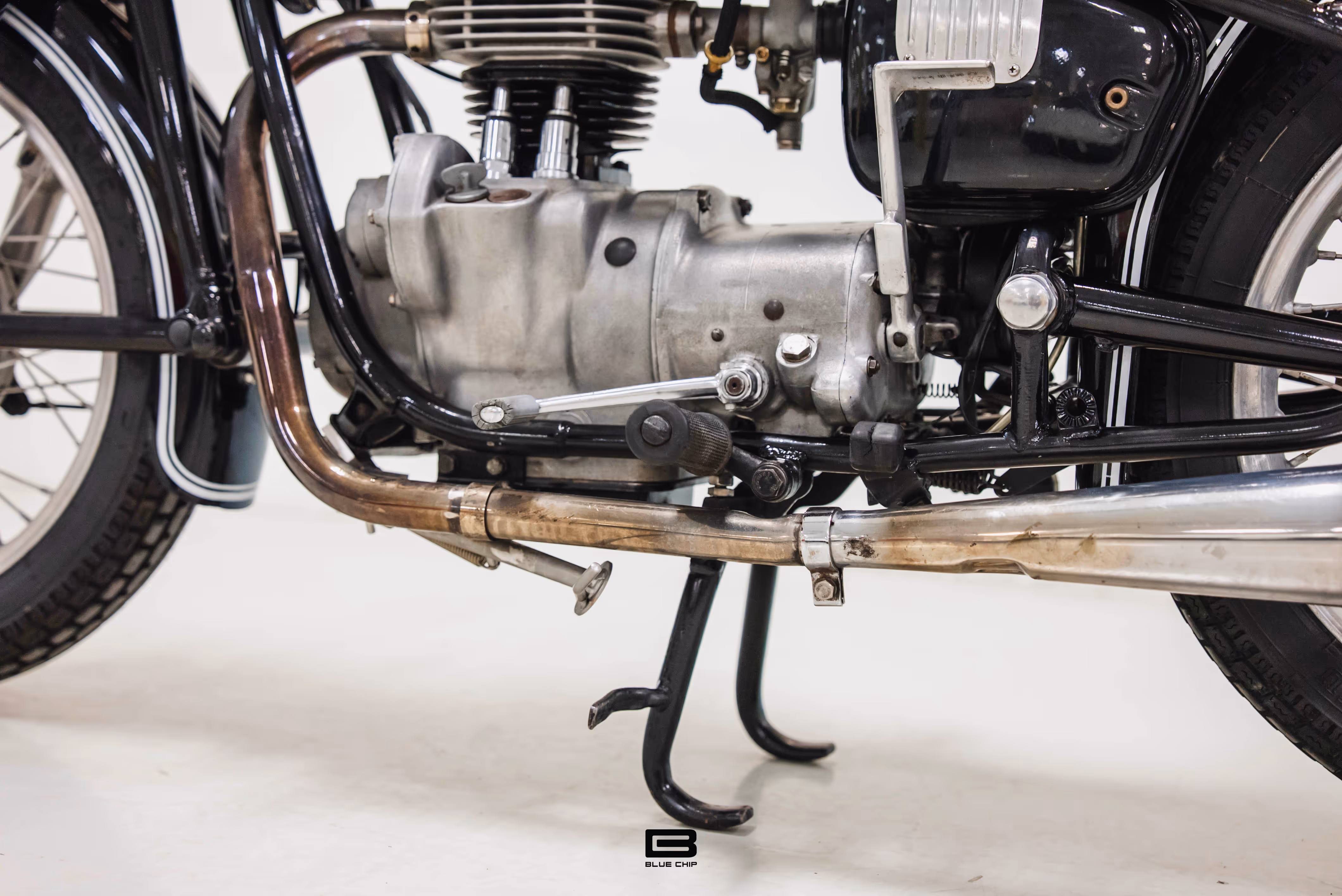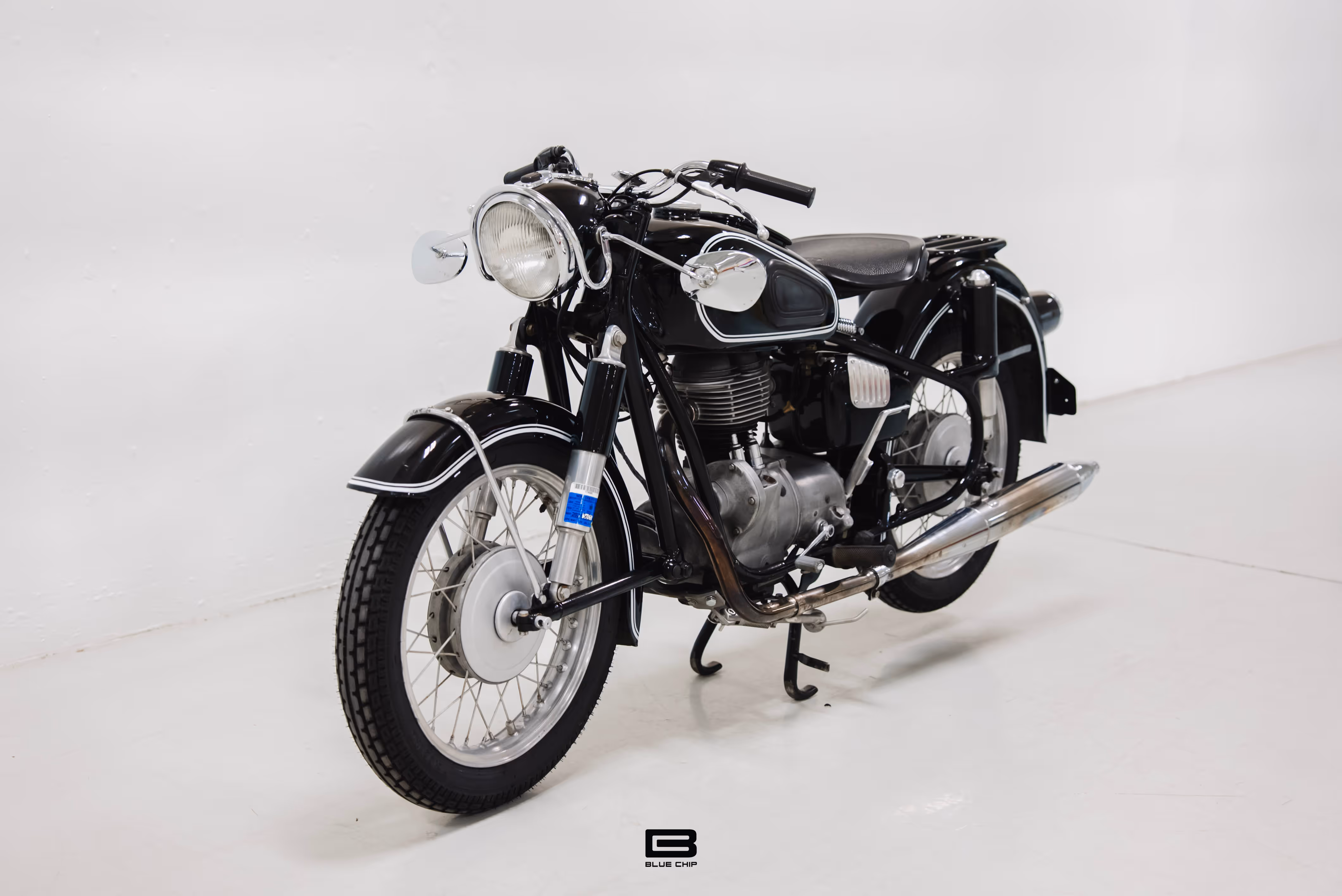This 1961 BMW R27 is finished in black and is the recipient of an older restoration. This motorcycle comes with full books, receipts, restoration photos, and manuals.