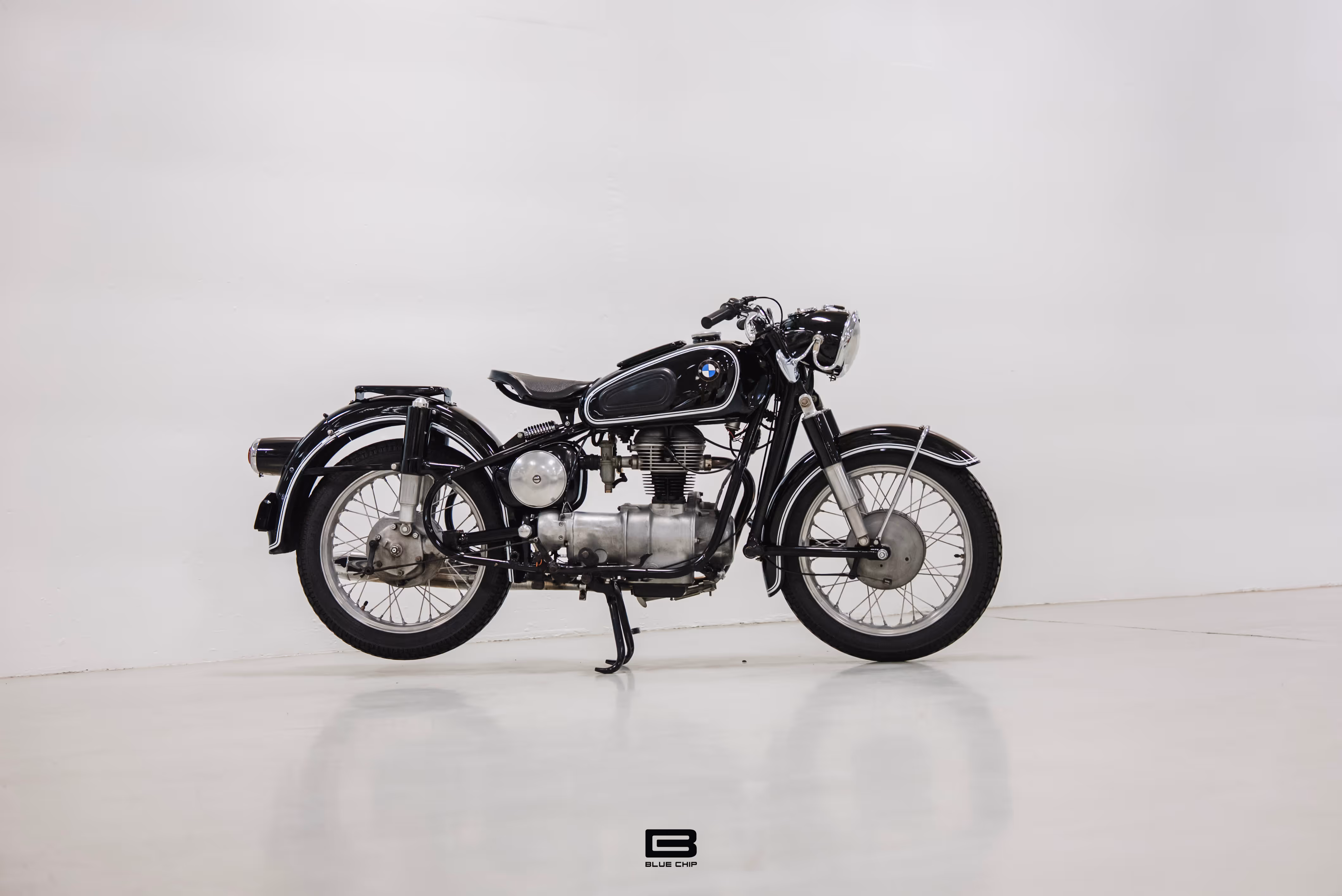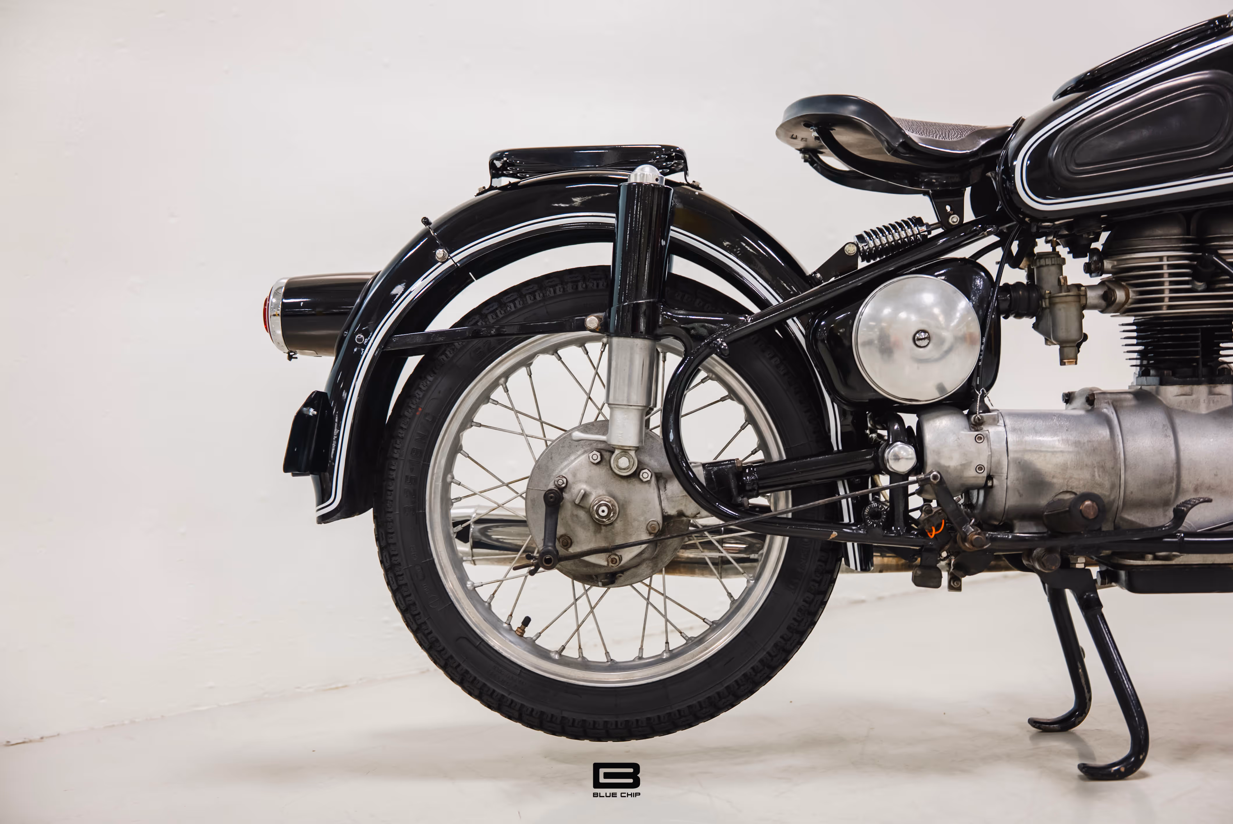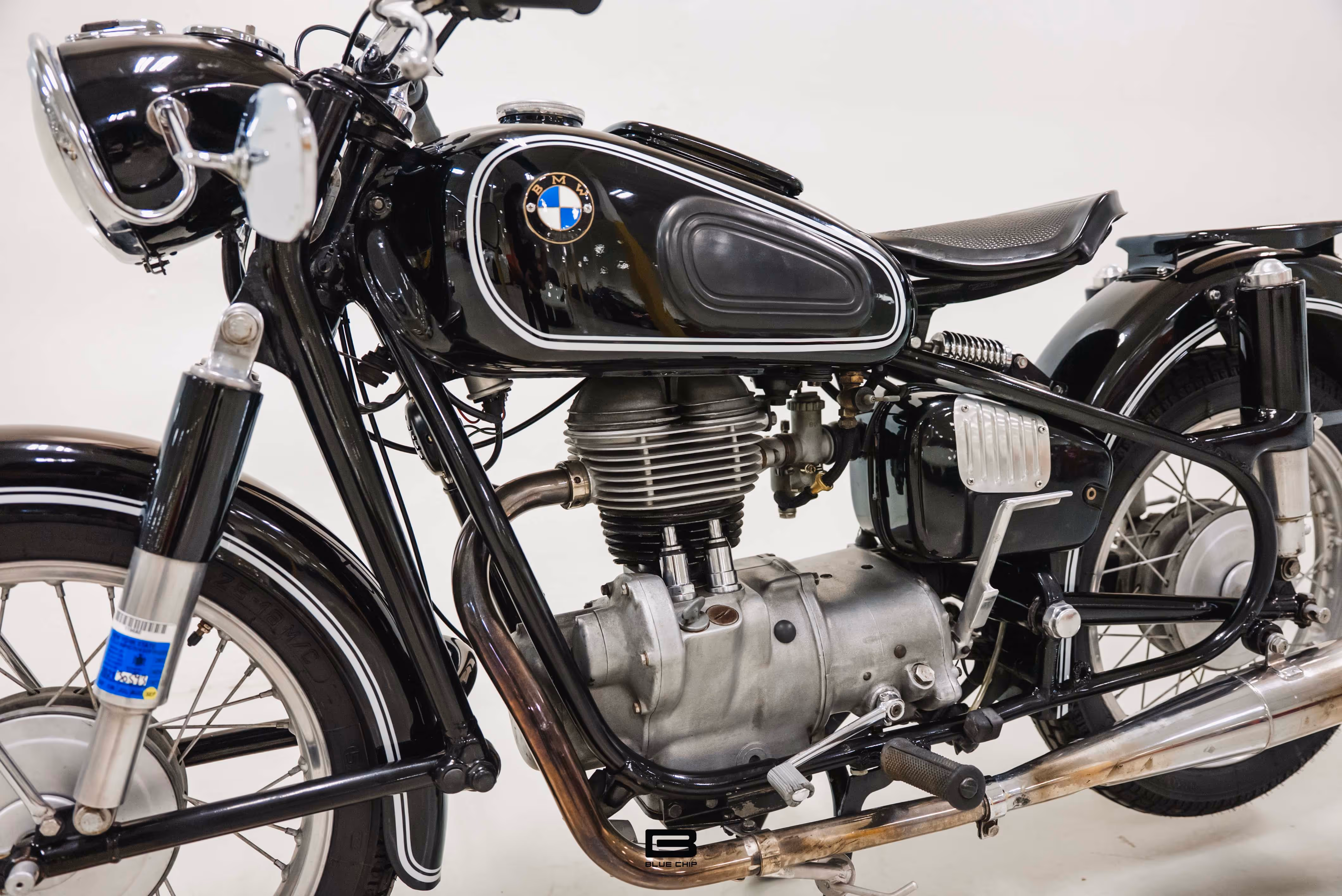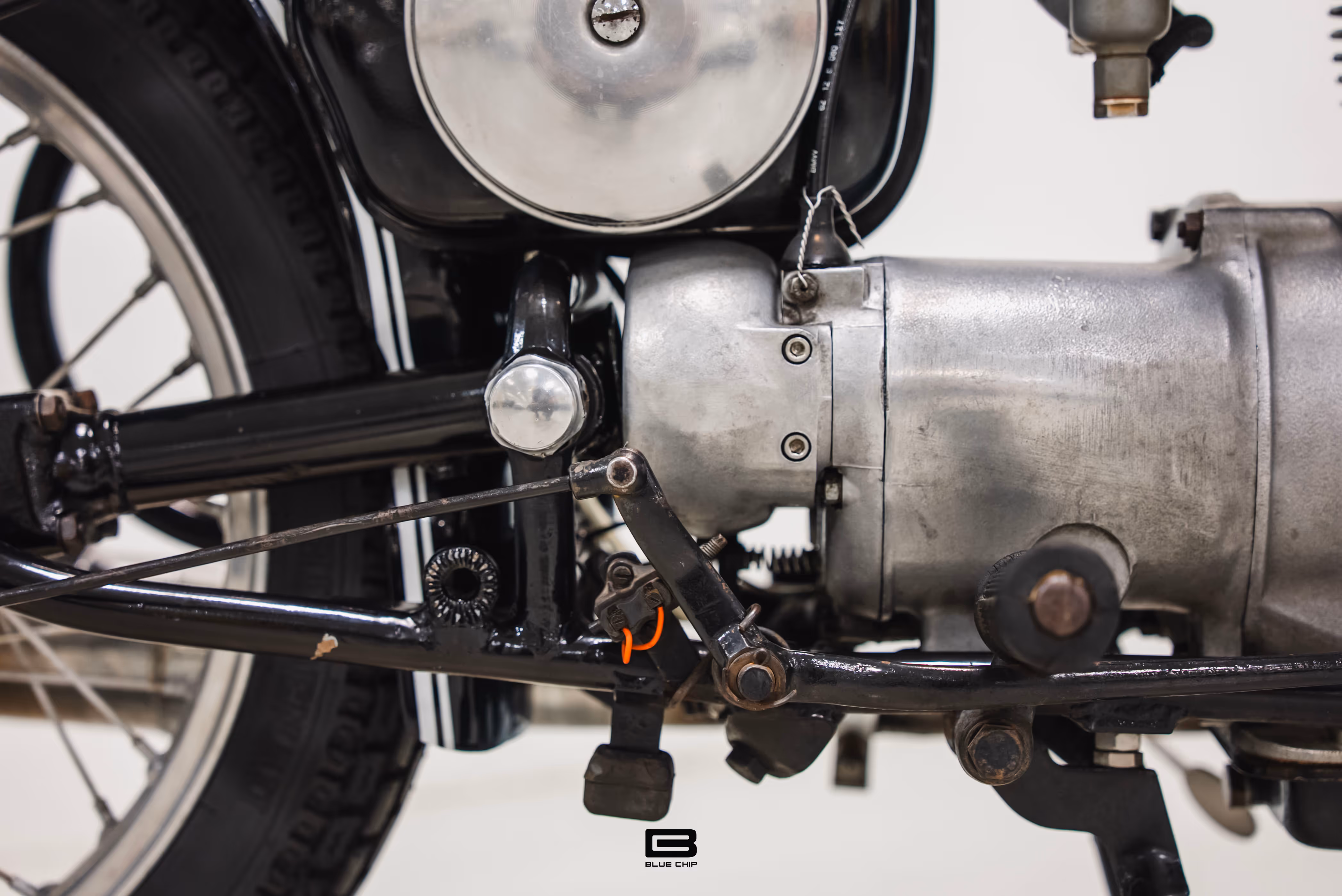 This 1961 BMW R27 is finished in black and is the recipient of an older restoration. This motorcycle comes with full books, receipts, restoration photos, and manuals.