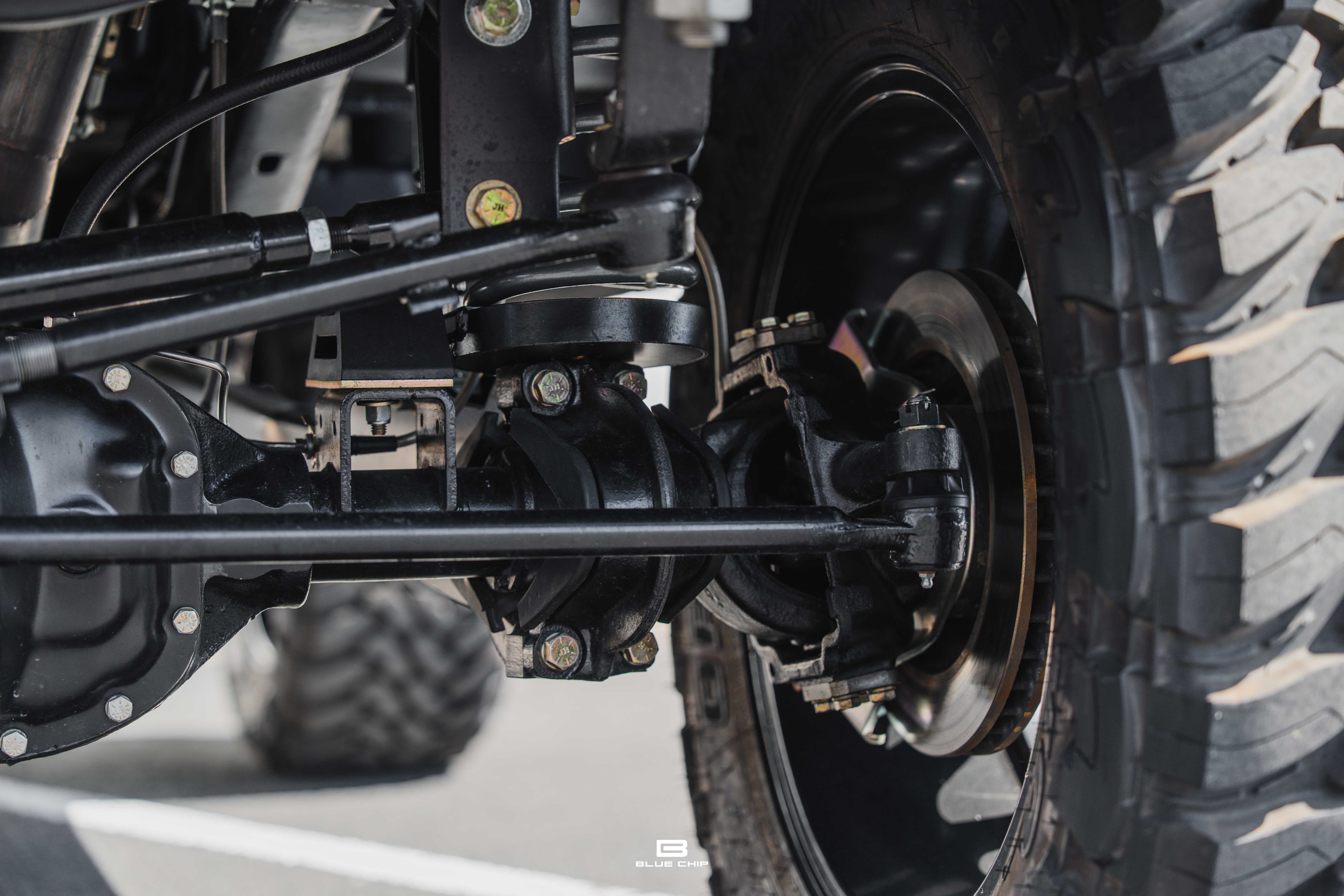Upgrades throughout elevate its capability: four-wheel disc brakes, Bilstein reservoir shocks, 3.5-inch coils, Detroit Truetrac rear differential, Tom Woods driveline, and a hand-built stainless exhaust. Cooling is handled by an aluminum radiator and electric fan, while JW Speakers, LED lighting, and bronze Method wheels wrapped in new Toyo tires complete its purposeful stance.