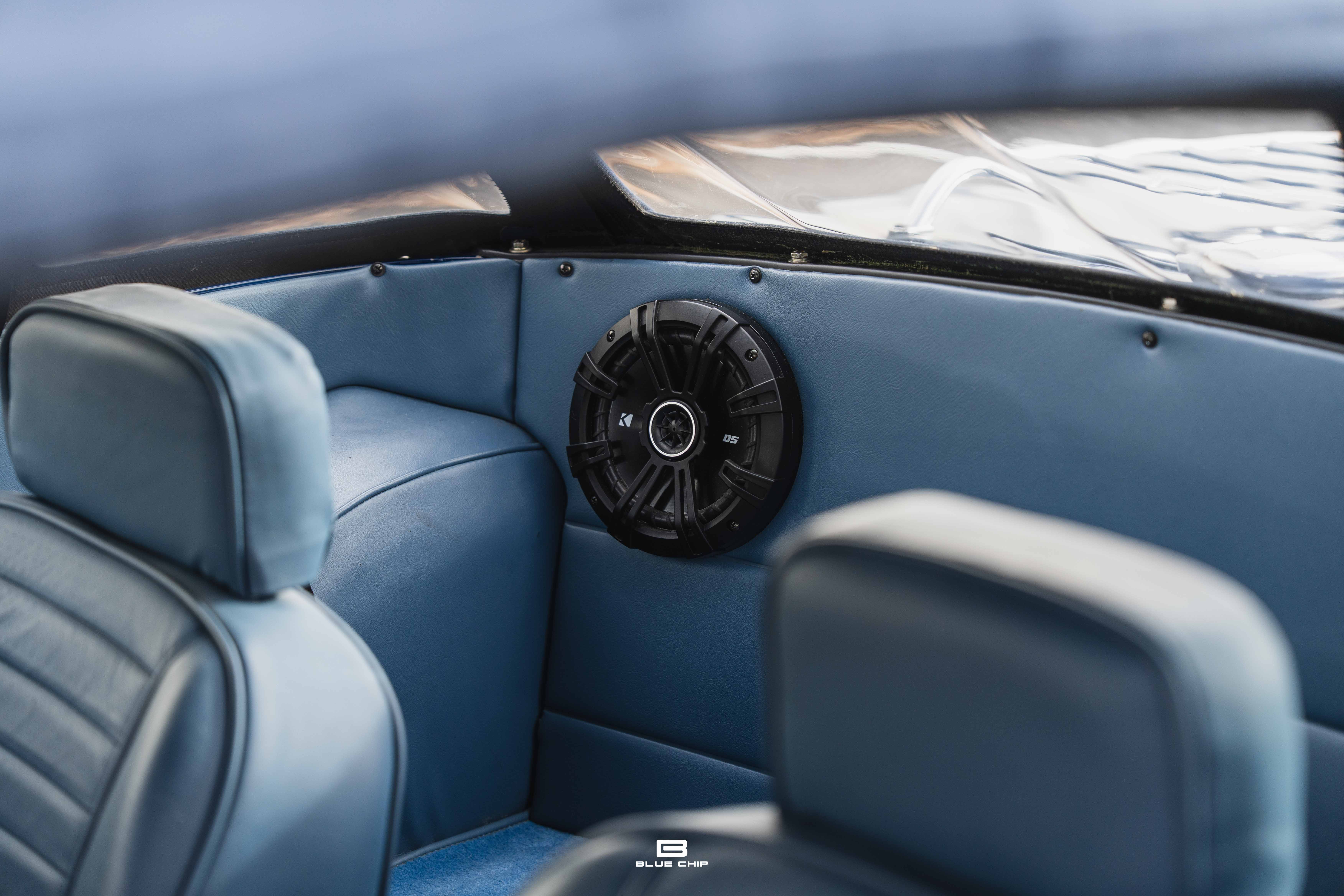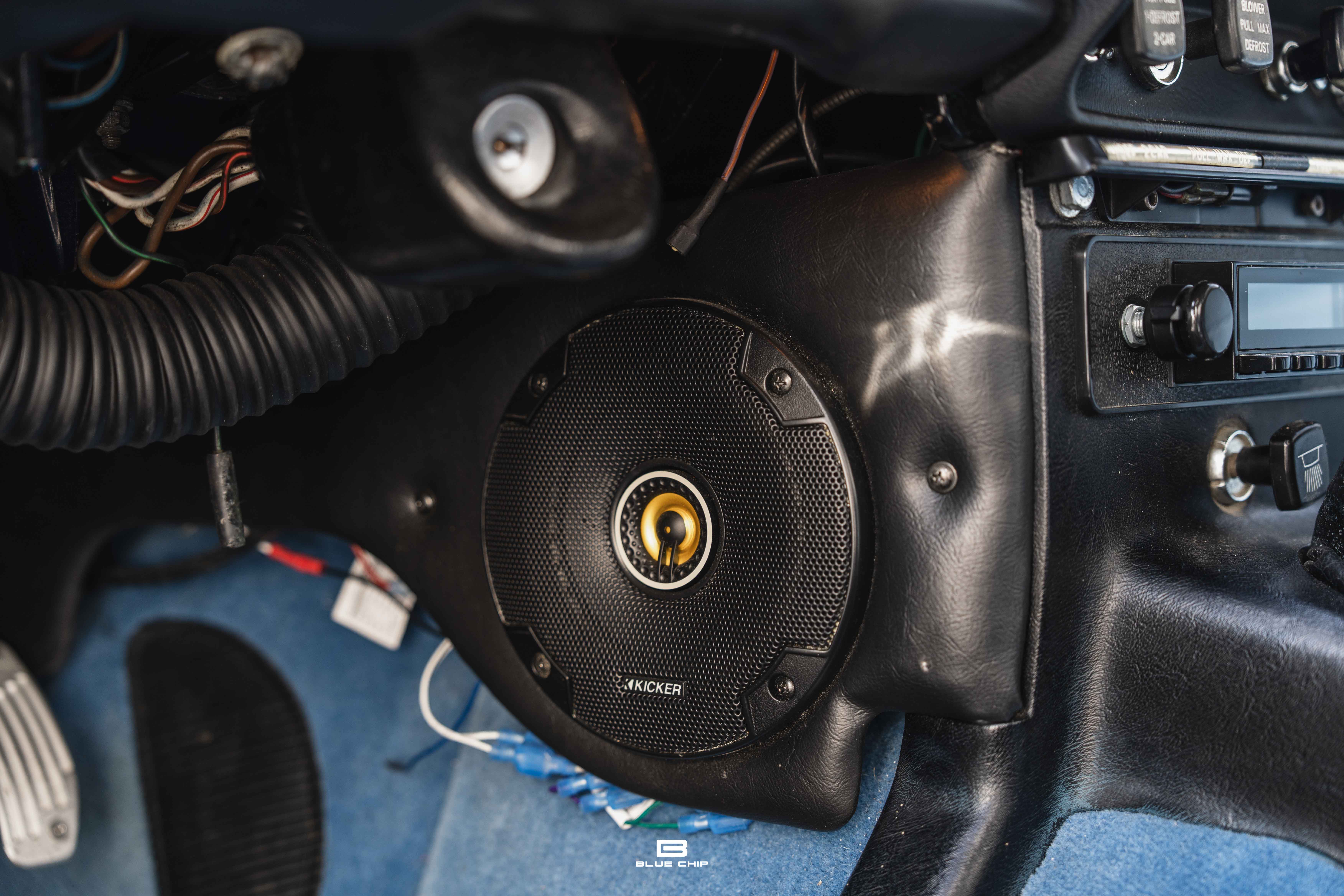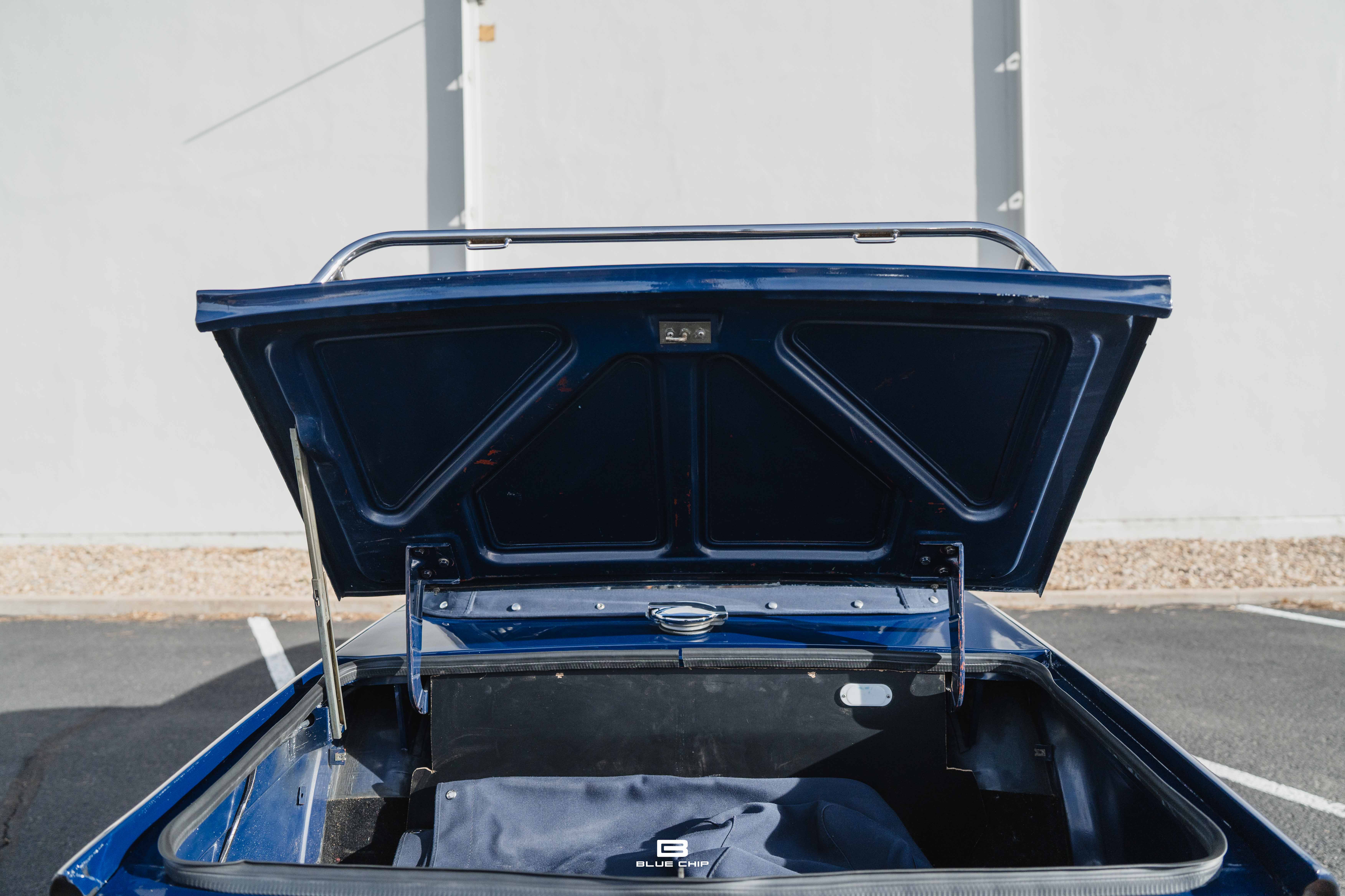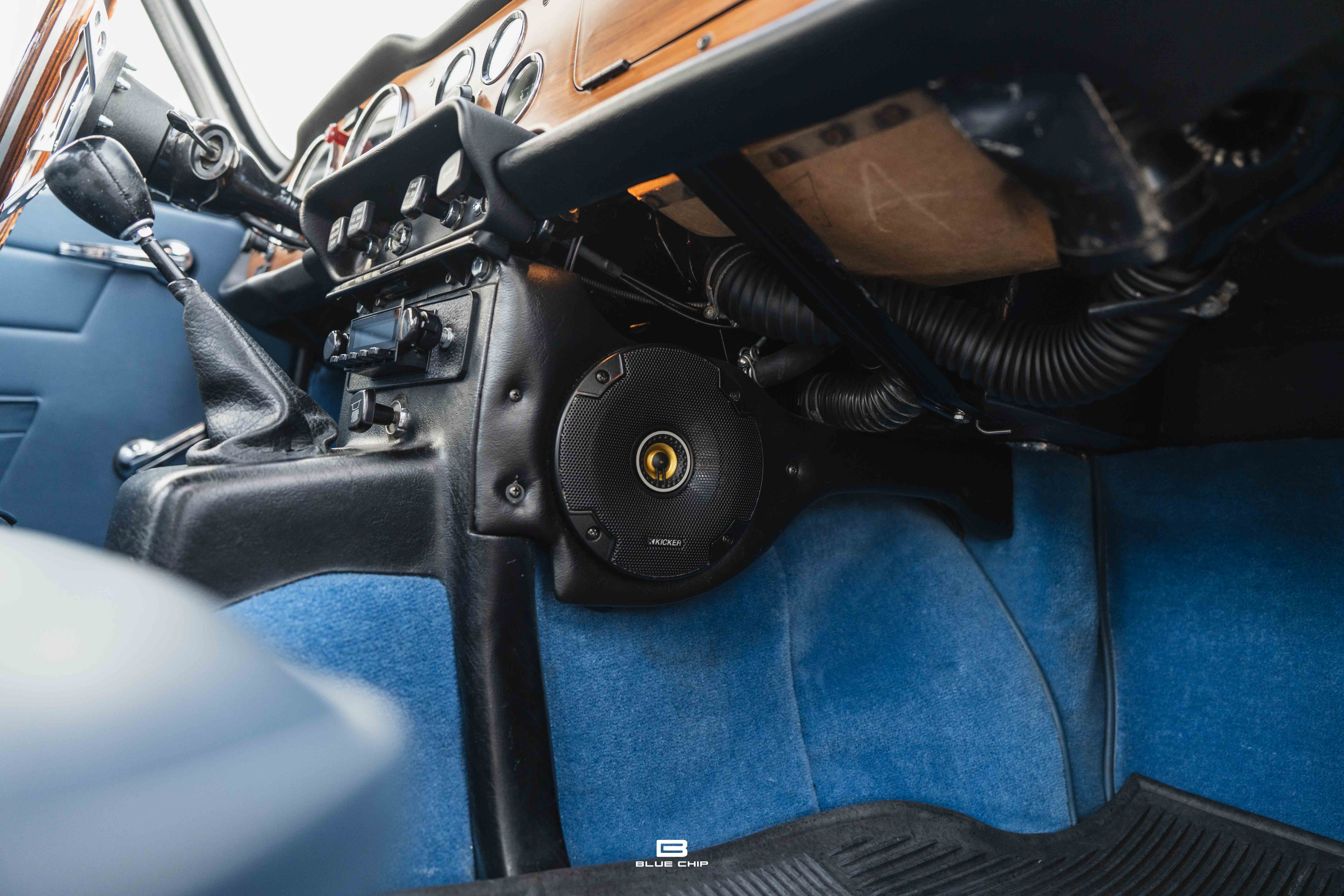 This 1973 Triumph TR6 shows approximately 50,205 miles on the odometer and is presented in an attractive blue-over-blue color combination that complements the car’s classic proportions and period styling. The interior features the traditional British sports car layout, with a wood-veneer dashboard, clear analog instrumentation, and a straightforward driver-focused cockpit that emphasizes the TR6’s purposeful simplicity.