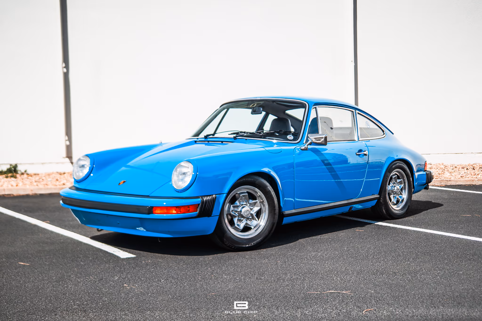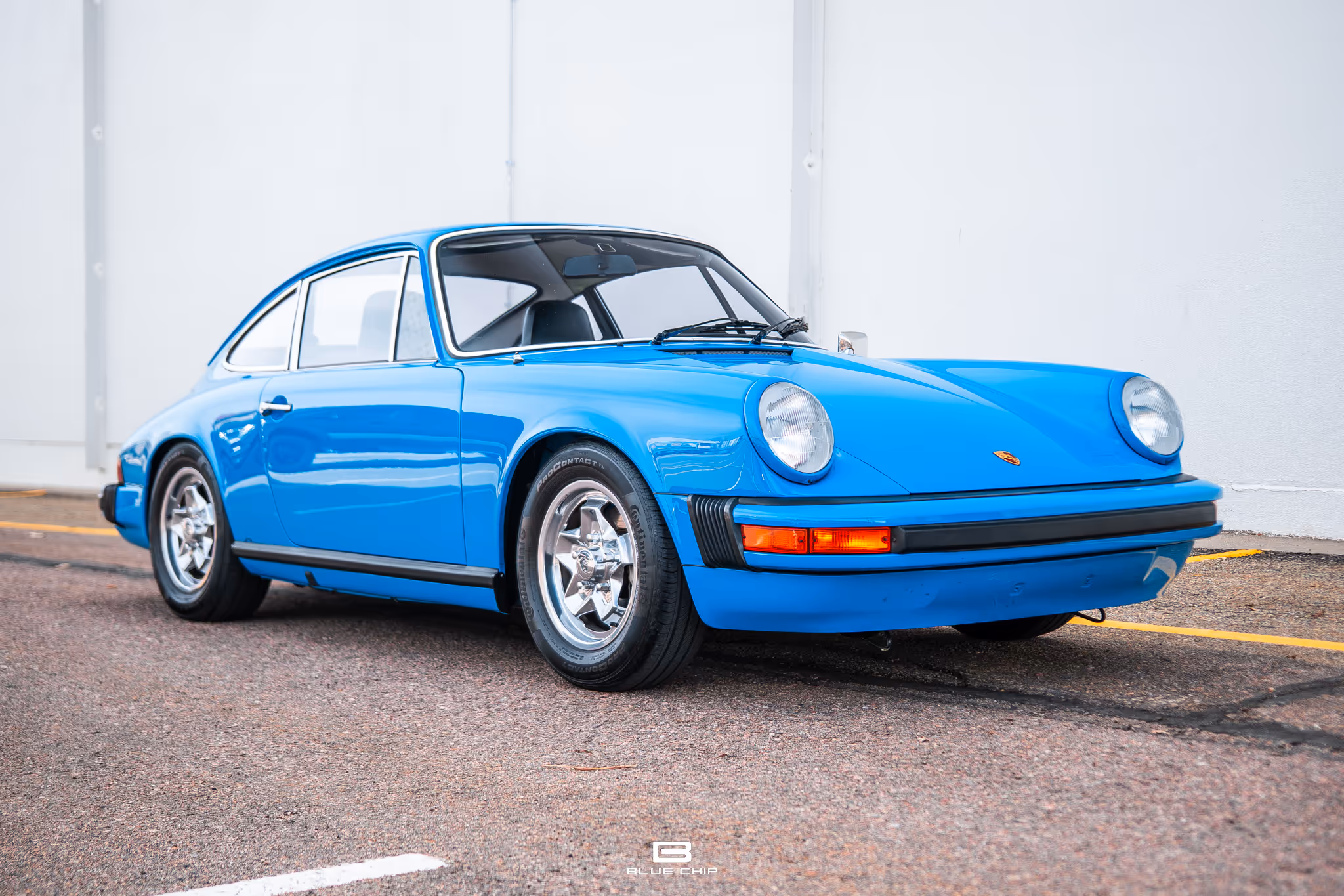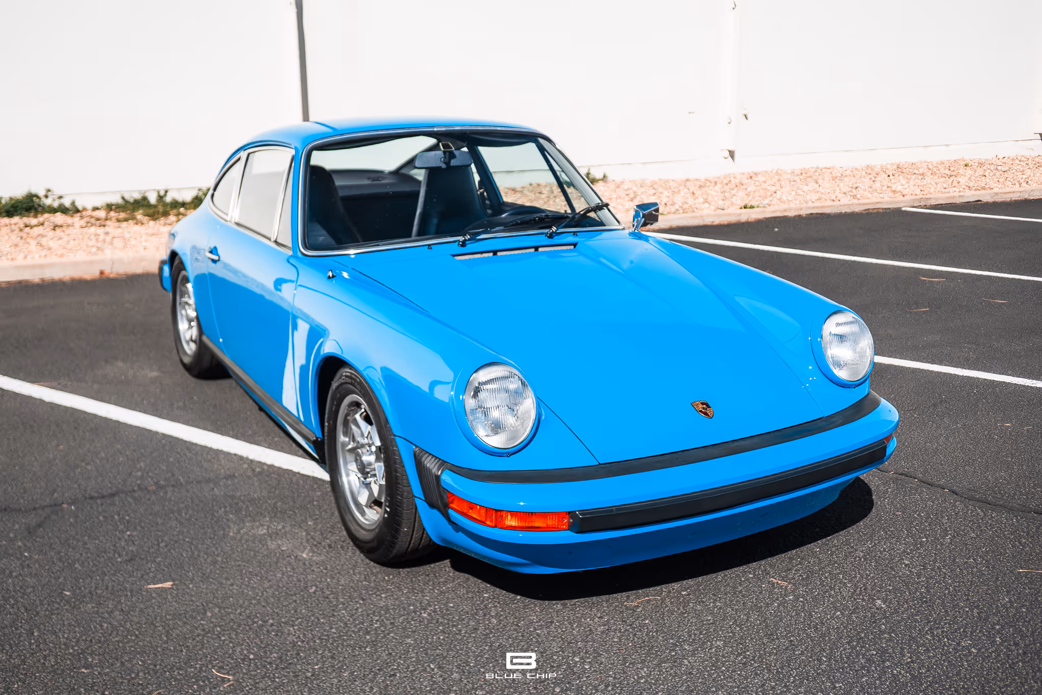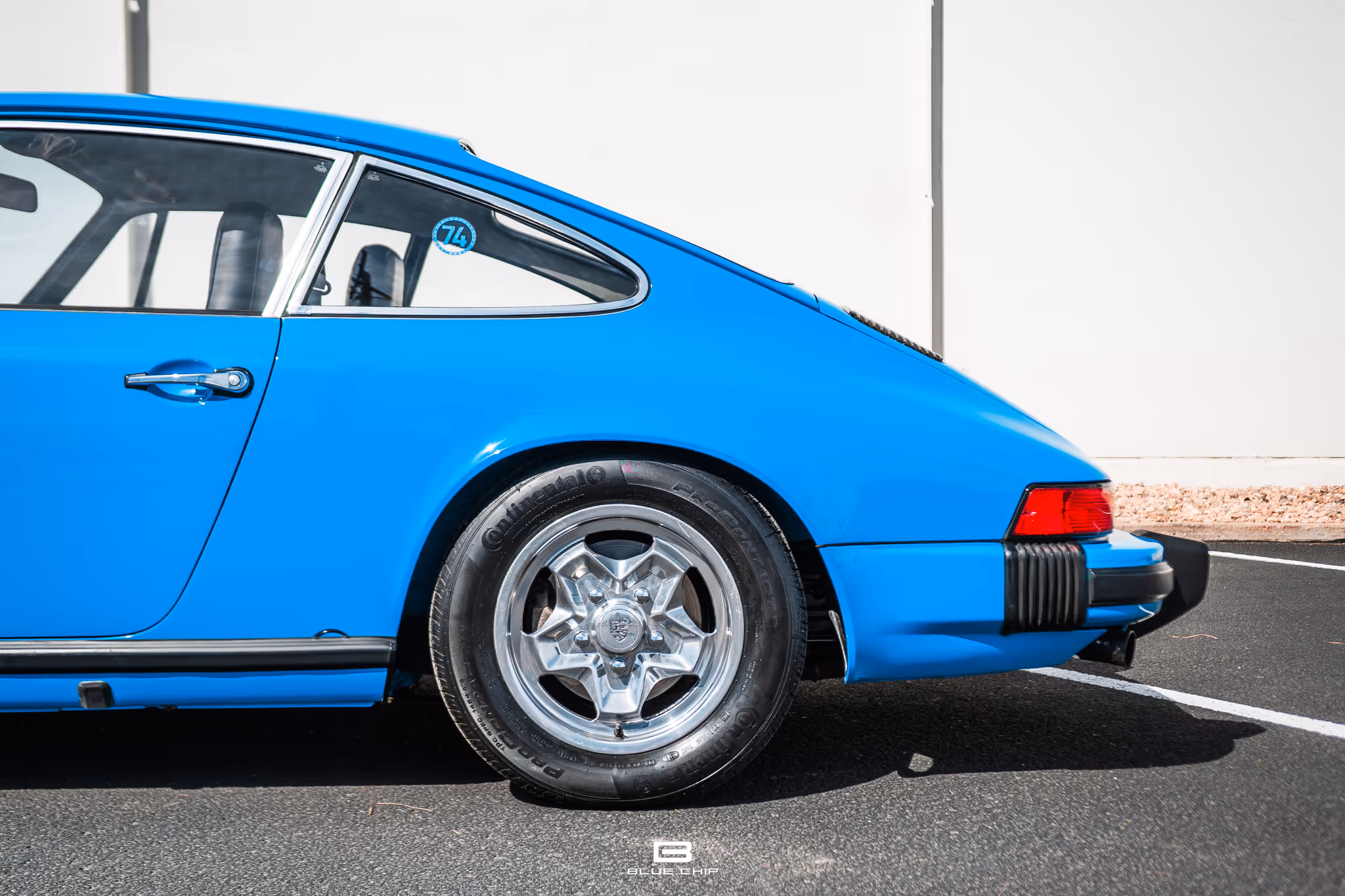 A striking blend of classic Porsche heritage and thoughtful performance enhancements, this 1974 Porsche 911 Coupe presents in a stunning factory-correct Mexico Blue finish over a black leather interior. Originally delivered to Centennial Porsche-Audi in Eugene, Oregon, this mid-year 911 has been tastefully upgraded and meticulously maintained, making it a compelling choice for enthusiasts and collectors alike.