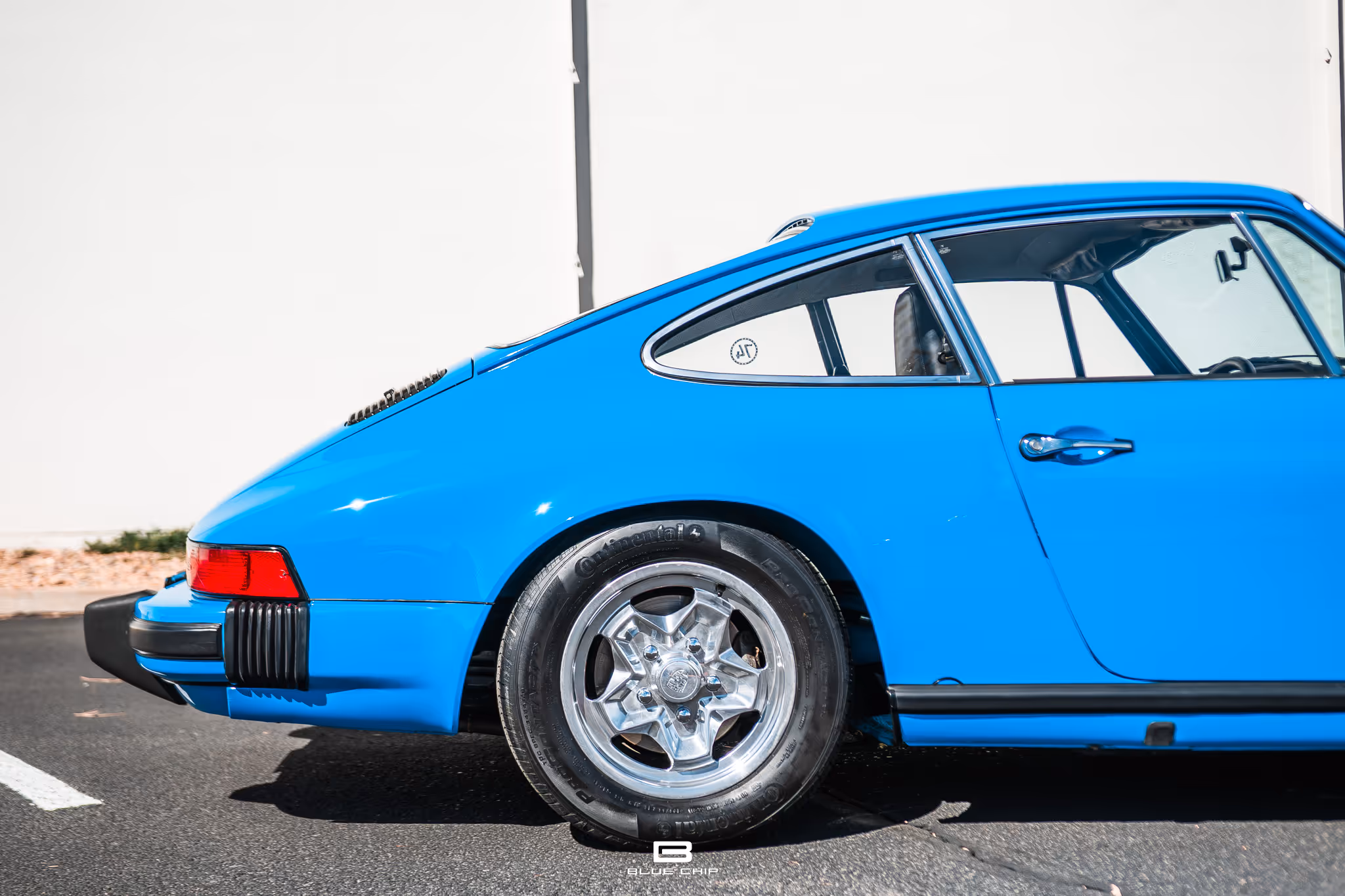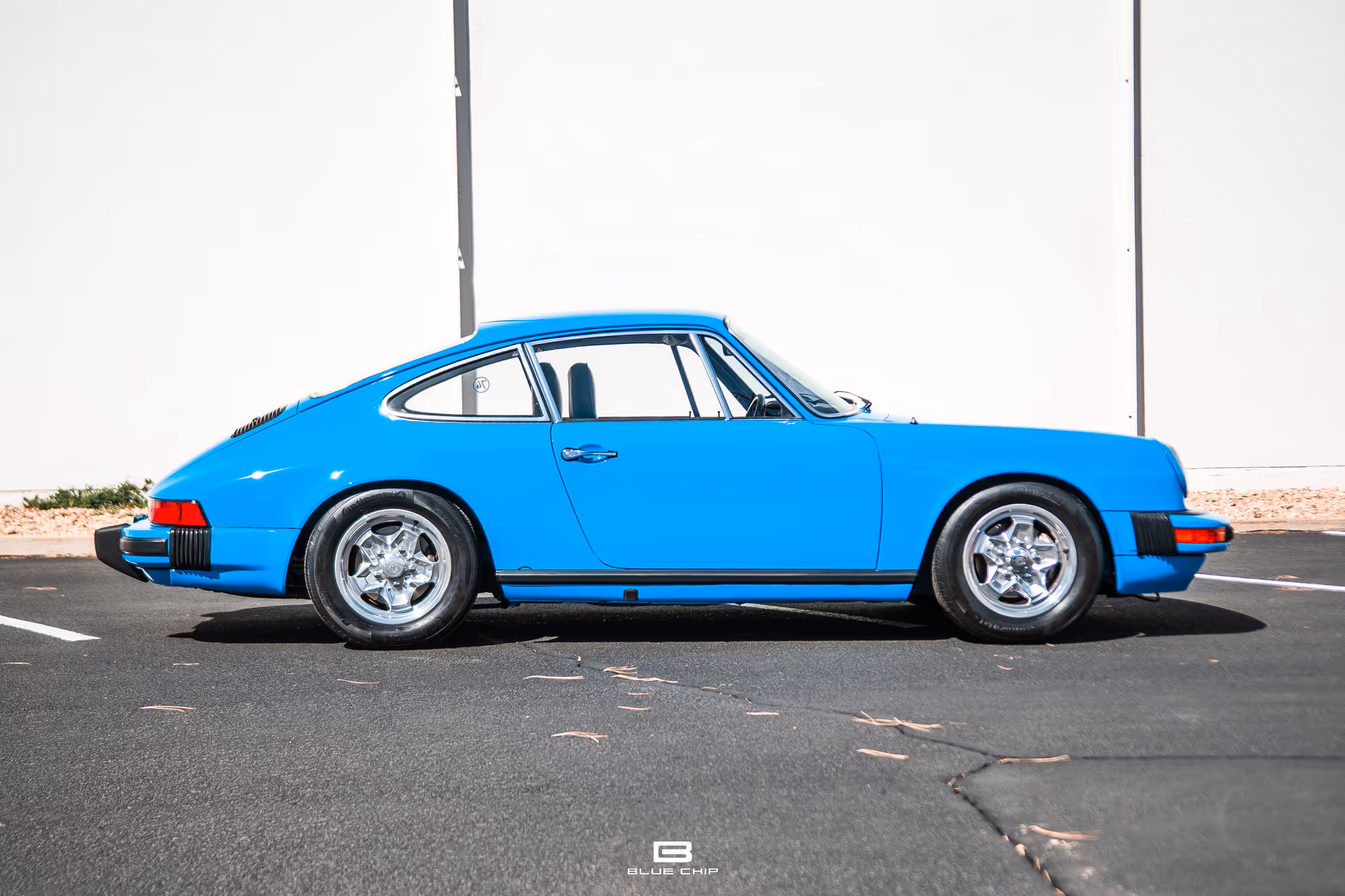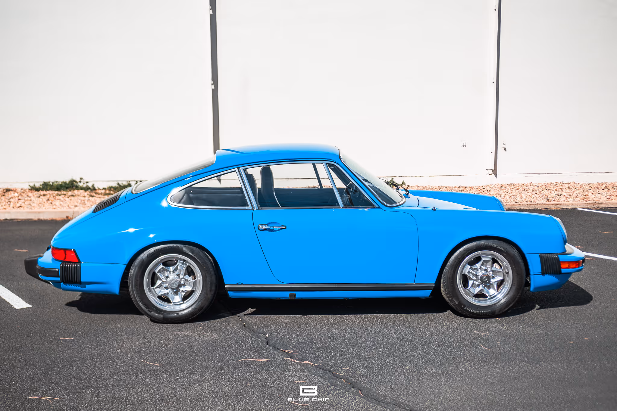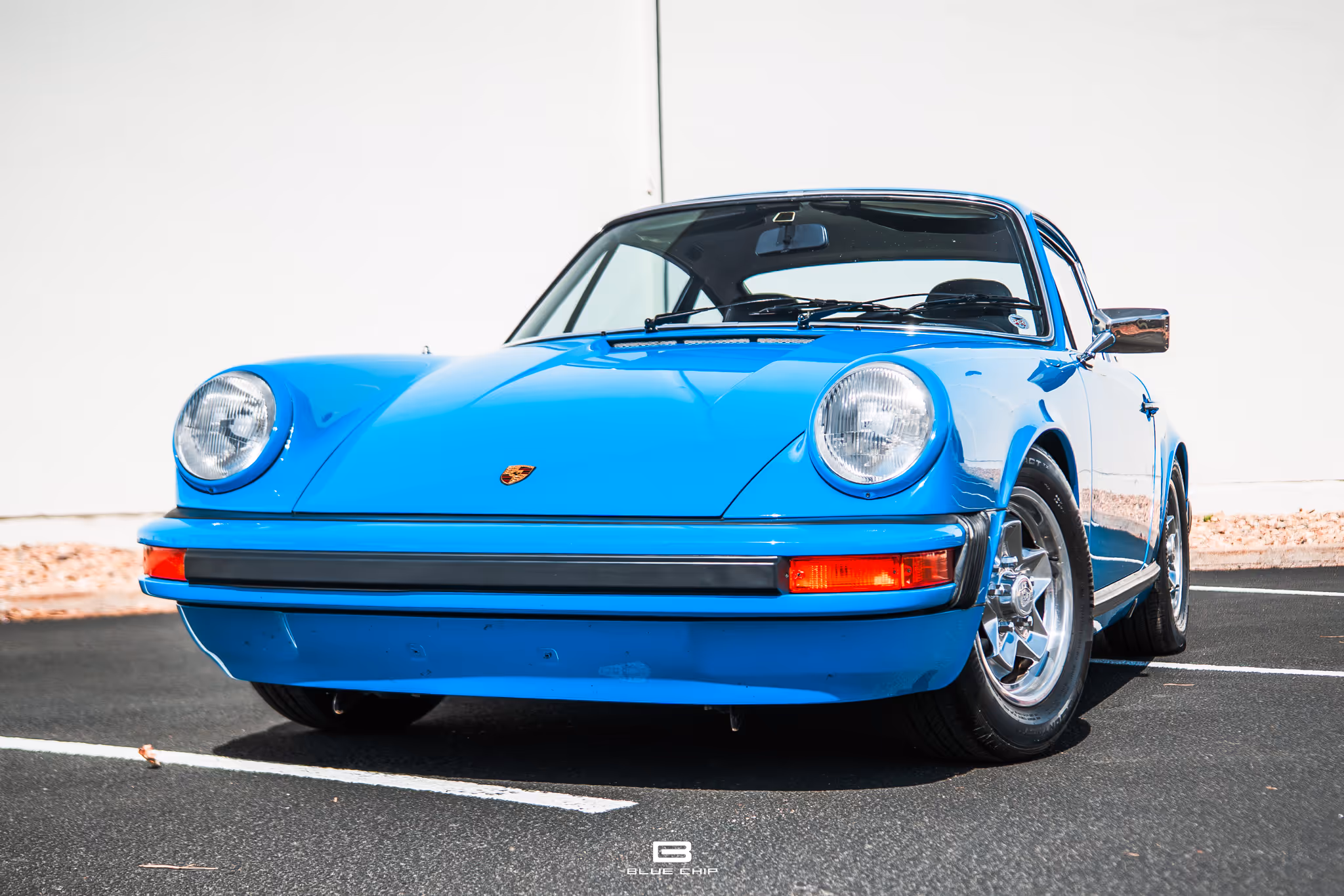A striking blend of classic Porsche heritage and thoughtful performance enhancements, this 1974 Porsche 911 Coupe presents in a stunning factory-correct Mexico Blue finish over a black leather interior. Originally delivered to Centennial Porsche-Audi in Eugene, Oregon, this mid-year 911 has been tastefully upgraded and meticulously maintained, making it a compelling choice for enthusiasts and collectors alike.