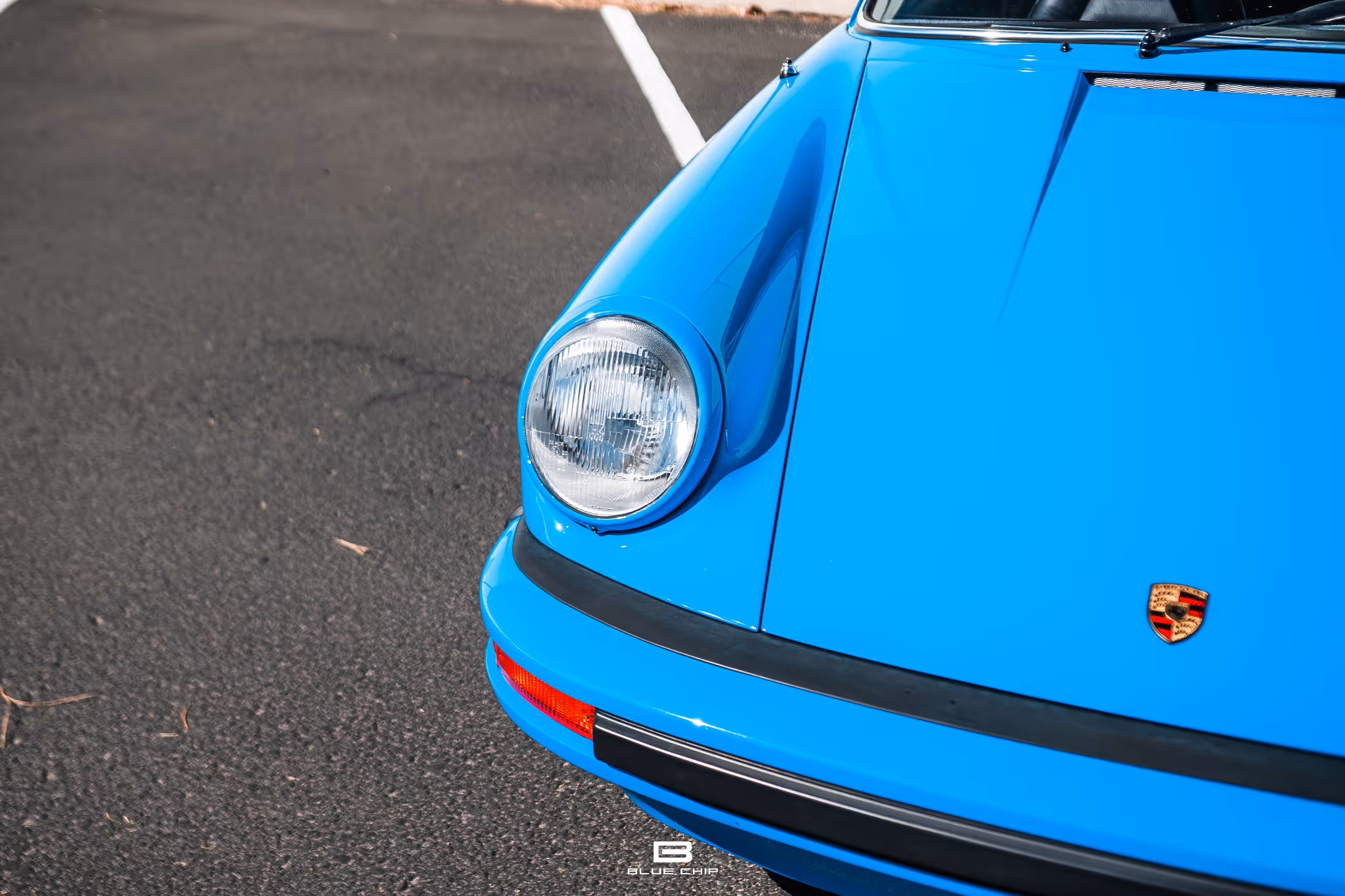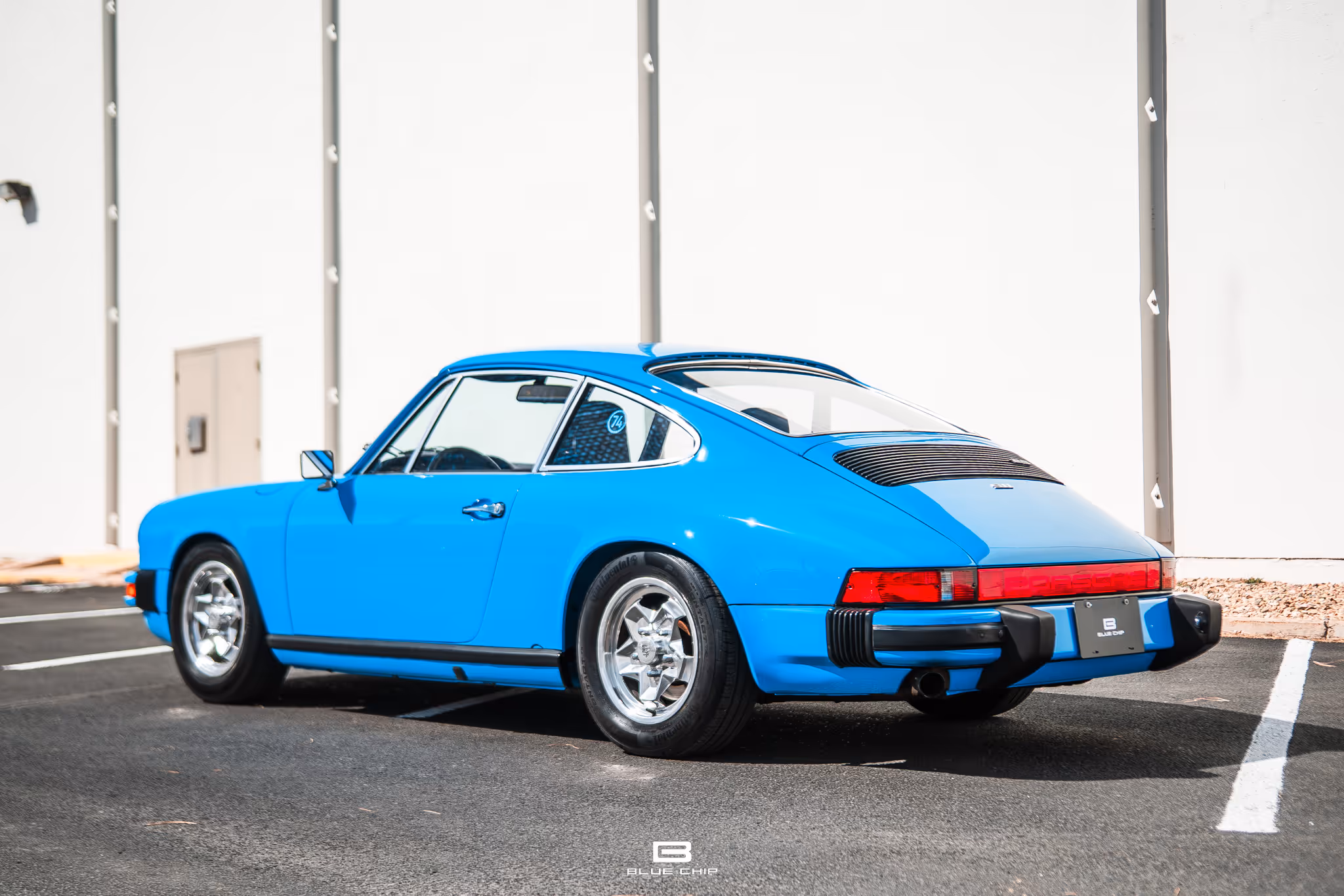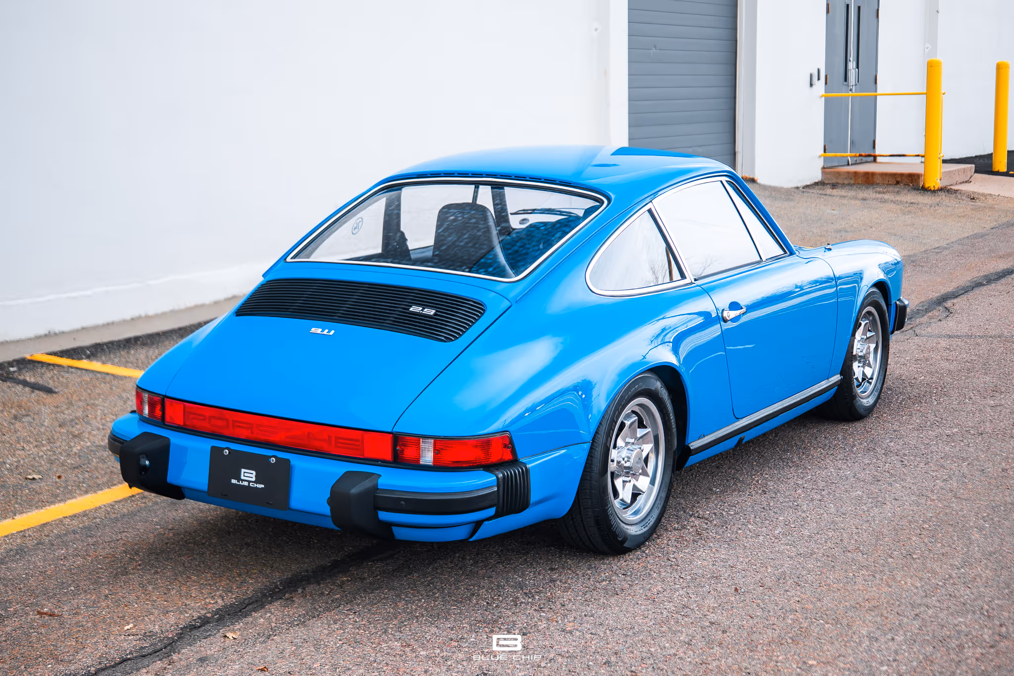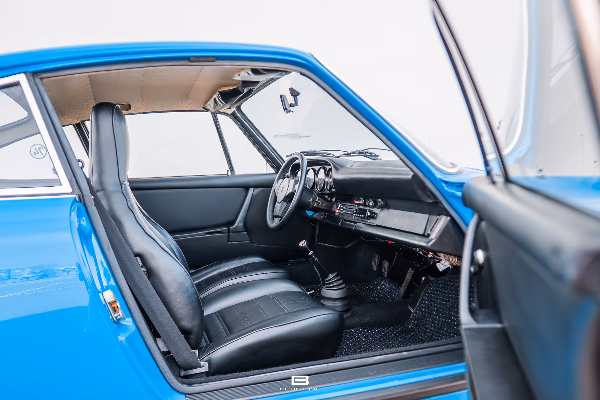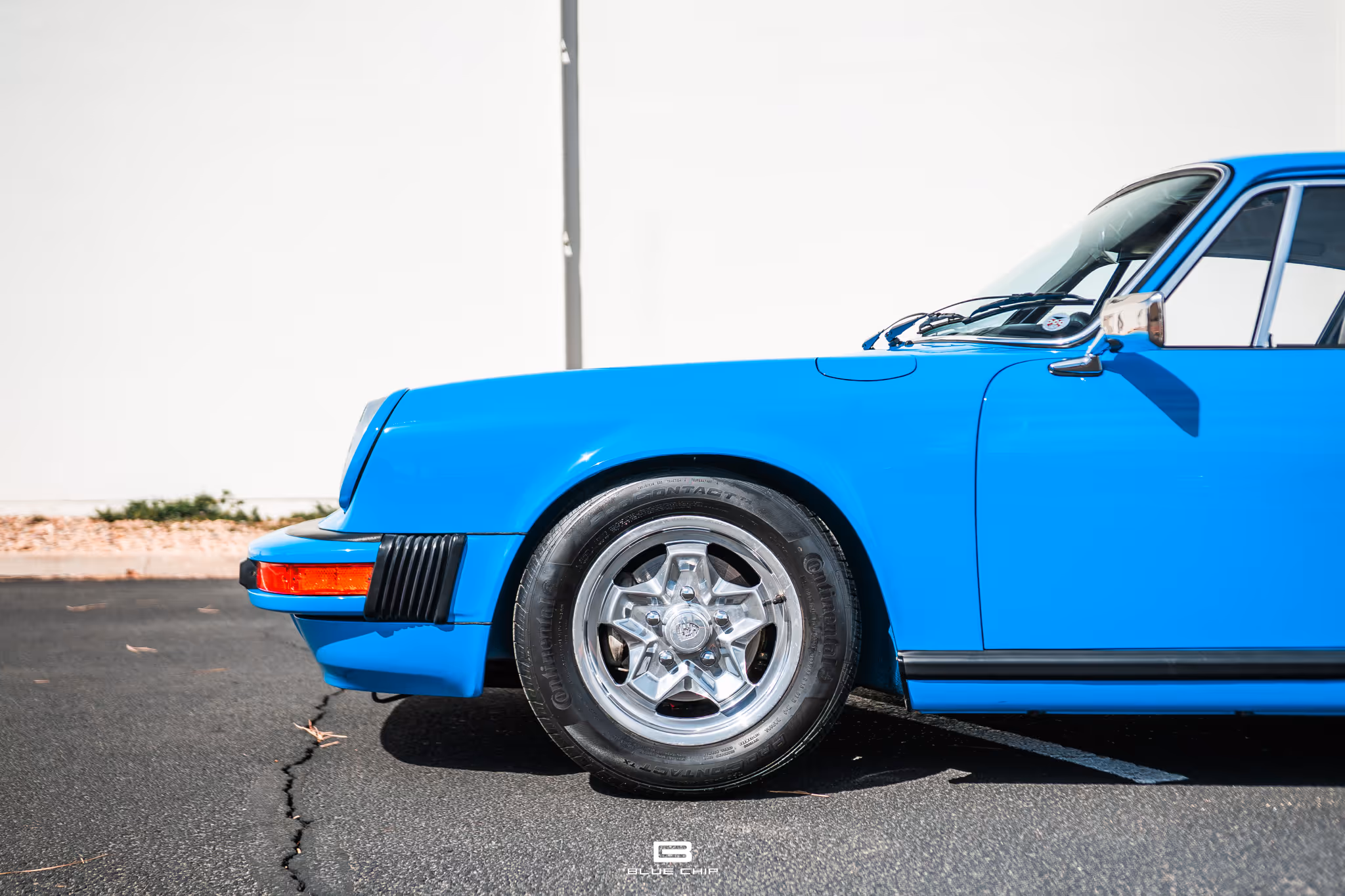 A striking blend of classic Porsche heritage and thoughtful performance enhancements, this 1974 Porsche 911 Coupe presents in a stunning factory-correct Mexico Blue finish over a black leather interior. Originally delivered to Centennial Porsche-Audi in Eugene, Oregon, this mid-year 911 has been tastefully upgraded and meticulously maintained, making it a compelling choice for enthusiasts and collectors alike.