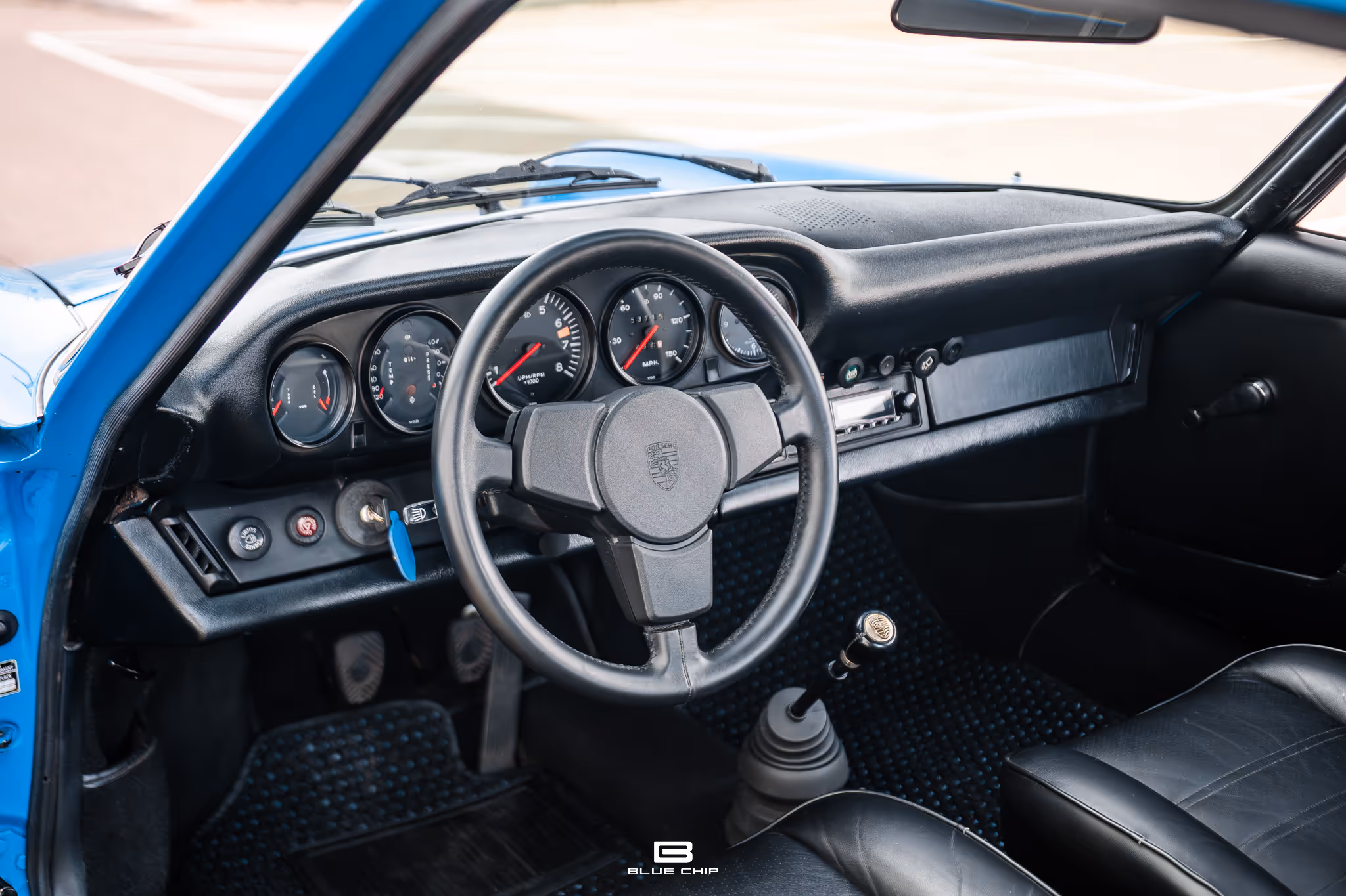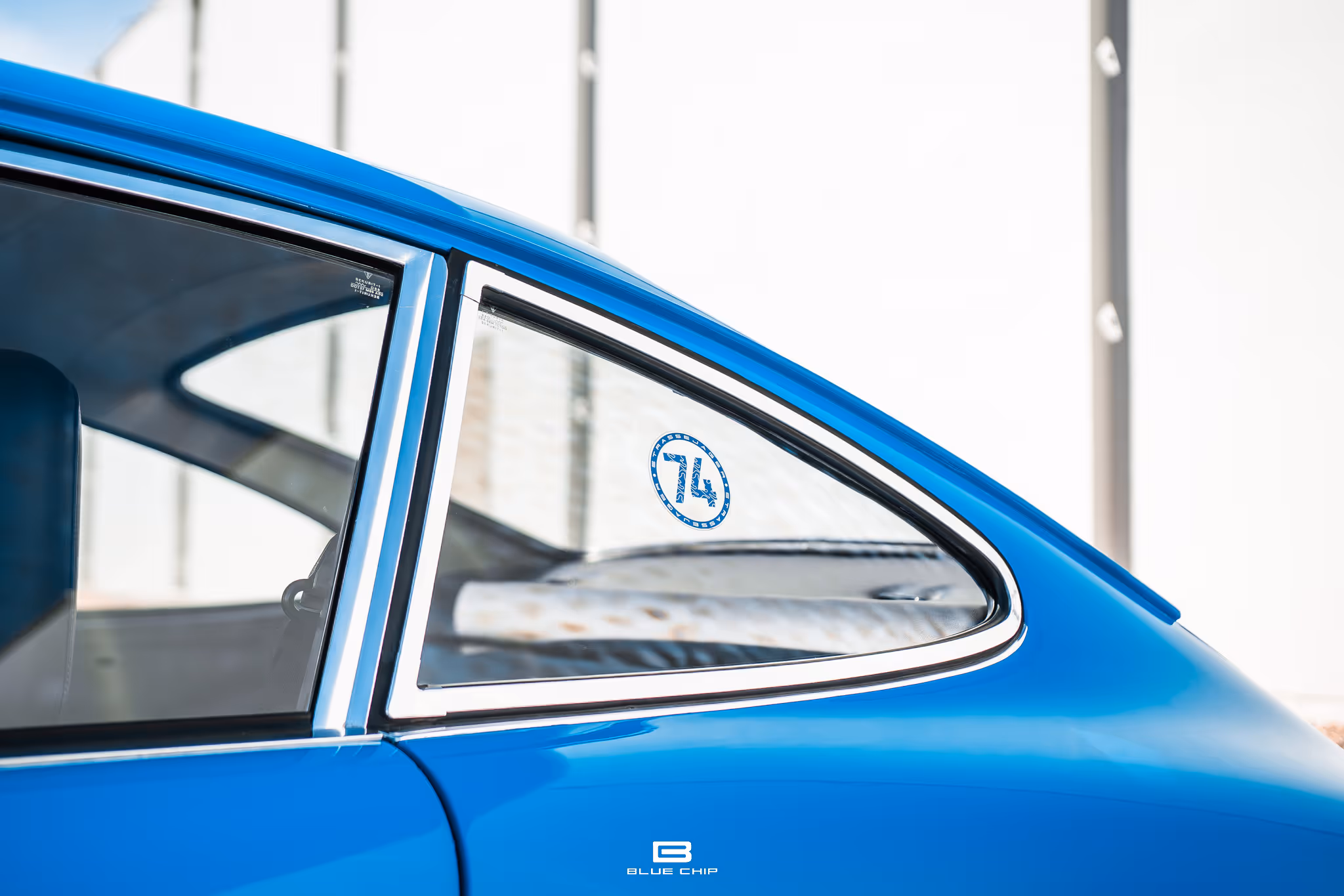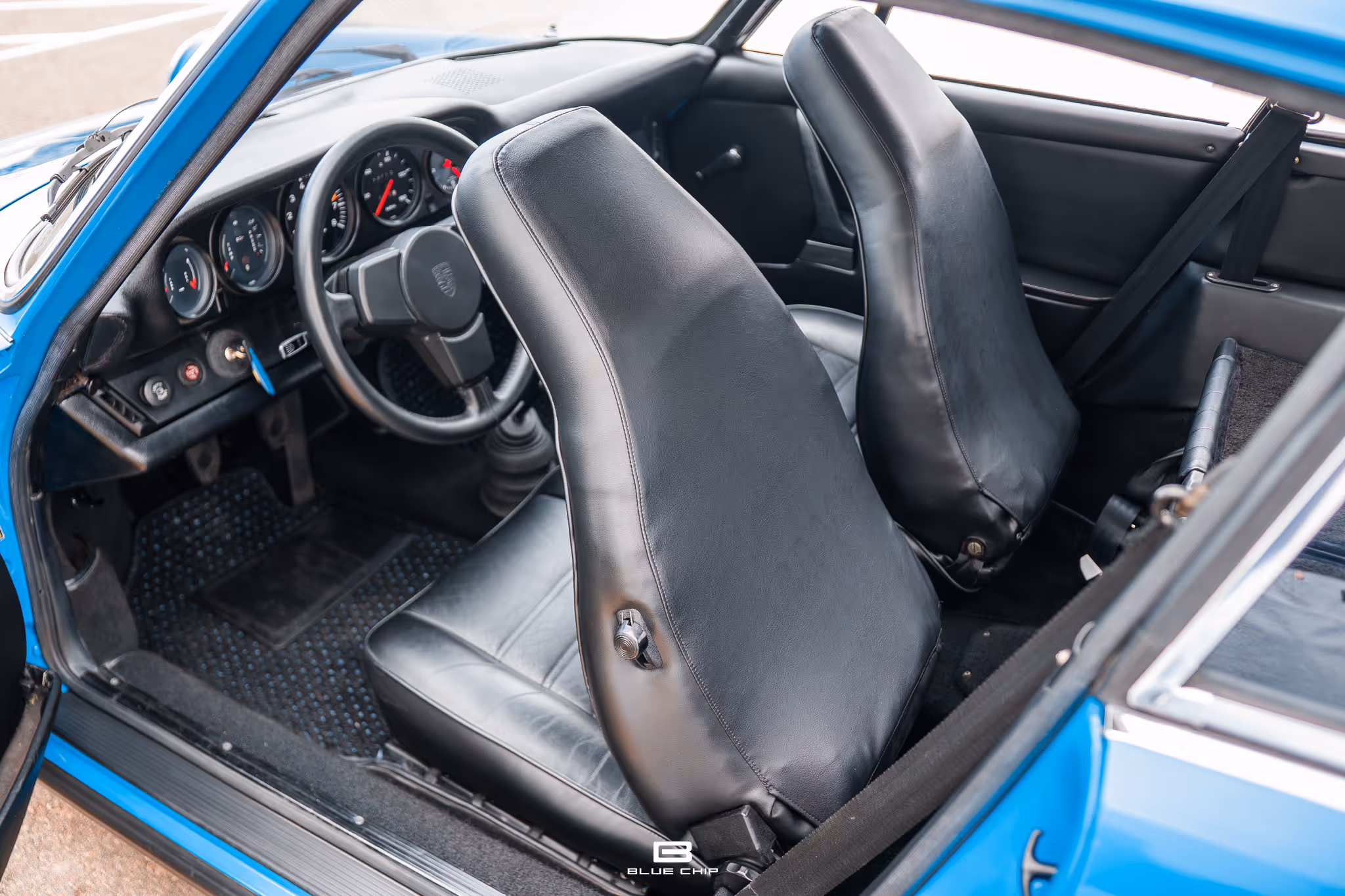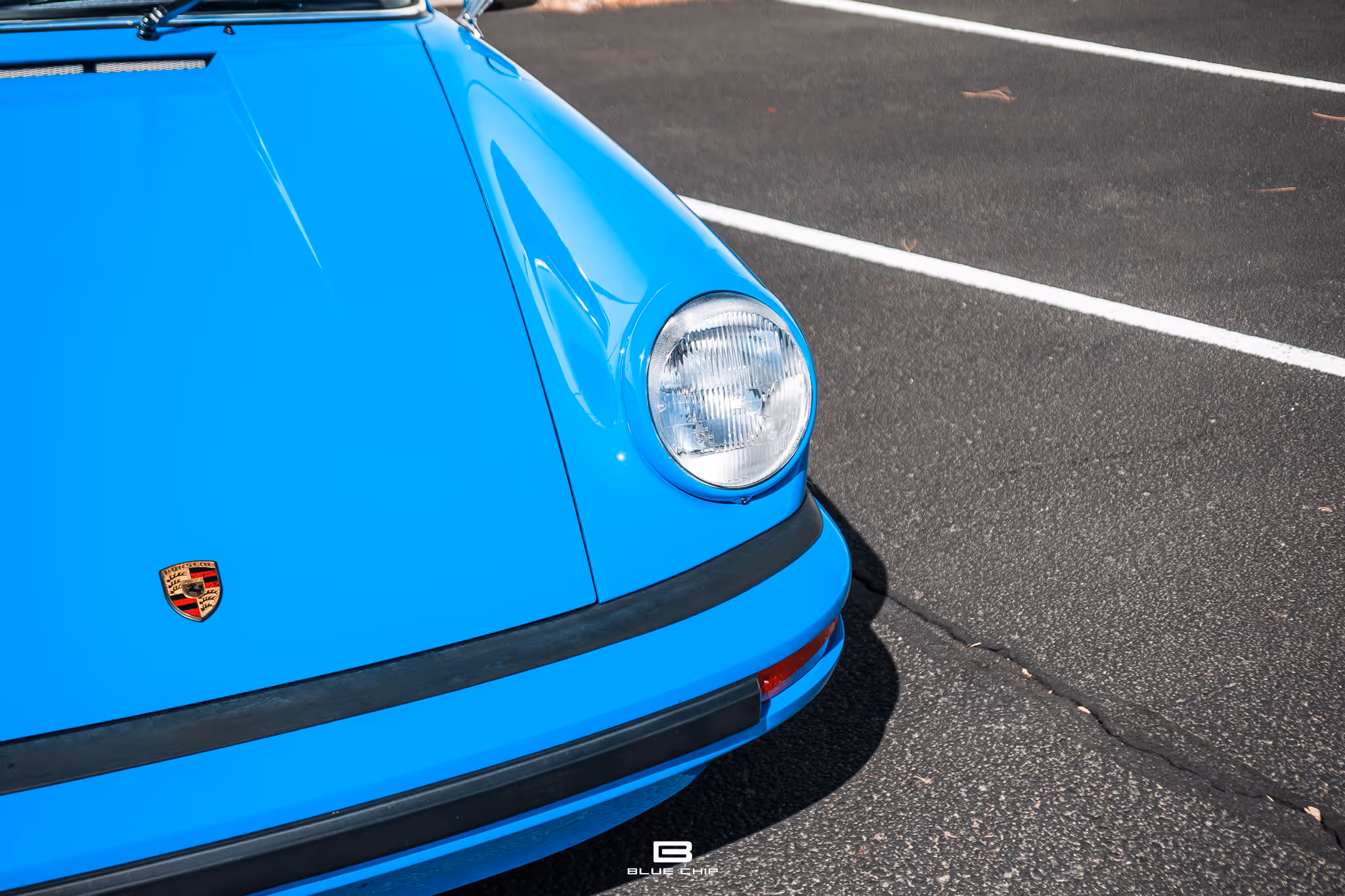 A striking blend of classic Porsche heritage and thoughtful performance enhancements, this 1974 Porsche 911 Coupe presents in a stunning factory-correct Mexico Blue finish over a black leather interior. Originally delivered to Centennial Porsche-Audi in Eugene, Oregon, this mid-year 911 has been tastefully upgraded and meticulously maintained, making it a compelling choice for enthusiasts and collectors alike.