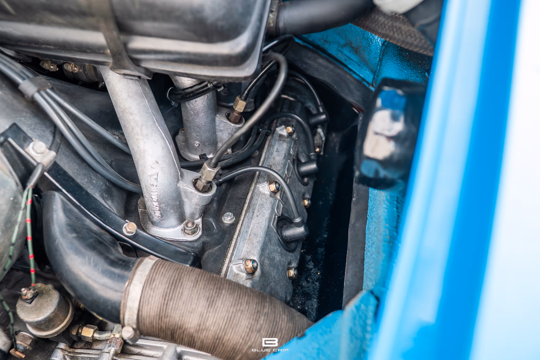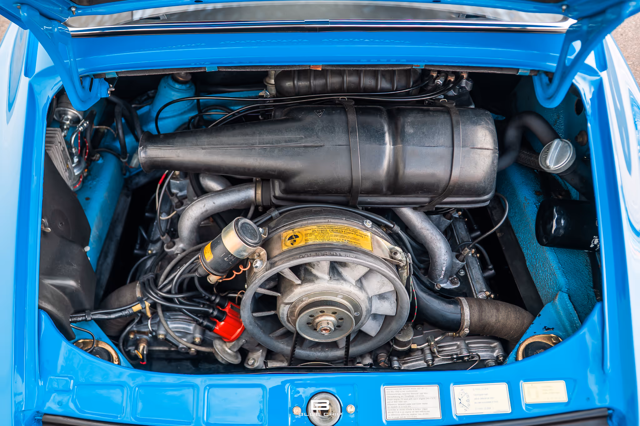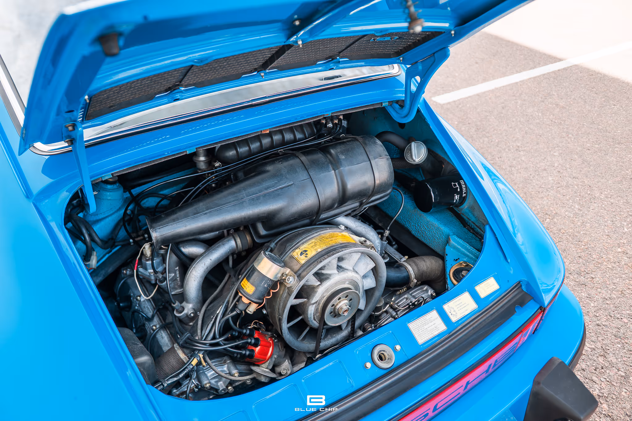 Undergoing a performance-focused rebuild circa 2006 by Specialized Porsche of Riverside, California, the air-cooled flat-six has been enlarged to 2.9 liters, offering an exhilarating driving experience. The modifications include a boattailed engine case for improved efficiency, a Web Cam camshaft, an LN Engineering Nickies 93mm cylinder and piston set with a 10.3:1 compression ratio, port-matched cylinder heads, and a balanced crankshaft and piston rods. Additional enhancements include a 1975 911-style aftermarket oil pump, a Dansk muffler, and aftermarket pop-off valve, pressure-fed chain tensioners, and cylinder head bolts. Power is delivered to the rear wheels via a five-speed manual transaxle, reportedly rebuilt in 2006, and complemented by a short-throw shifter installed in 2010. Regular servicing has ensured the car remains in peak mechanical condition, with recent maintenance including a fuel distributor rebuild, a replacement rear main seal, fuel accumulator, battery, fuel lines, and spark plugs. A June 2023 compression test confirms the health of the engine.