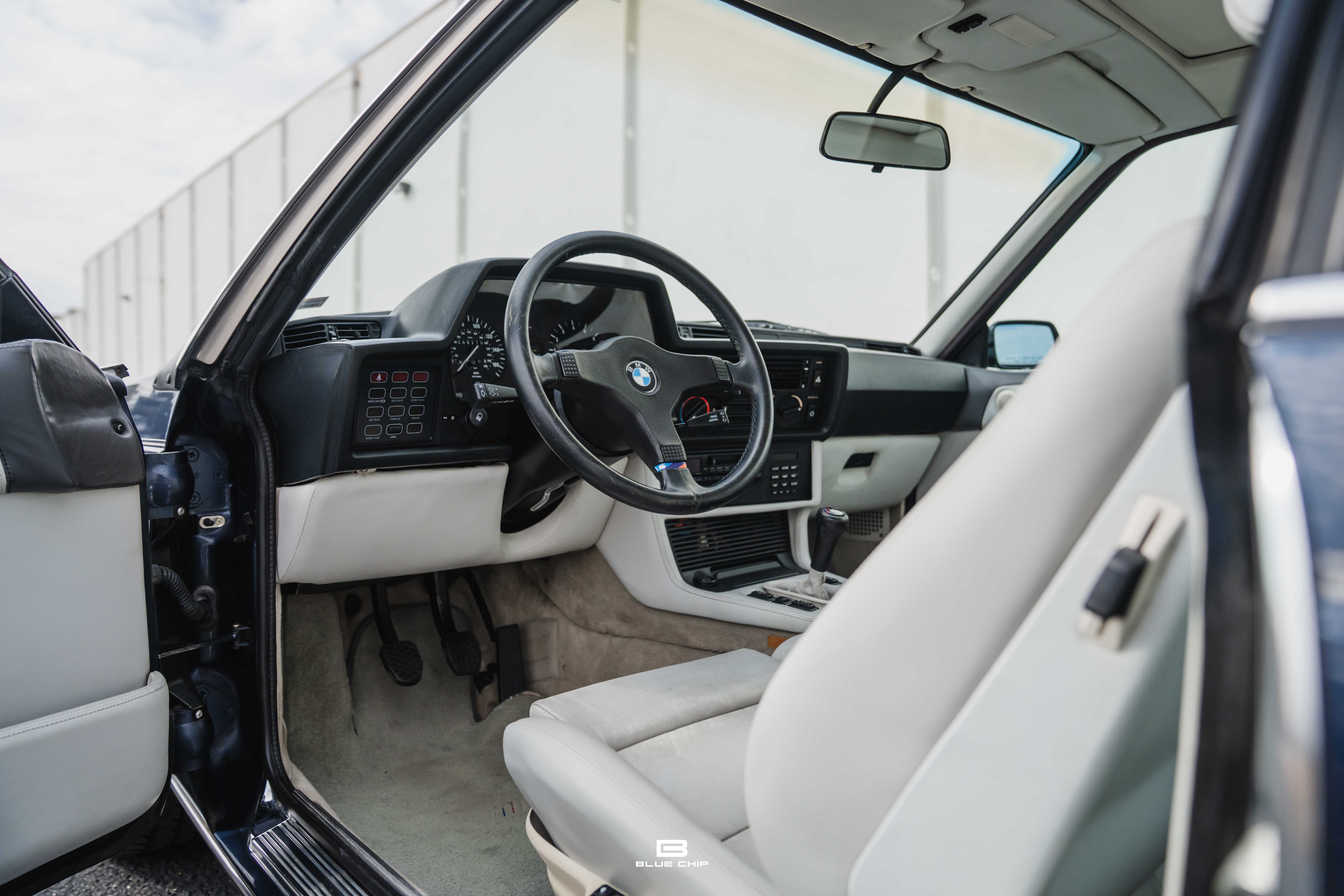 This 1987 BMW M6 is finished in an elegant shade of Blue over a White leather interior and currently shows approximately 86,000 miles on the odometer. The interior presents in well-preserved condition, displaying the car’s signature combination of understated luxury and driver-focused design. Externally, the car retains much of its original finish and character, though close inspection reveals a number of minor paint blemishes consistent with age and originality. These imperfections contribute to an honest presentation, reflecting the car’s largely unaltered condition and careful long-term enjoyment.