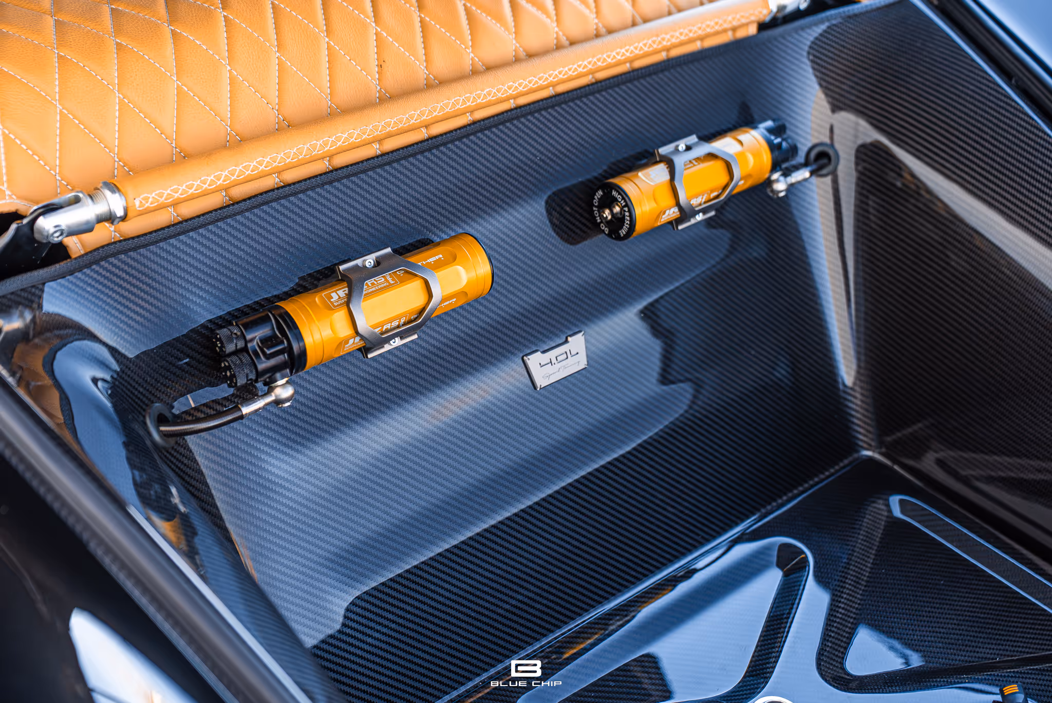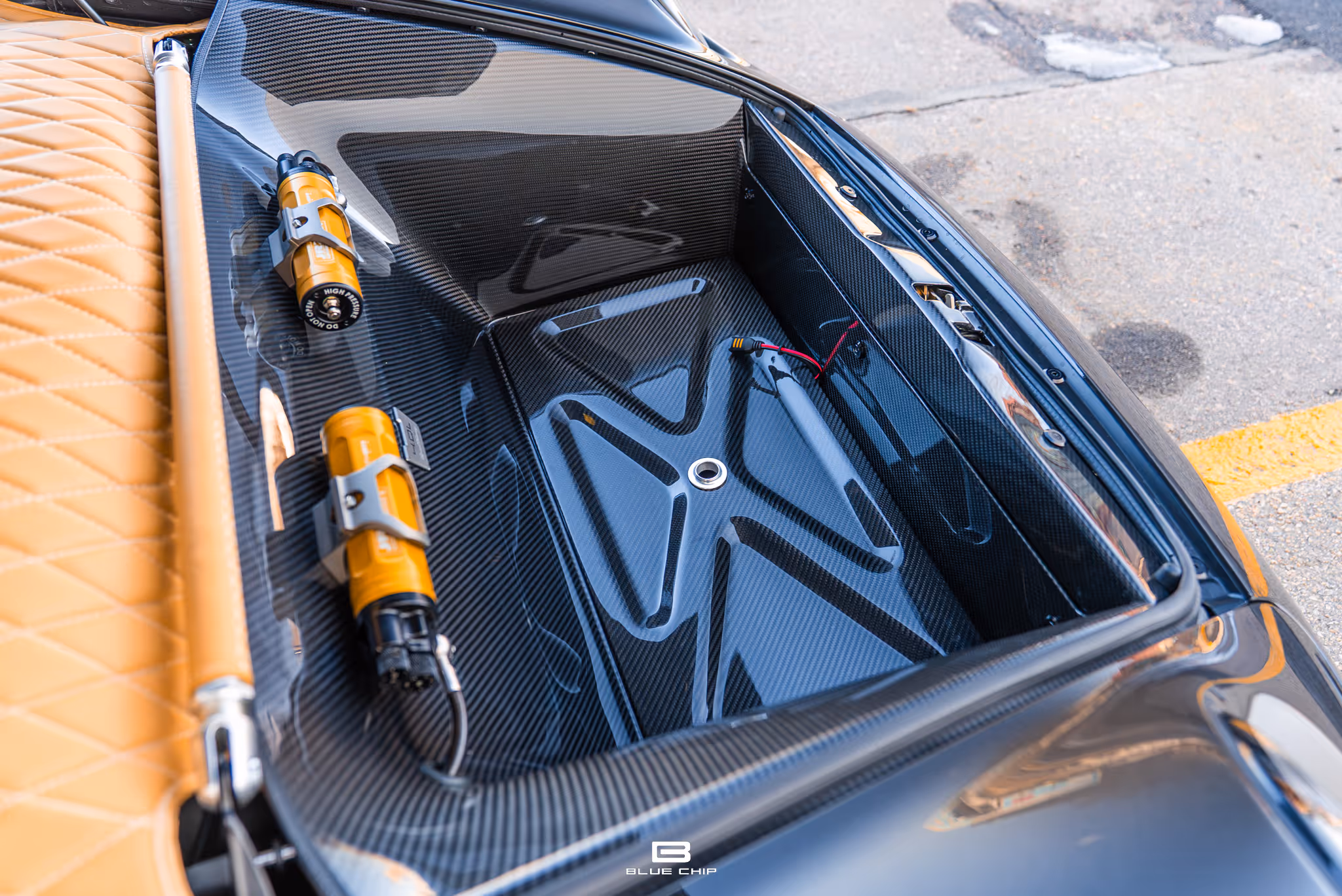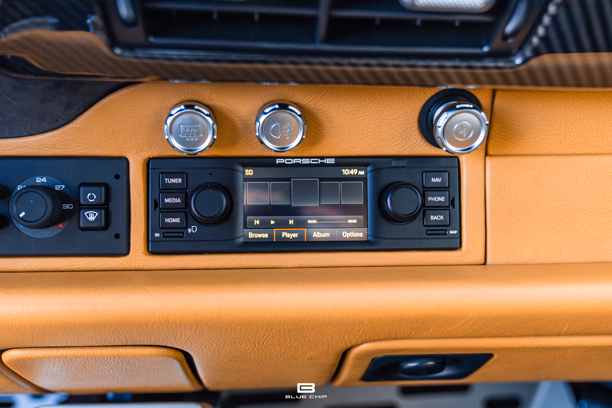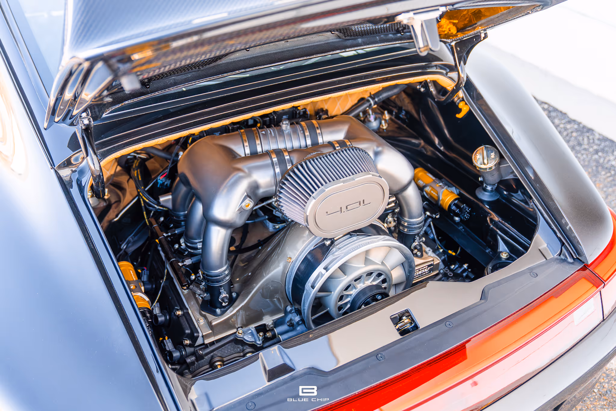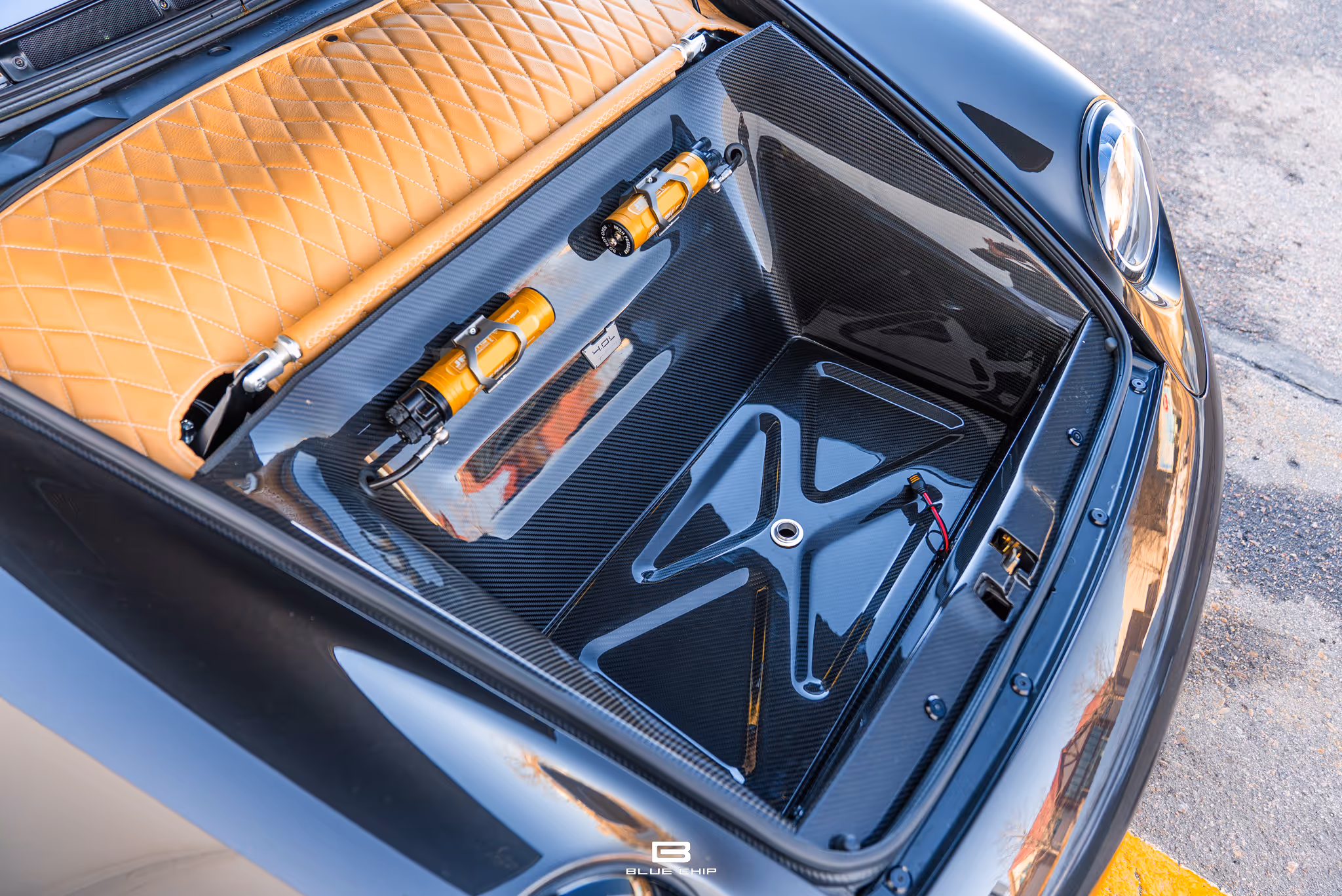 This 1997 Porsche 911 993 has been remastered by Gunther Werks in Huntington Beach, California. 80% of the vehicle is now completely bespoke, while the remaining 20% has been replaced with brand new Porsche equipment. The exterior body panels along with many of the internals have been replaced with copious amounts of carbon fiber, and Gunther Werks has flawlessly woven carbon fiber into the chassis. The originally 3.6-liter flat-six was completely stripped down and rebuilt as a 4.0 liter by Rothsport Road and Race in Sherwood, Oregon, now producing over 400 horsepower and more than 300 pound-feet of torque. The Remastered engine features an extensive list of forged internals and race-spec equipment including a two-stage MoTec engine management system, individual throttle bodies, and custom intake design based on the intake plenum of a 996-series Porsche 911 GT3. The Getrag G50 six-speed has been extensively enhanced with stronger internals, a lightweight flywheel, and 997.2 GT3RS clutch. The engineering masterpiece presented for sale here is the one off "Carbon Noire Commission." It's exterior is finished in a blend of exposed carbon fiber and bespoke gold flake black metallic paint. Inside, cognac aeronautical leather is mixed with exposed carbon fiber throughout. Gunther Werks designed LED headlights and LED rear light bridge were fitted, and rear seats have also been deleted. The Carbon Noire commission has also received over $200,000 in upgrades since it's last sale, including new brakes, rear wing, and lightweight wheels. It now displays only 492 miles from new. One of just 25 examples built, this presents a unique opportunity to acquire one of the finest bespoke 993s in existence.
