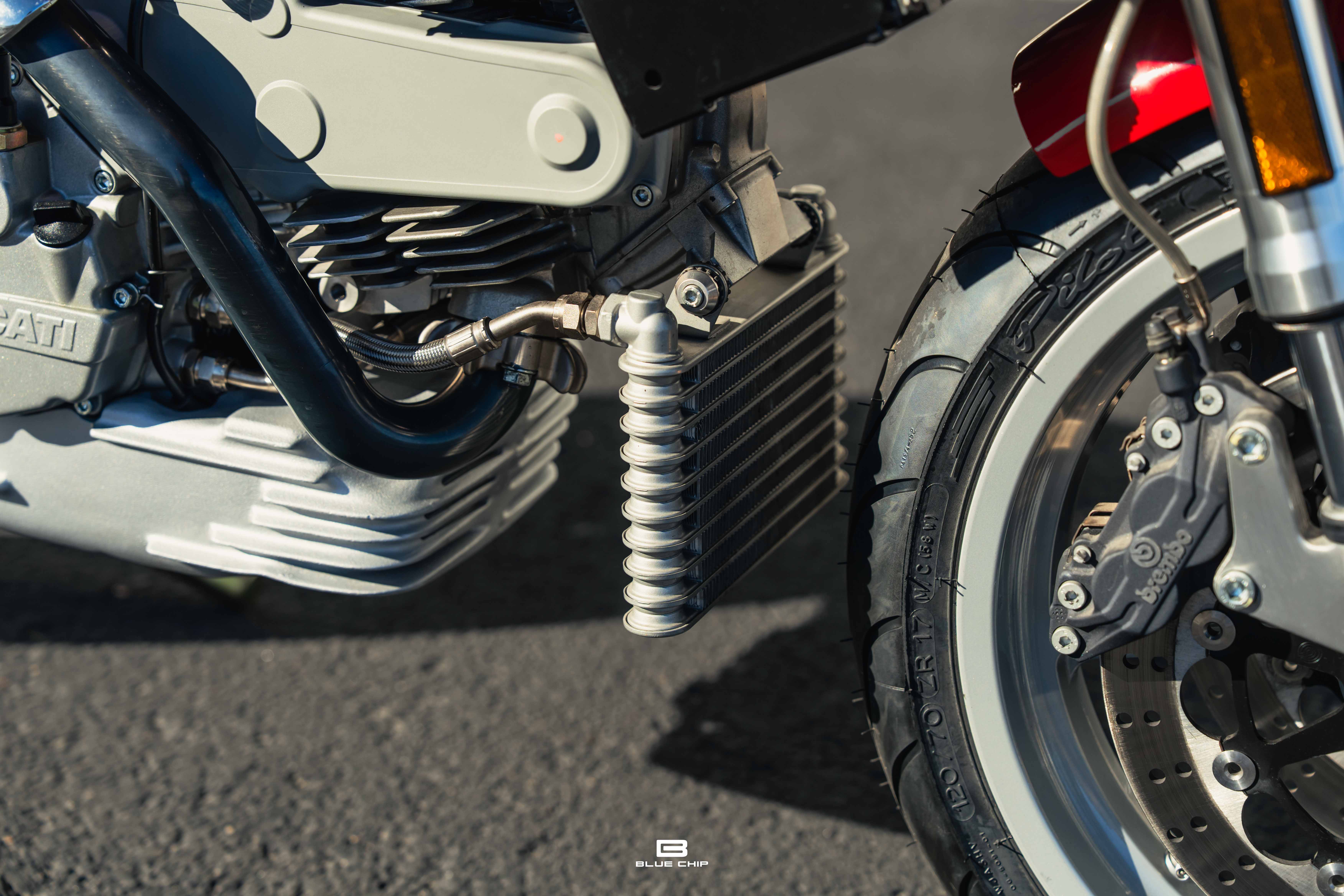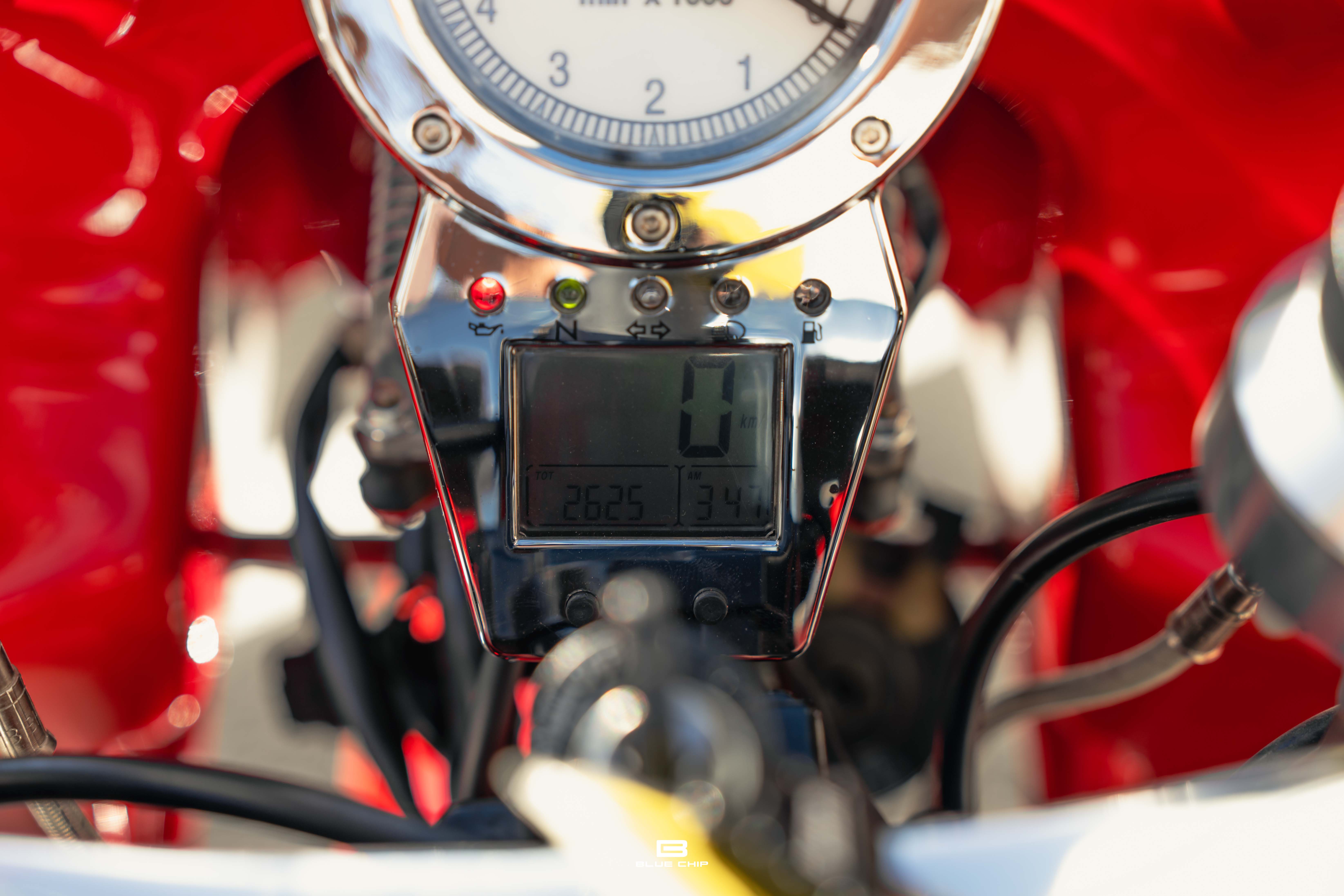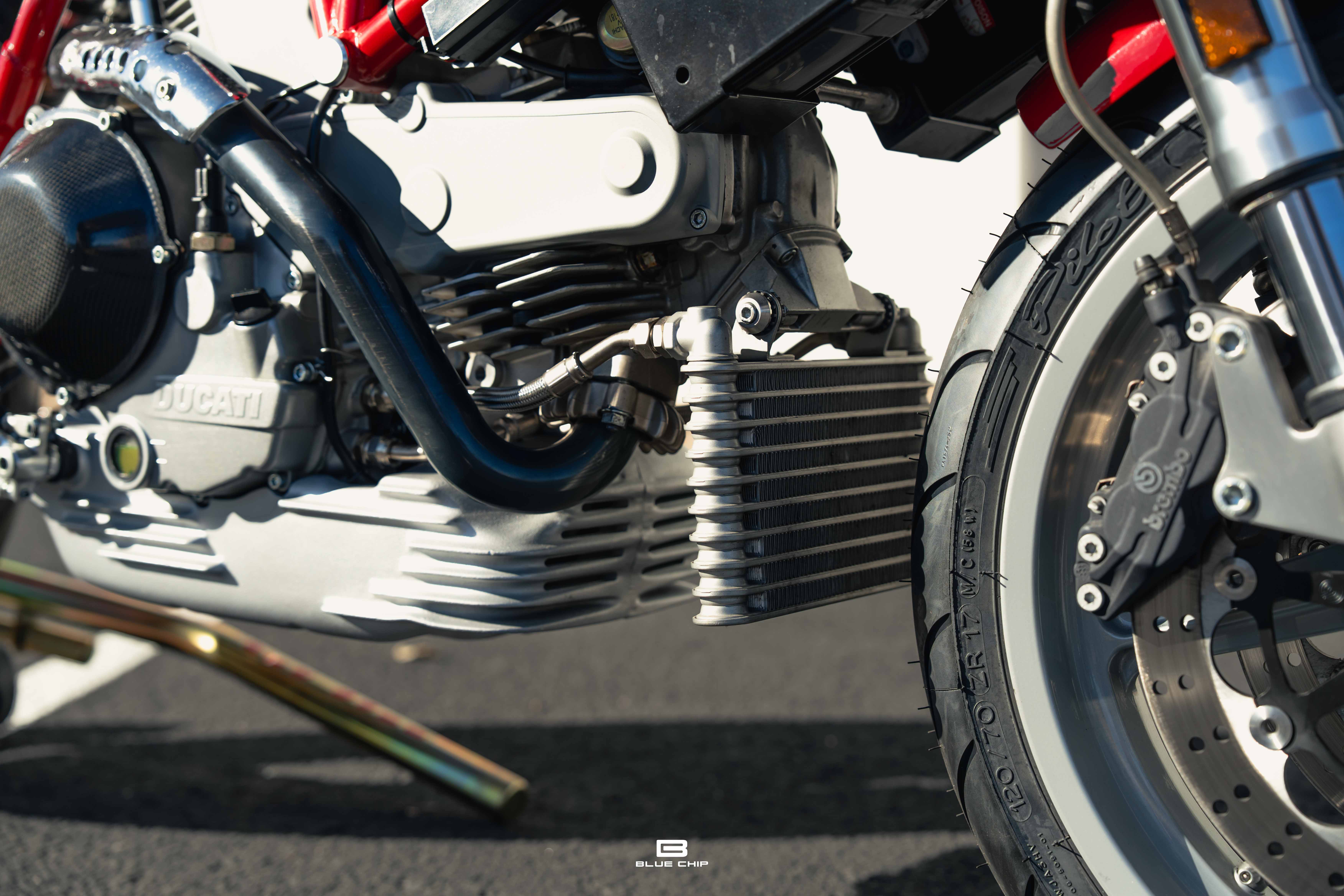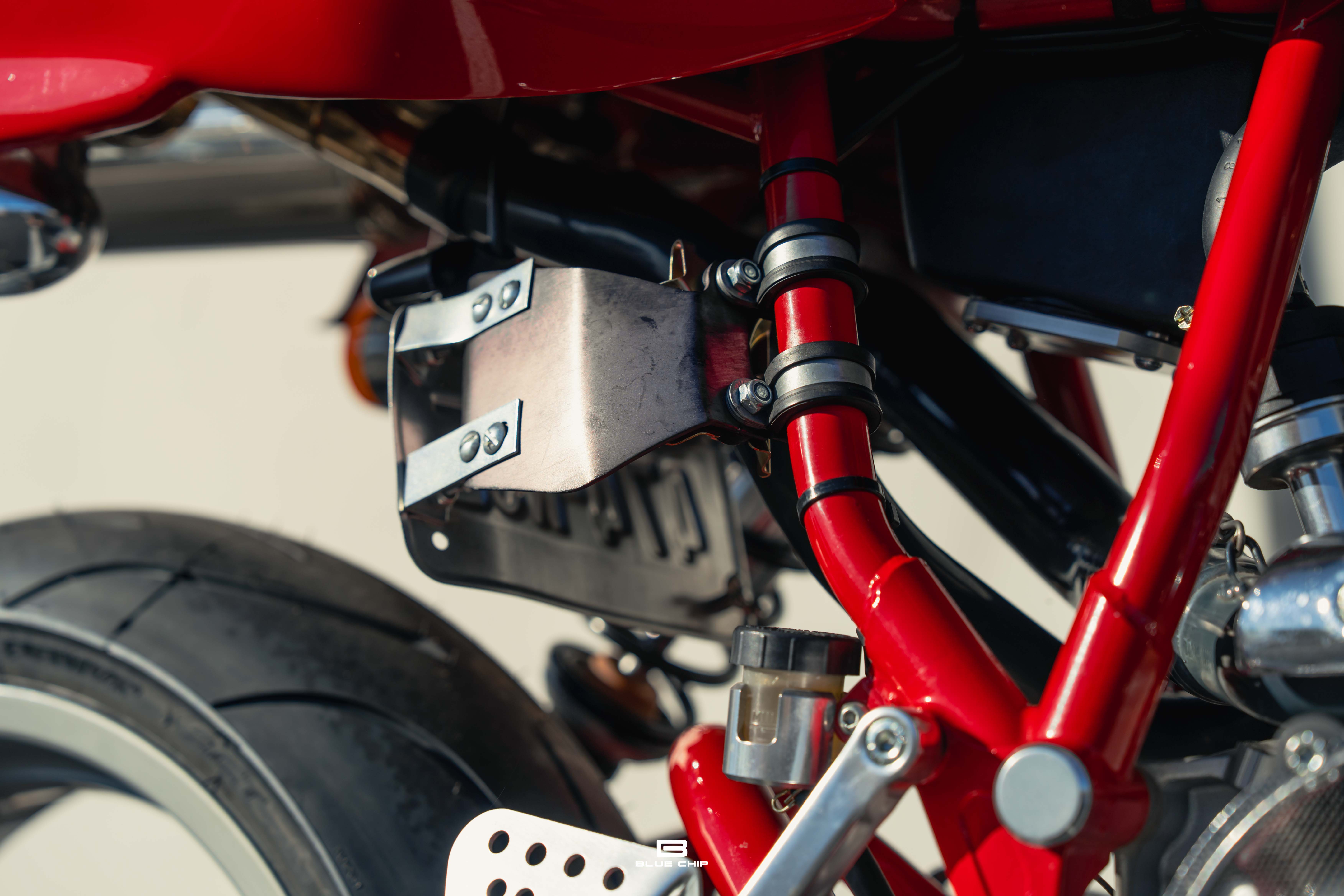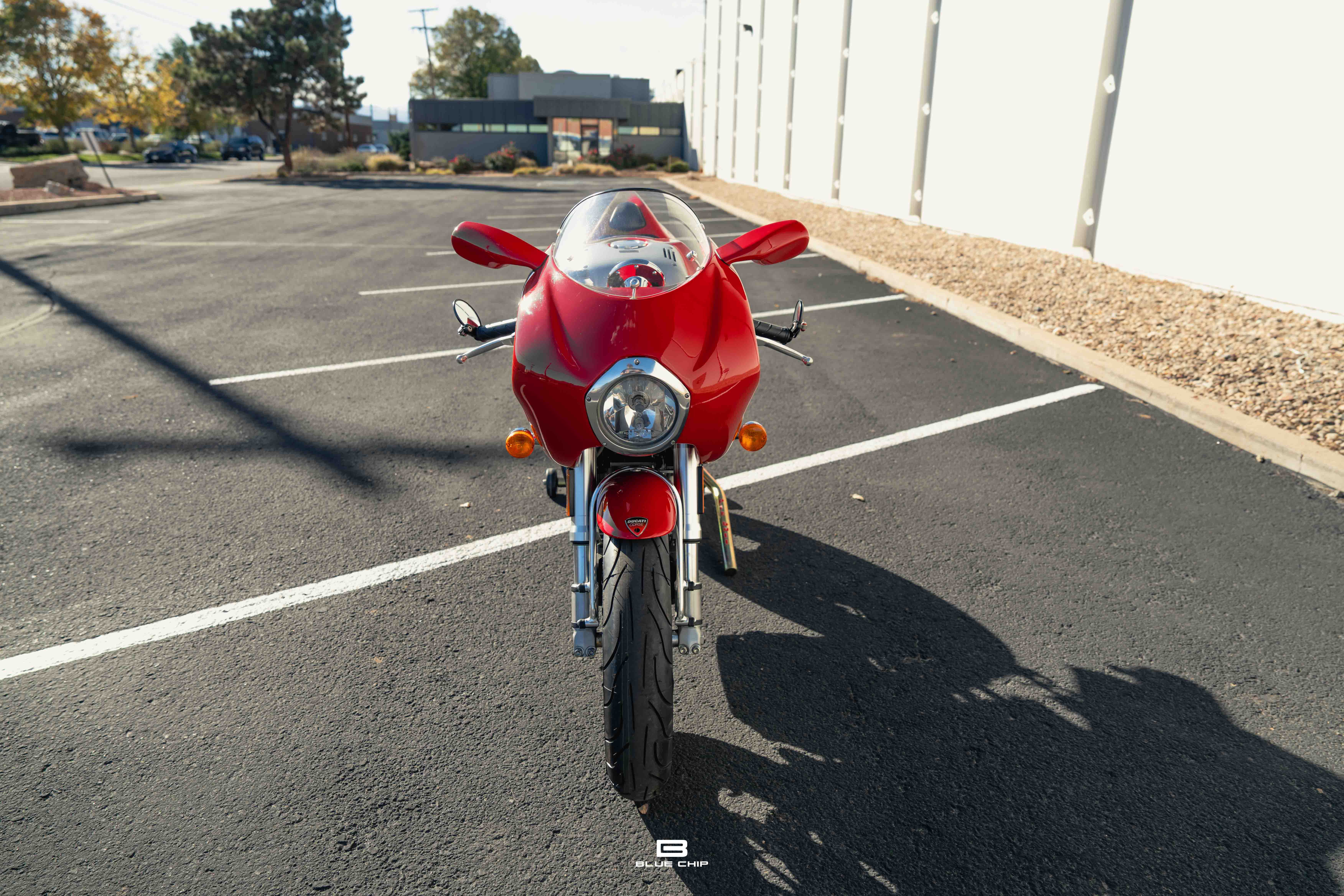 At its core, the 2001 Ducati MH900e had installed a 904cc air-cooled four-stroke V-twin engine that delivered 74 hp with a peak at 8,000 rpm and 76 Nm (56 lb-ft) of torque at 6,500 rpm. A six-speed manual gearbox and a final chain drive pushed the engine's power to the rear.
