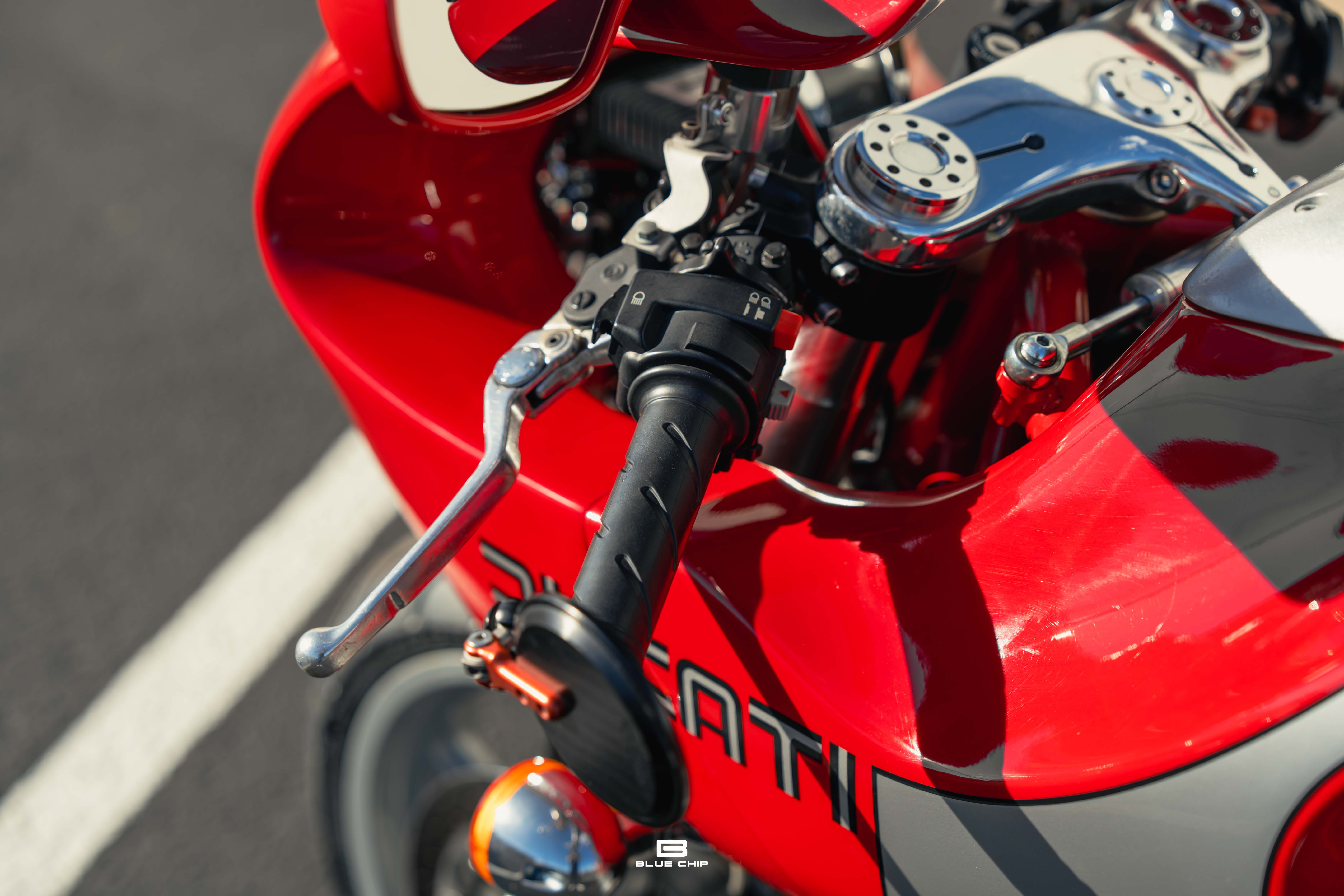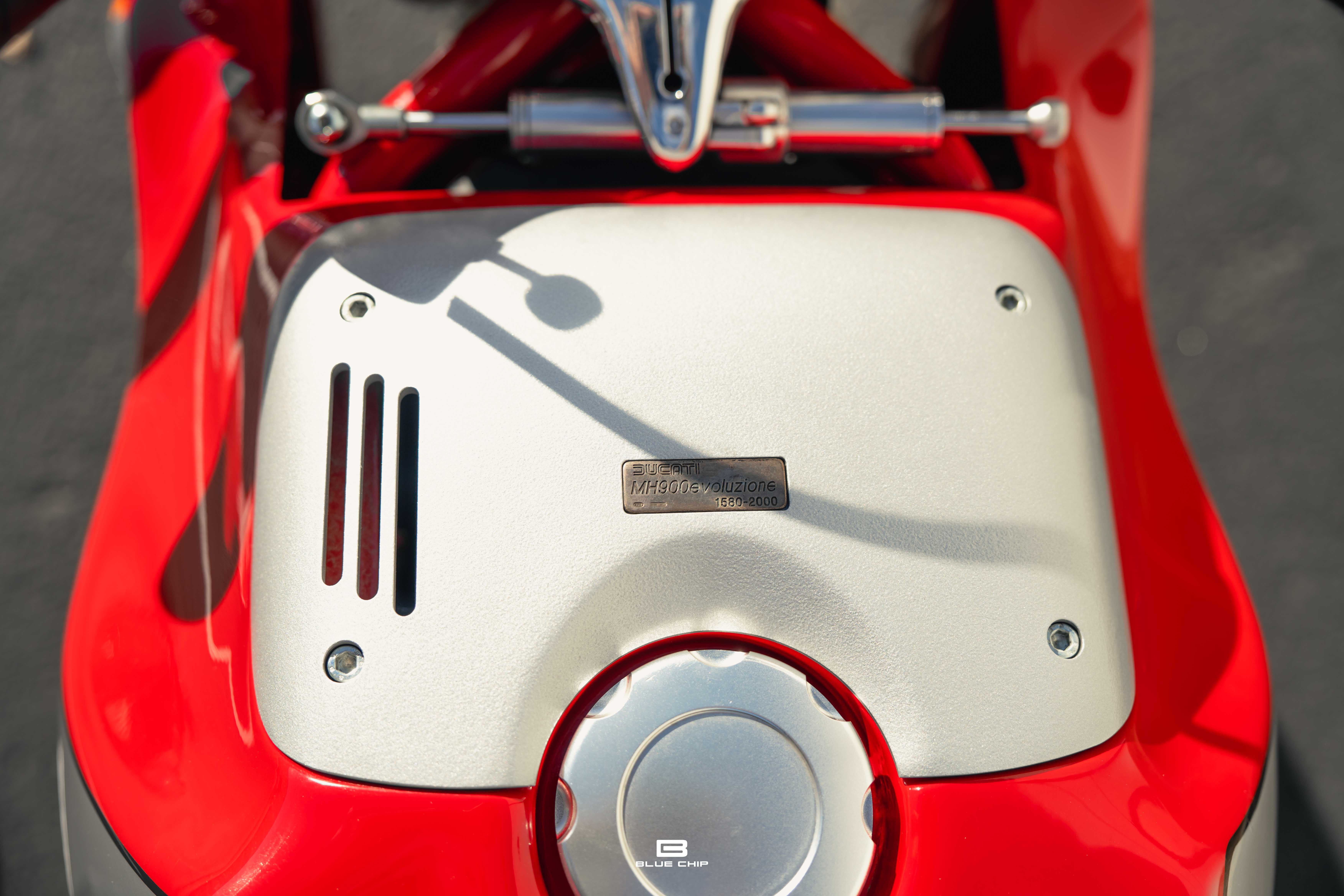 The MH in its name comes from Mike Hailwood, and the suffix "e" comes from Evoluzione. Ducati also decided to sell the bike to the public exclusively via the Internet. 1,000 bikes were sold in 31 minutes, while the remaining motorcycles were sold over the next few weeks.