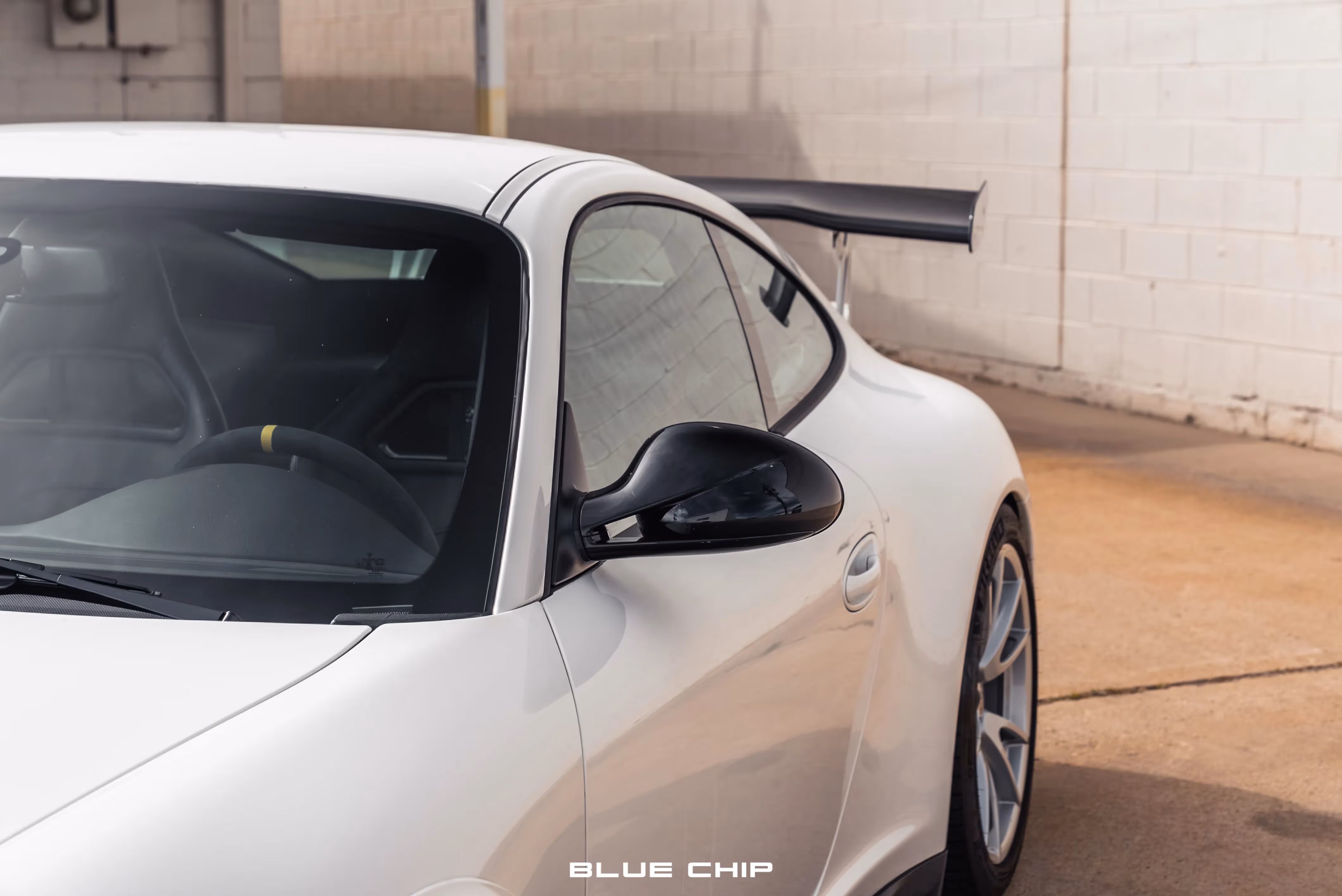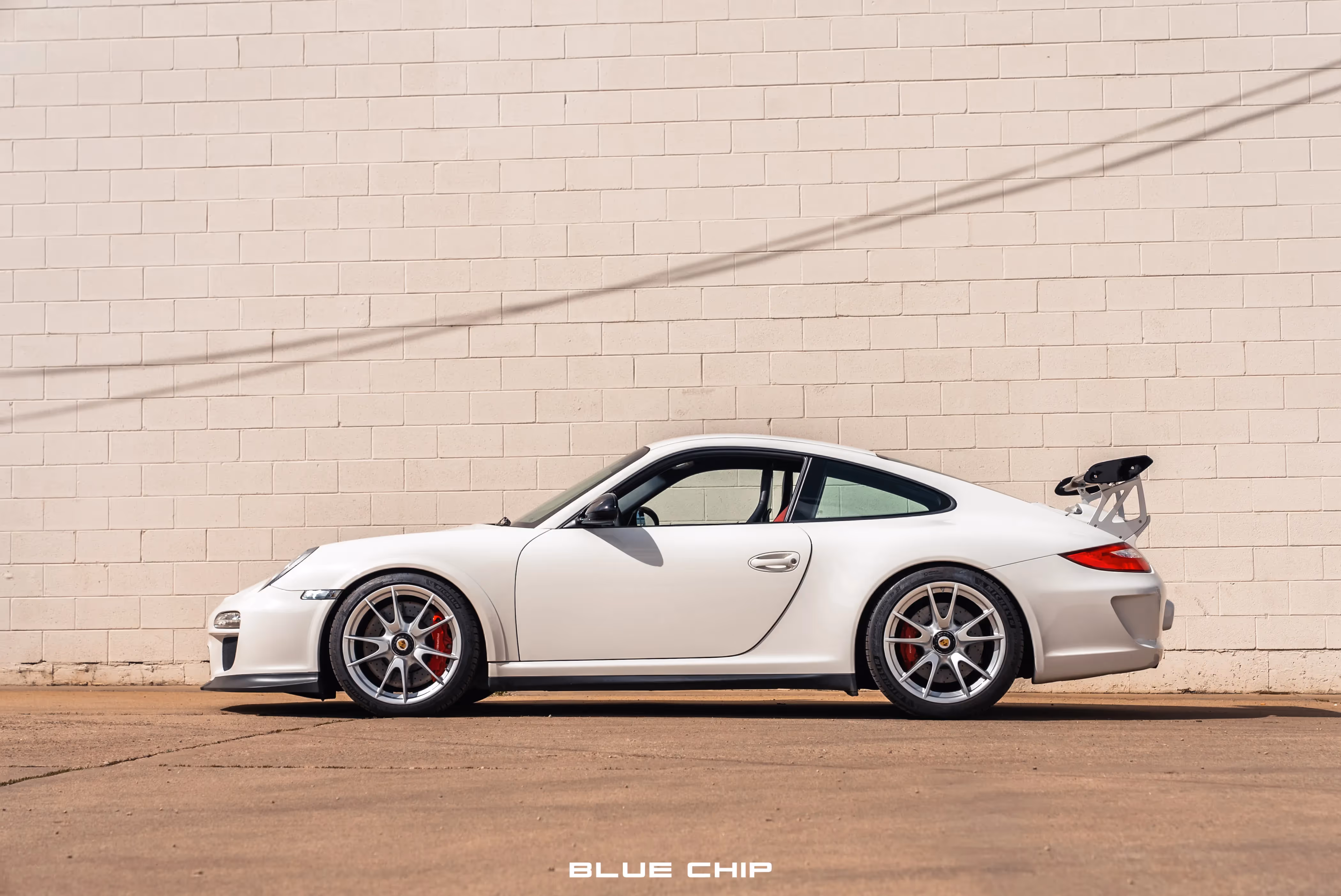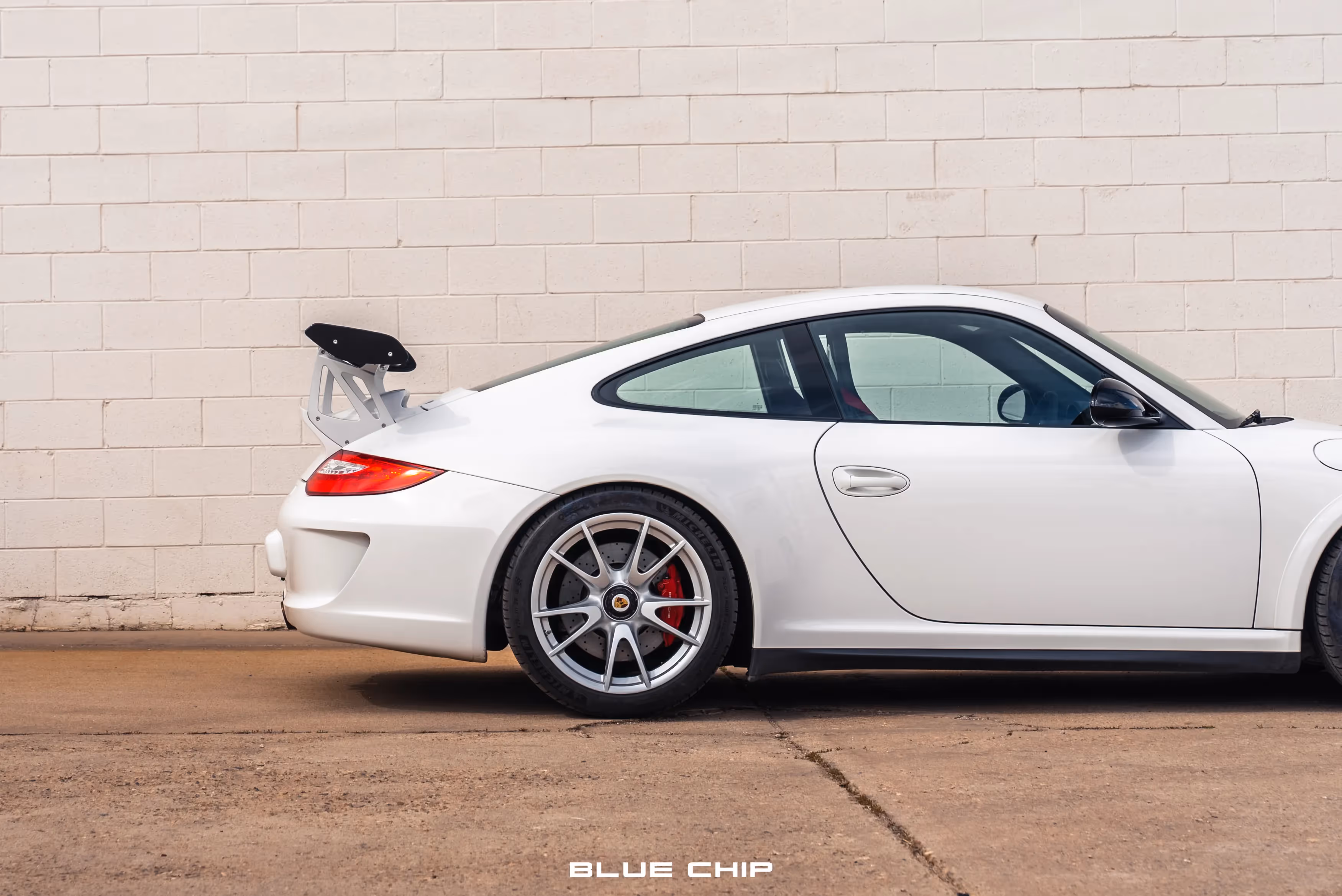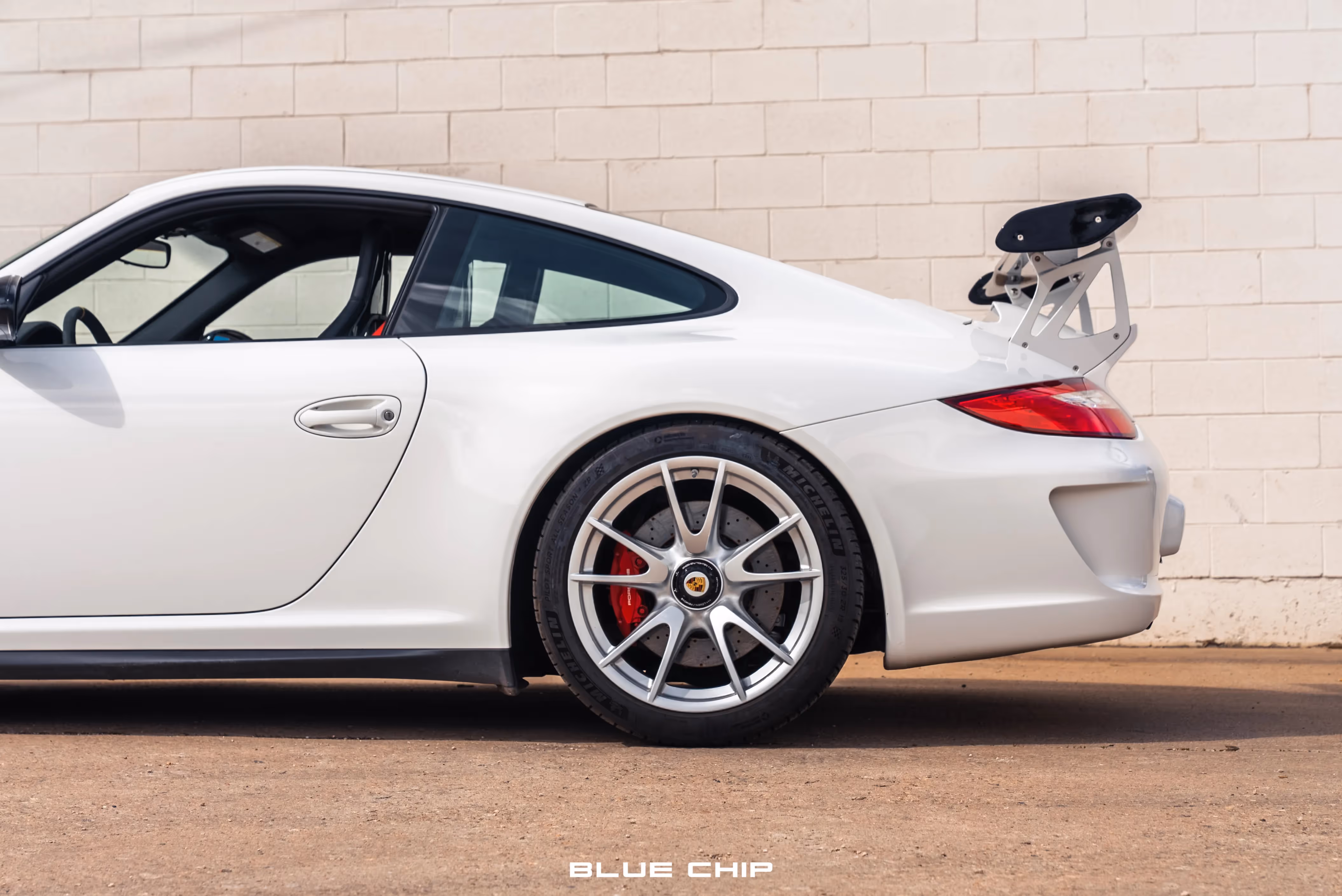 Center-locking wheels measuring 19″ in diameter are finished in silver with colored Porsche-crest center caps, and they are mounted with Michelin Pilot Sport tires measuring 245/35 up front and 325/30 out back. Braking is handled by cross-drilled rotors with red Porsche-branded six-piston front and four-piston rear calipers. The selling dealer states that the front rotors were replaced in preparation for the sale, and the car is equipped with adjustable RSS front castor bushings and rear toe-links.
