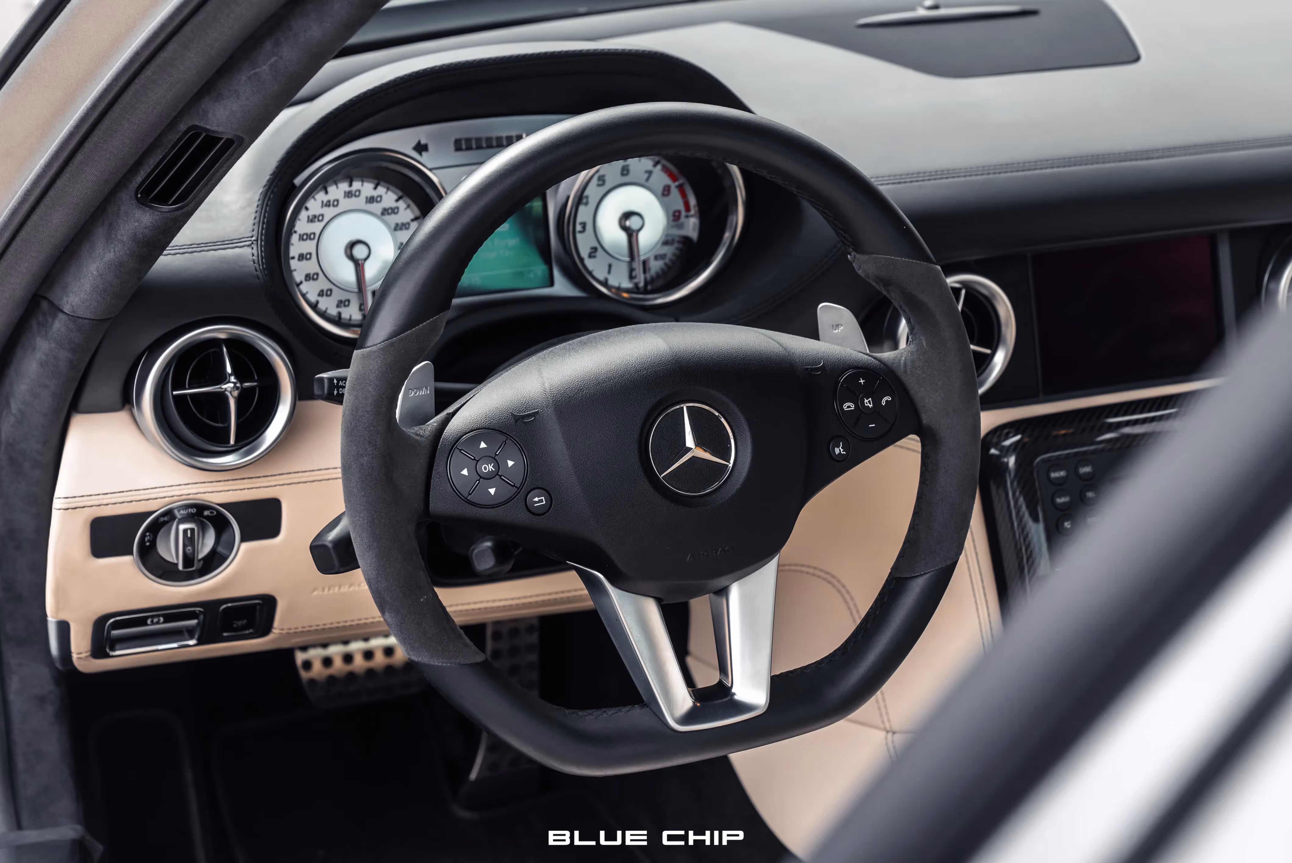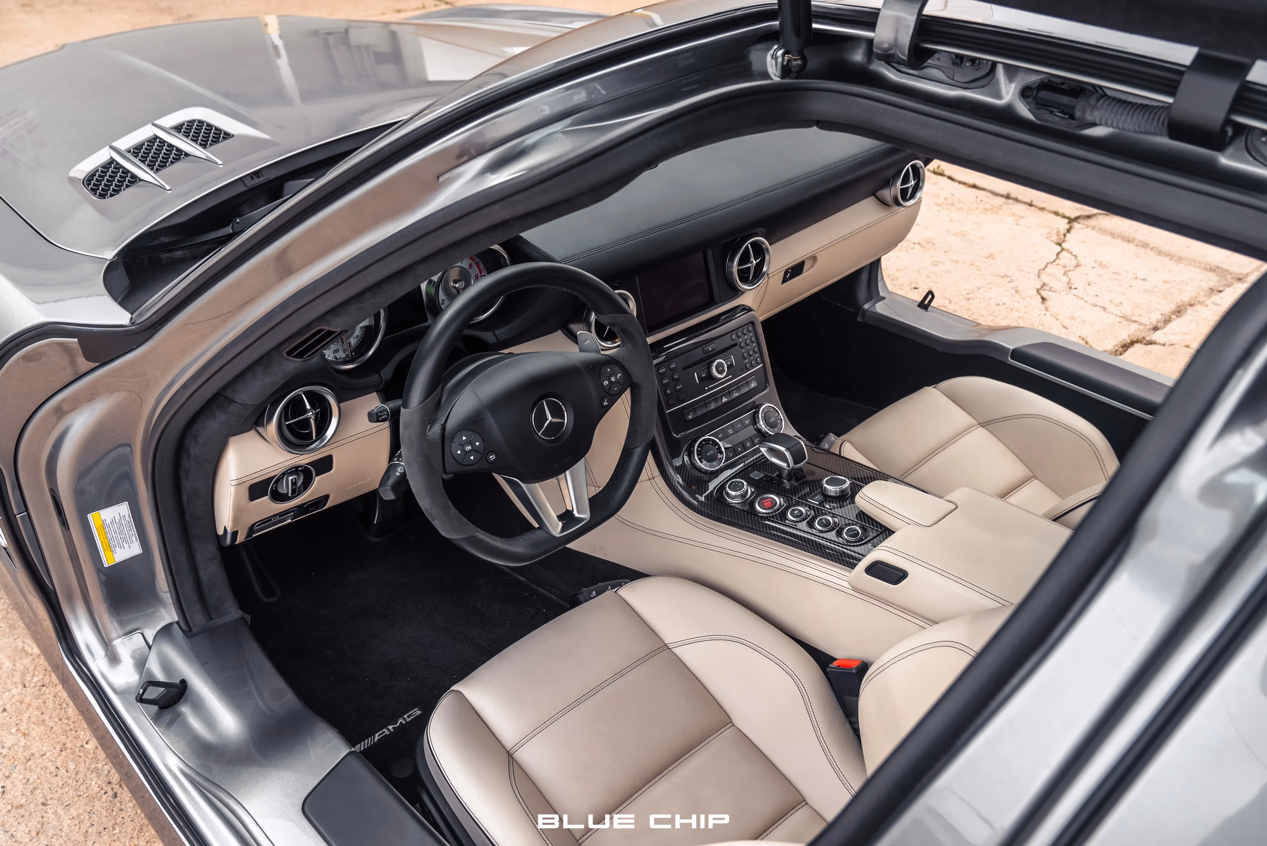 The 2012 Mercedes SLS AMG is the ultimate in luxury sports cars. It features Mercedes' iconic Gullwing-style door design that dates back to the Early 1950's with the 300SL. Paired with beautiful styling and innovation, the SLS AMG is equipped with a powerful 6.3L V8 engine that produces 563 horsepower and 479 lb-ft of torque and a seven-speed dual clutch automated manual transmission. This example is finished in AMG Alubeam Silver over Espresso with designer Exclusive Leather Upholstery. The odometer shows just 14031 miles from new and is available in our Denver Showroom.