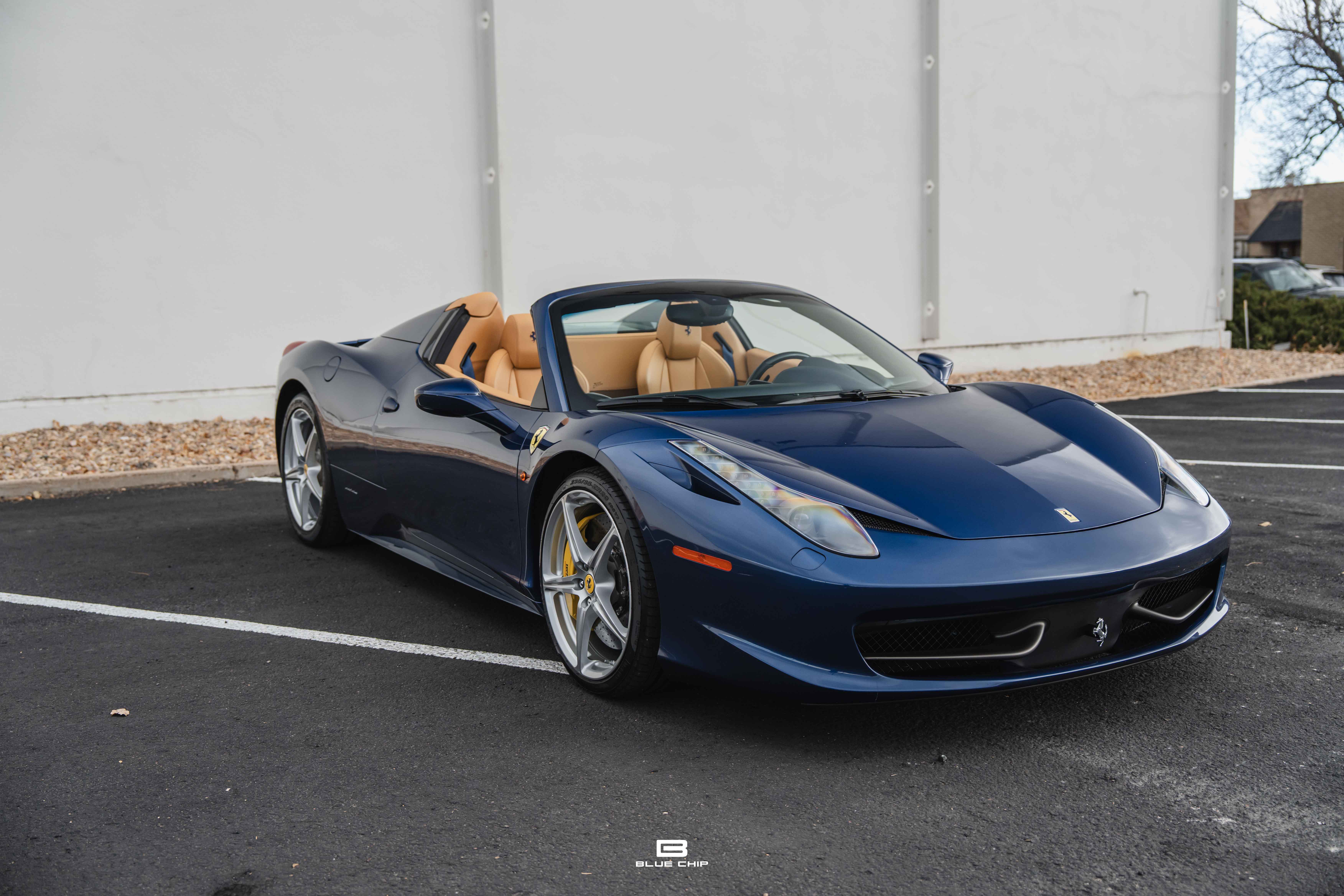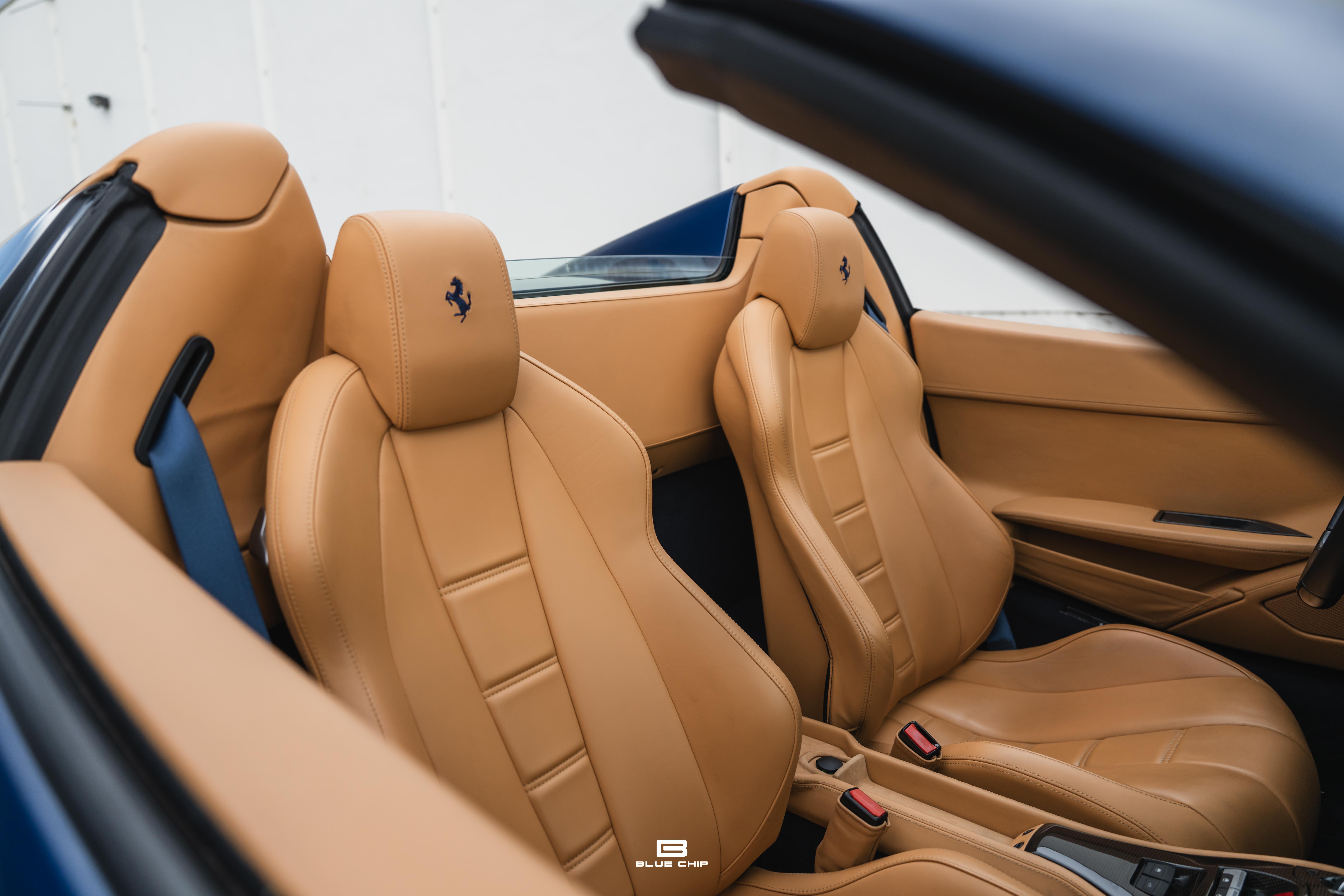 Finished in a timeless Blu Tour de France over Tan leather, this 2013 Ferrari 458 Spider exudes refined sophistication. Its sculpted bodywork—flowing from the aggressive nose to the elegantly tapered rear deck—perfectly complements the warm, hand-stitched tan interior. Inside, the cabin is a masterclass in form and function, surrounding the driver with a blend of fine materials, purposeful ergonomics, and motorsport-inspired details. Every switch, paddle, and display is positioned for intuitive control, underscoring the 458’s singular focus on the driving experience.