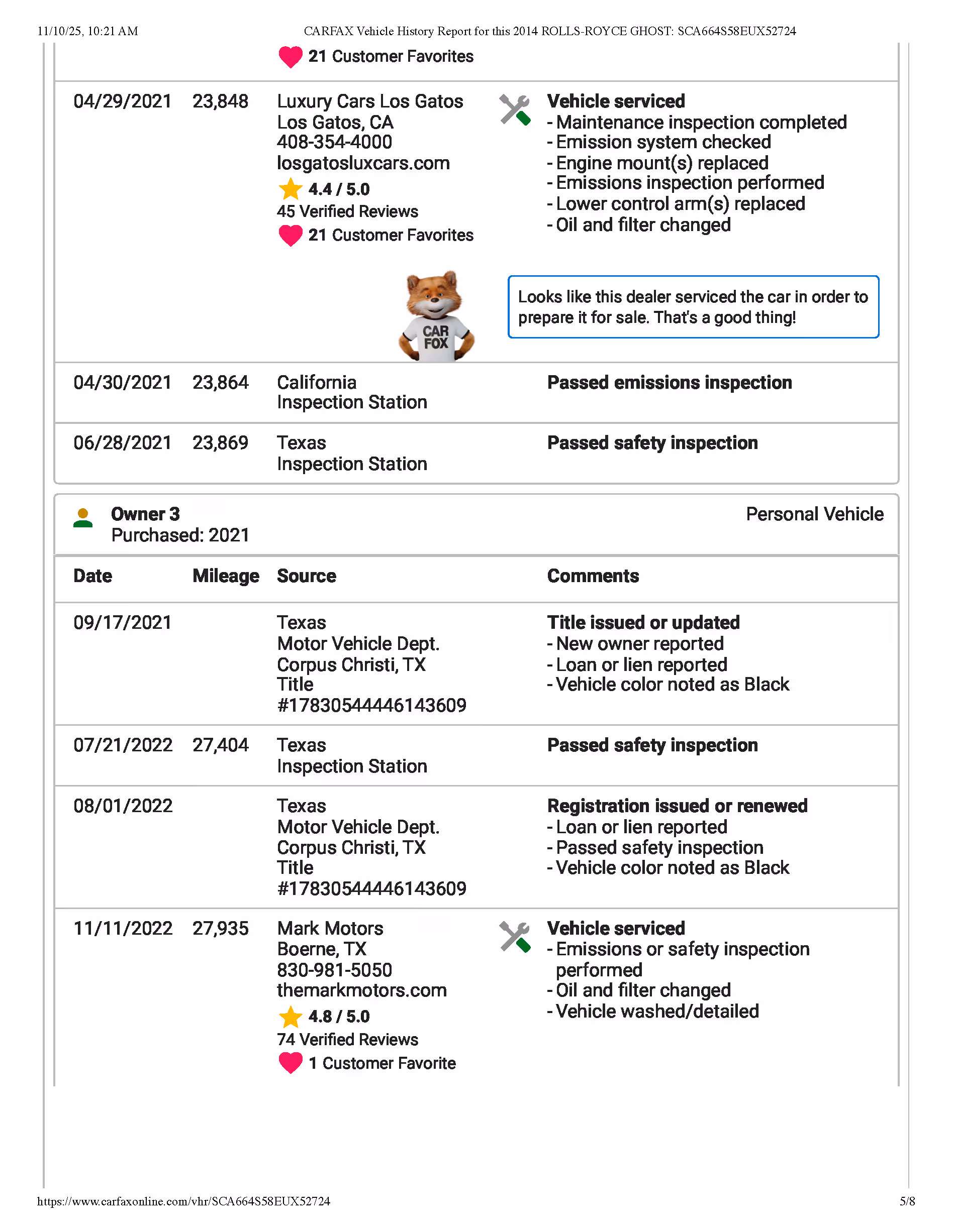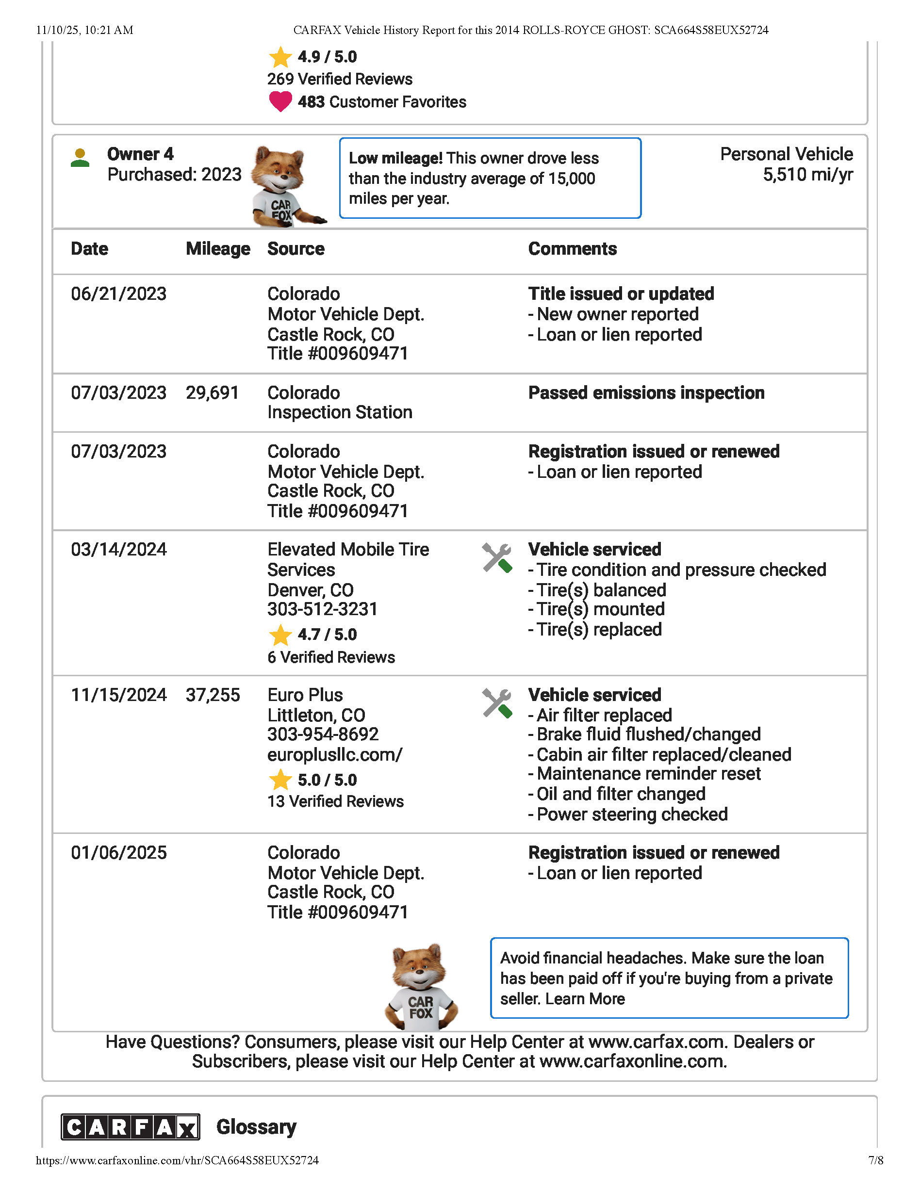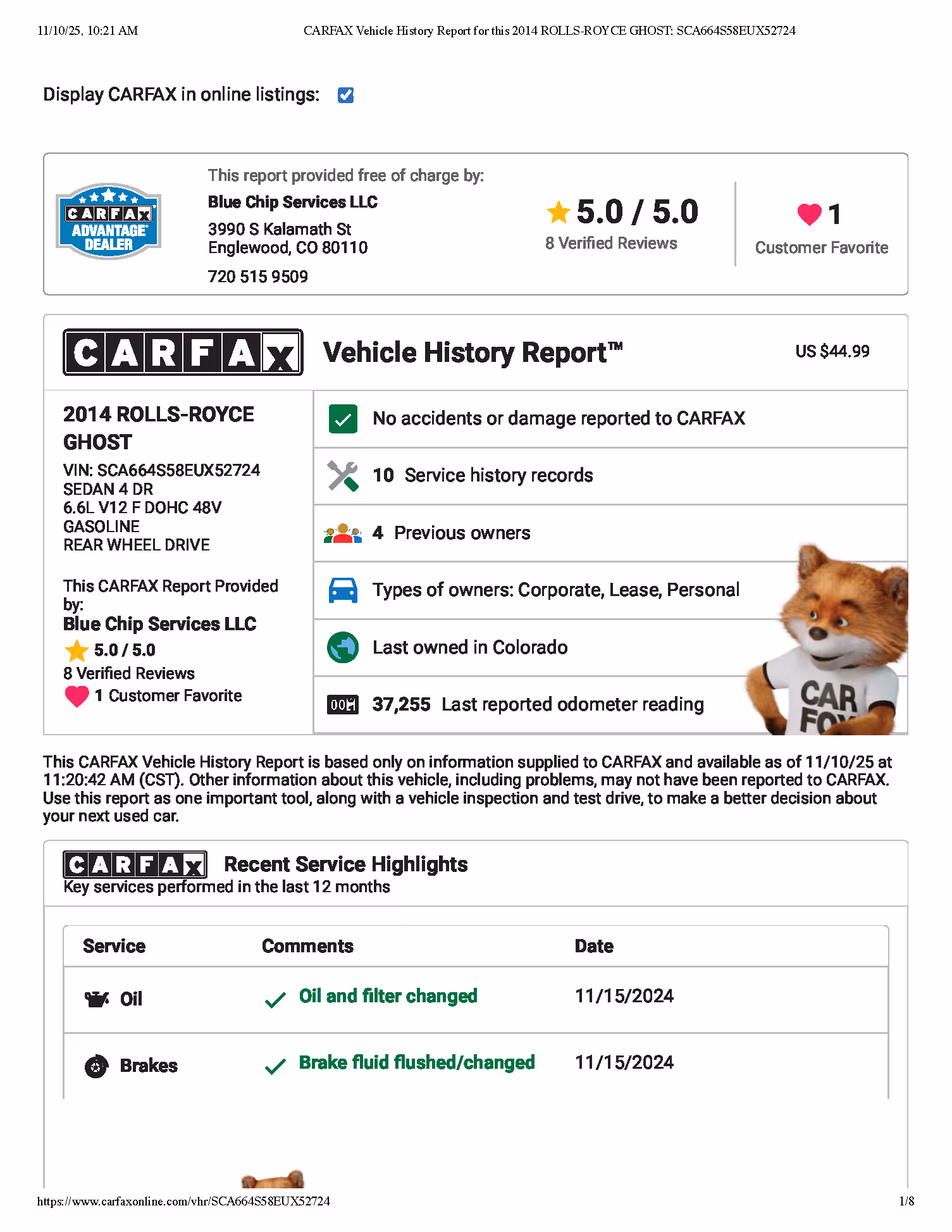 This particular example is a 2014 Rolls-Royce Ghost V-Specification, a limited-production model offered only for a brief period to celebrate the Ghost’s remarkable success since its debut. The V-Specification introduced a subtle elevation in both performance and presentation—its 6.6-liter twin-turbocharged V12 was tuned to deliver 593 horsepower, a 30-horsepower increase over the standard car, while unique design flourishes such as exclusive badging, V-Spec treadplates, and bespoke interior embroidery further distinguished it from its peers.