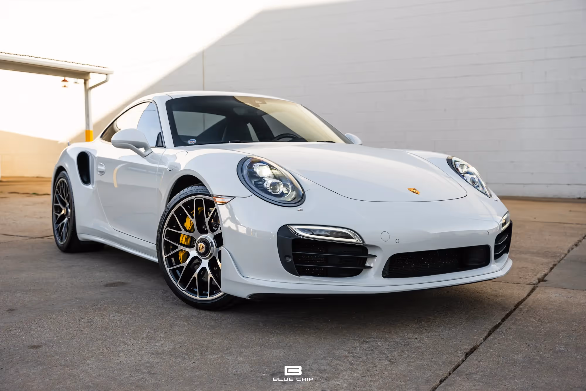 Now offered for sale, Blue Chip is proud to present this 2016 Porsche 911 Turbo S finished in Carrara White Metallic over Black Leather. 20-inch center-lock wheels are finished in Polished Silver, and braking is handled by yellow Porsche-branded brake calipers over Porsche Ceramic Composite Brake rotors. With an original MSRP of $198,005.00, this example has been well specified with factory options including the Turbo Aerokit, Electric Slide/Tilt Sunroof, Premium Package Plus, and Painted Side Skirts. Inside the cabin, Heated Front Seats are wrapped in Black leather, and additional options include a Burmester High-End Infotainment Package and the Light Design Package.