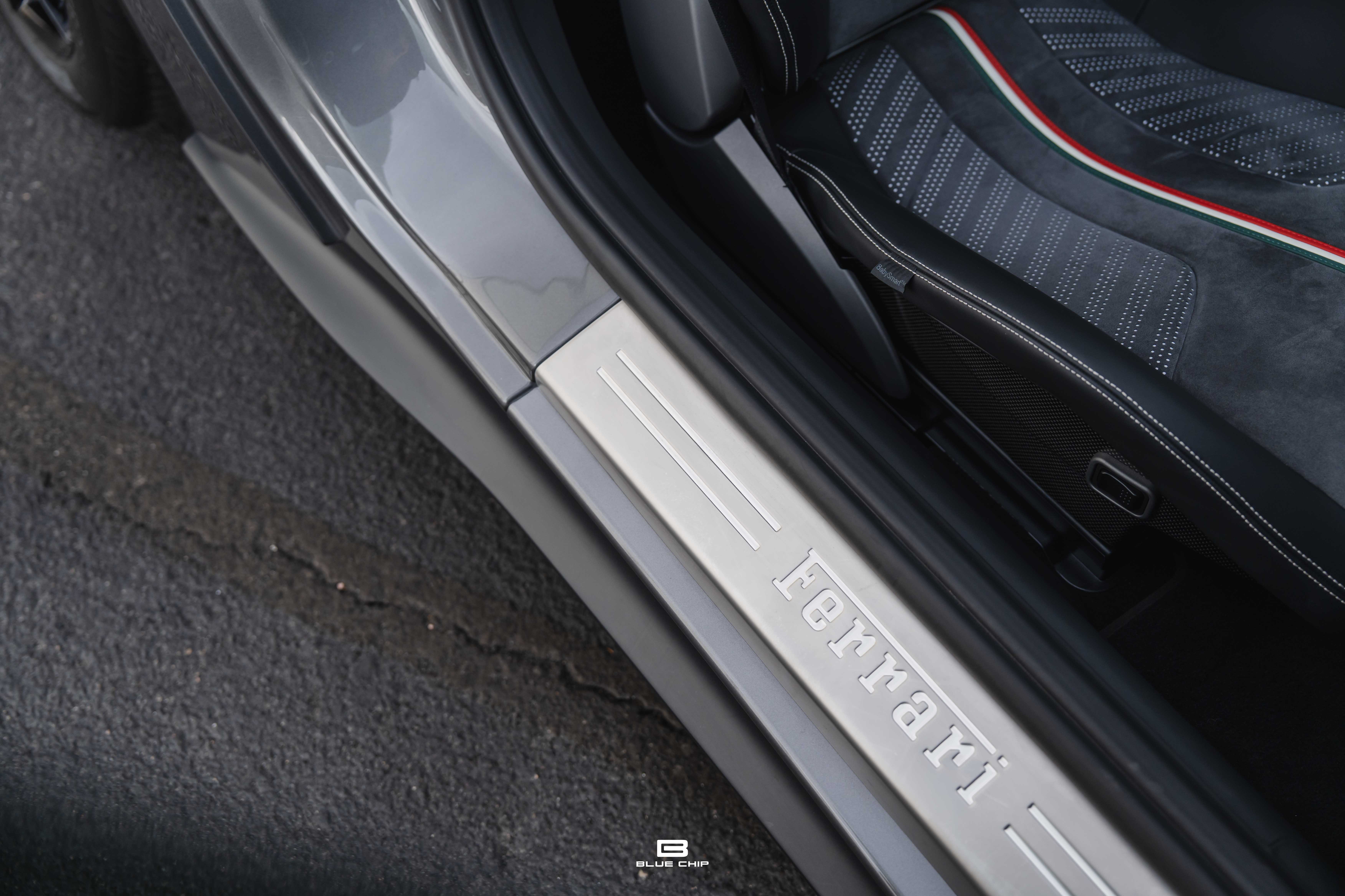 Finished in Grigio Ferro Metallic over grey Alcantara upholstery, this 2017 example is distinguished by an exceptionally high-value configuration totaling nearly $100,000 in factory options, as reflected in the accompanying window sticker. The specification includes AFS headlights, carbon-ceramic brakes with yellow calipers, carbon fiber headlight buckets, carbon fiber driver zone with LEDs, carbon fiber central bridge, carbon fiber interior trim, ventilated Alcantara upholstery, Scuderia Ferrari shields, front and rear parking cameras, suspension lifter, and matching carbon fiber elements throughout the cockpit. The desirable carbon racing seats and Alcantara detailing further enhance its sporting intent, while features such as the high-power audio system, dual-zone climate control, satellite navigation, and electrochromatic mirror package round out a comprehensive luxury and performance-focused build.