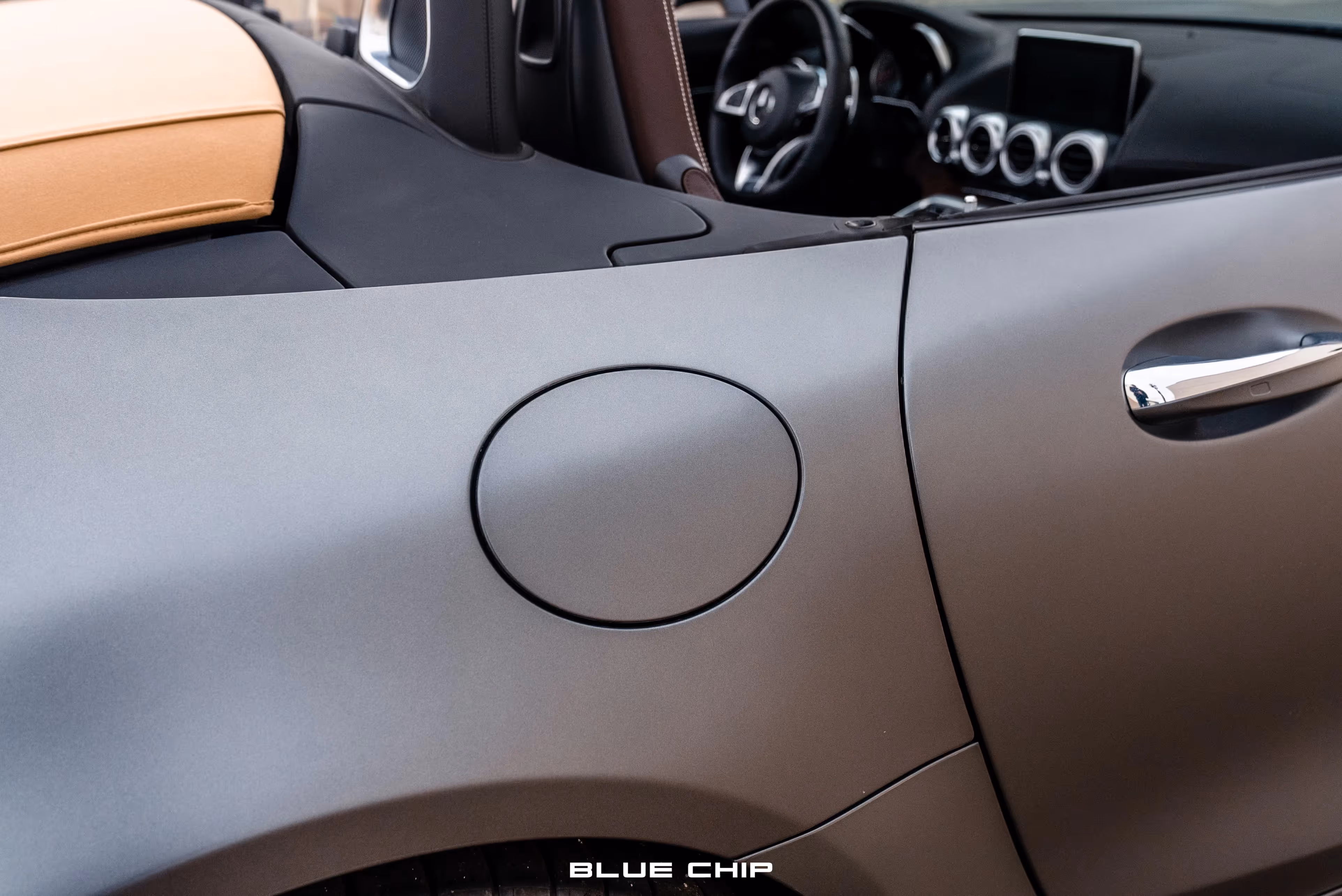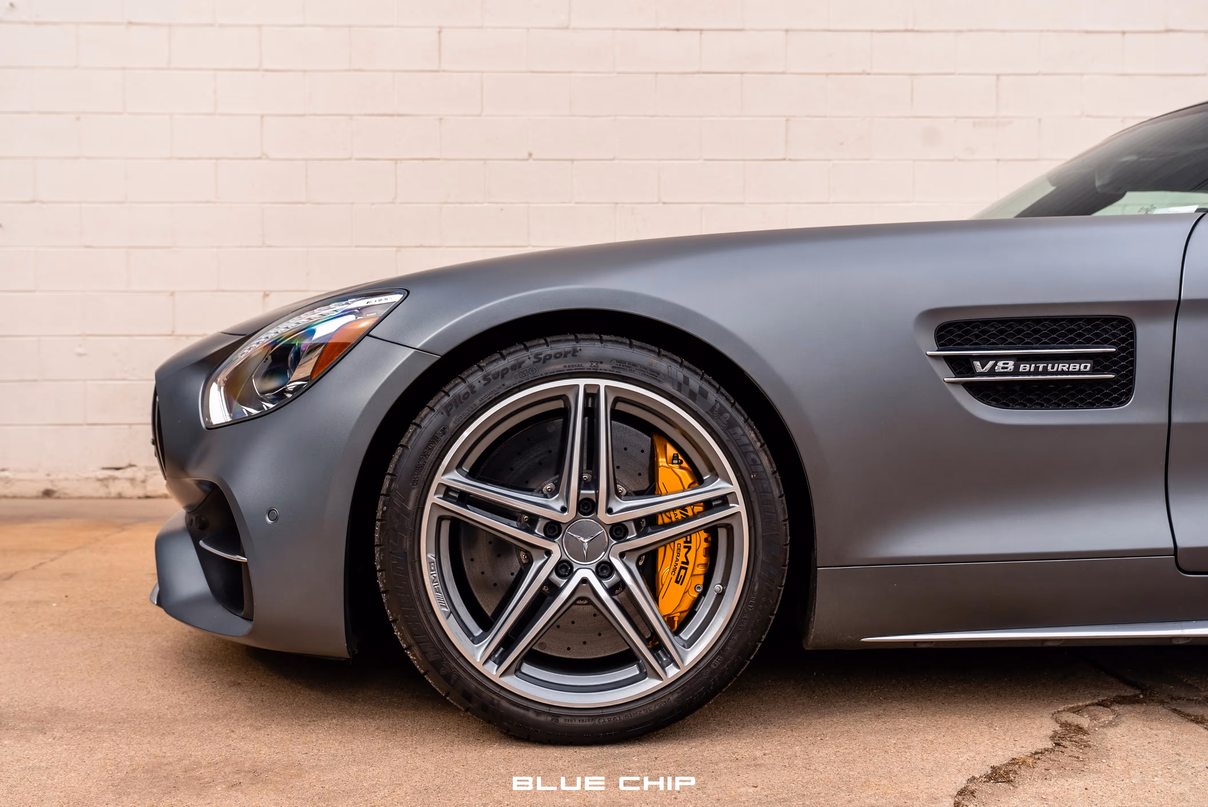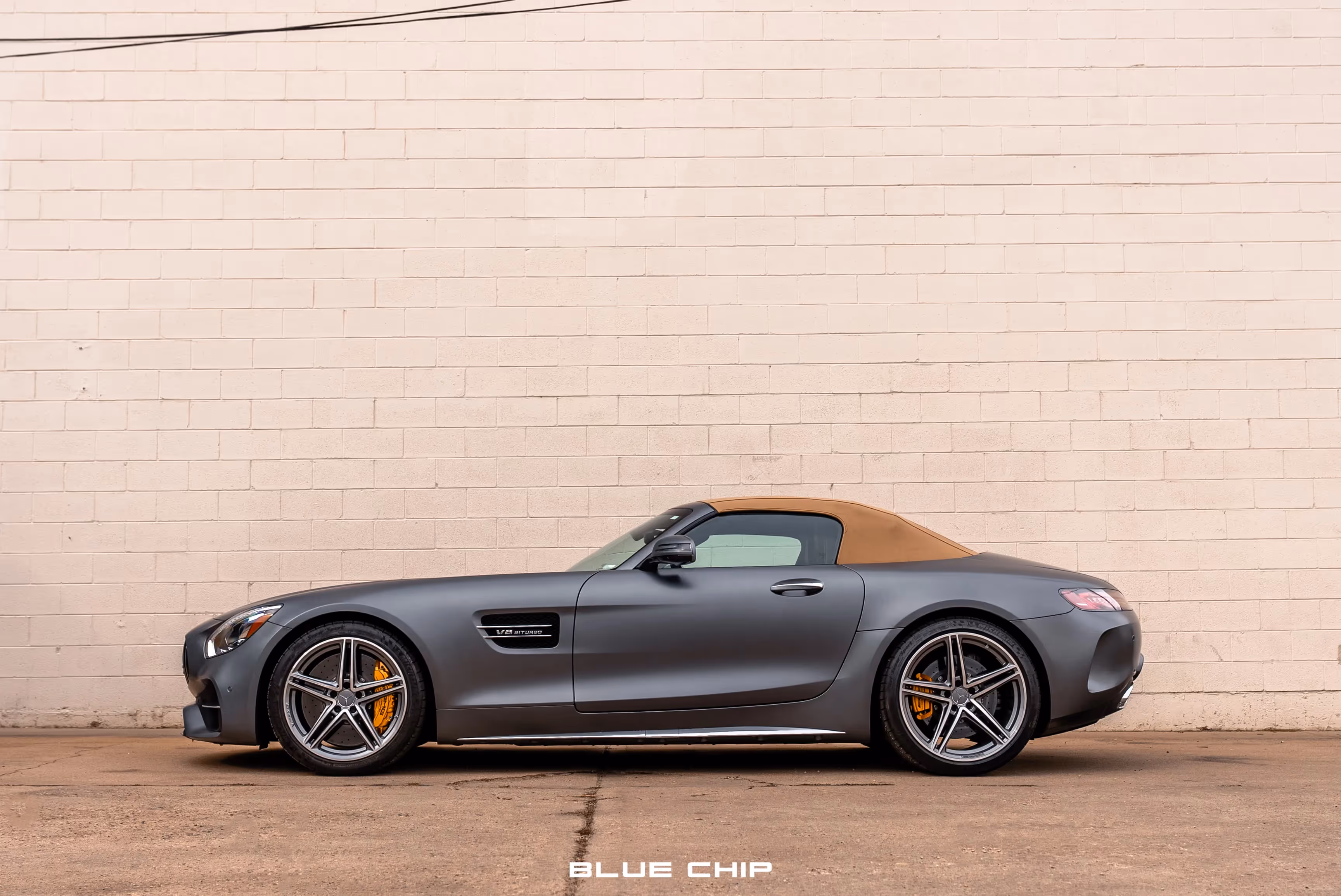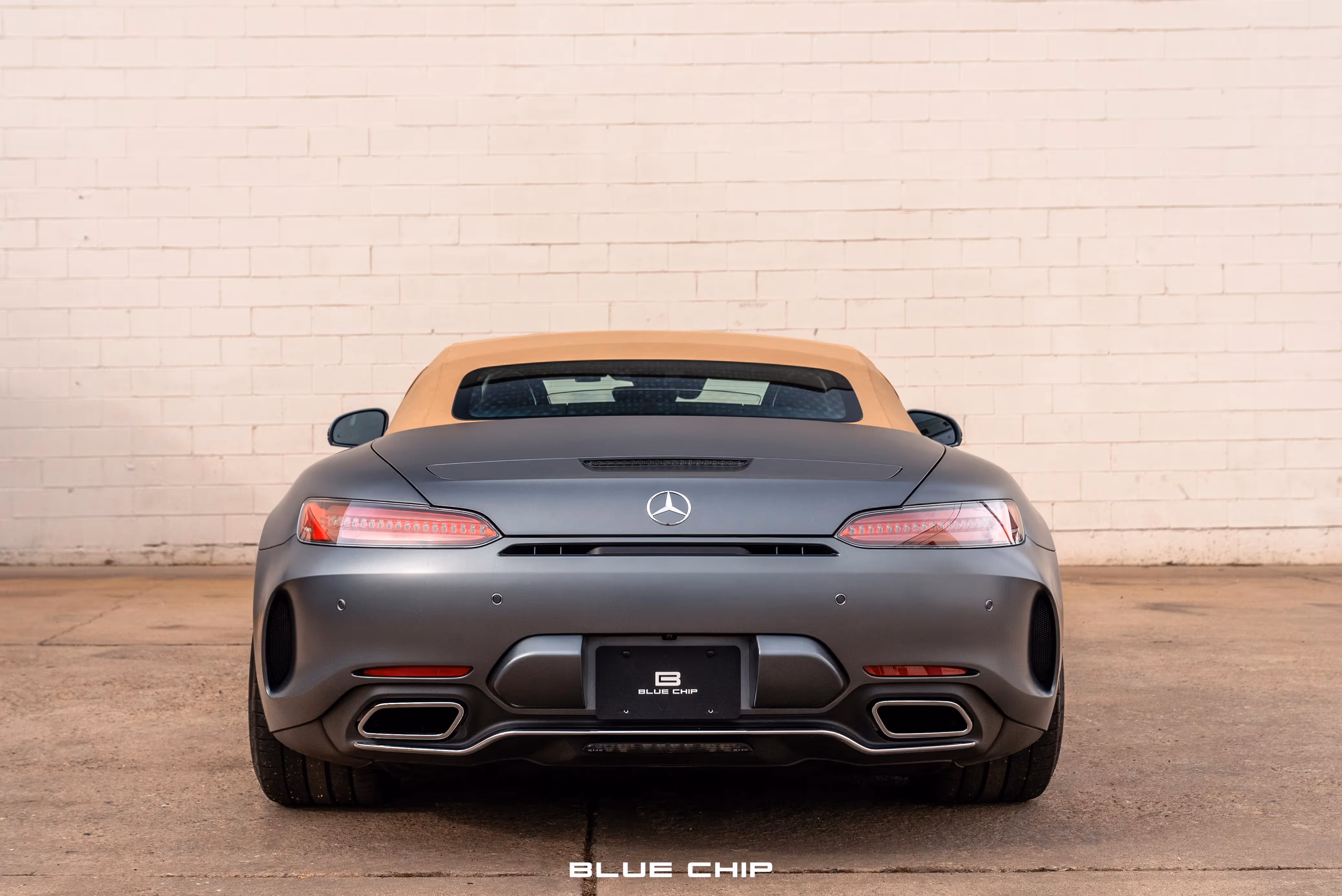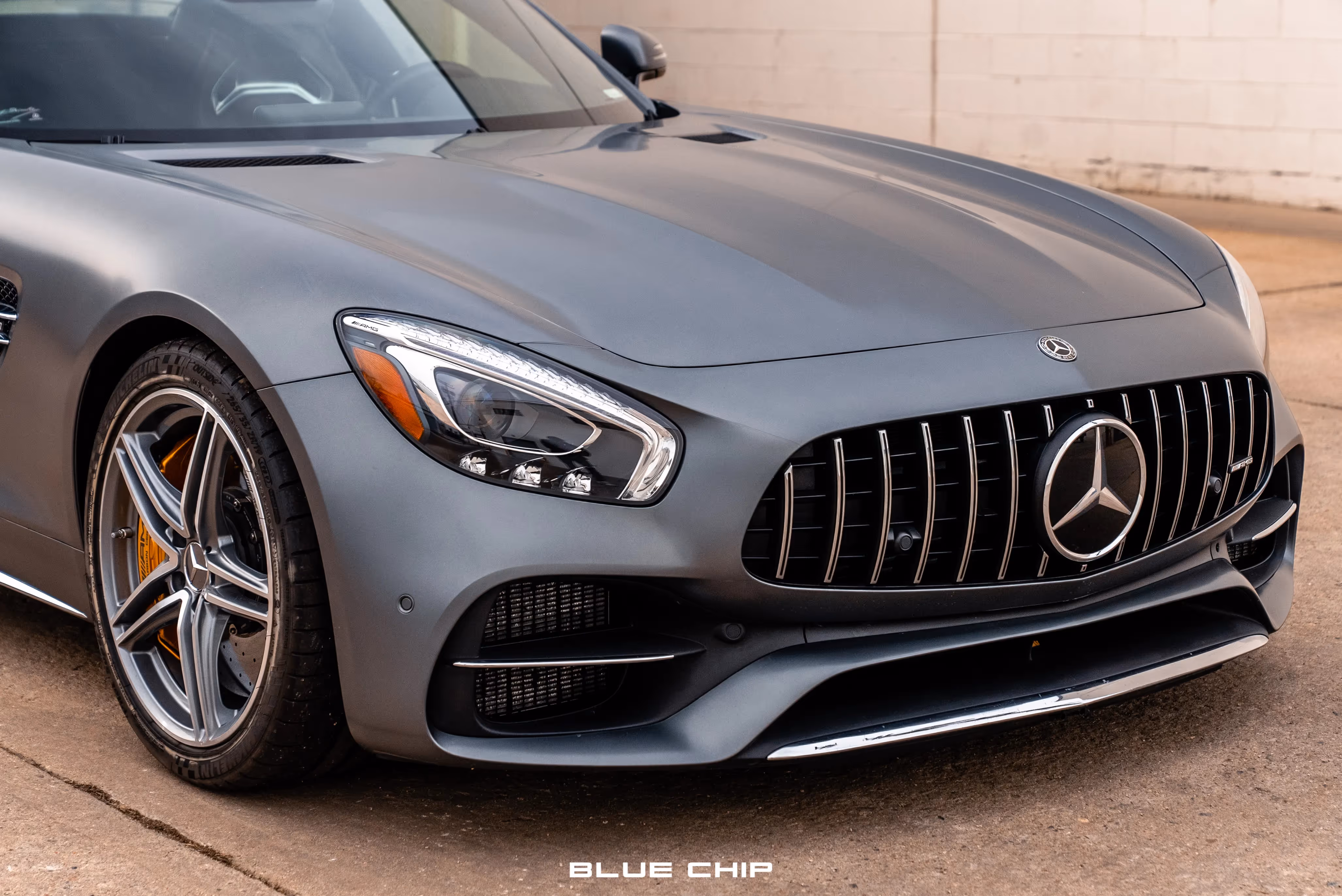Paired with an amazing performance experience, the exterior design of the car is sleek and sporty, with a long hood, low stance, and aggressive front grille. This AMG has been outfitted with a full Xpel Stealth Paint Protection wrap. Inside the cabin, the GTC Roadster offers luxurious amenities and an advanced infotainment system with a large touchscreen display with the Burmester Stereo.