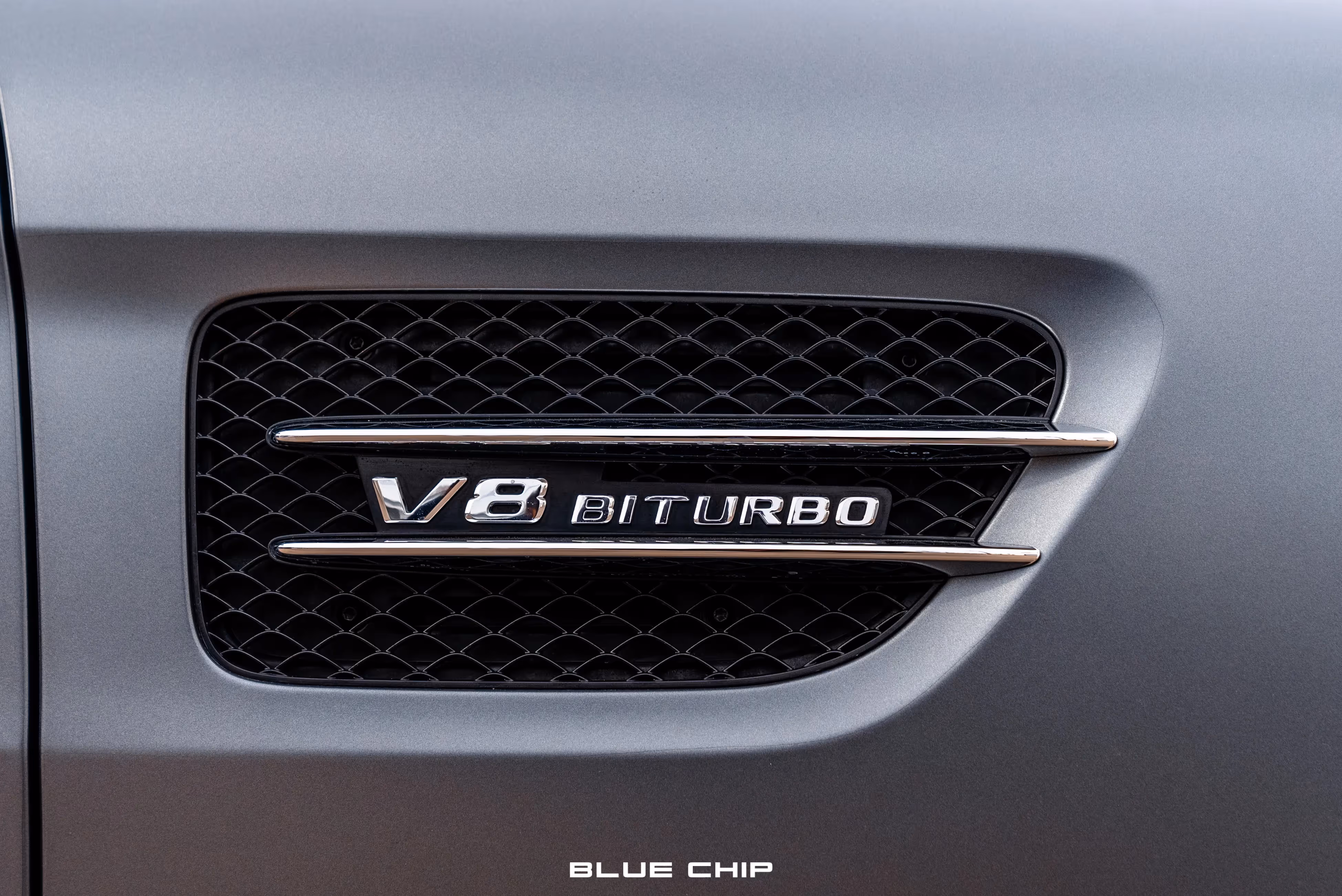 This GTC has been equipped with the RENNtech R3 Package. The R3 Performance package includes RENNtech Stage II Turbocharger Upgrade, ECU Upgrade, BOV Adaptors, and Stainless Steel Downpipes w/200 Cell Catalytic Converters. All told, RENNtech rates their R3 system at 761HP and 632 lb-ft of torque at the crank. This AMG GTC is also equipped with Carbon Ceramic Brakes.