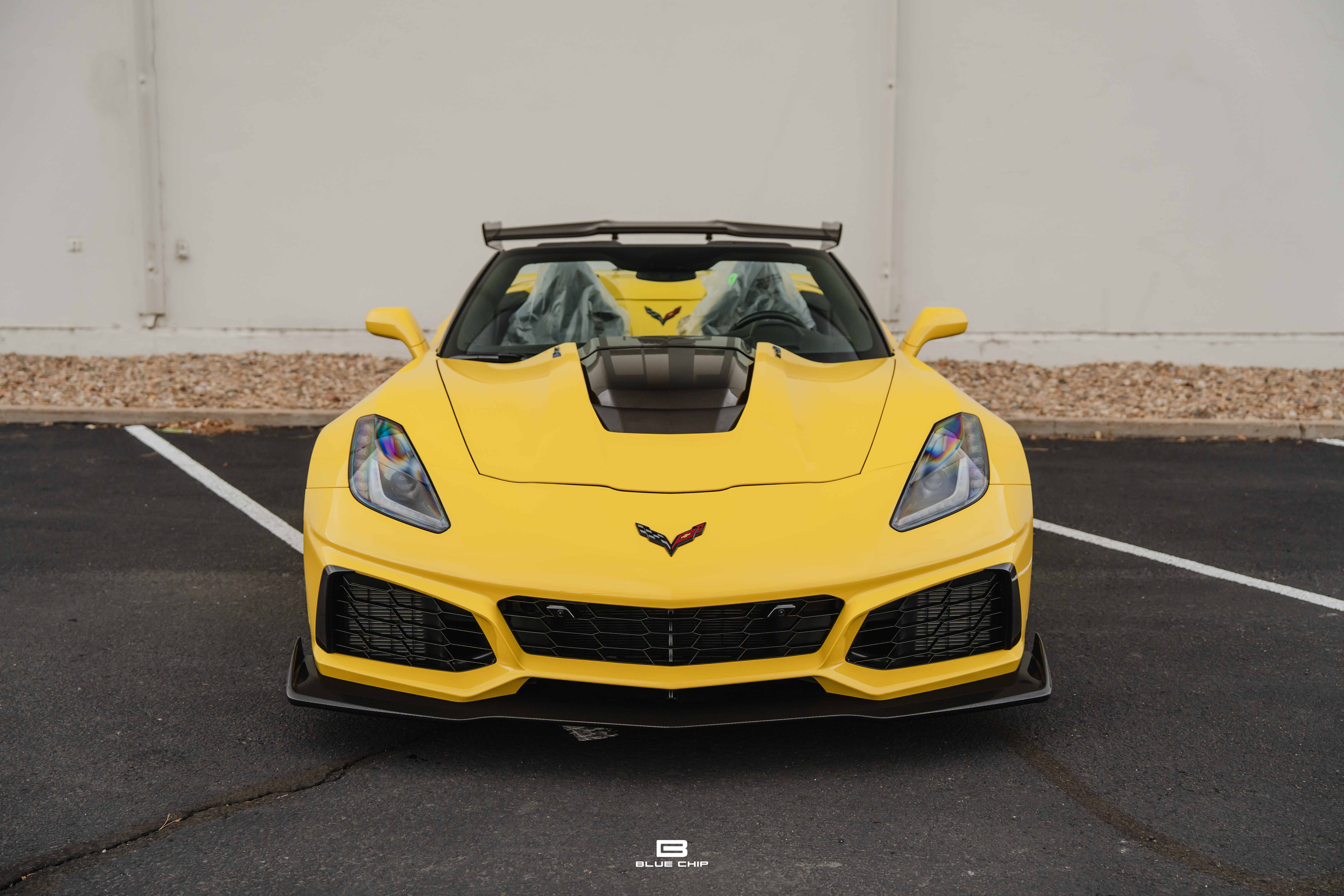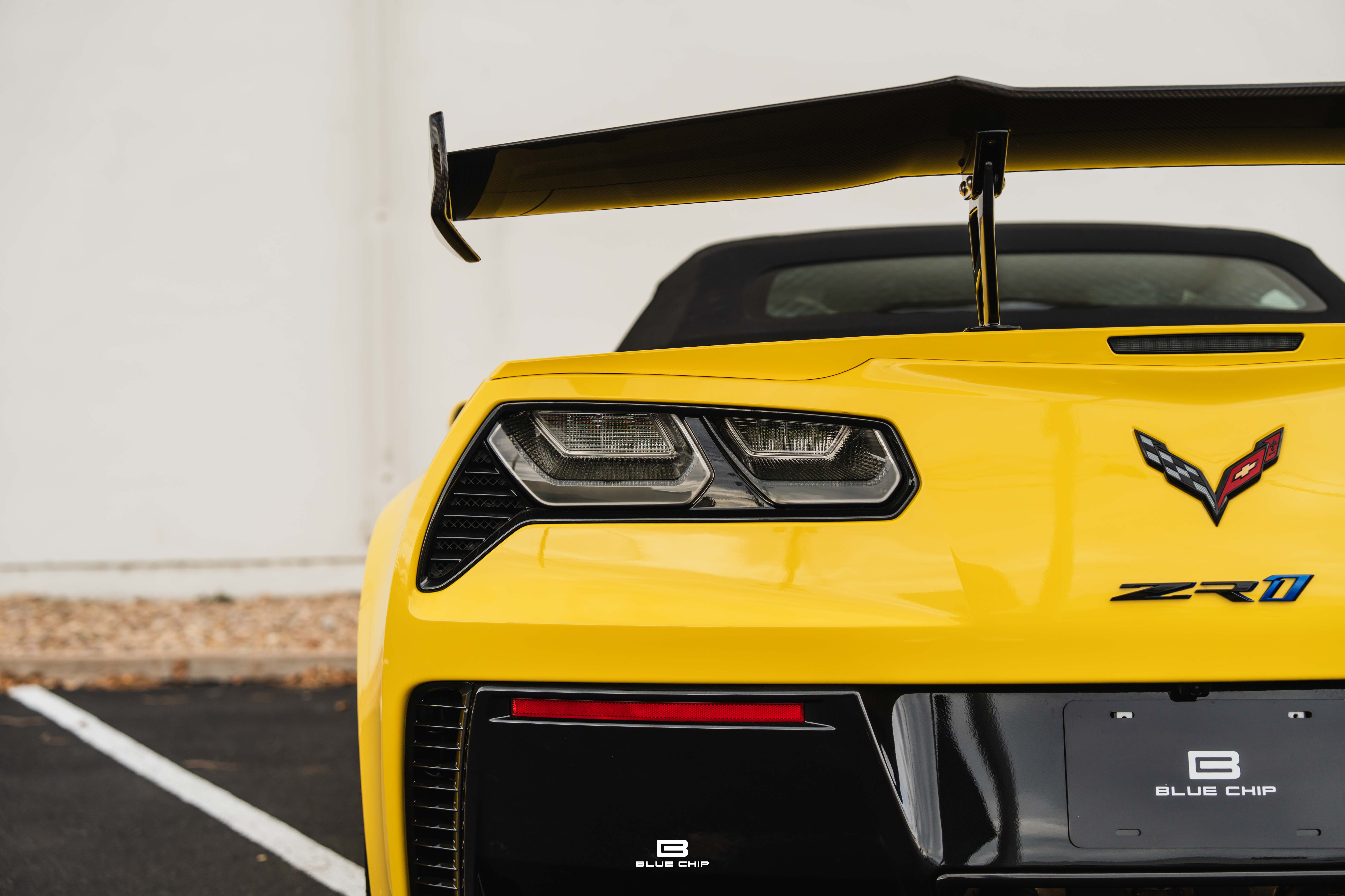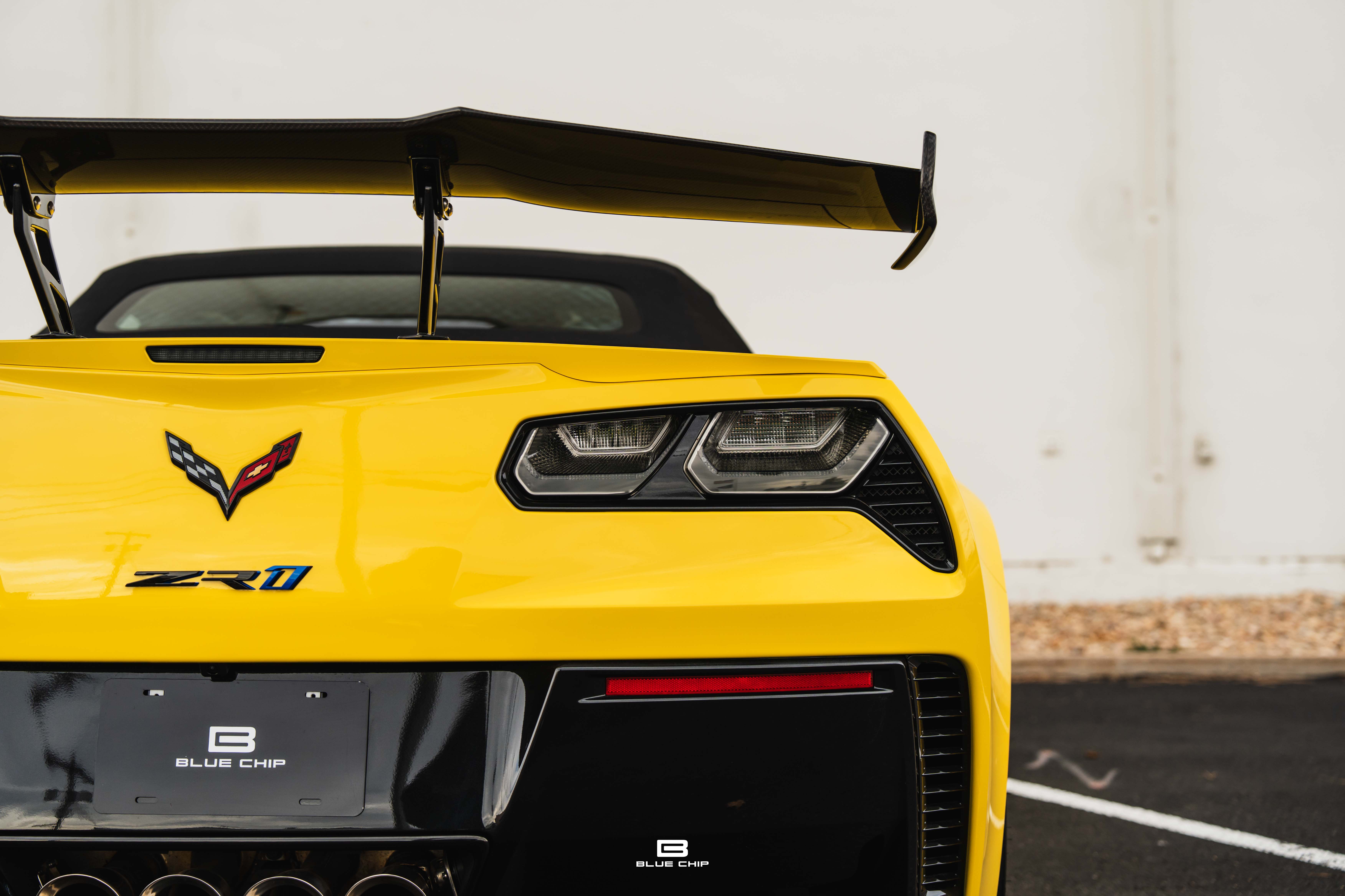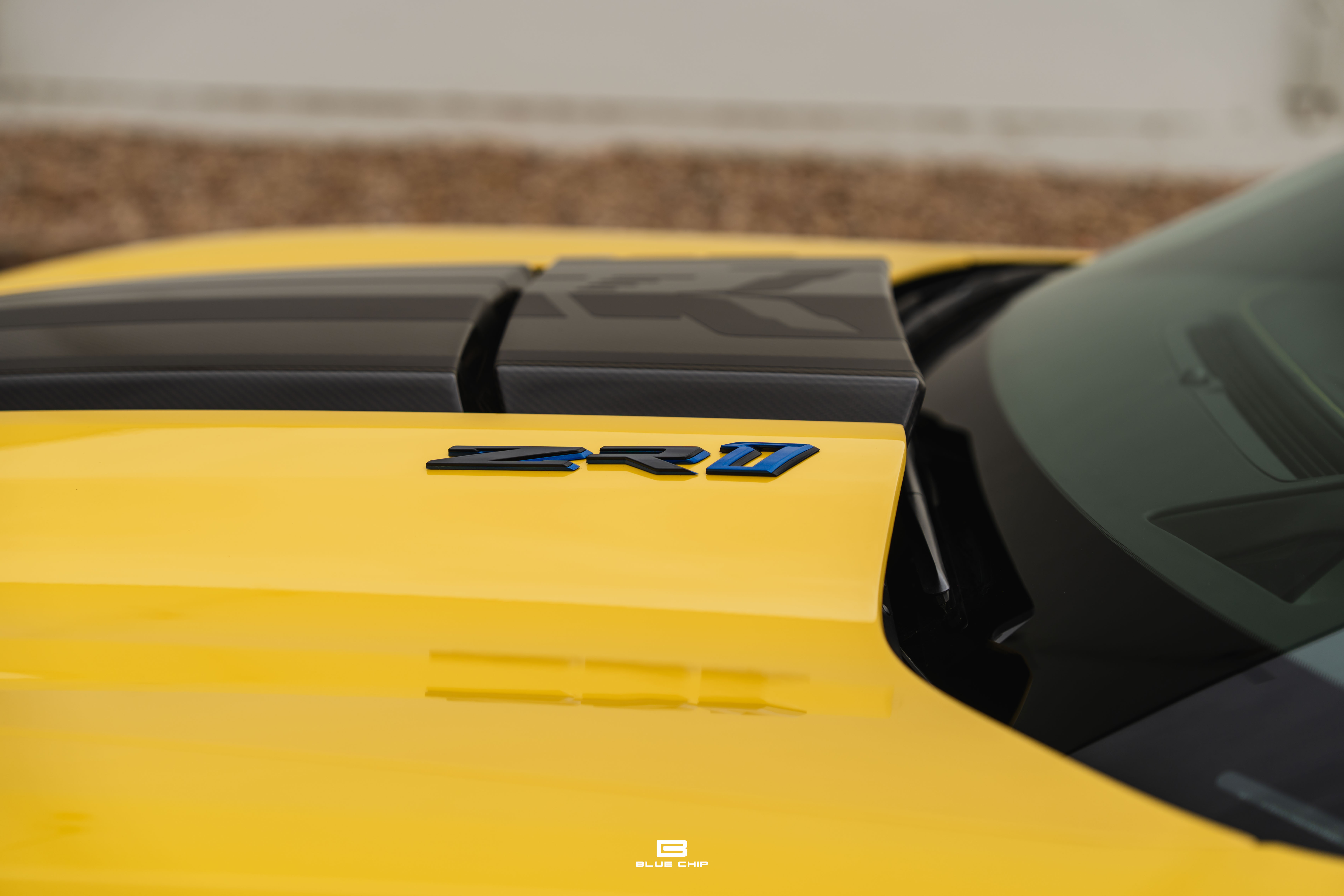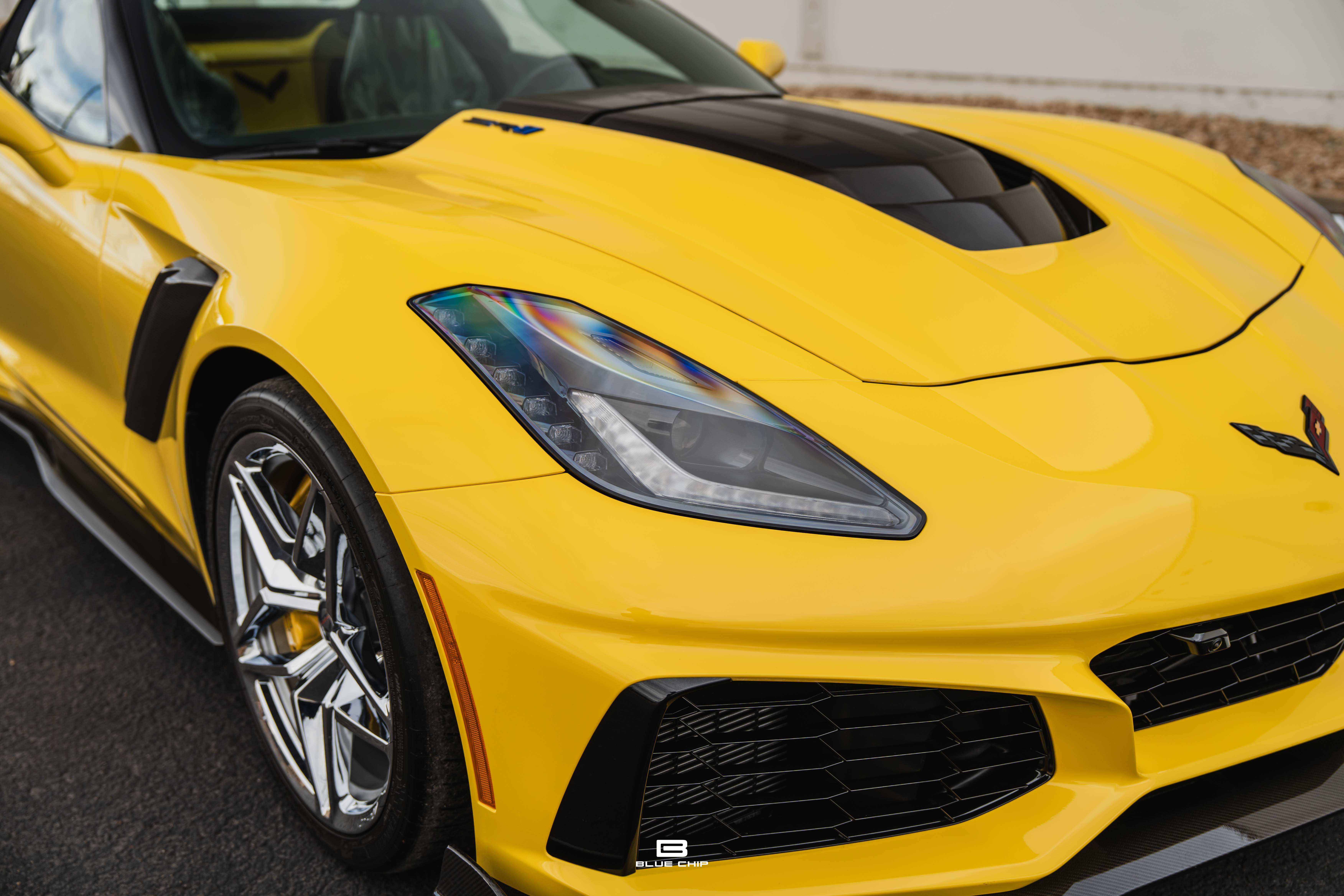 Nearly the entire exterior of the ZR1 serves an aerodynamic purpose. Its sculpted carbon-fiber front splitter, widened intakes, and towering rear wing bear direct lineage to the brand’s GT-class race cars; together, they generate extraordinary downforce and stability at speed. Finished in bright, motorsport-inspired Yellow over a Black interior, this example captures the ZR1’s identity as both a technological flagship and an unapologetic performance machine.