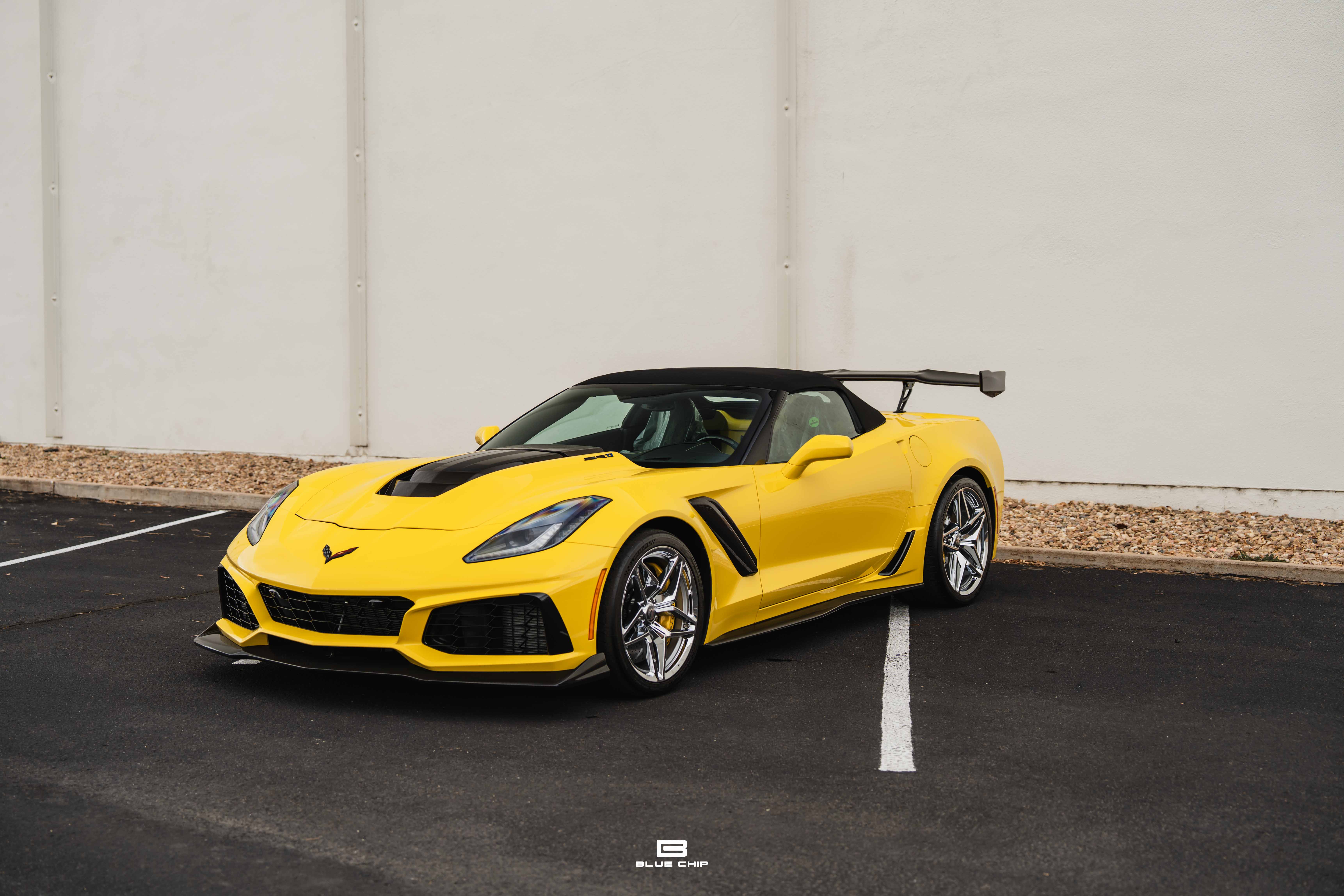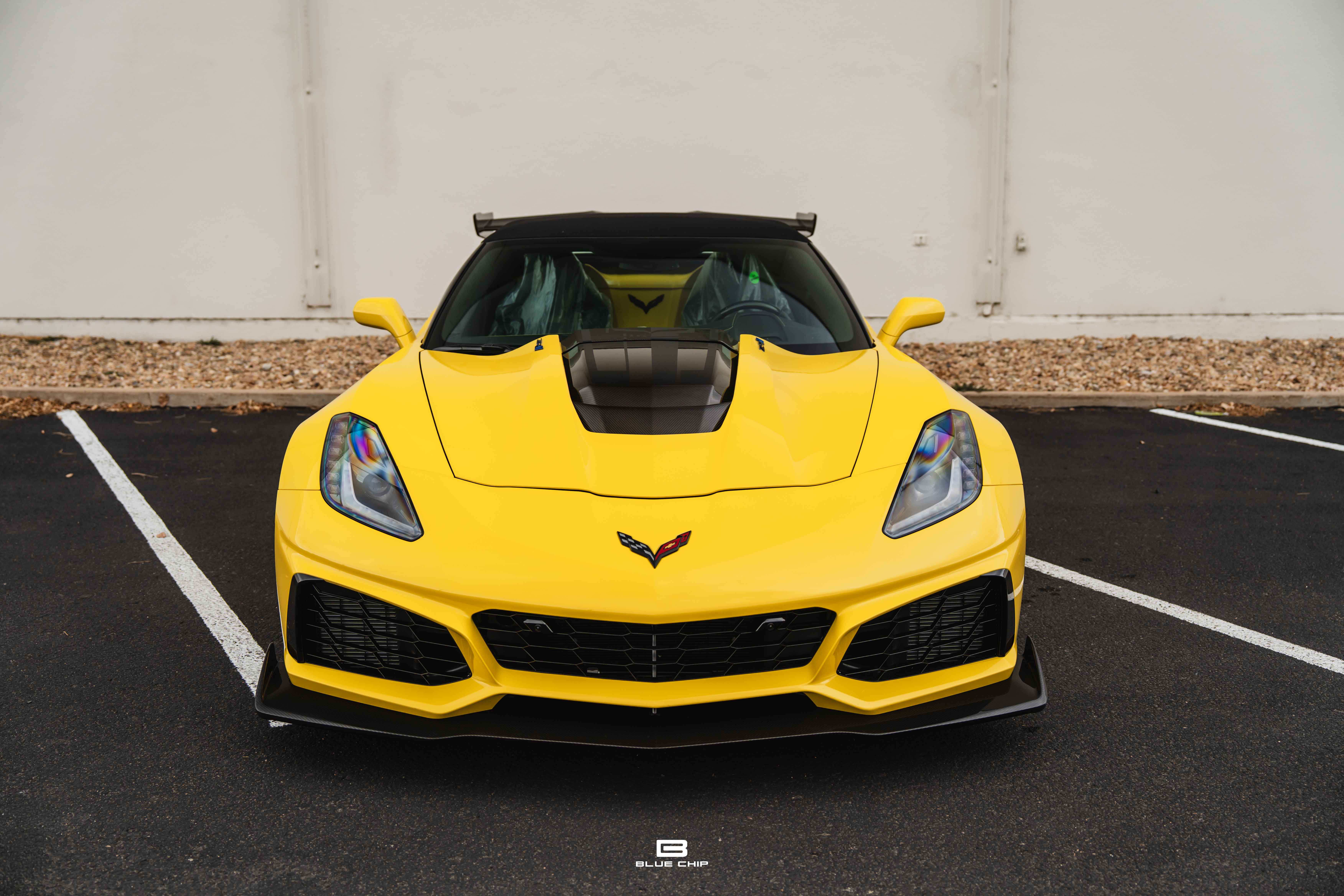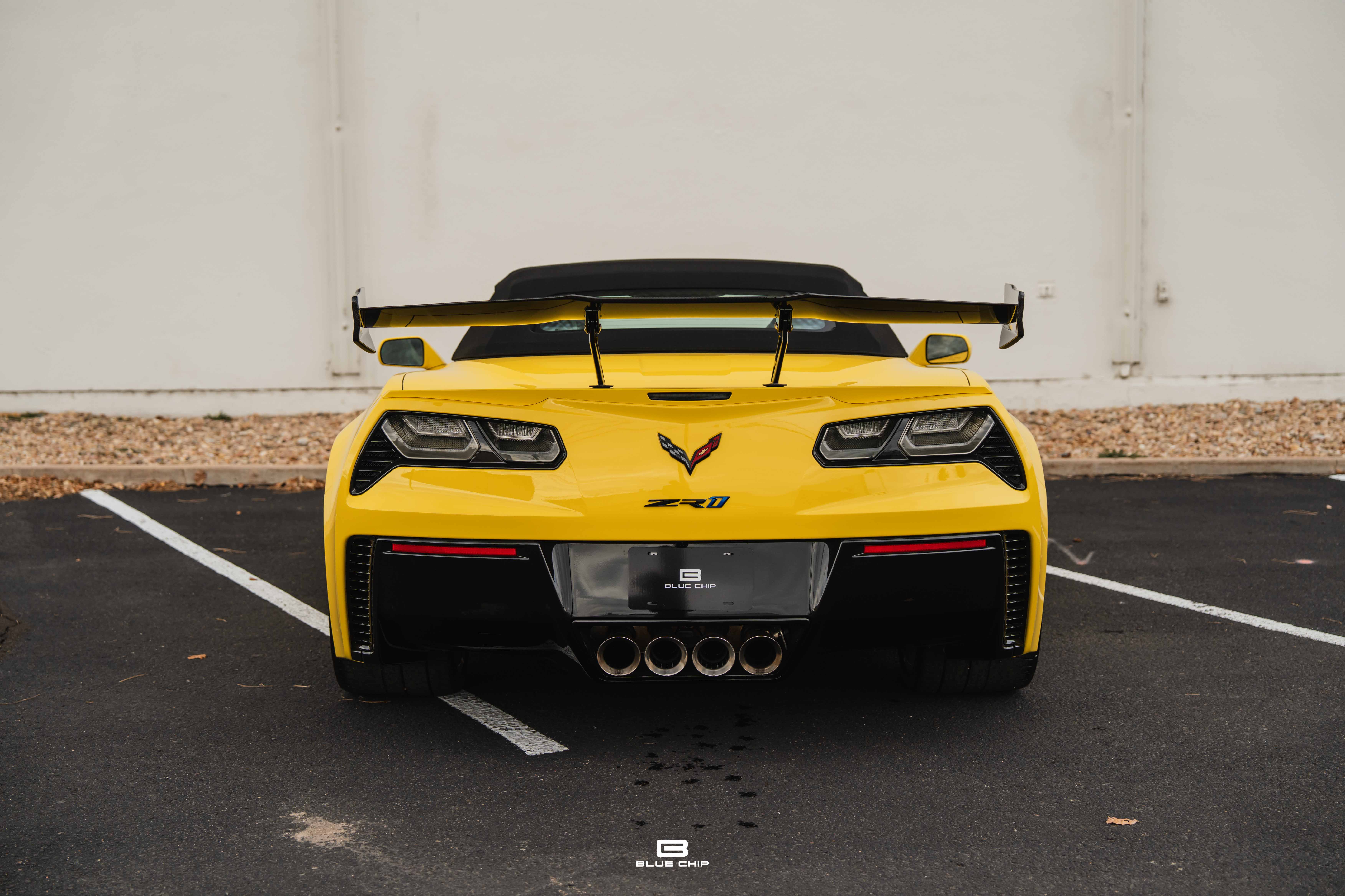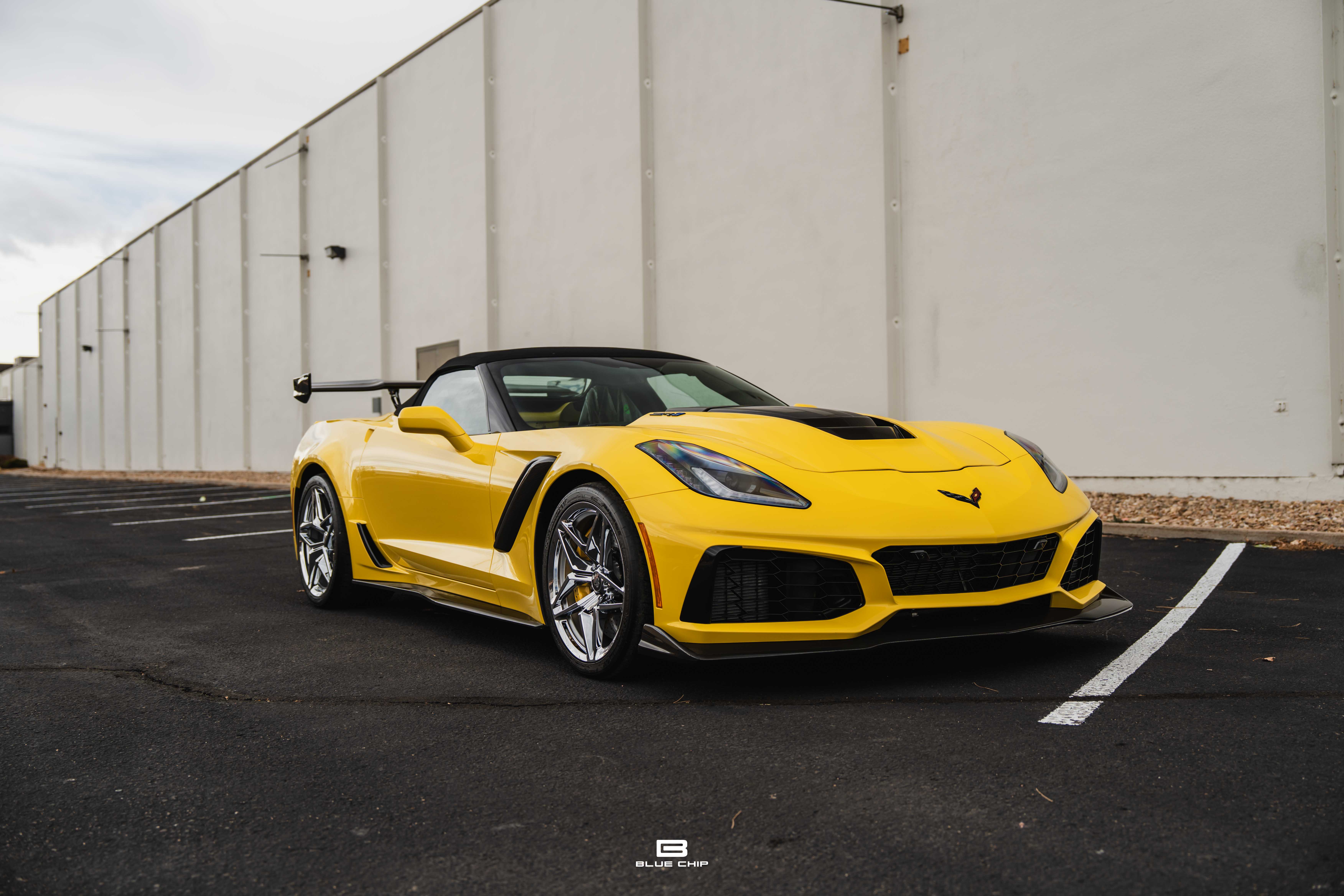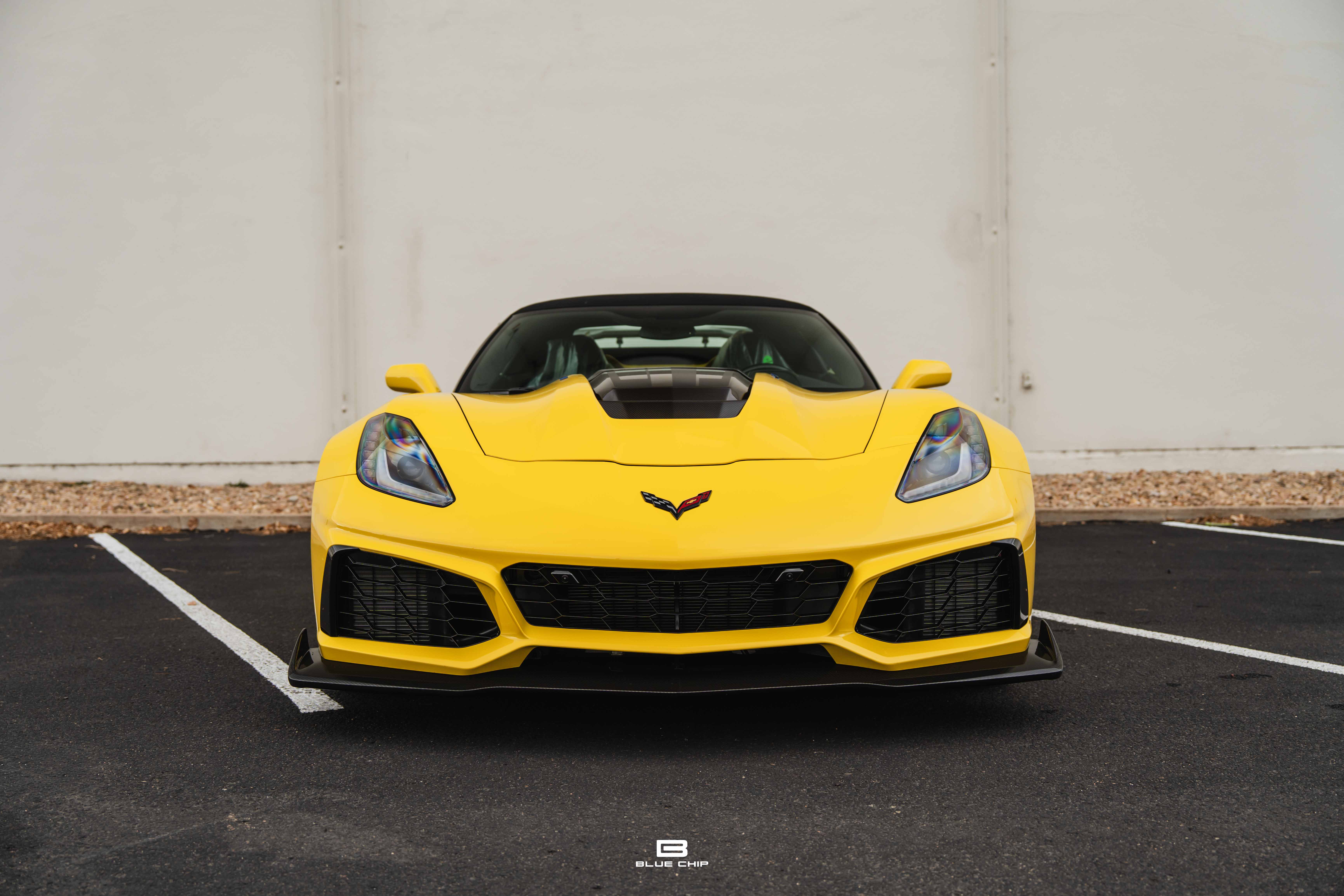 Nearly the entire exterior of the ZR1 serves an aerodynamic purpose. Its sculpted carbon-fiber front splitter, widened intakes, and towering rear wing bear direct lineage to the brand’s GT-class race cars; together, they generate extraordinary downforce and stability at speed. Finished in bright, motorsport-inspired Yellow over a Black interior, this example captures the ZR1’s identity as both a technological flagship and an unapologetic performance machine.