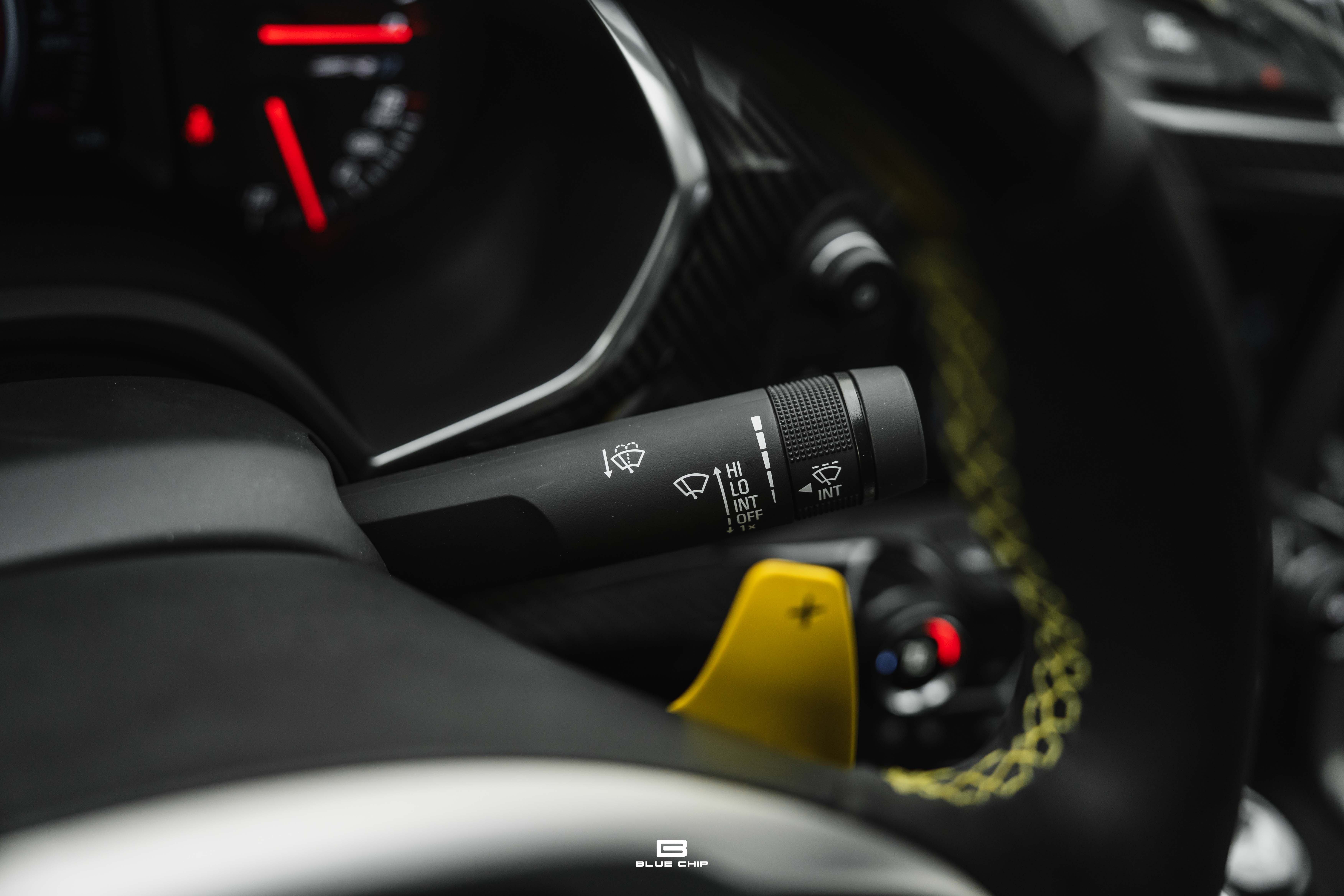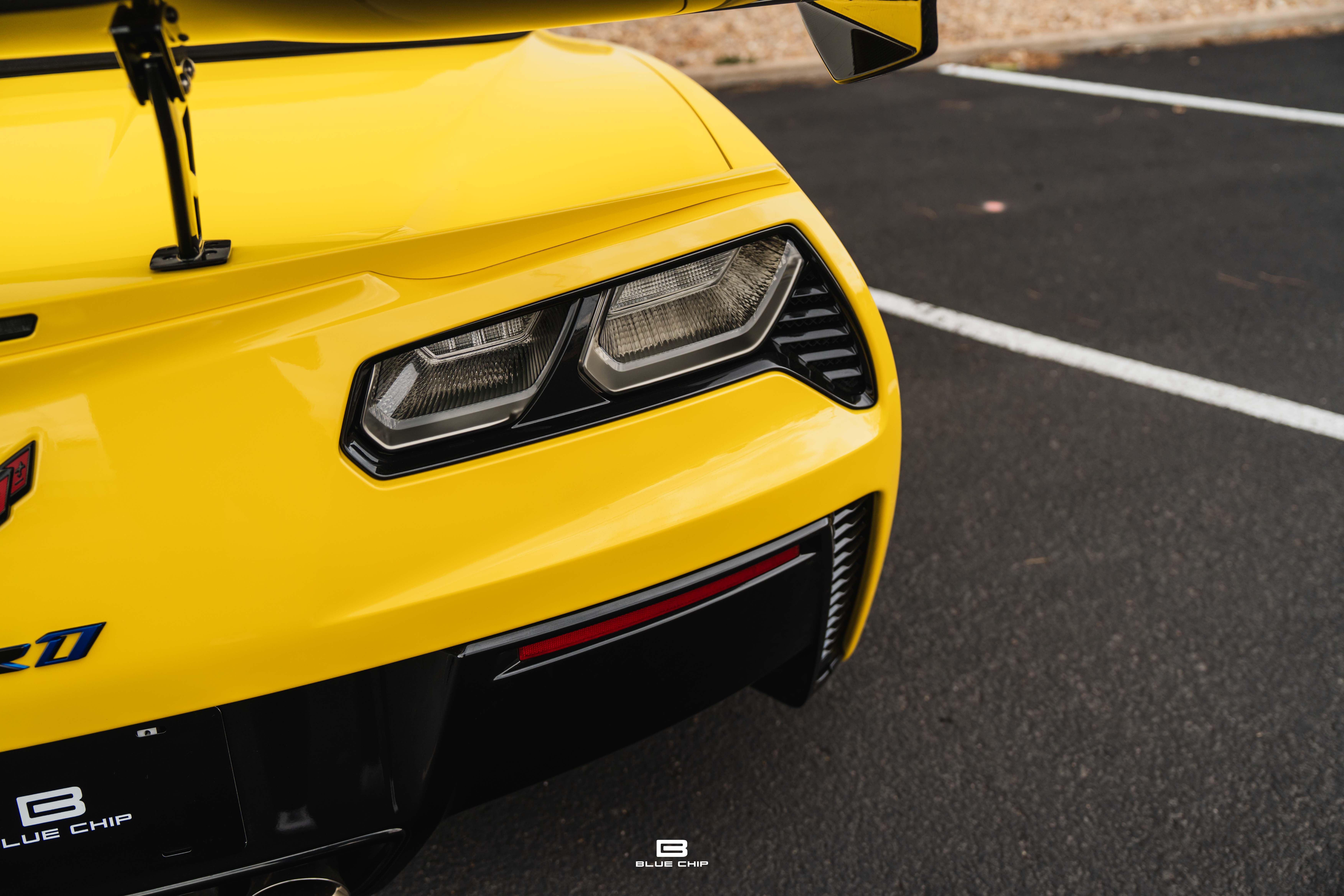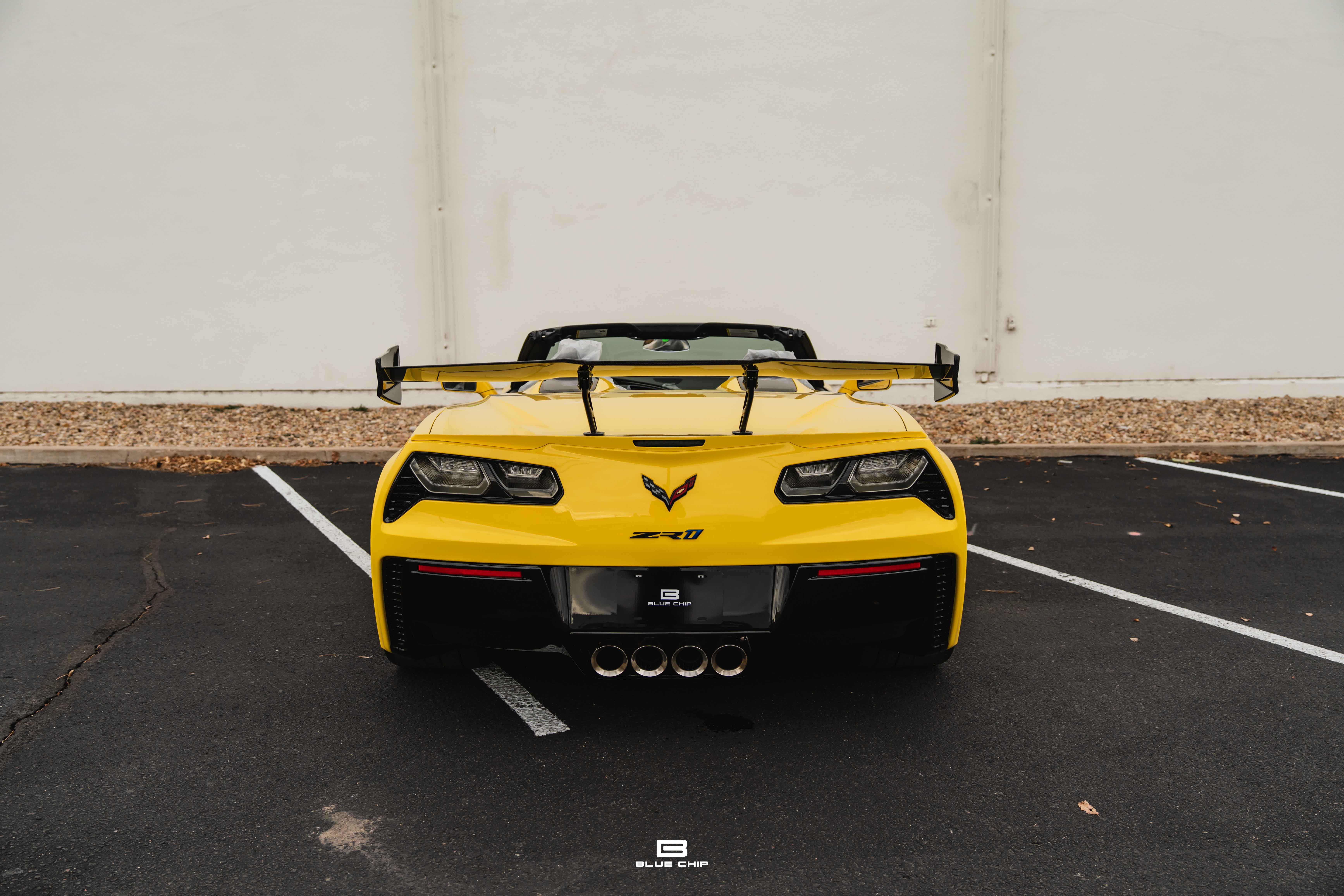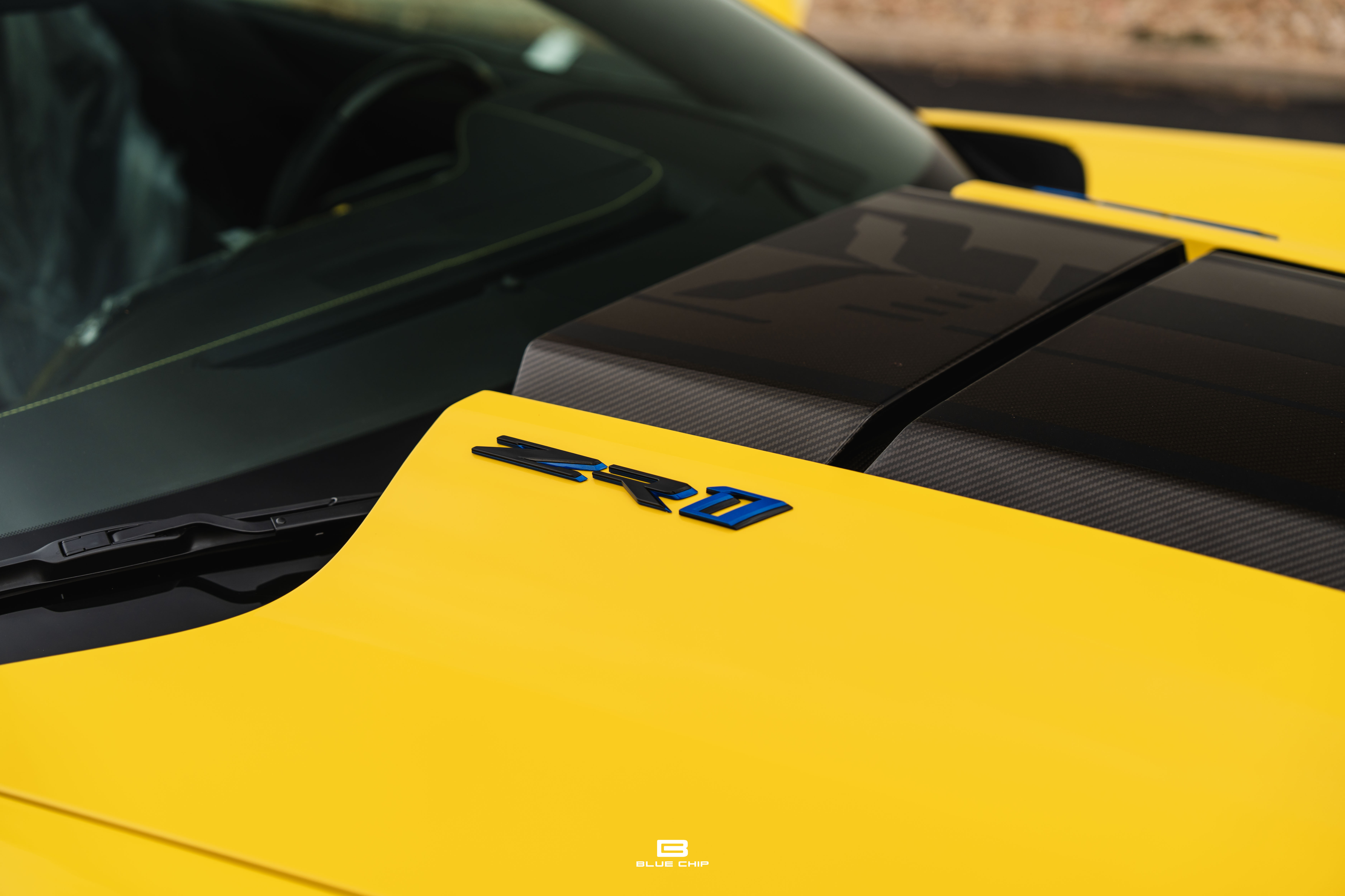 Nearly the entire exterior of the ZR1 serves an aerodynamic purpose. Its sculpted carbon-fiber front splitter, widened intakes, and towering rear wing bear direct lineage to the brand’s GT-class race cars; together, they generate extraordinary downforce and stability at speed. Finished in bright, motorsport-inspired Yellow over a Black interior, this example captures the ZR1’s identity as both a technological flagship and an unapologetic performance machine.