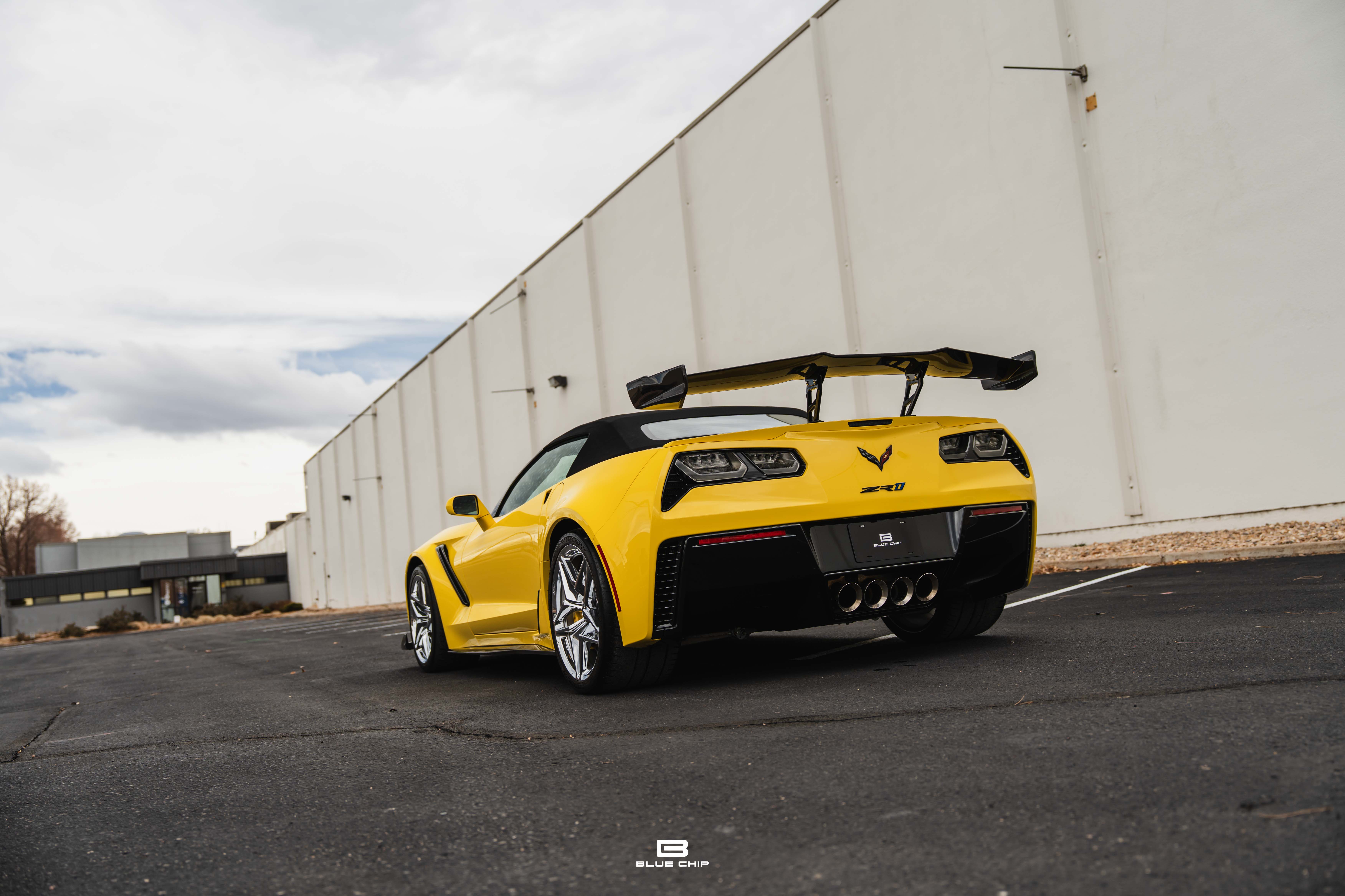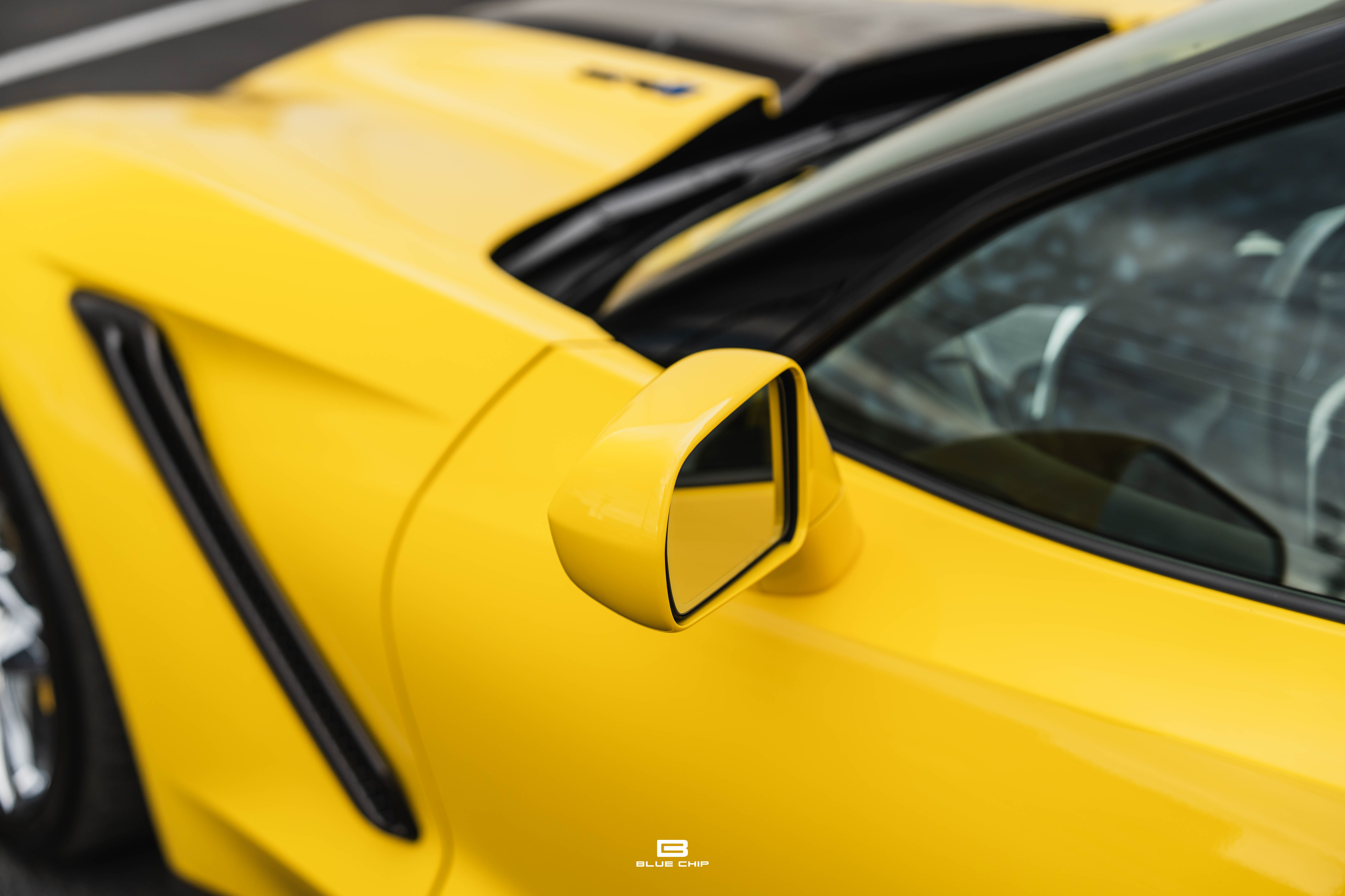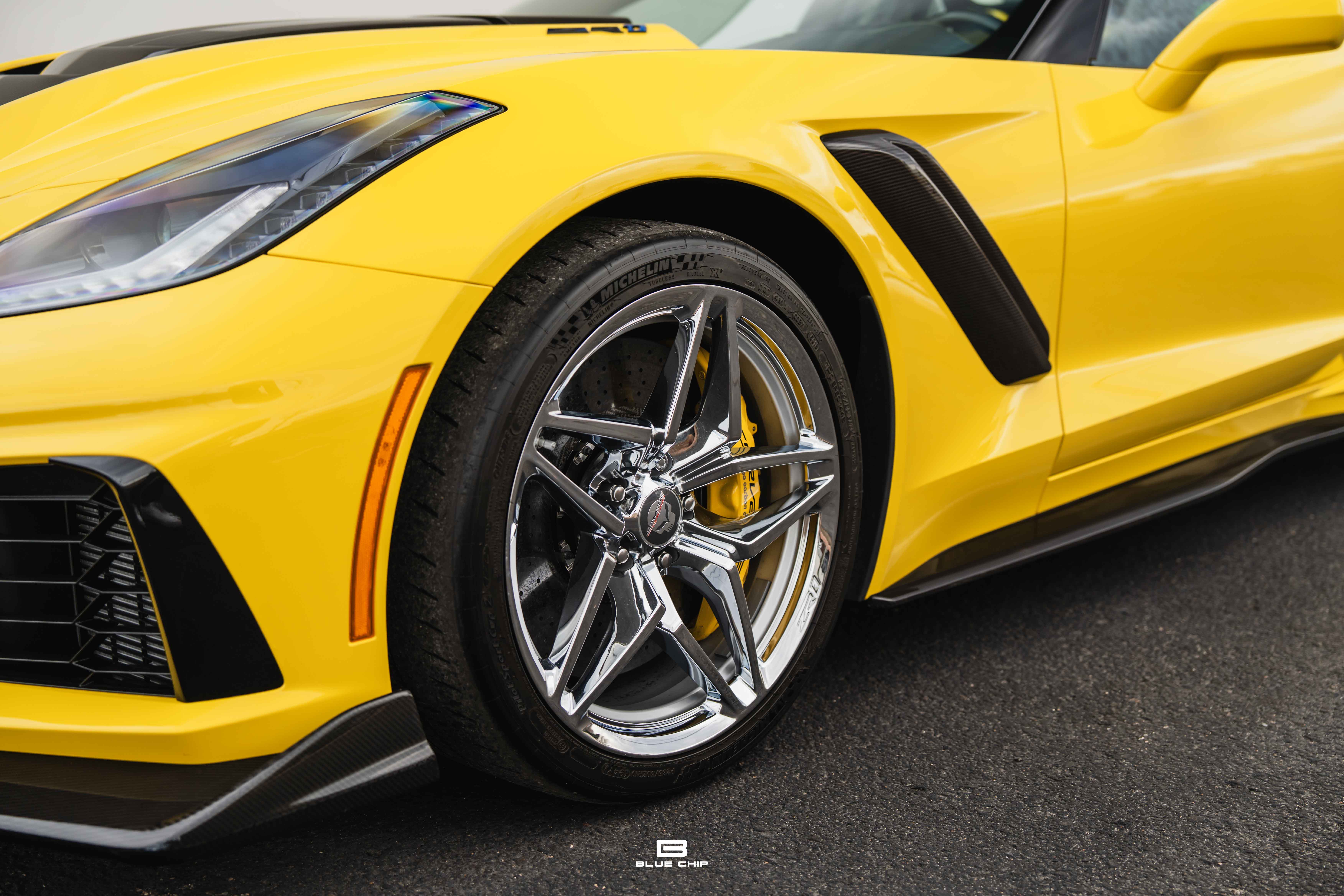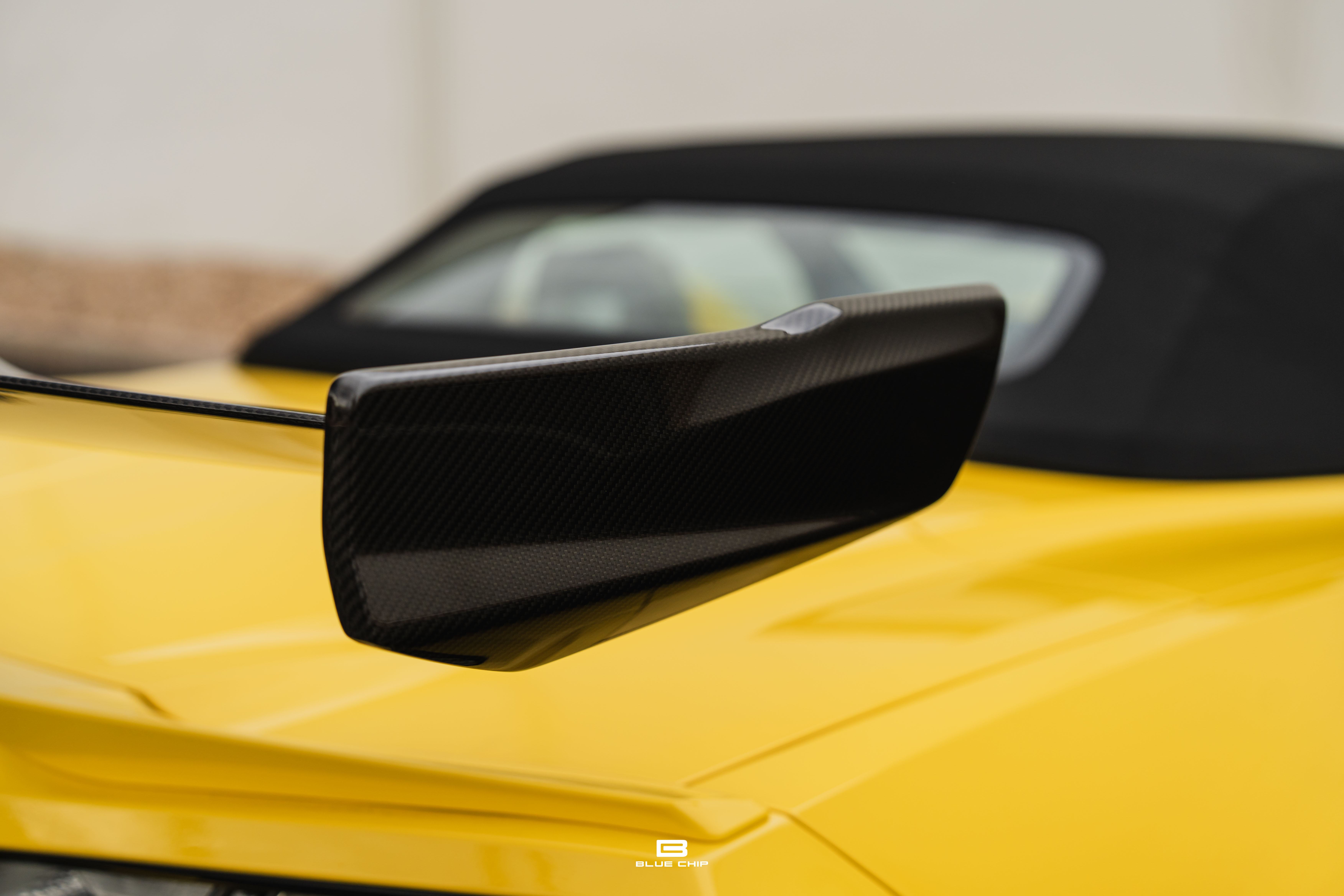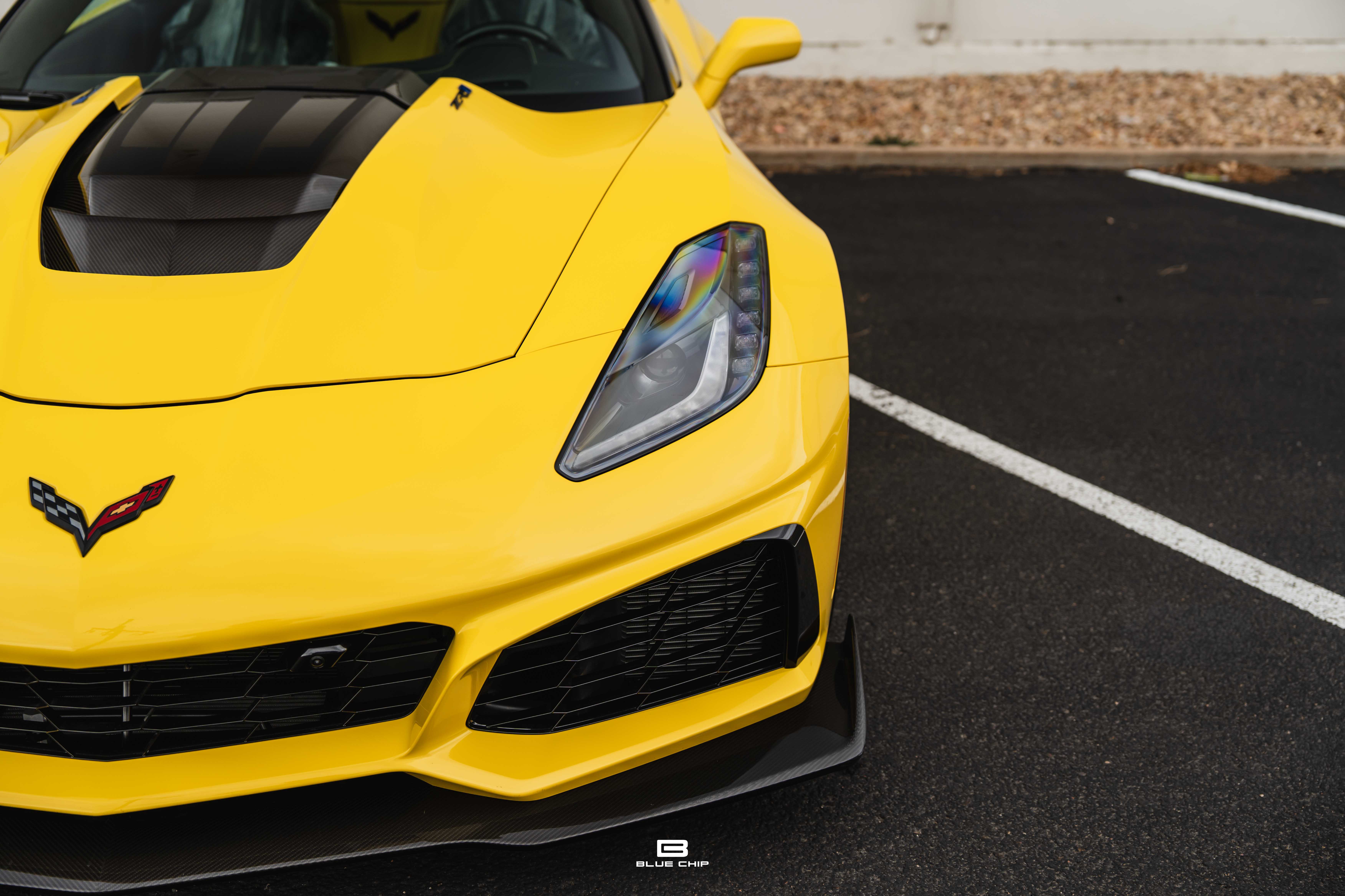 Nearly the entire exterior of the ZR1 serves an aerodynamic purpose. Its sculpted carbon-fiber front splitter, widened intakes, and towering rear wing bear direct lineage to the brand’s GT-class race cars; together, they generate extraordinary downforce and stability at speed. Finished in bright, motorsport-inspired Yellow over a Black interior, this example captures the ZR1’s identity as both a technological flagship and an unapologetic performance machine.