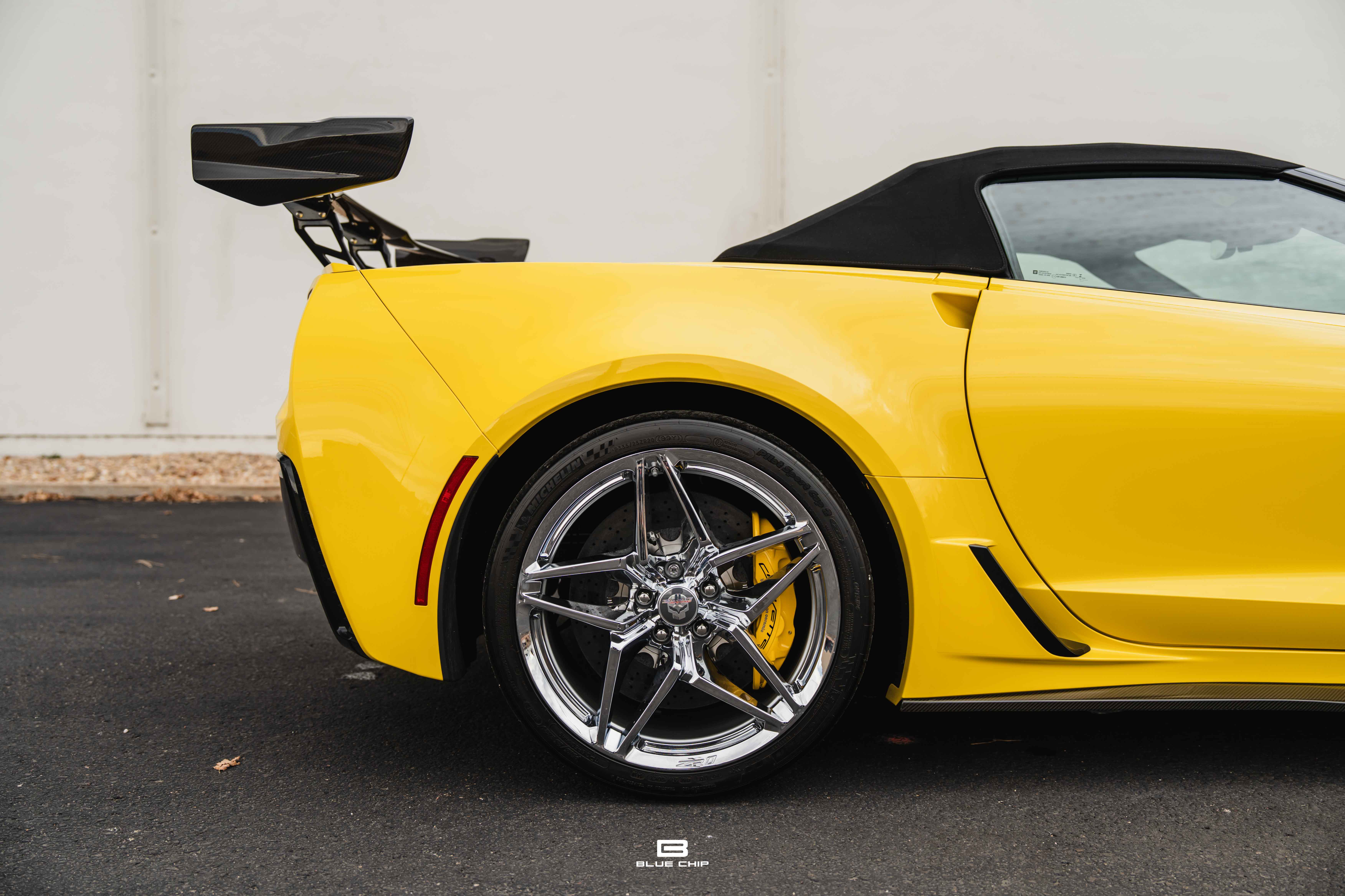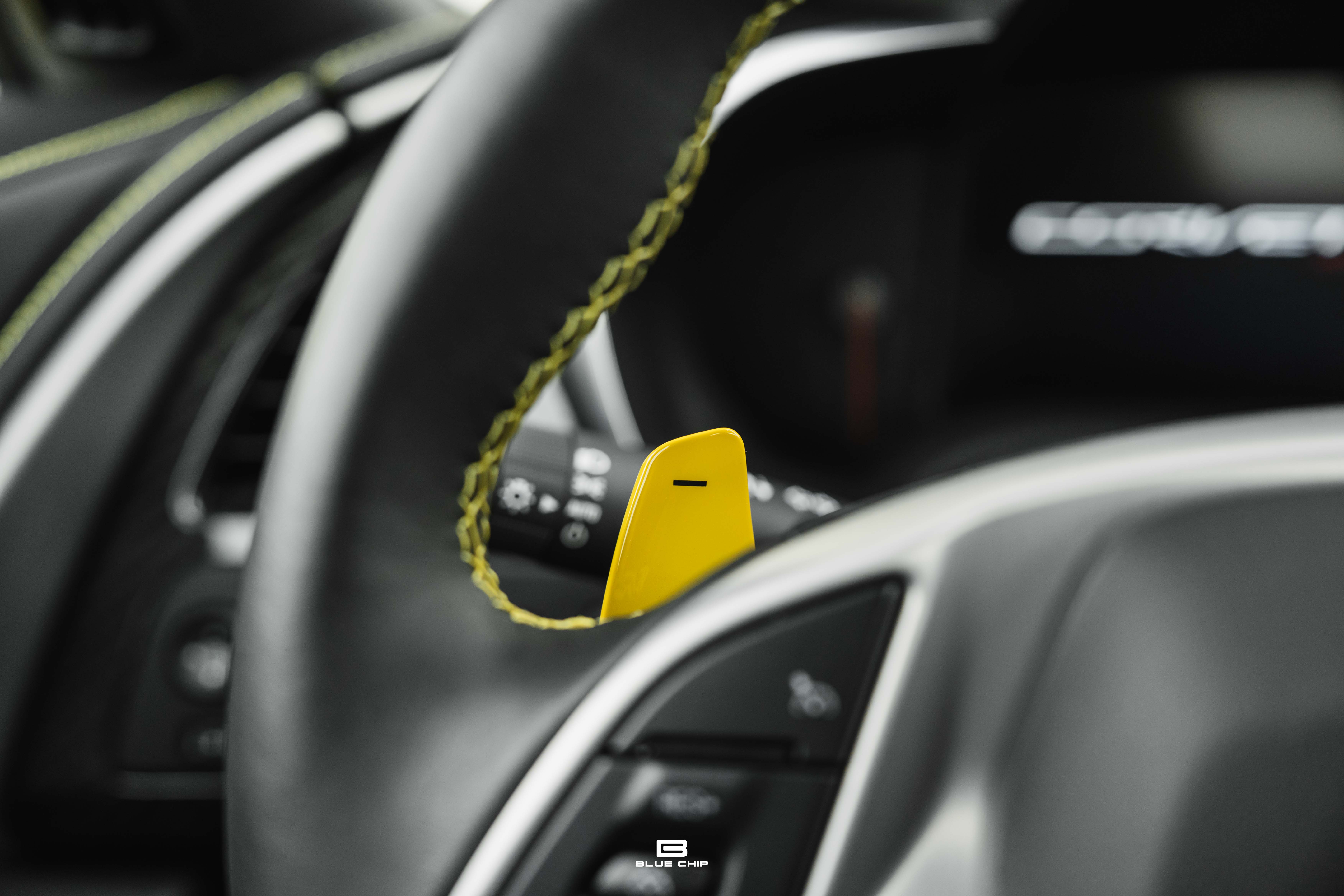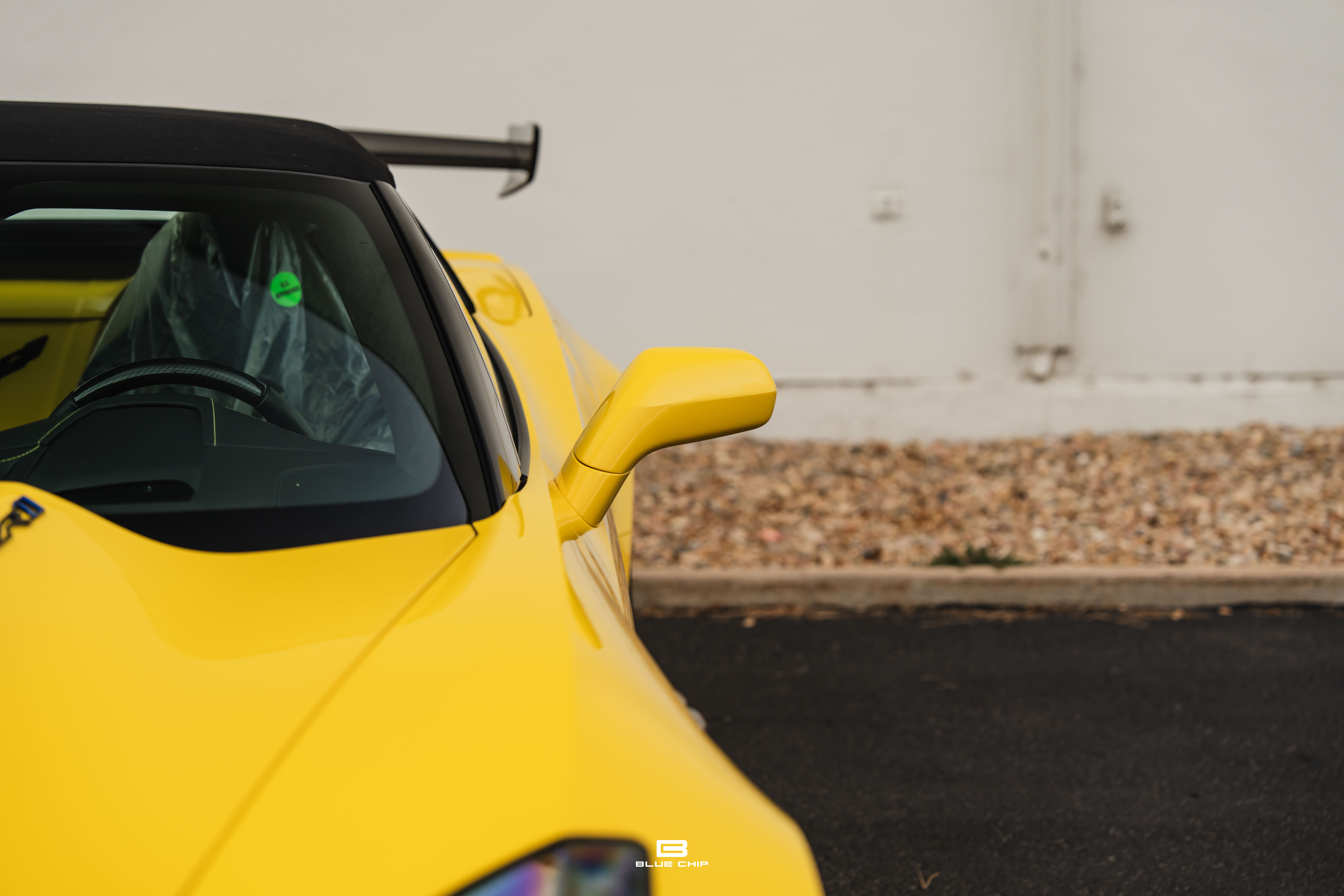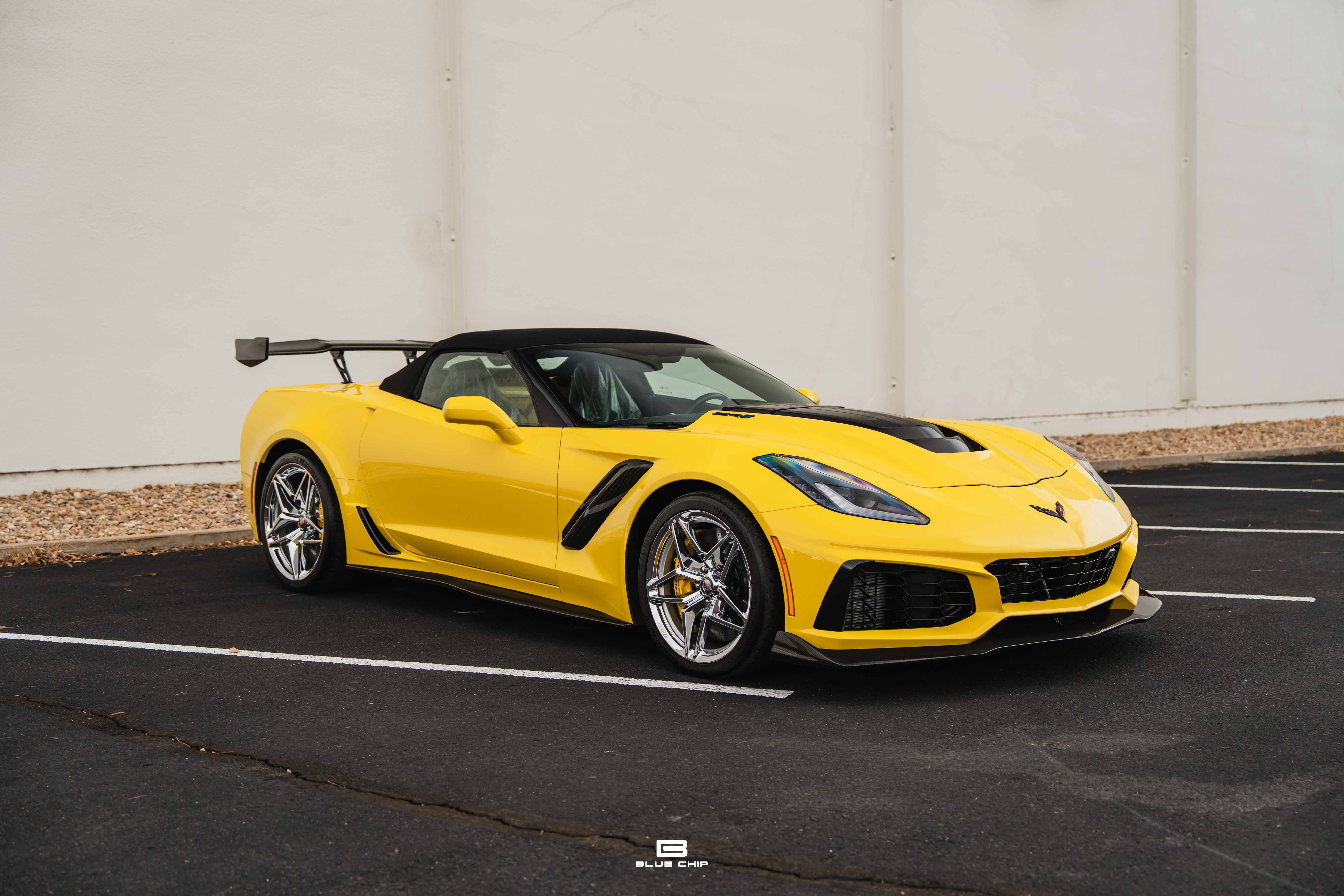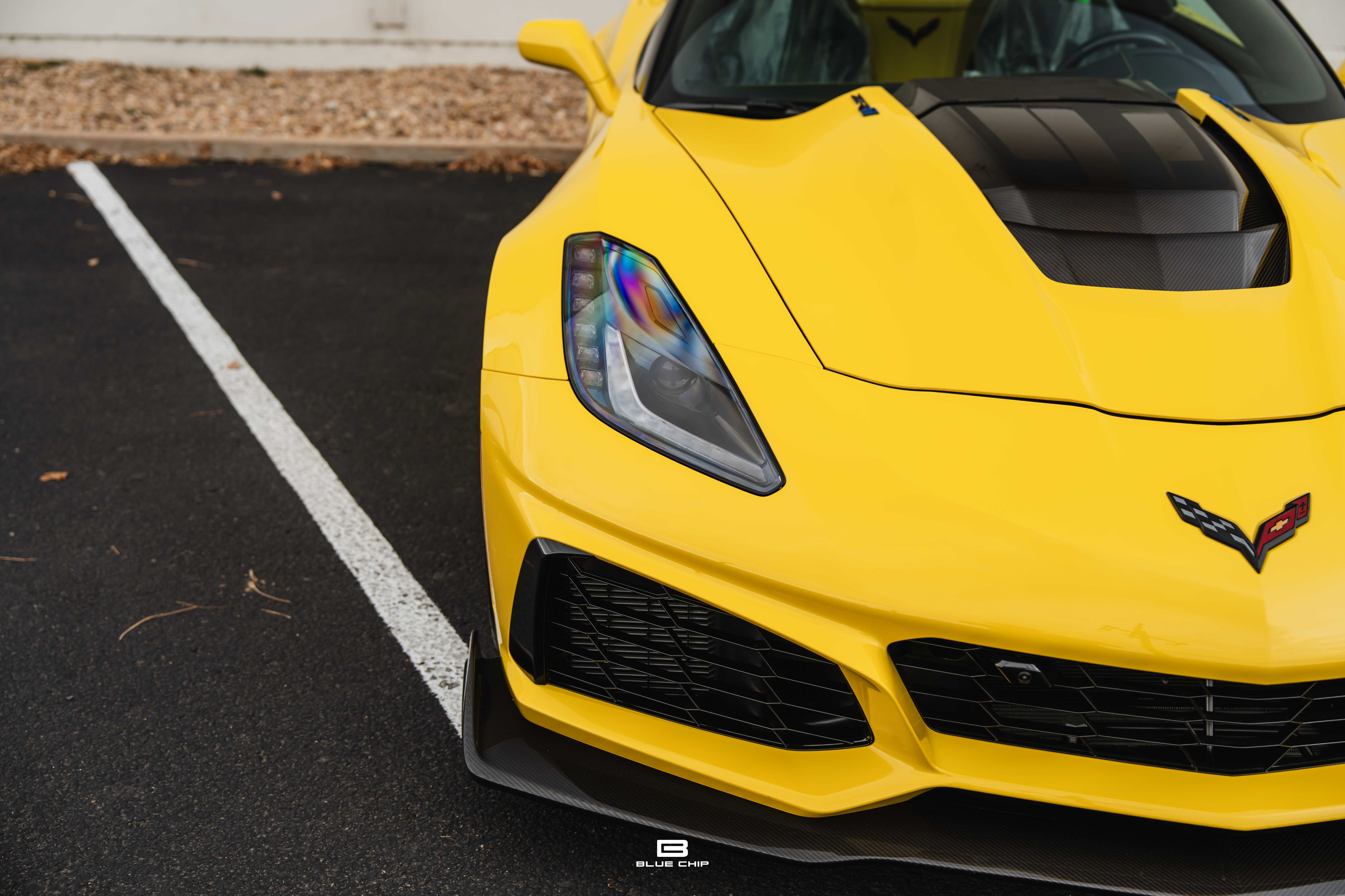 Nearly the entire exterior of the ZR1 serves an aerodynamic purpose. Its sculpted carbon-fiber front splitter, widened intakes, and towering rear wing bear direct lineage to the brand’s GT-class race cars; together, they generate extraordinary downforce and stability at speed. Finished in bright, motorsport-inspired Yellow over a Black interior, this example captures the ZR1’s identity as both a technological flagship and an unapologetic performance machine.