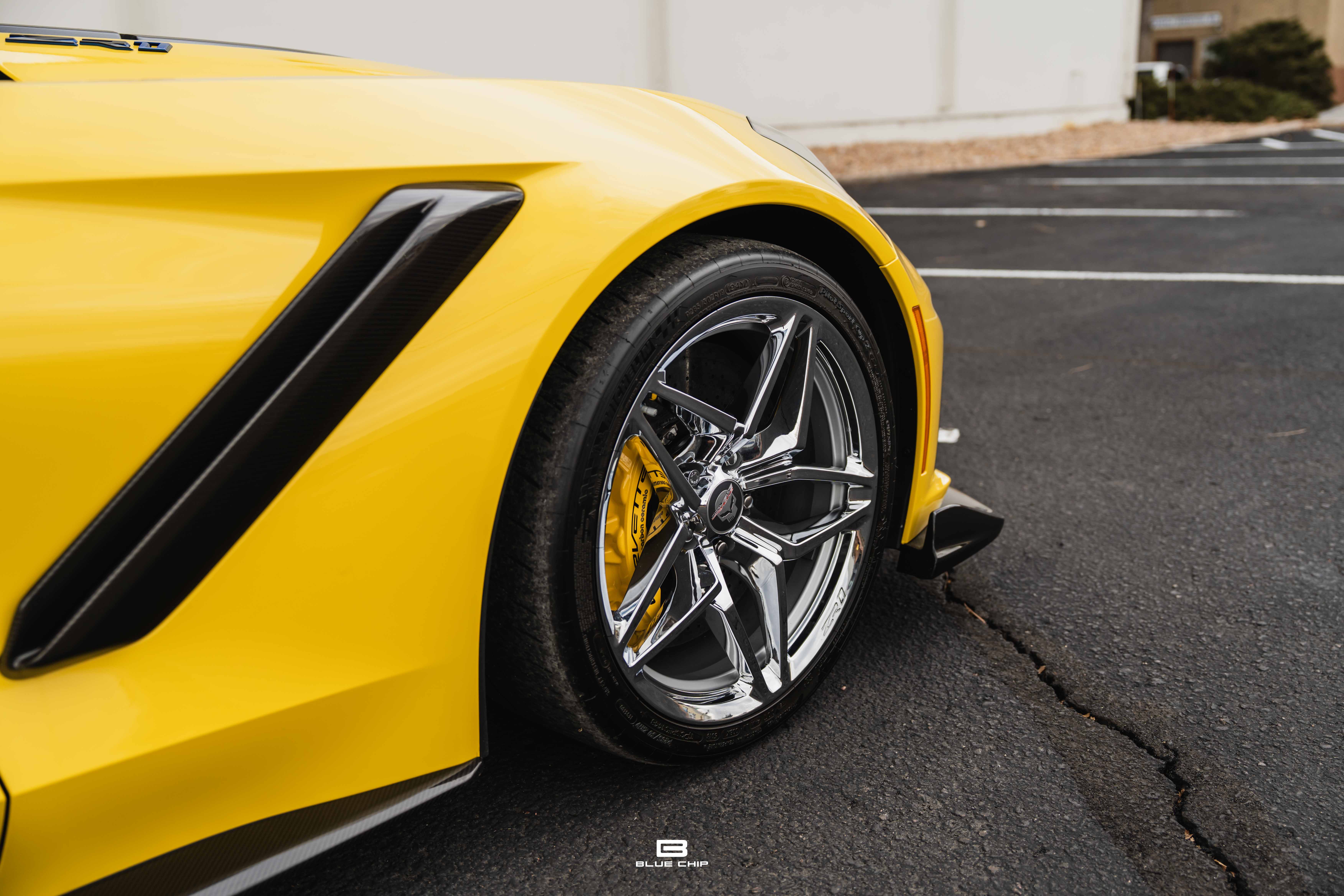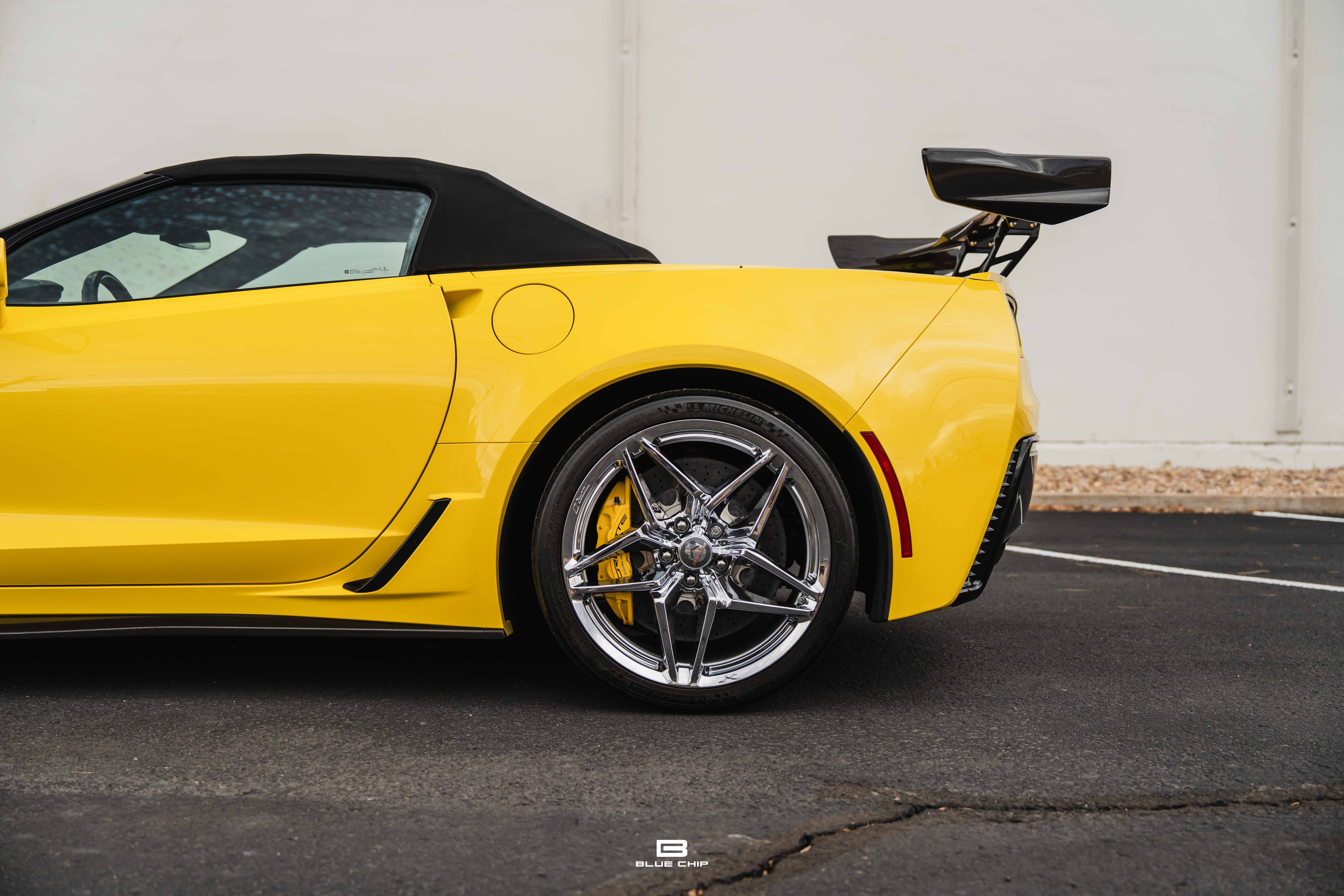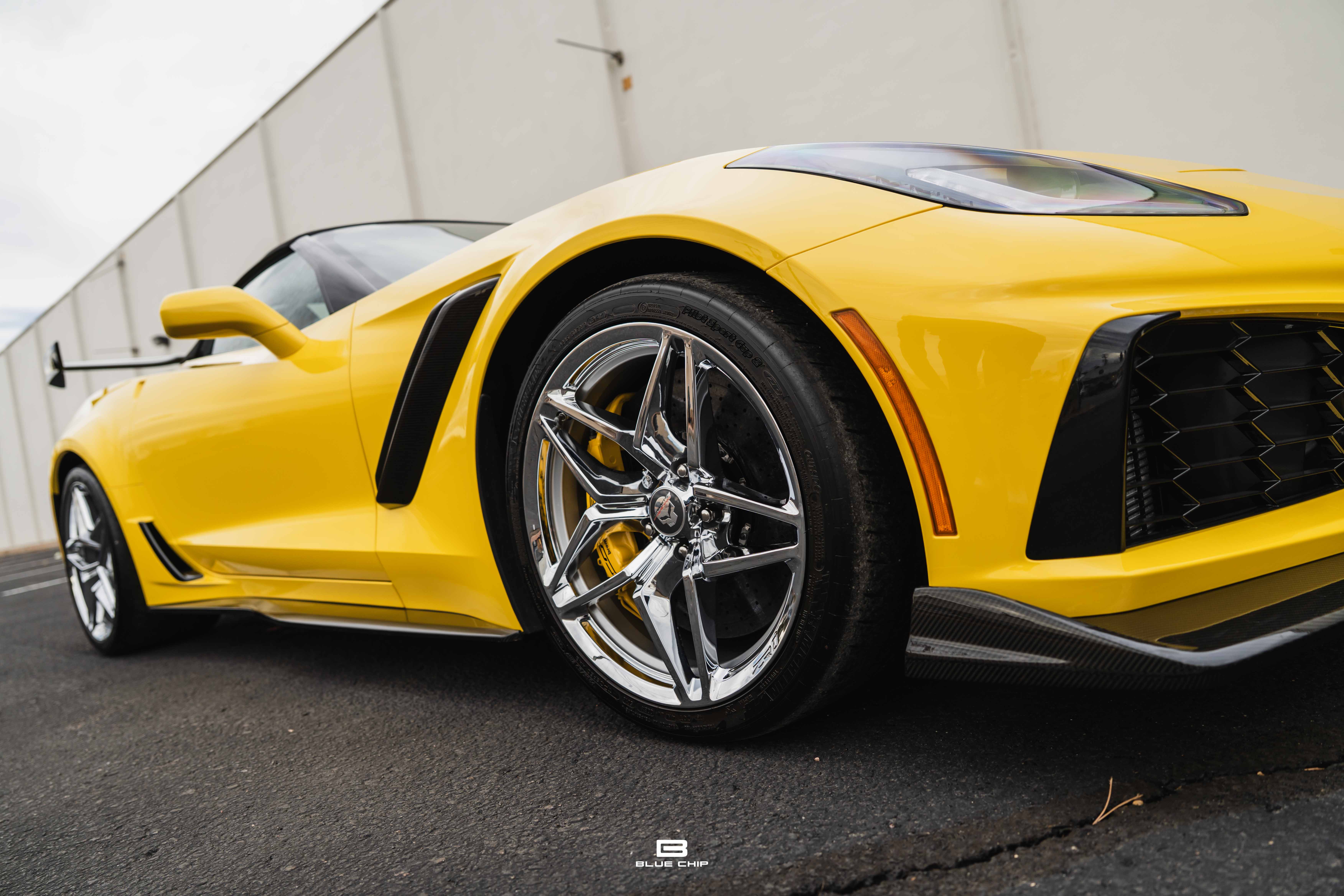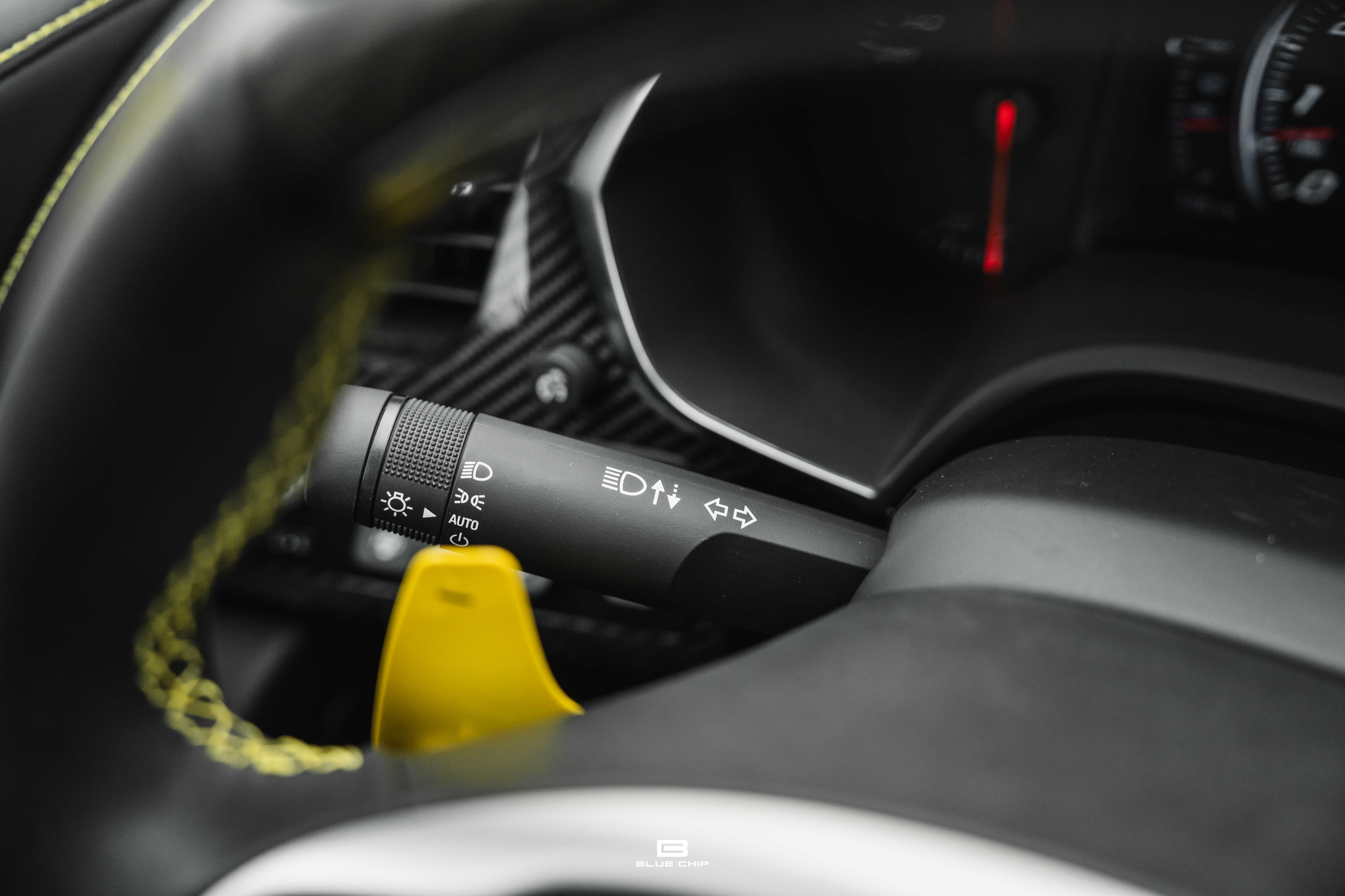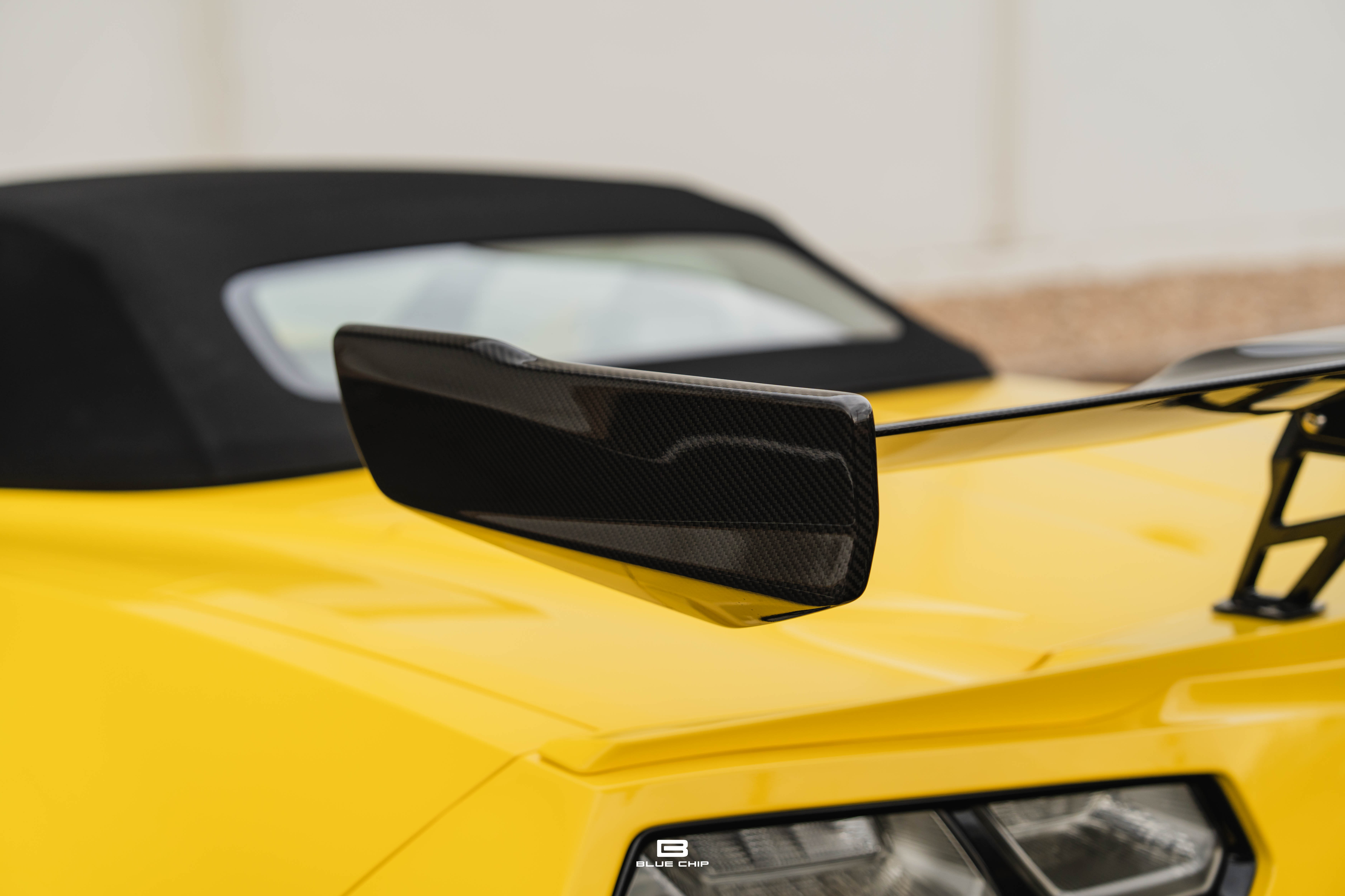 Nearly the entire exterior of the ZR1 serves an aerodynamic purpose. Its sculpted carbon-fiber front splitter, widened intakes, and towering rear wing bear direct lineage to the brand’s GT-class race cars; together, they generate extraordinary downforce and stability at speed. Finished in bright, motorsport-inspired Yellow over a Black interior, this example captures the ZR1’s identity as both a technological flagship and an unapologetic performance machine.