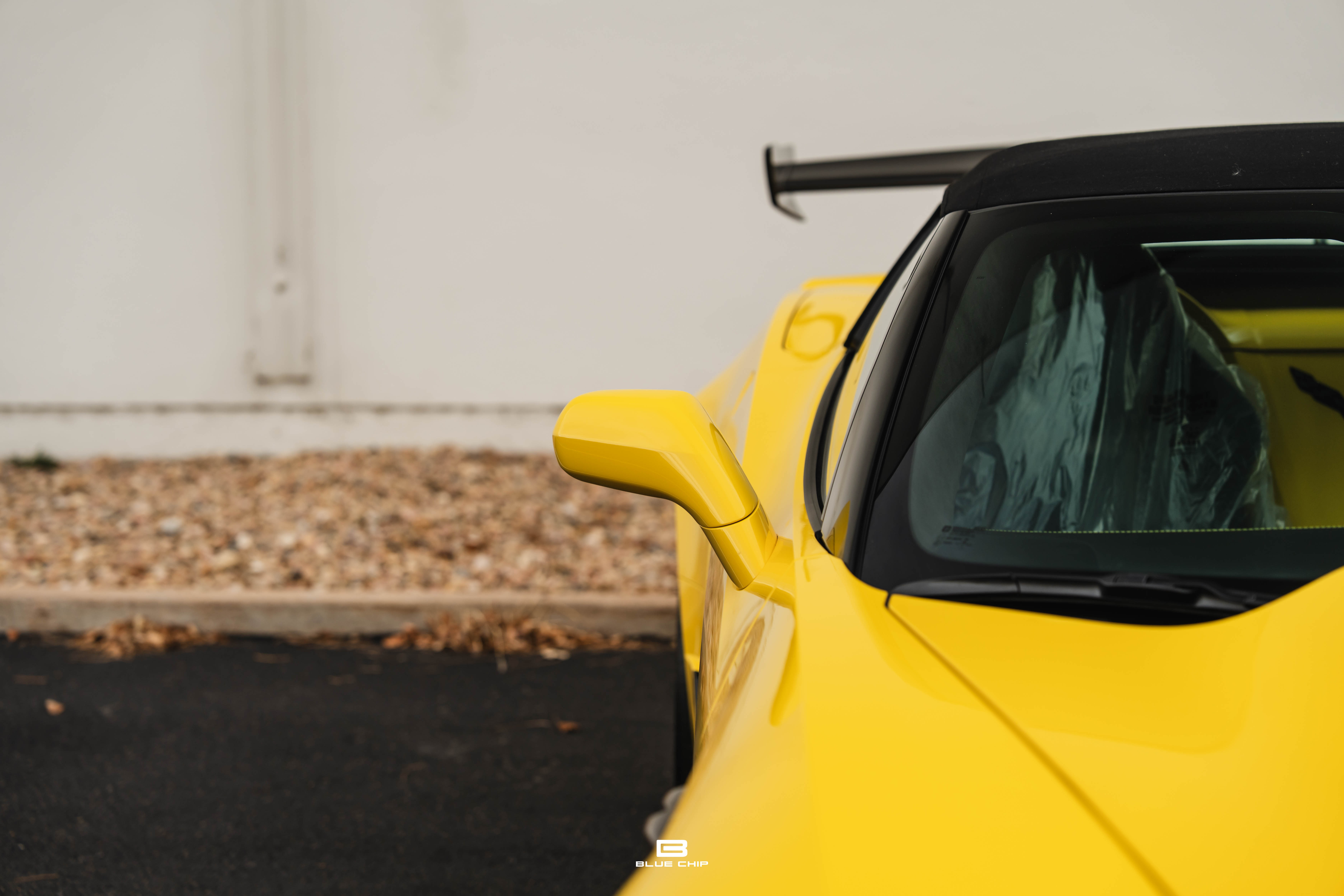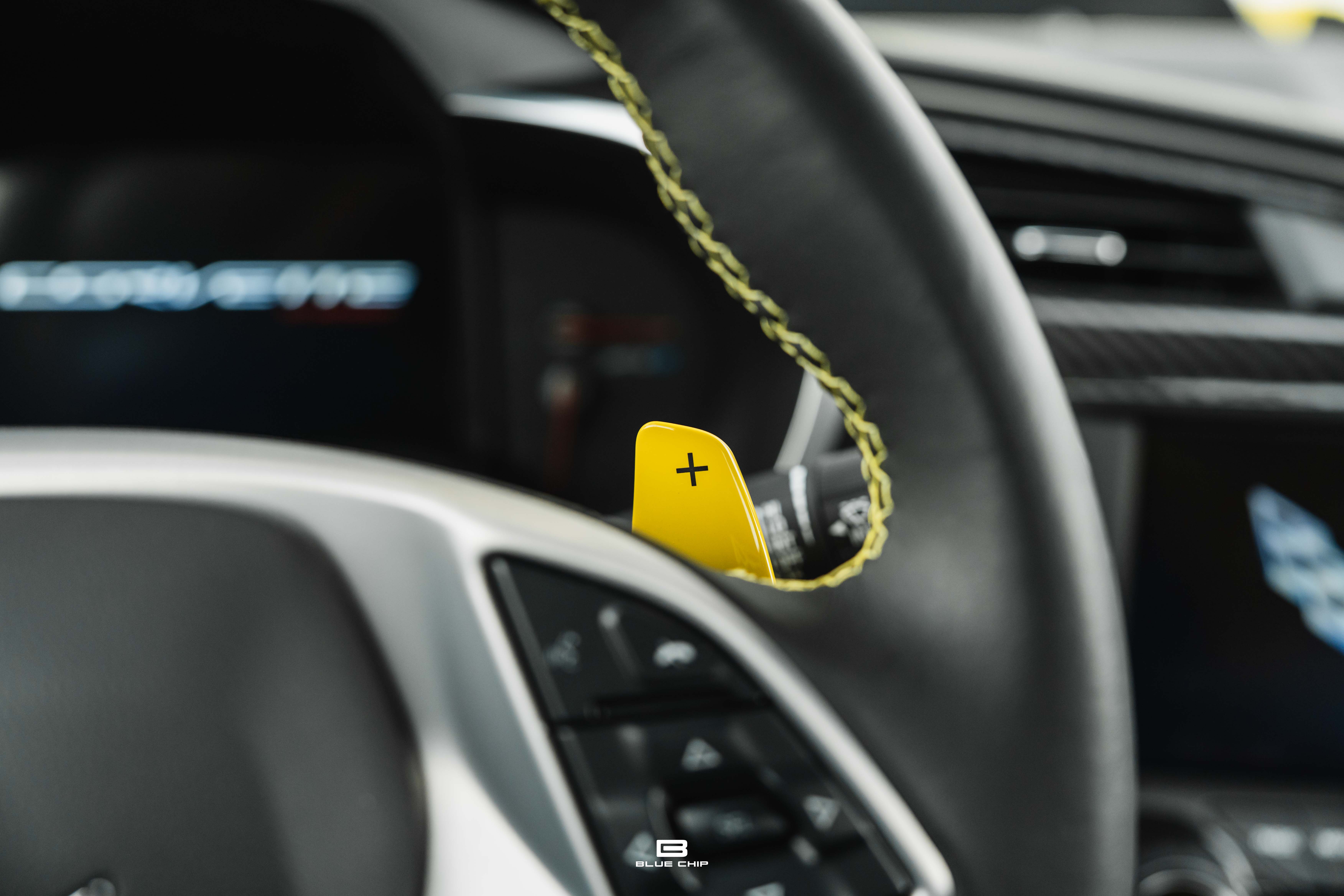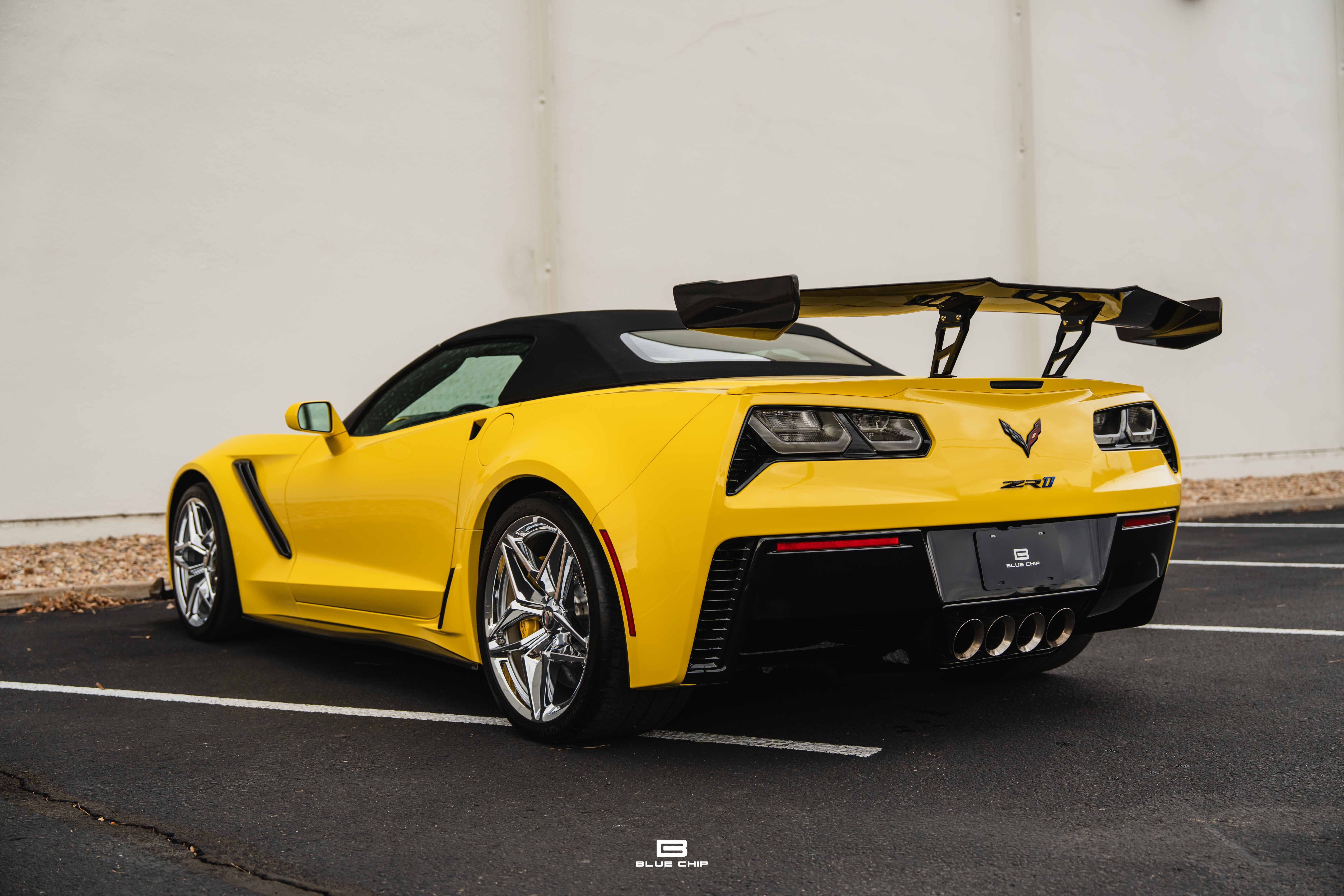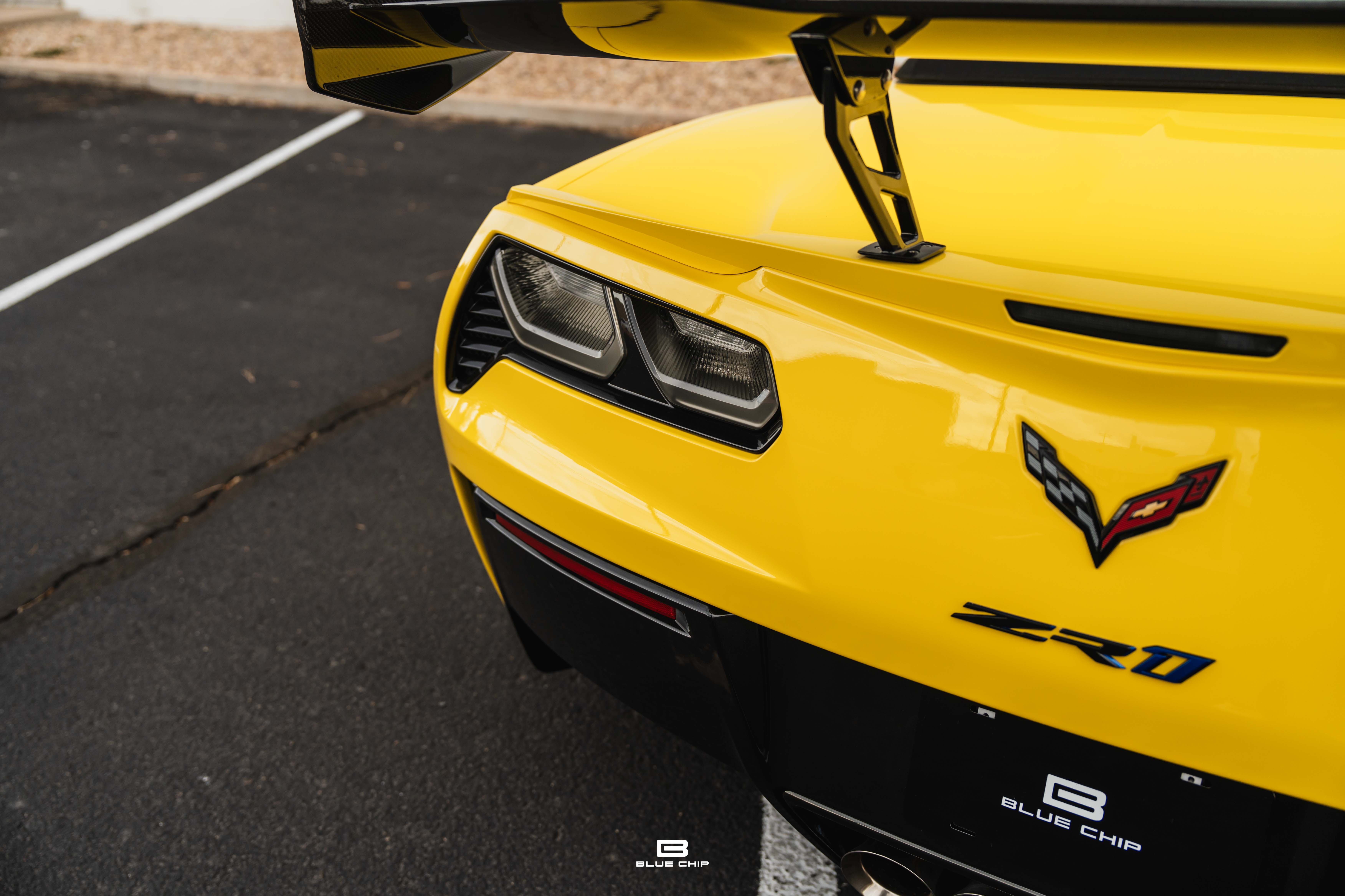 Nearly the entire exterior of the ZR1 serves an aerodynamic purpose. Its sculpted carbon-fiber front splitter, widened intakes, and towering rear wing bear direct lineage to the brand’s GT-class race cars; together, they generate extraordinary downforce and stability at speed. Finished in bright, motorsport-inspired Yellow over a Black interior, this example captures the ZR1’s identity as both a technological flagship and an unapologetic performance machine.