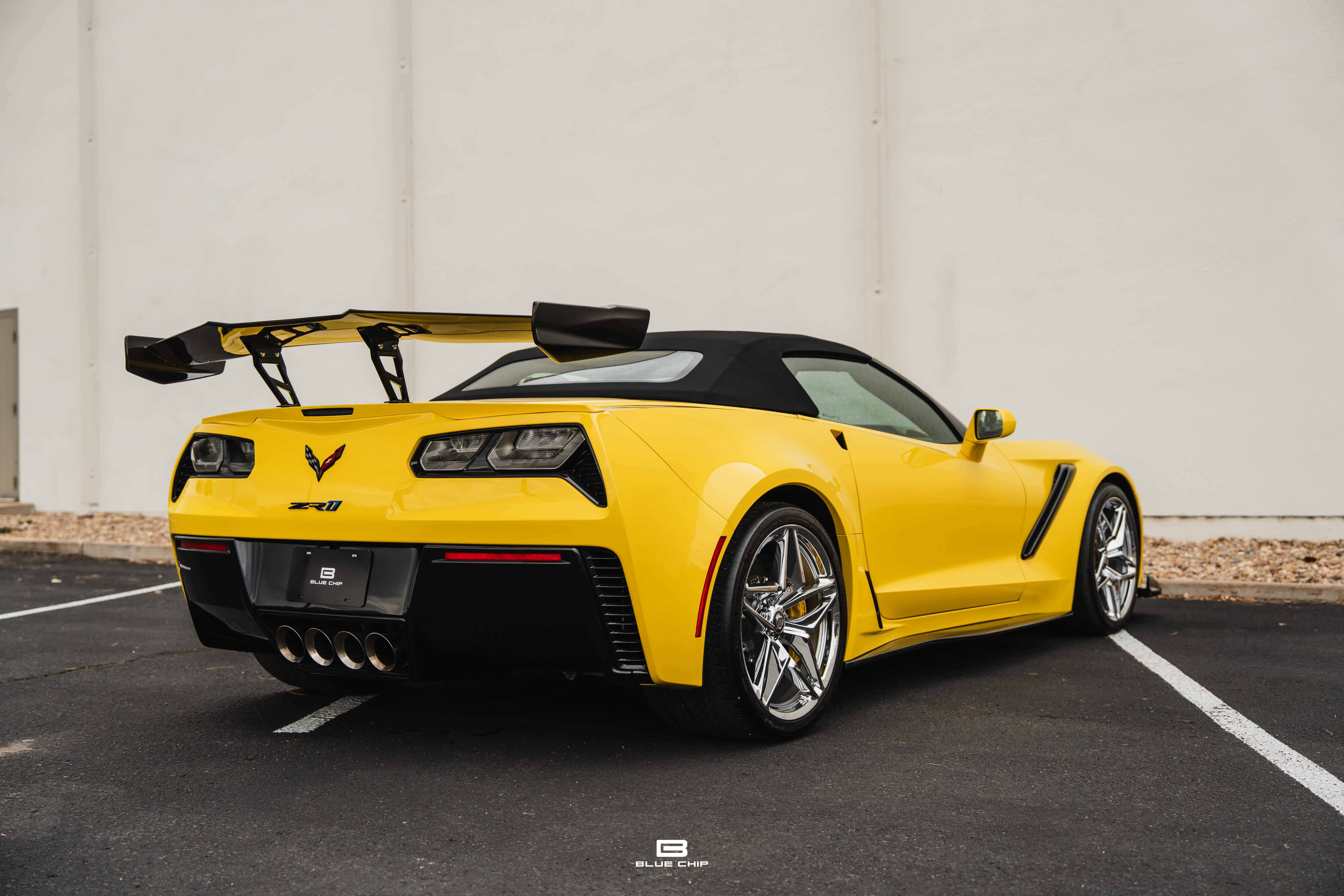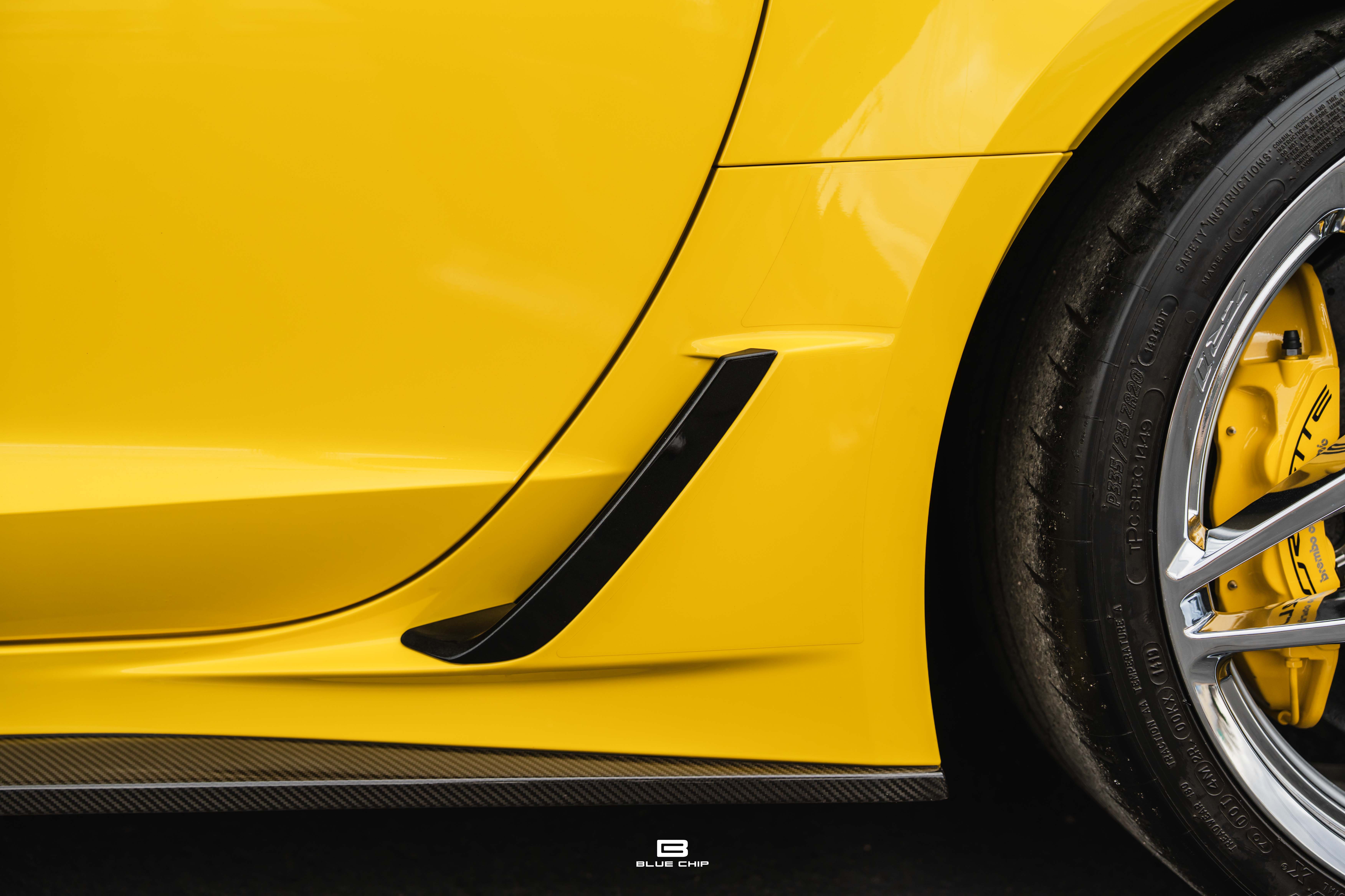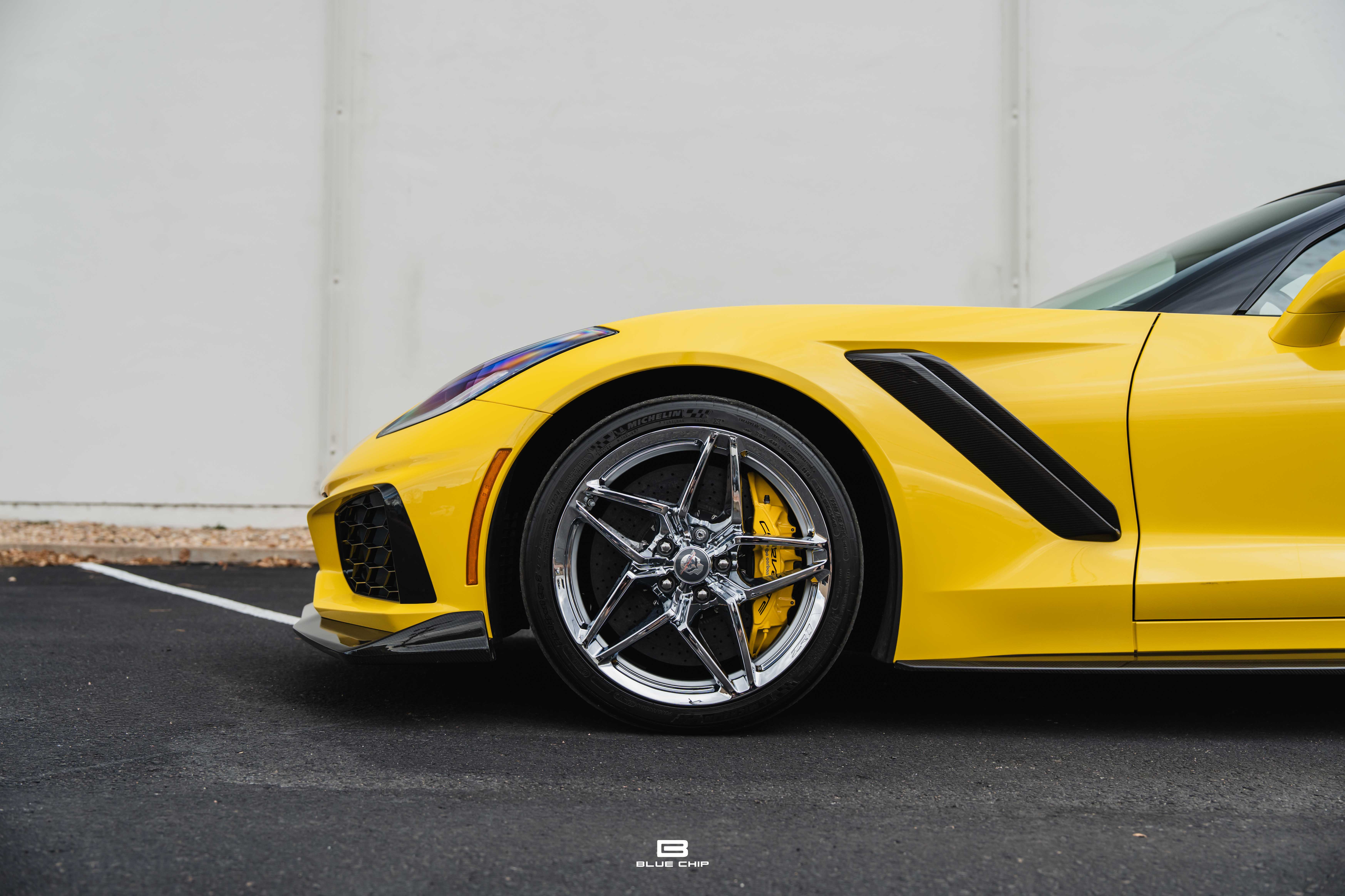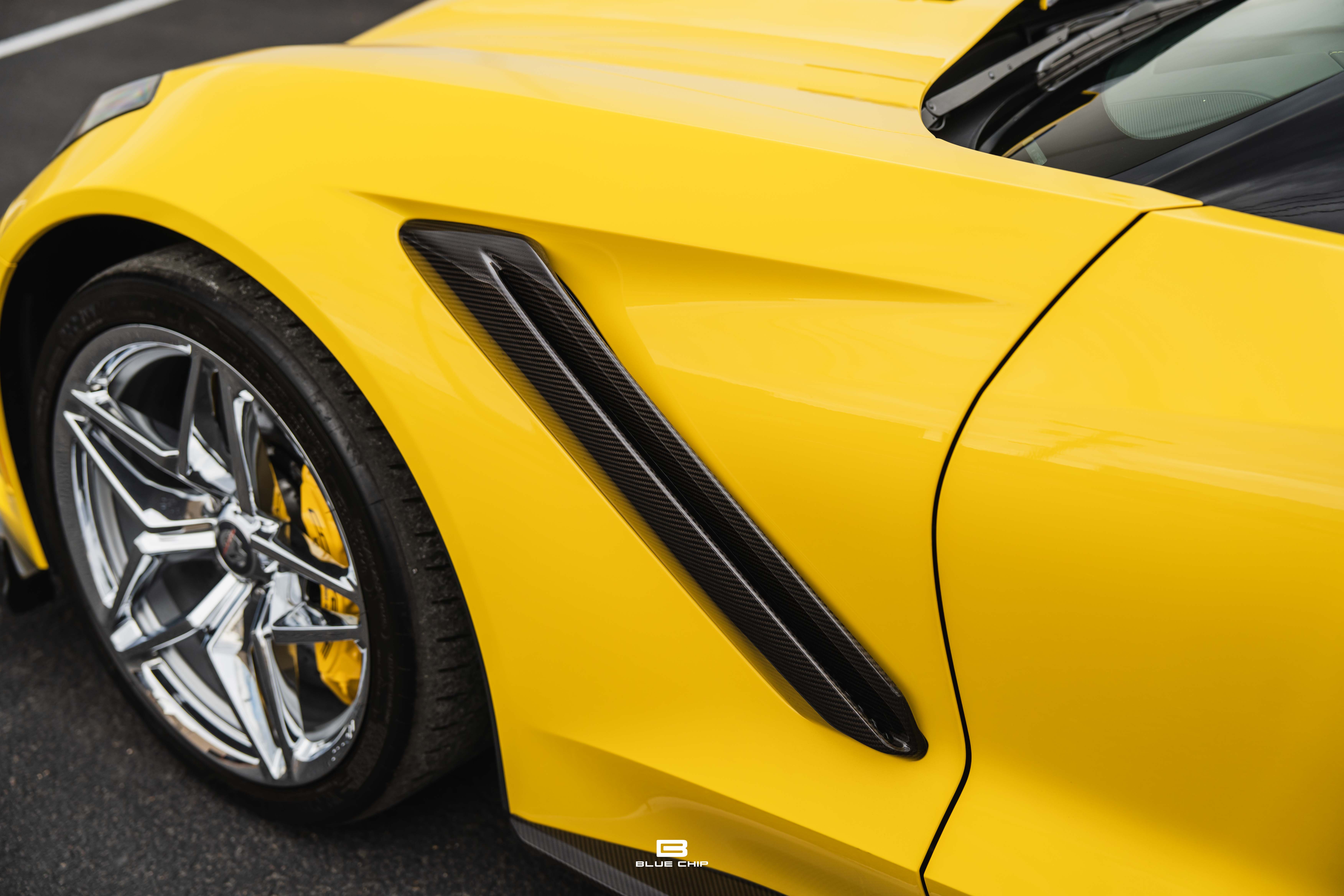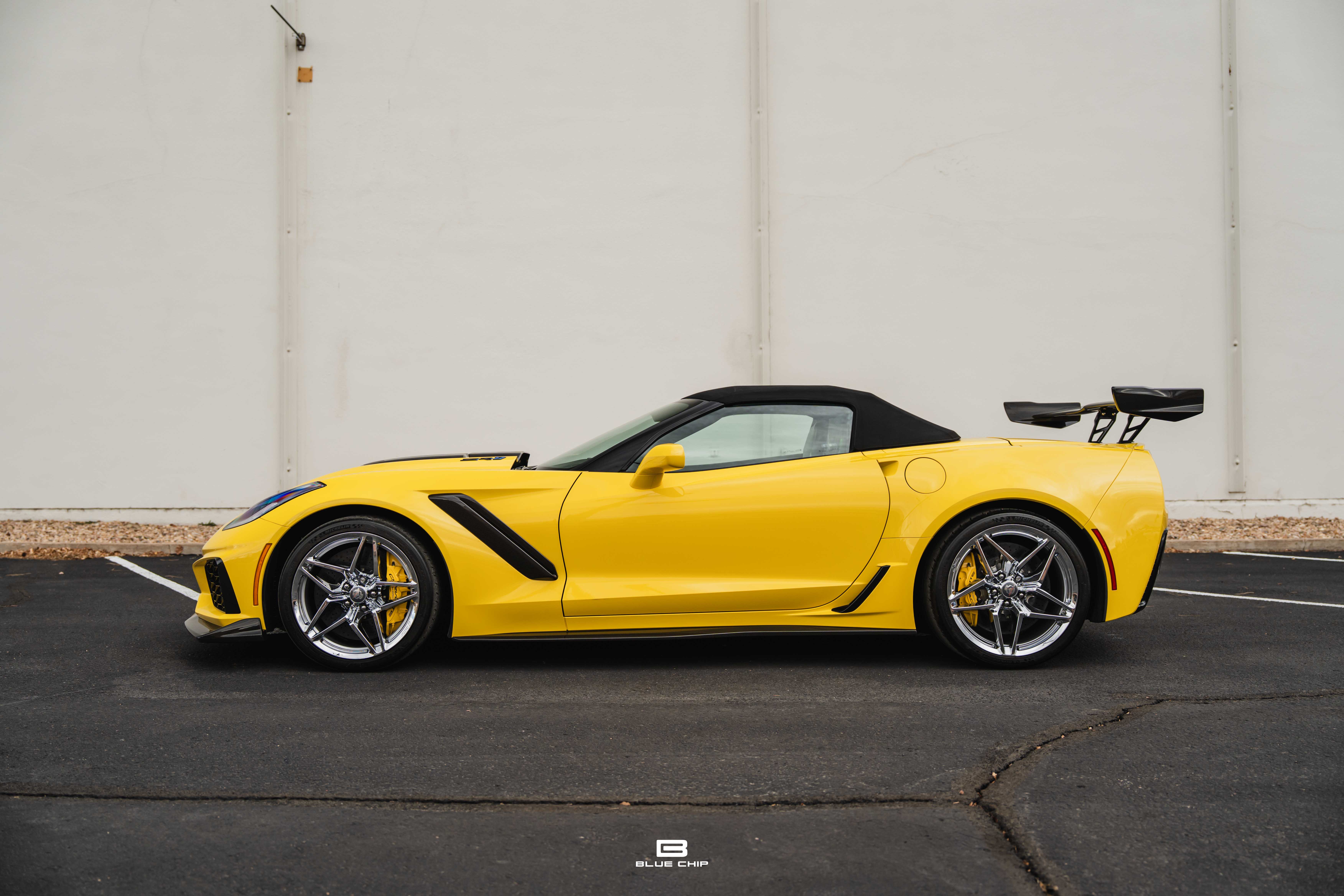 Nearly the entire exterior of the ZR1 serves an aerodynamic purpose. Its sculpted carbon-fiber front splitter, widened intakes, and towering rear wing bear direct lineage to the brand’s GT-class race cars; together, they generate extraordinary downforce and stability at speed. Finished in bright, motorsport-inspired Yellow over a Black interior, this example captures the ZR1’s identity as both a technological flagship and an unapologetic performance machine.