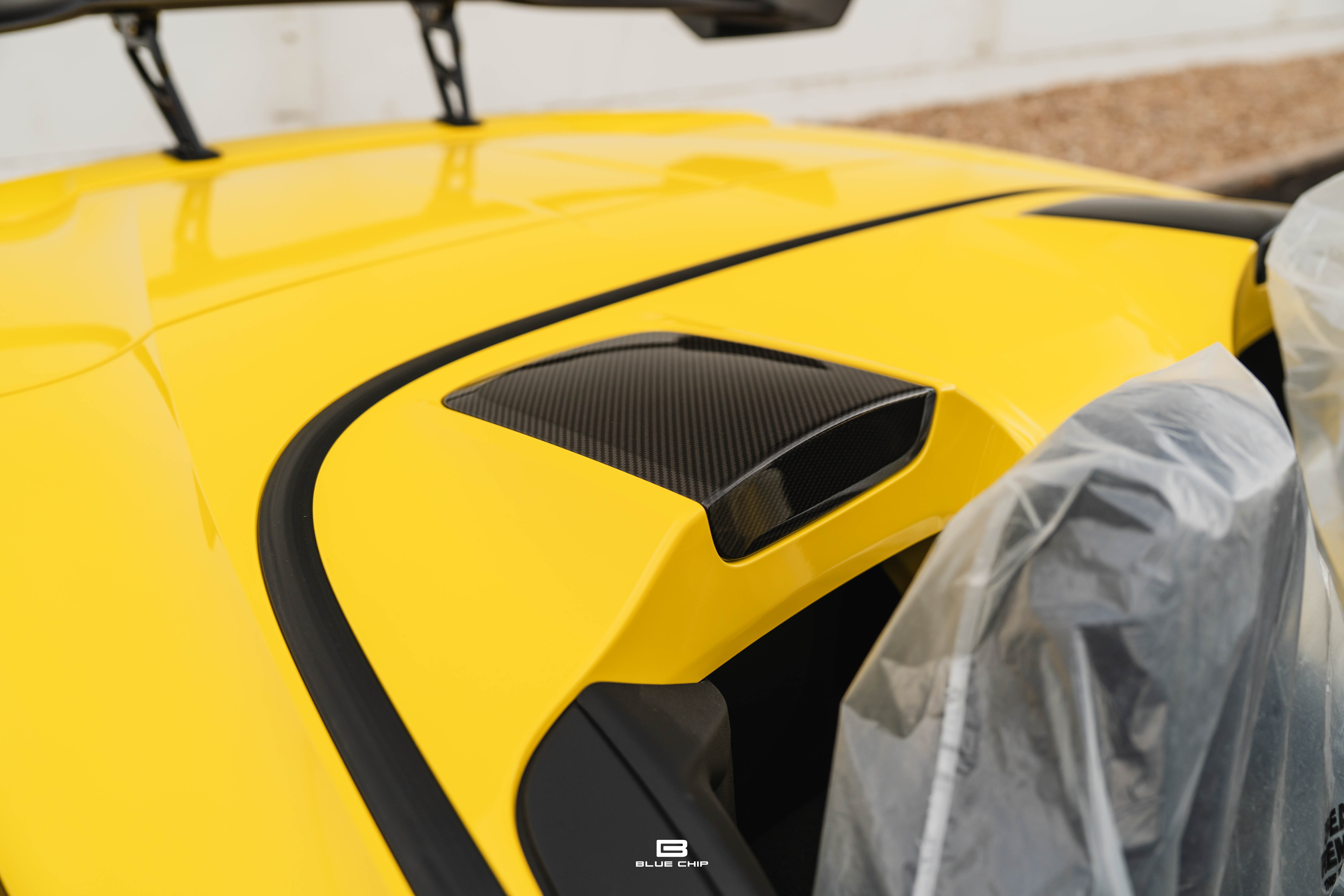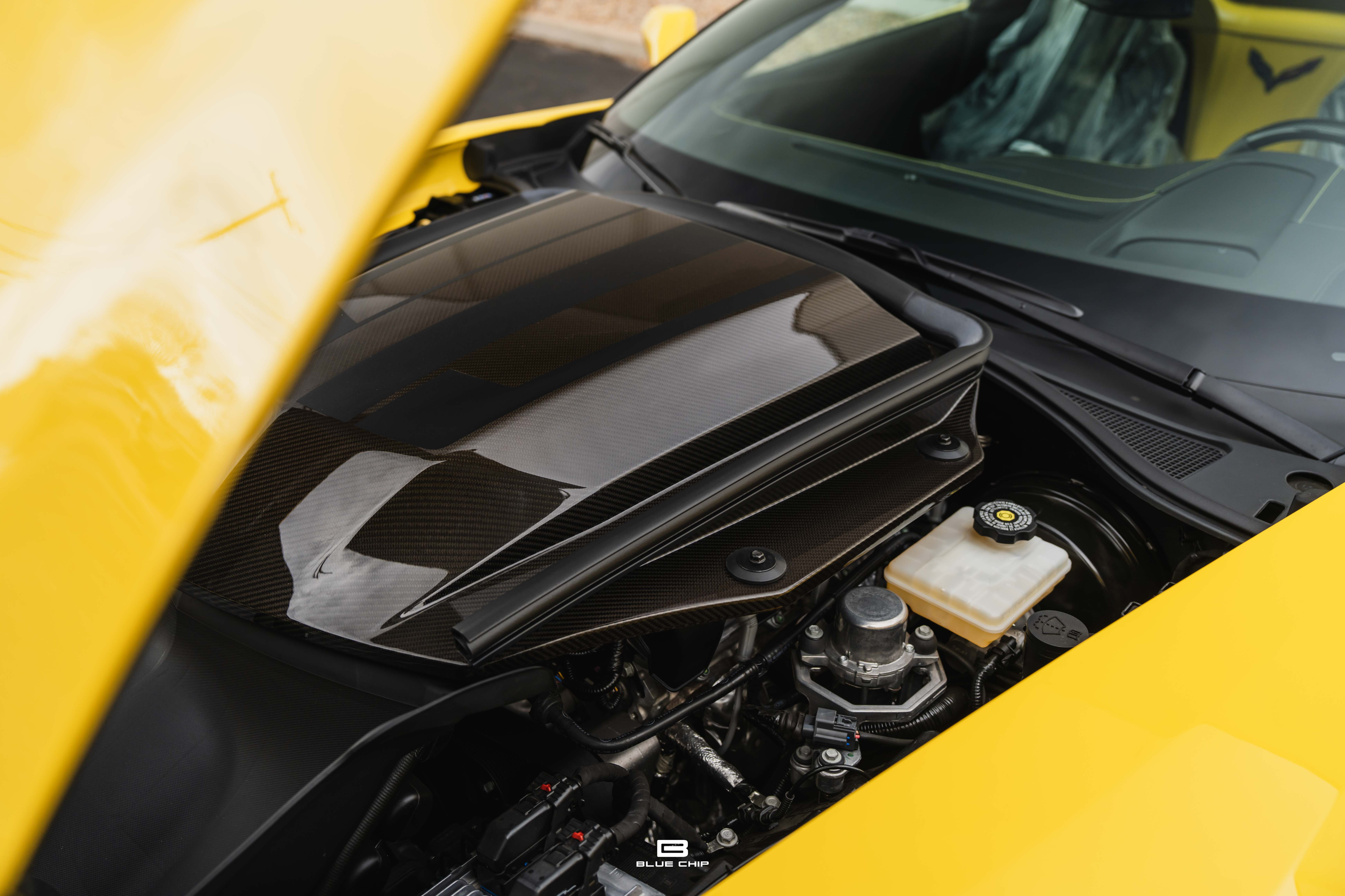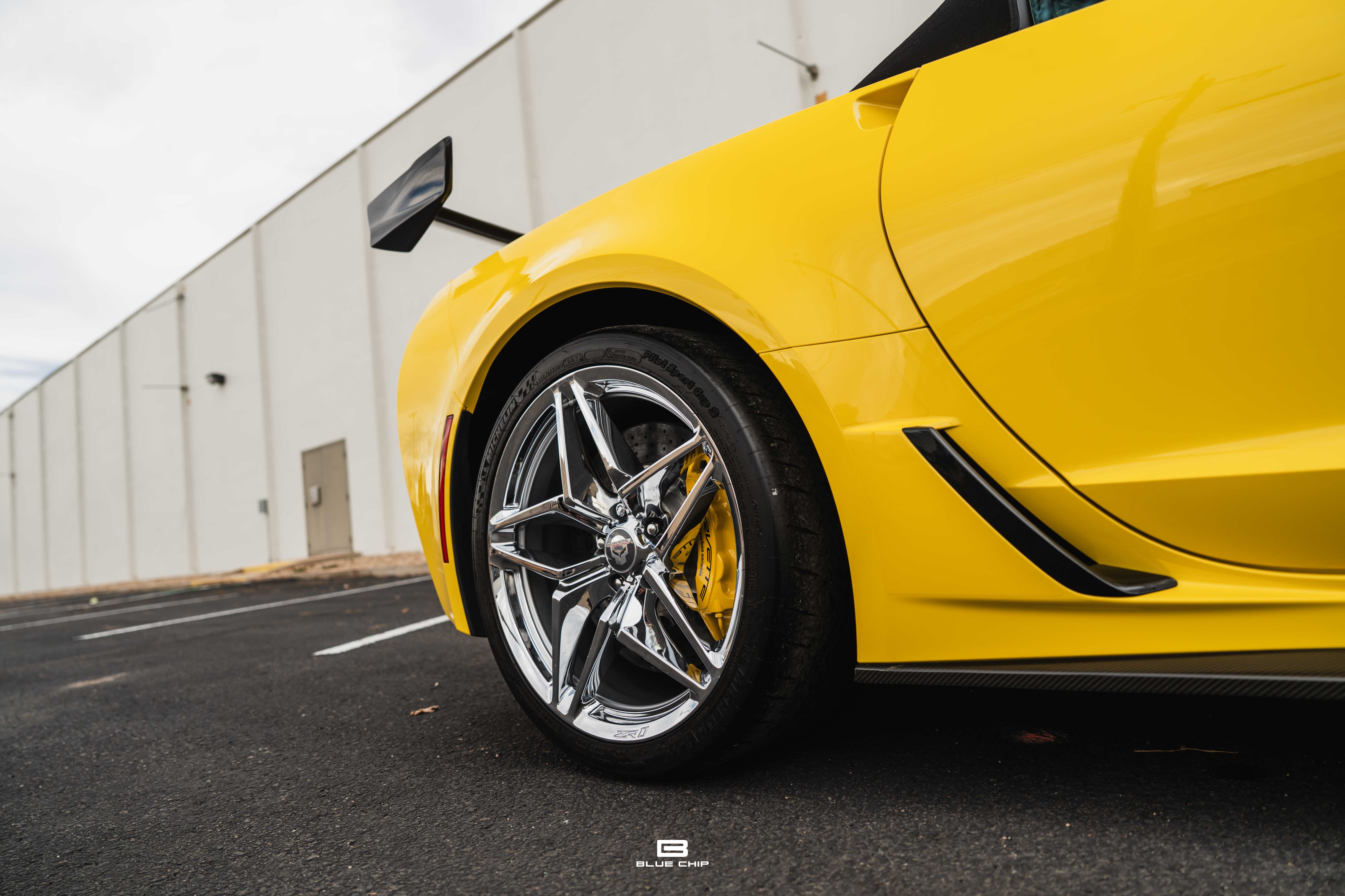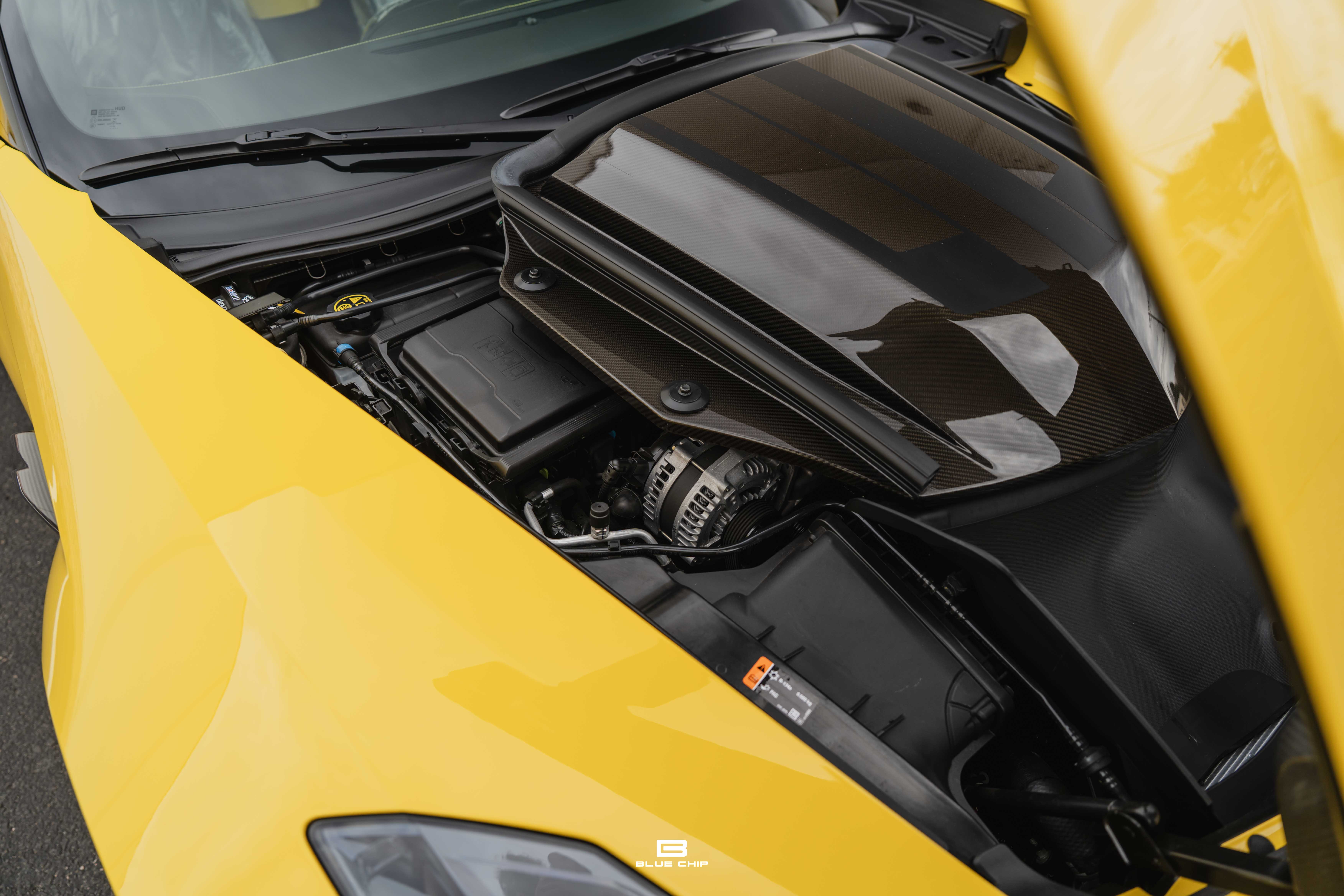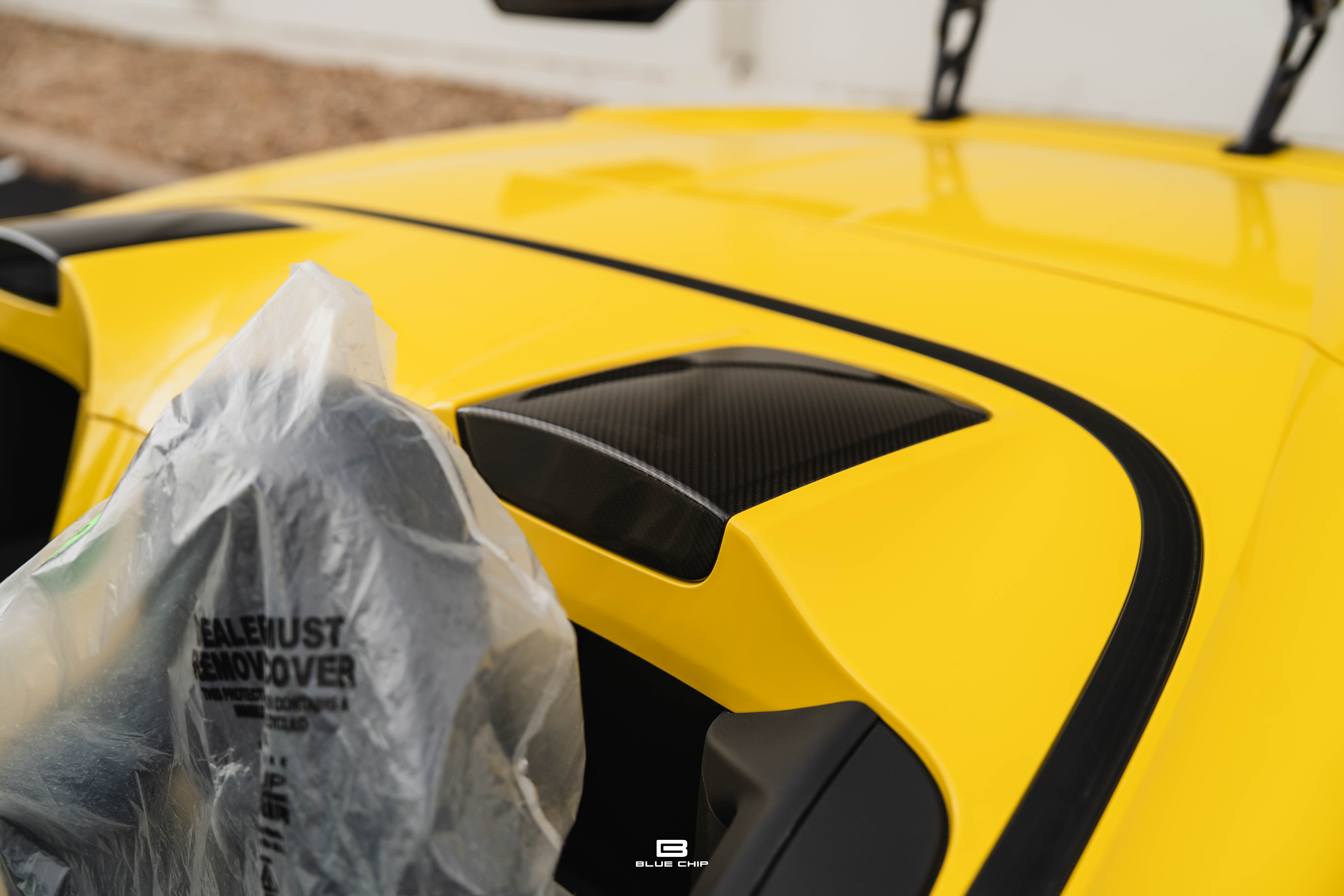 Nearly the entire exterior of the ZR1 serves an aerodynamic purpose. Its sculpted carbon-fiber front splitter, widened intakes, and towering rear wing bear direct lineage to the brand’s GT-class race cars; together, they generate extraordinary downforce and stability at speed. Finished in bright, motorsport-inspired Yellow over a Black interior, this example captures the ZR1’s identity as both a technological flagship and an unapologetic performance machine.