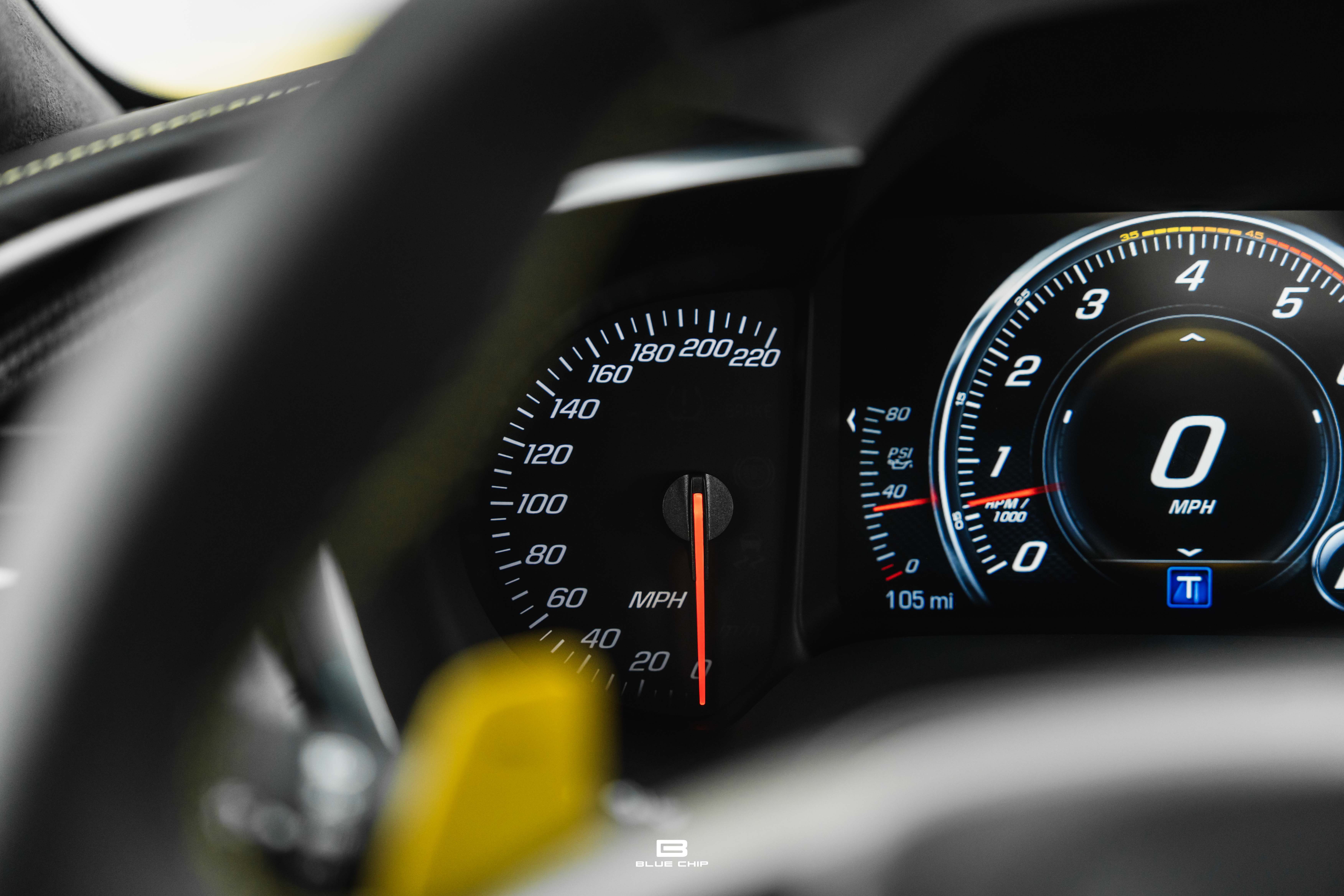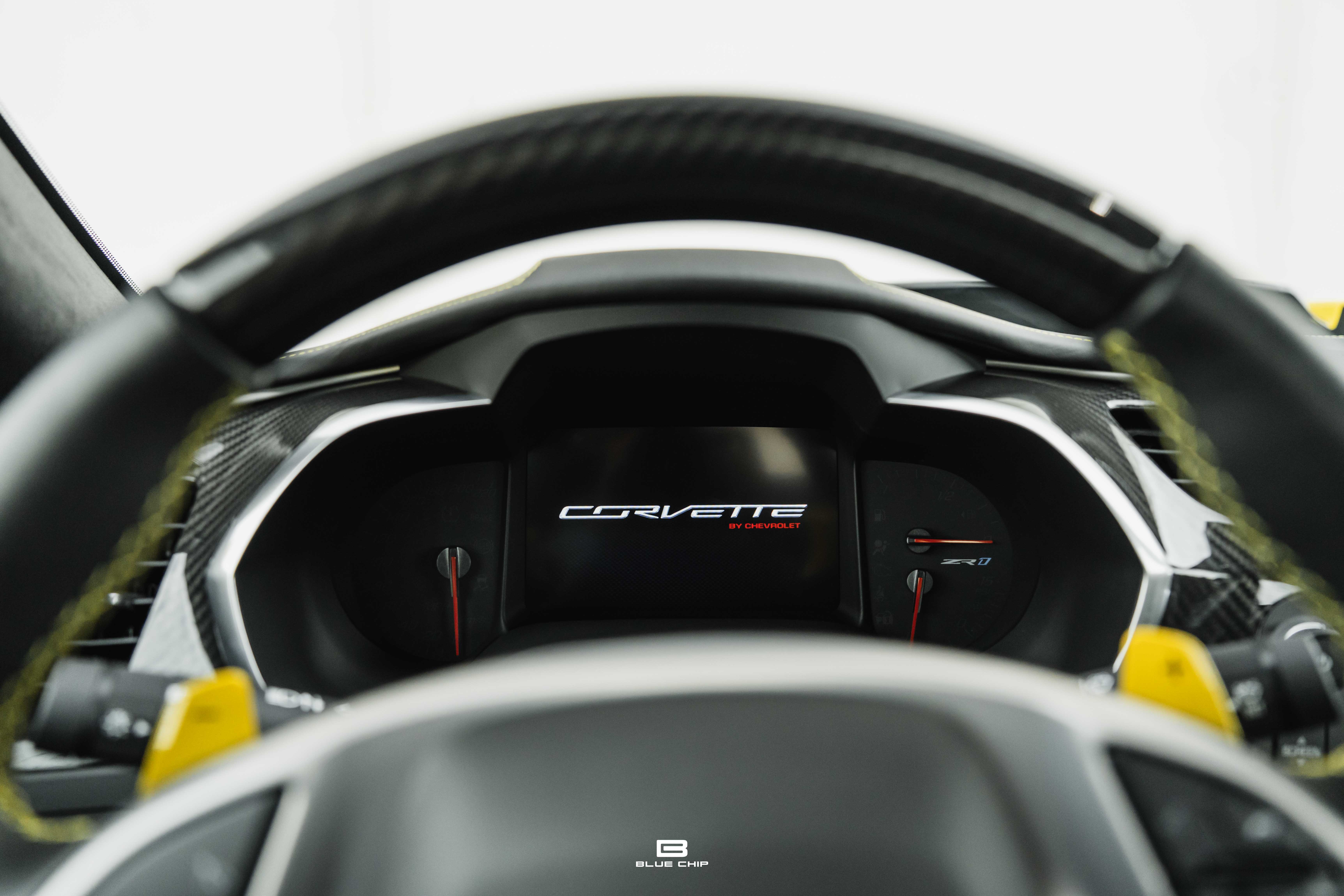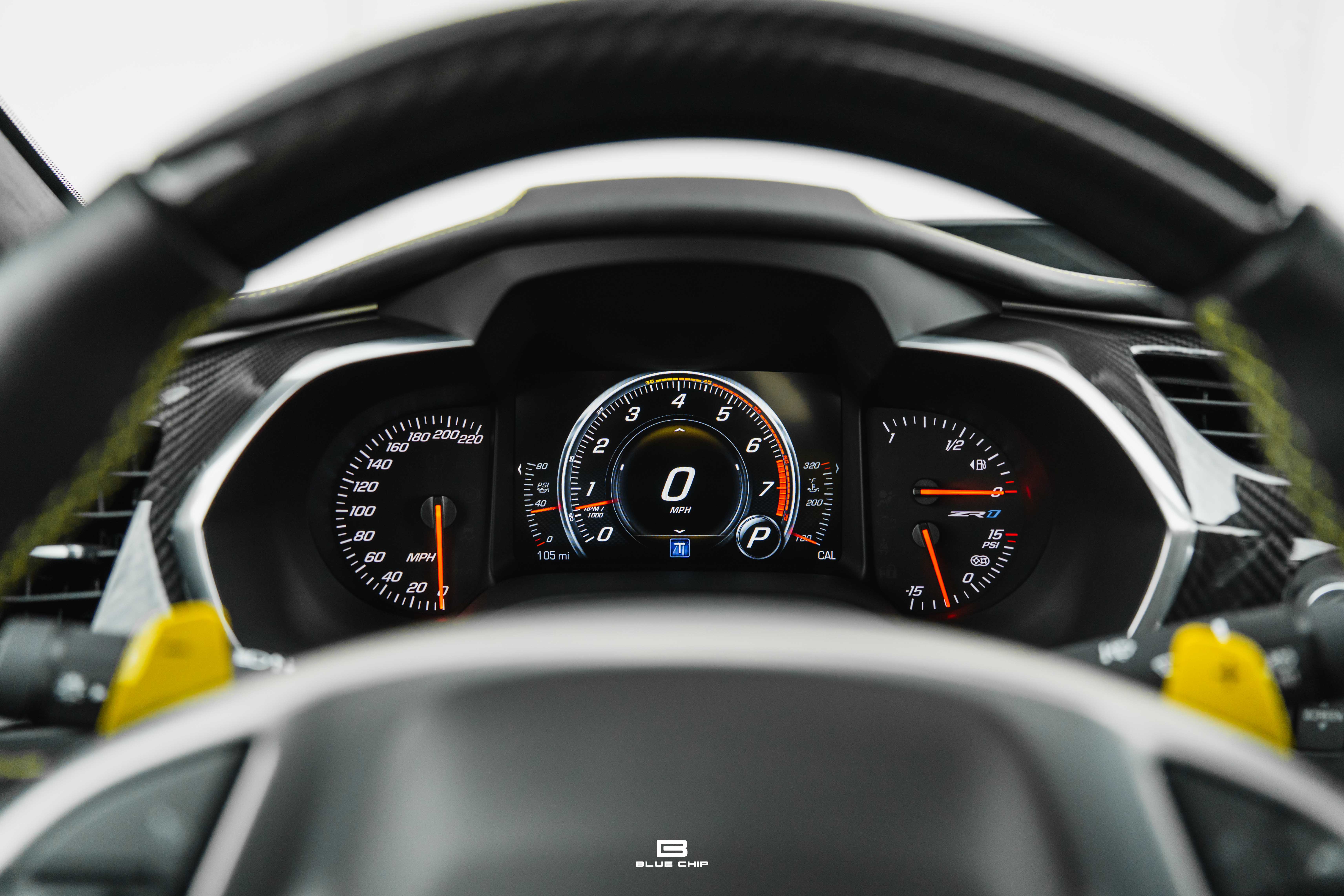 What makes this particular example especially compelling is its virtually delivery-mile condition. Showing just 104 miles at the time of cataloguing, it presents as an exceptionally preserved and scarcely used specimen of Chevrolet’s final and most extreme front-engine supercar. Its cabin—lined with premium materials, driver-centric controls, and ZR1-specific instrumentation—remains in near-new condition, further underscoring the car’s limited use and careful stewardship.