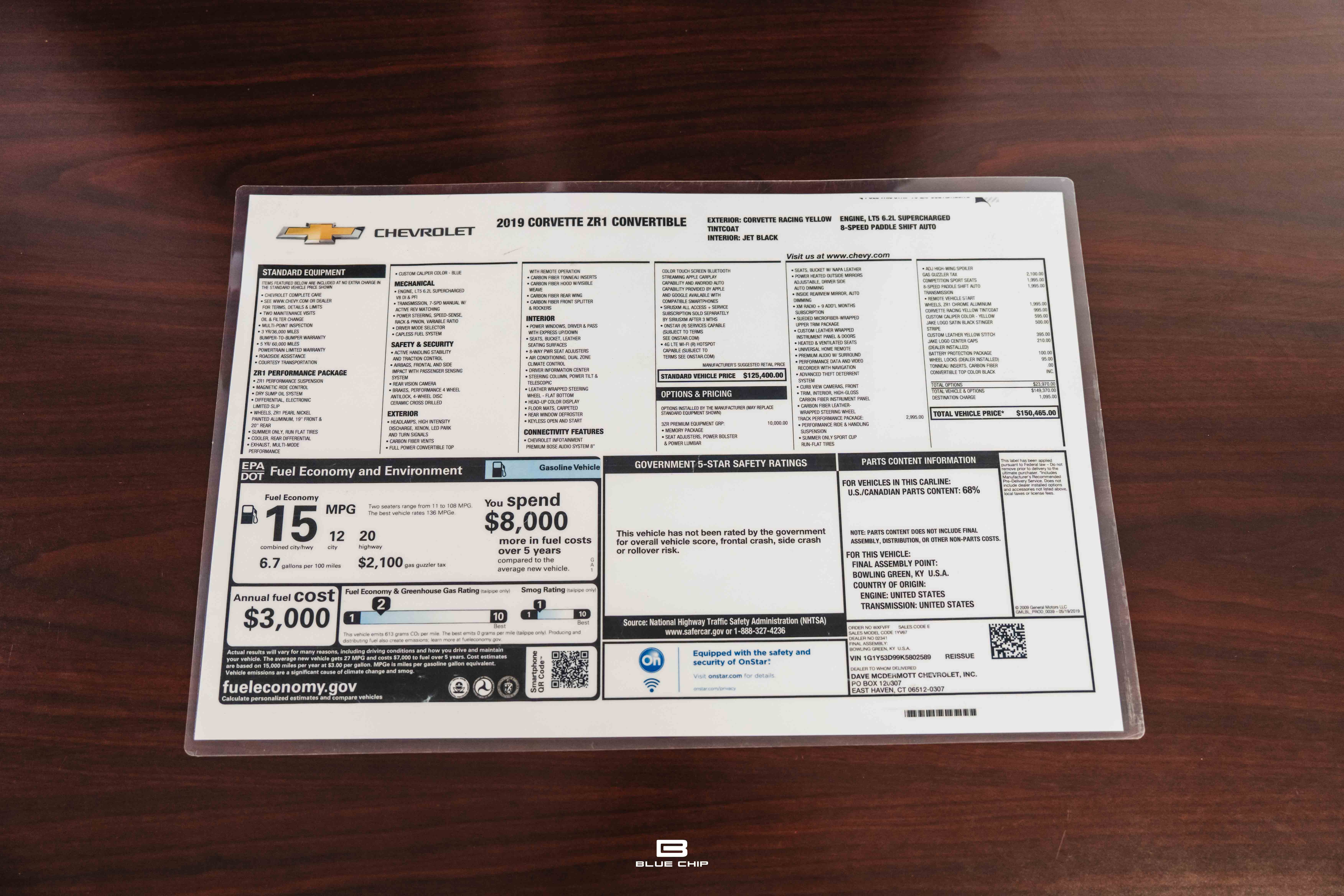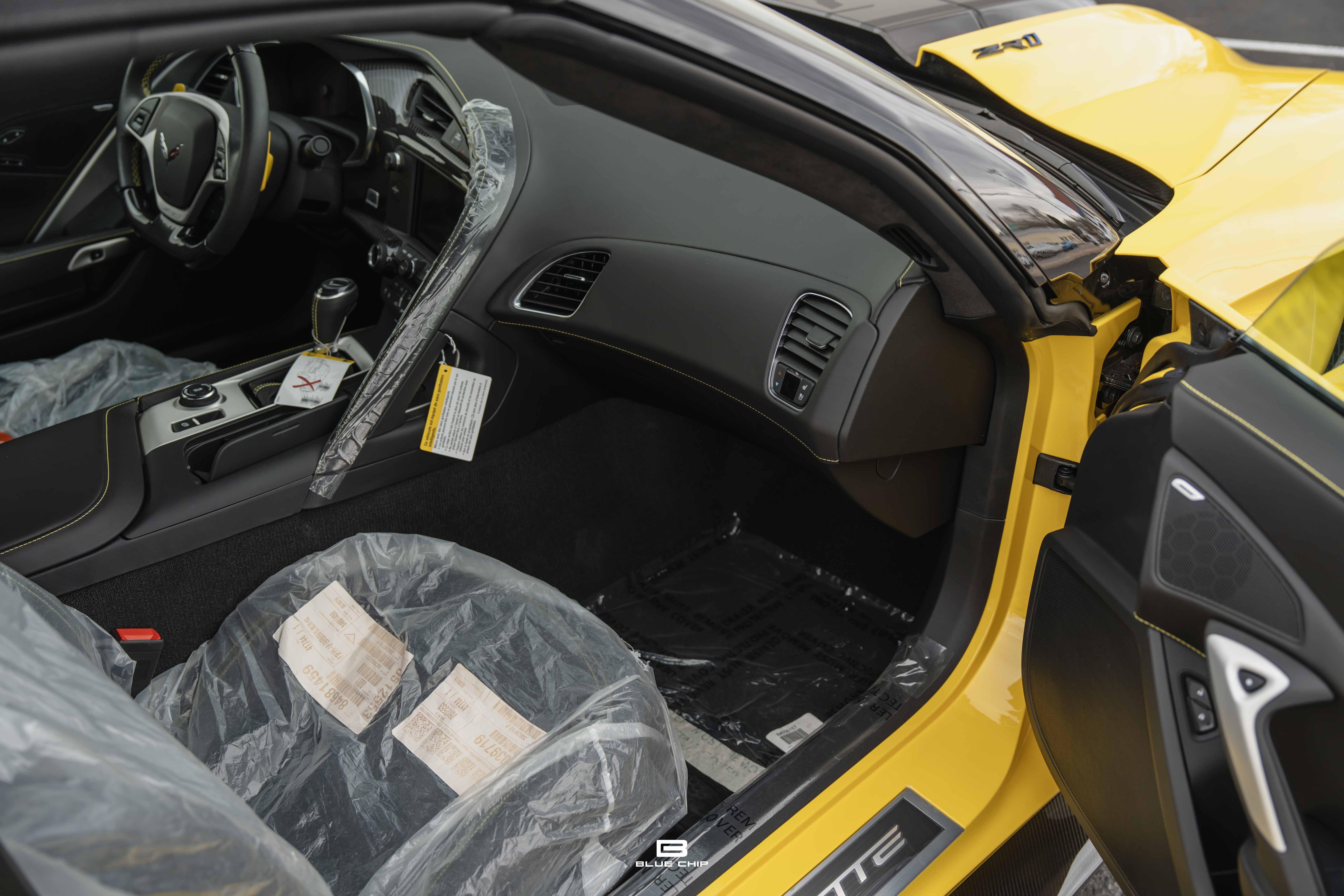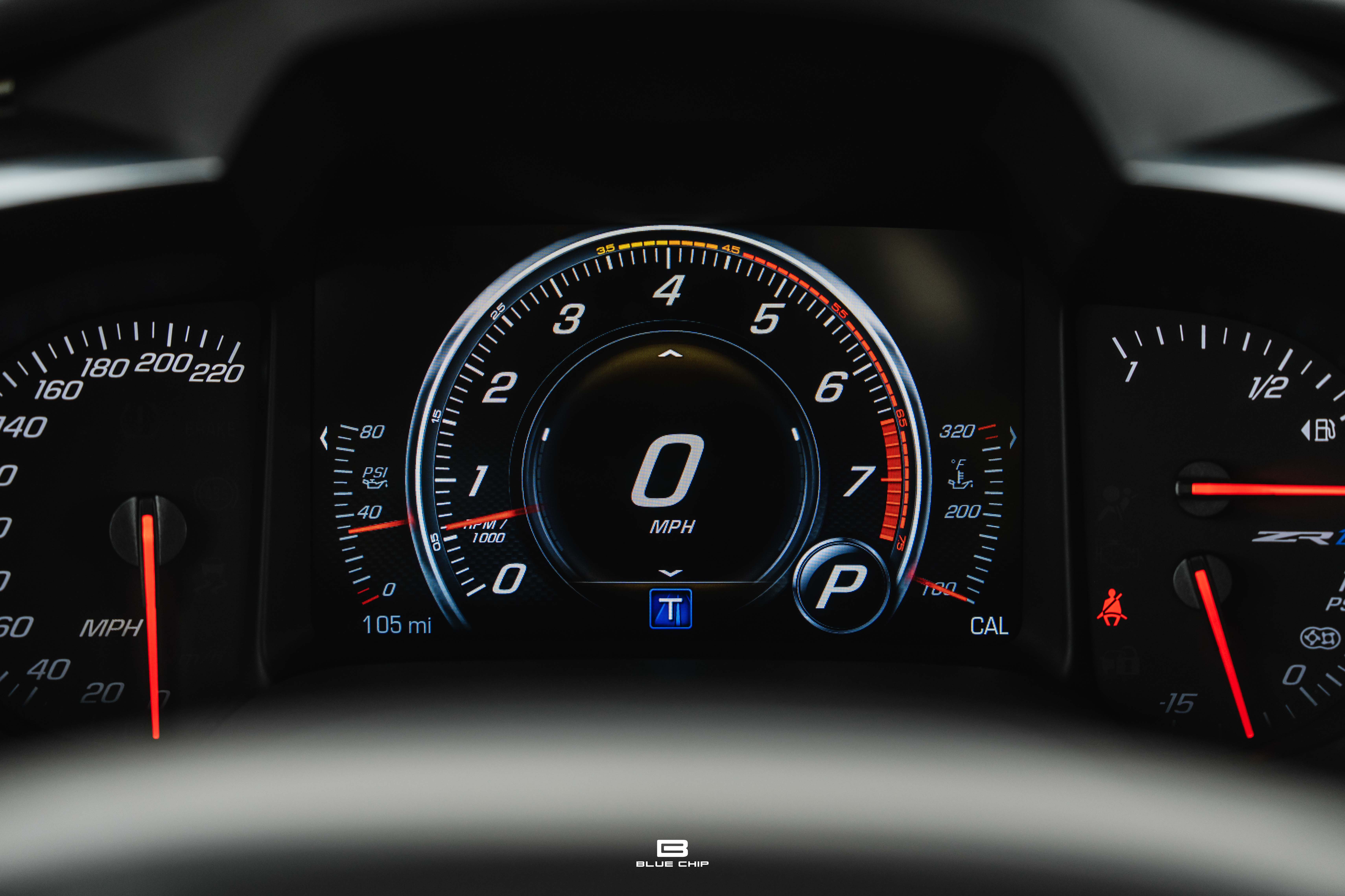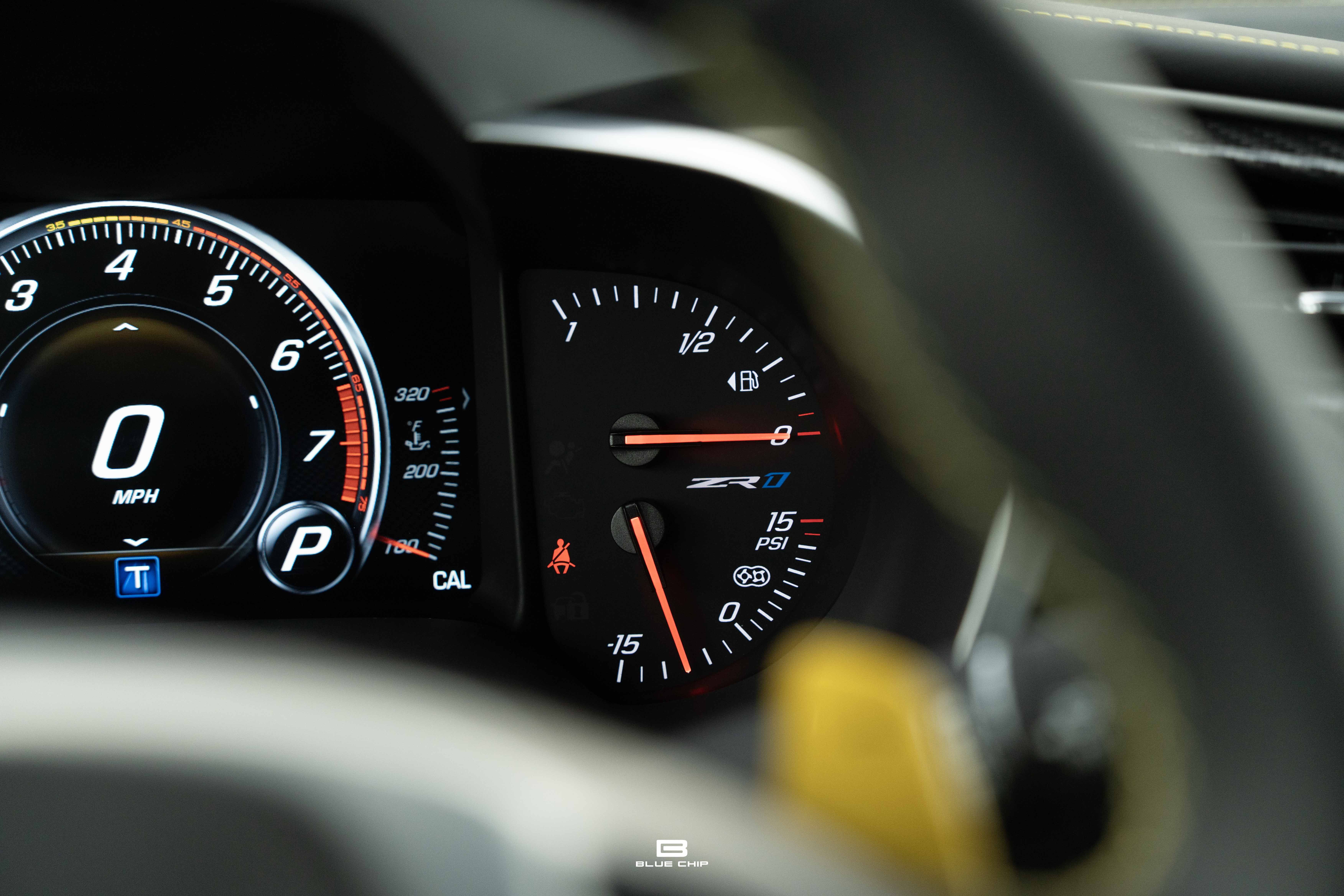 What makes this particular example especially compelling is its virtually delivery-mile condition. Showing just 104 miles at the time of cataloguing, it presents as an exceptionally preserved and scarcely used specimen of Chevrolet’s final and most extreme front-engine supercar. Its cabin—lined with premium materials, driver-centric controls, and ZR1-specific instrumentation—remains in near-new condition, further underscoring the car’s limited use and careful stewardship.