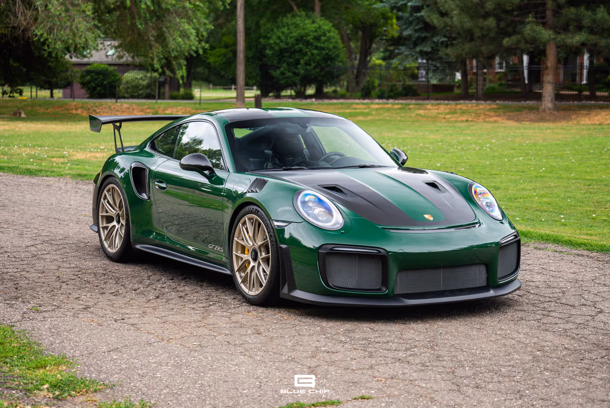 Now offered for sale, Blue Chip is proud to present this 2019 Porsche 911 GT2 RS. With an original MSRP of nearly $360,000, this example is highly optioned and is finished in Paint-to-Sample non-metallic Irish Green over a black leather and Alcantara interior that features deviated stitching in Luxor Beige.