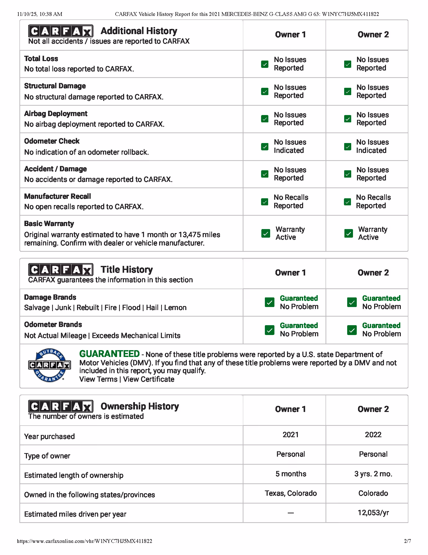 Driven primarily in Colorado by its second owner, this G-Wagen averaged fewer than 13,000 miles annually—well below industry norms. It still retains an estimated 6 months or approximately 16,000 miles of its original factory warranty.