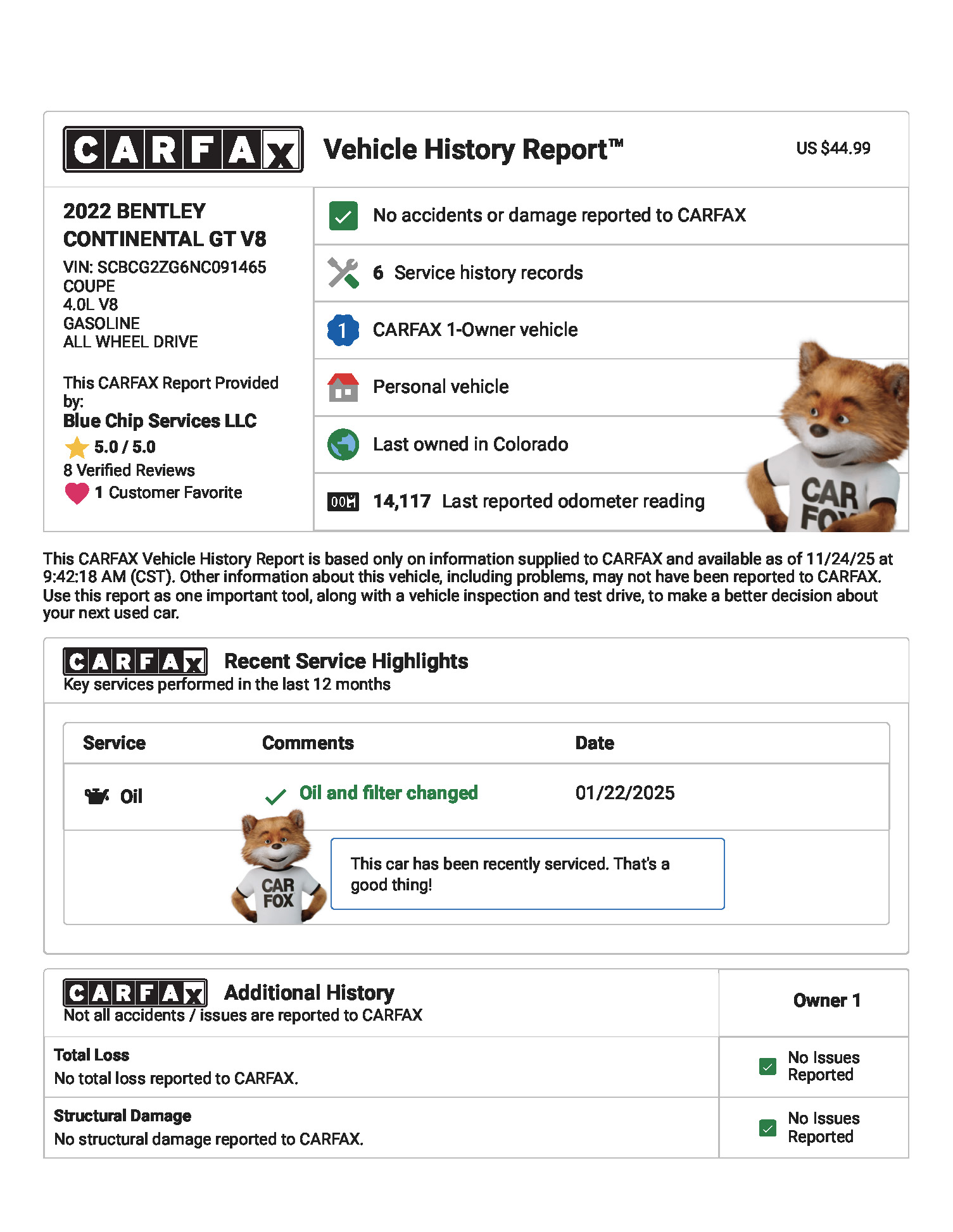 This 2022 Continental GT, finished in timeless Black over a matching Black leather interior, presents in beautifully kept condition with approximately 15,477 miles. Its understated specification underscores the model’s inherent elegance, making this example a compelling opportunity to acquire a late-model Continental GT in a classic and highly sought-after color combination.