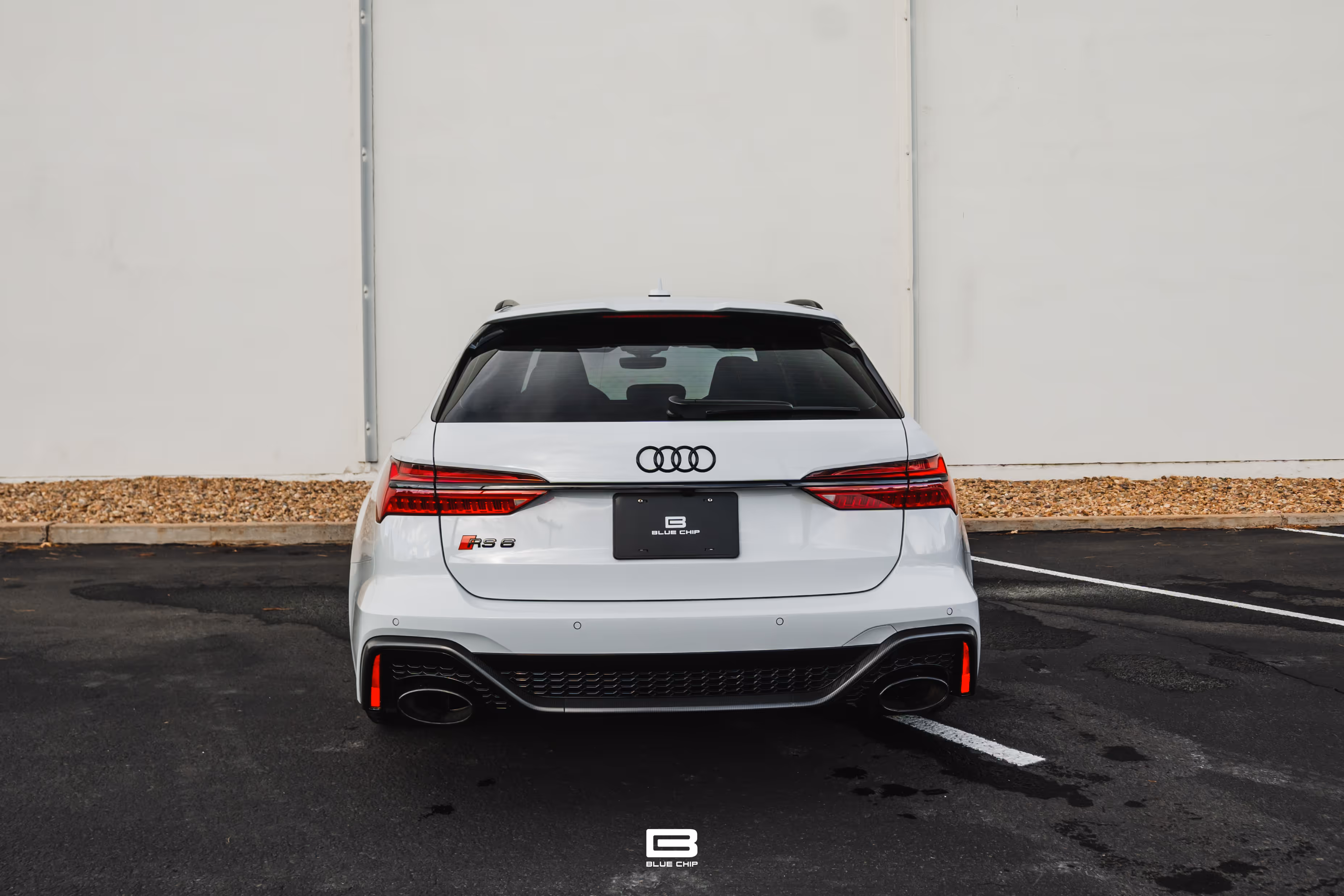 The 2024 Audi RS6 Avant Performance refines the formula of Audi’s high-performance wagon, delivering increased power, sharper dynamics, and a more engaging driving experience. This example, finished in Glacier White Metallic over a Black Leather interior with Mercato Blue stitching, has accumulated just 731 miles.