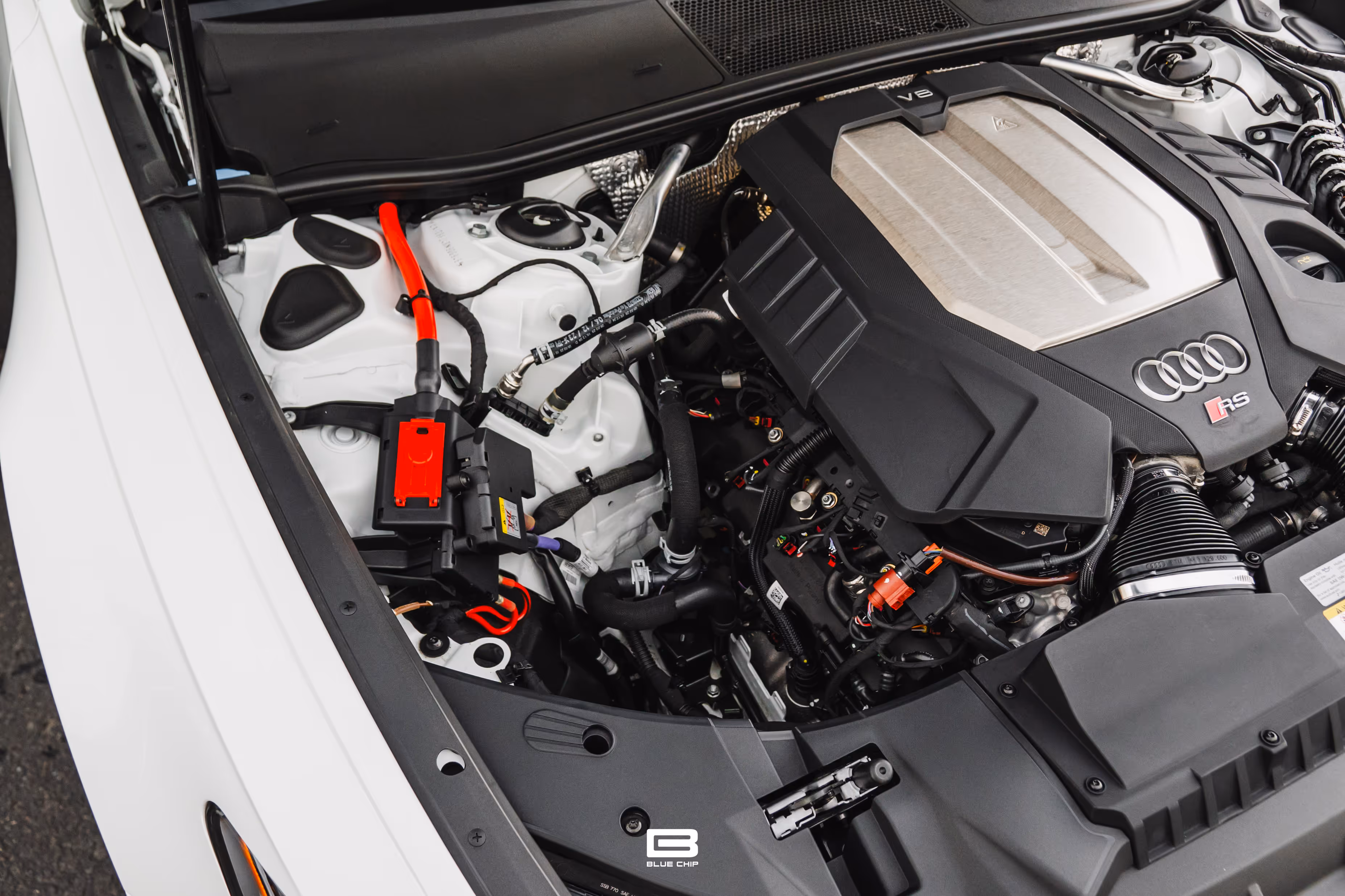 Powered by a 4.0-liter twin-turbocharged V8, the RS6 Performance produces 621 horsepower and 627 lb-ft of torque—an increase of 30 horsepower over the standard RS6. Power is sent to all four wheels through an eight-speed automatic transmission and Audi’s quattro all-wheel-drive system, enabling a 0-60 mph time of 3.3 seconds. A revised center differential improves power distribution, while a sport-tuned adaptive air suspension and standard rear-wheel steering enhance handling and high-speed stability.