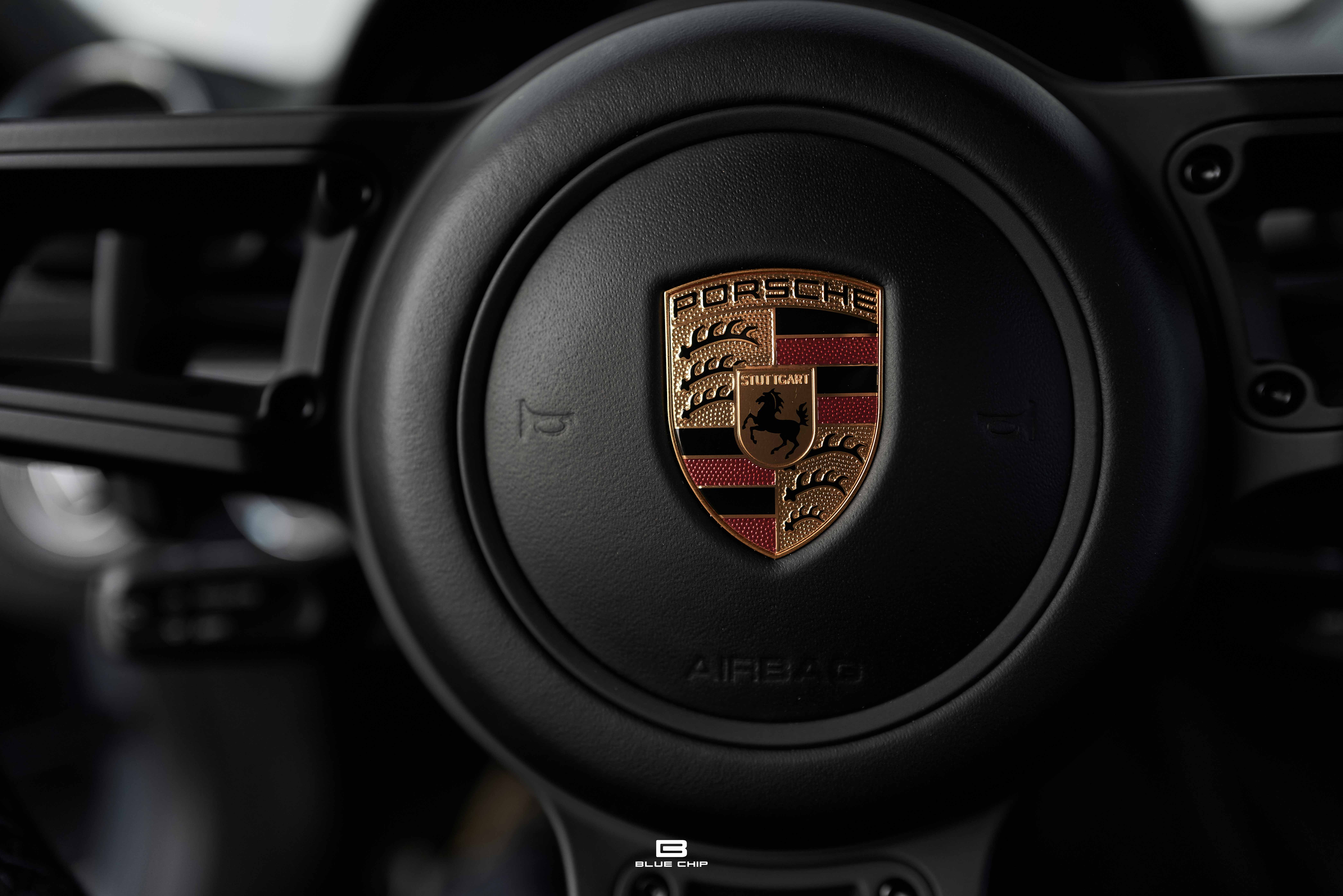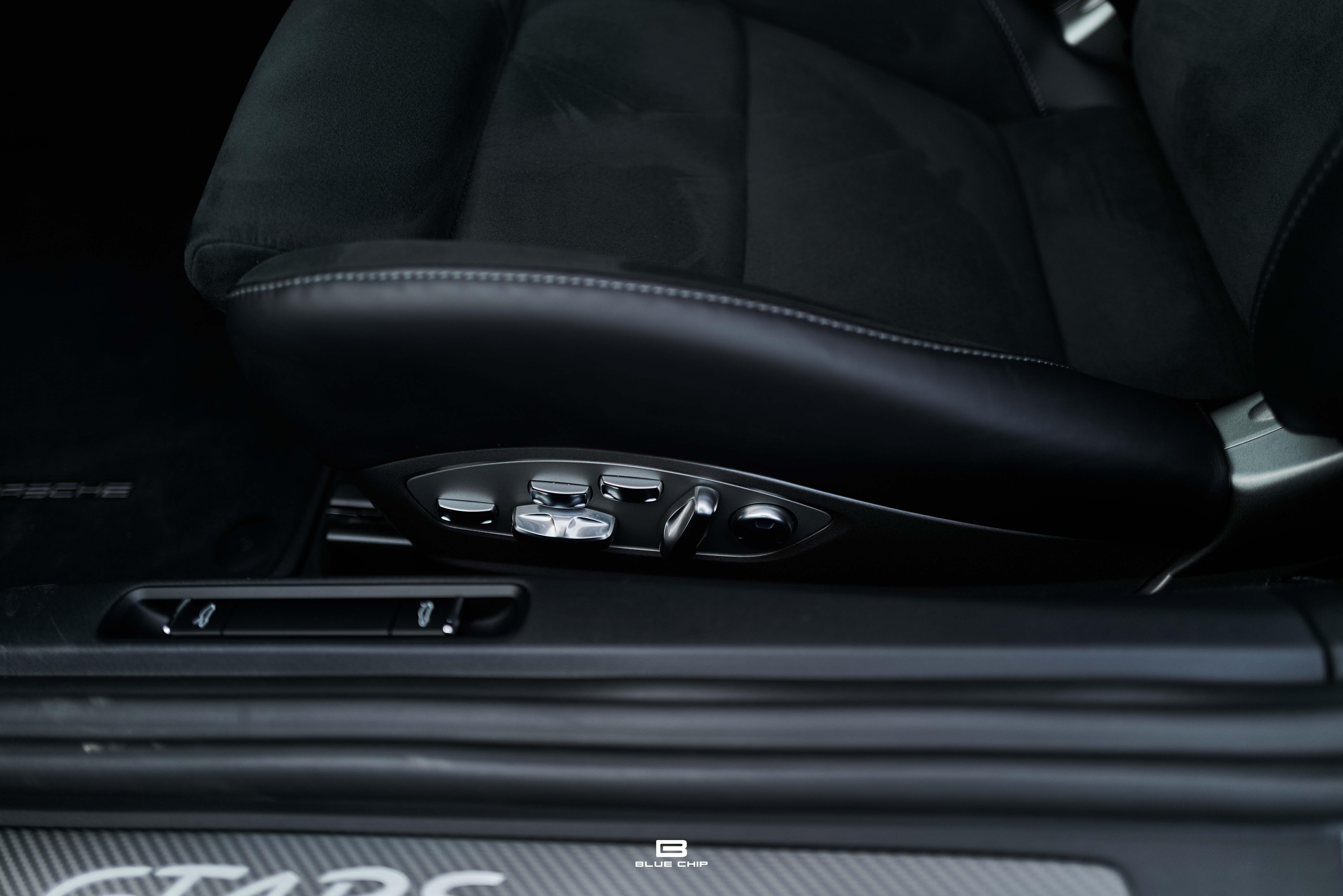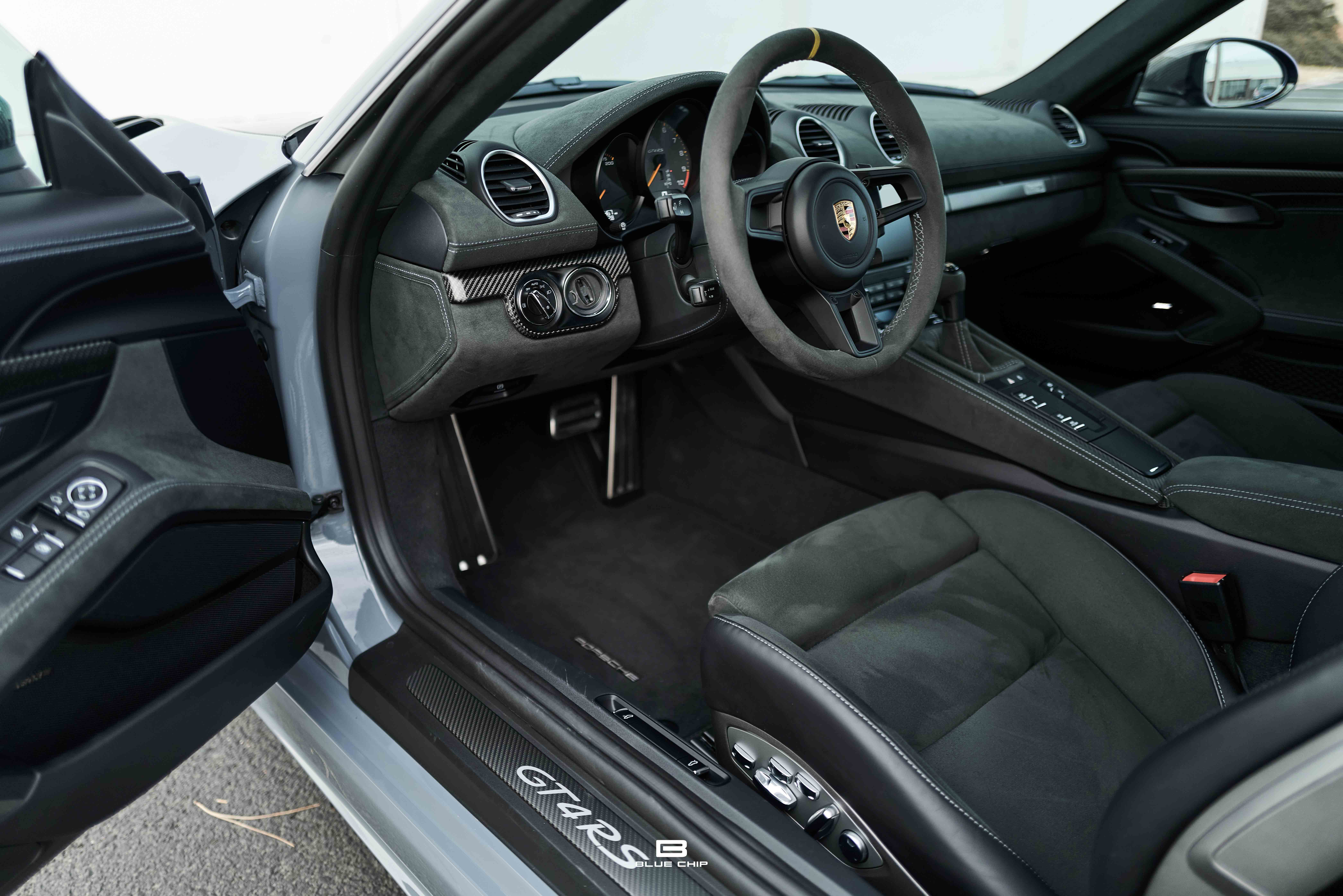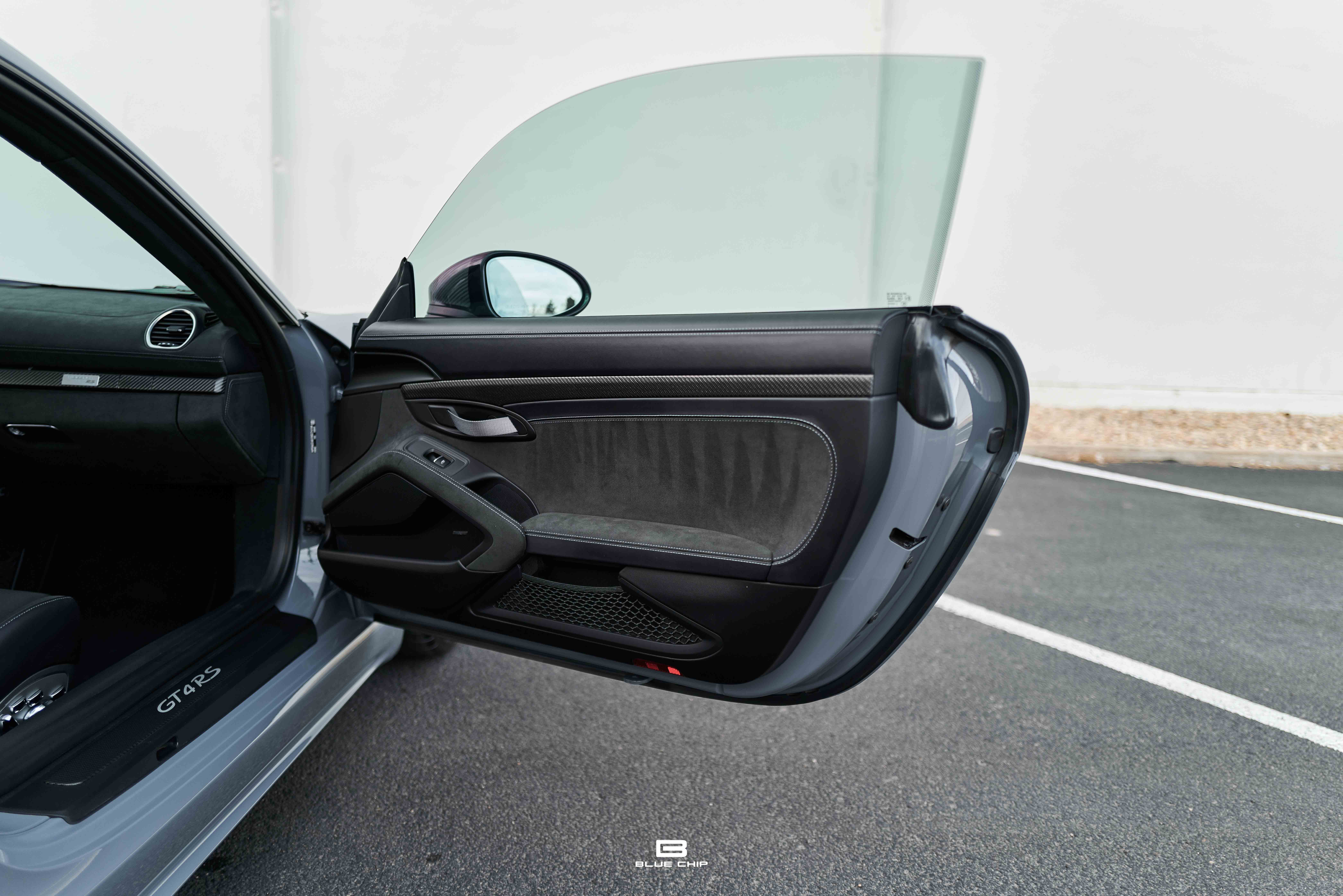 This example is finished in Arctic Grey over a black Leather and Race-Tex interior with matching Arctic Grey stitching. It carries the Weissach Package, Porsche Ceramic Composite Brakes, front axle lift system, Chrono Package, Carbon Fiber Window Triangles, Adaptive Sport Seats Plus with 18-way adjustment, heated seats, Bose Surround Sound, and the Light Design Package — a specification that covers both track-day utility and daily usability without compromise. At 2,467 miles, it has been lightly used and is presented in excellent condition.