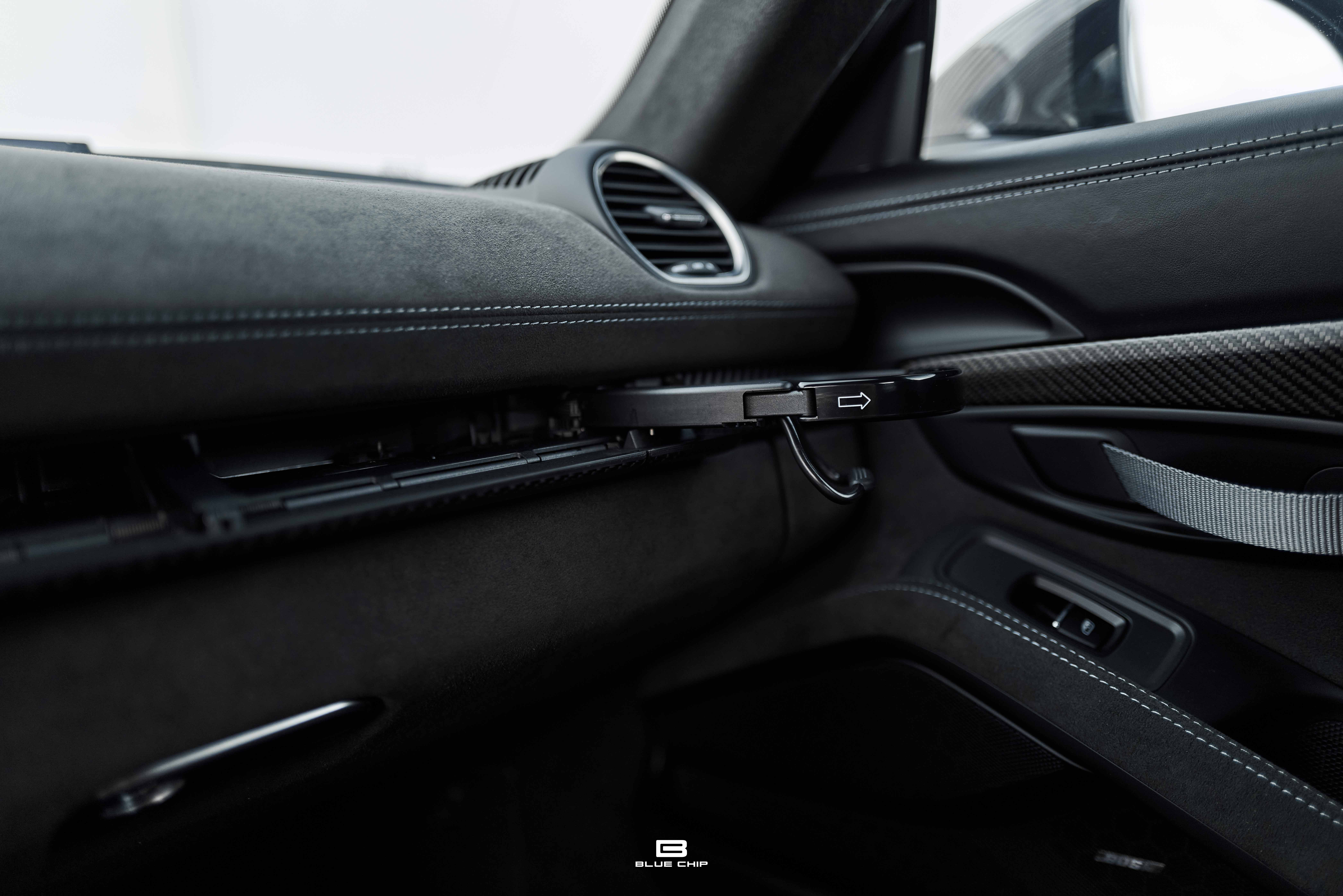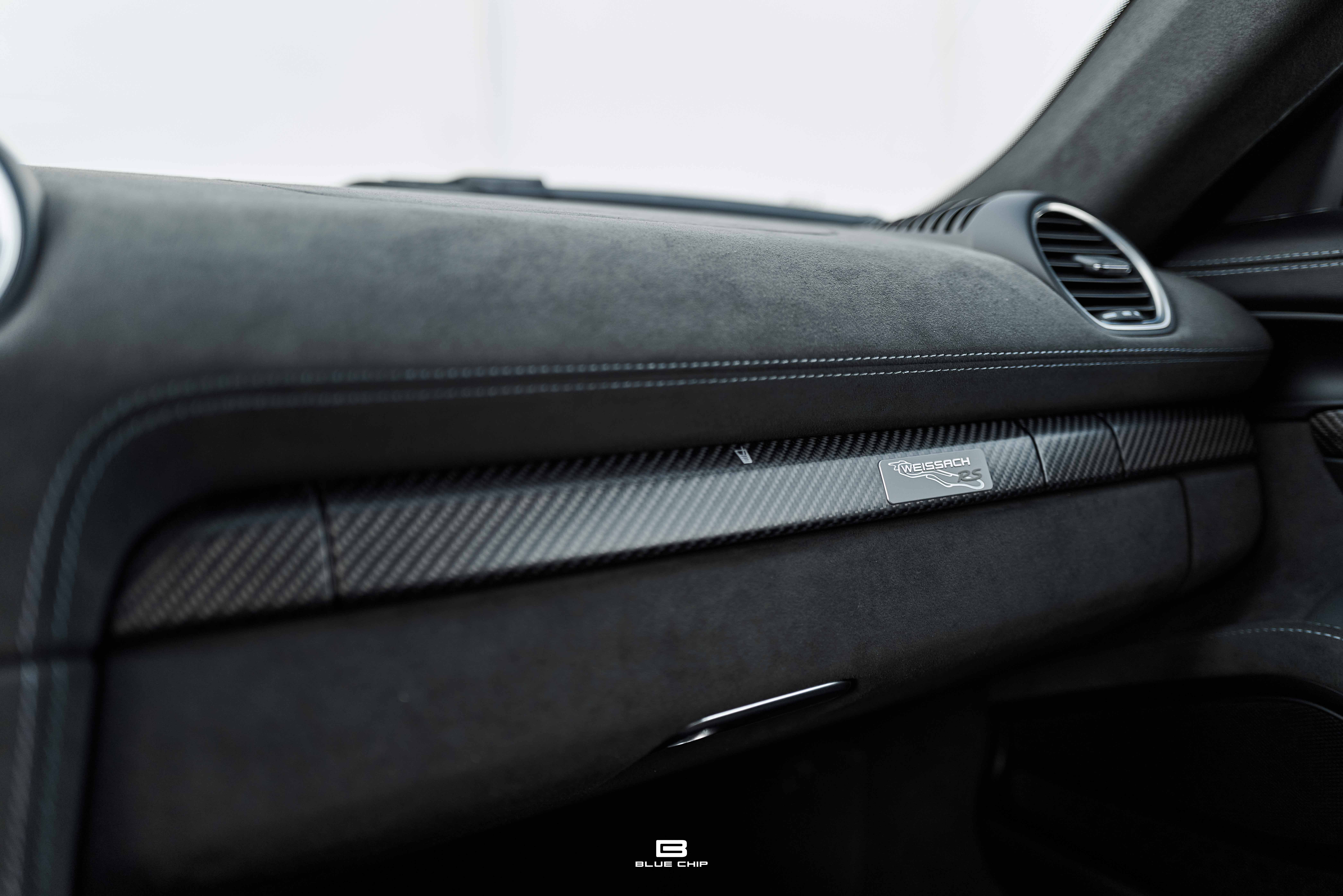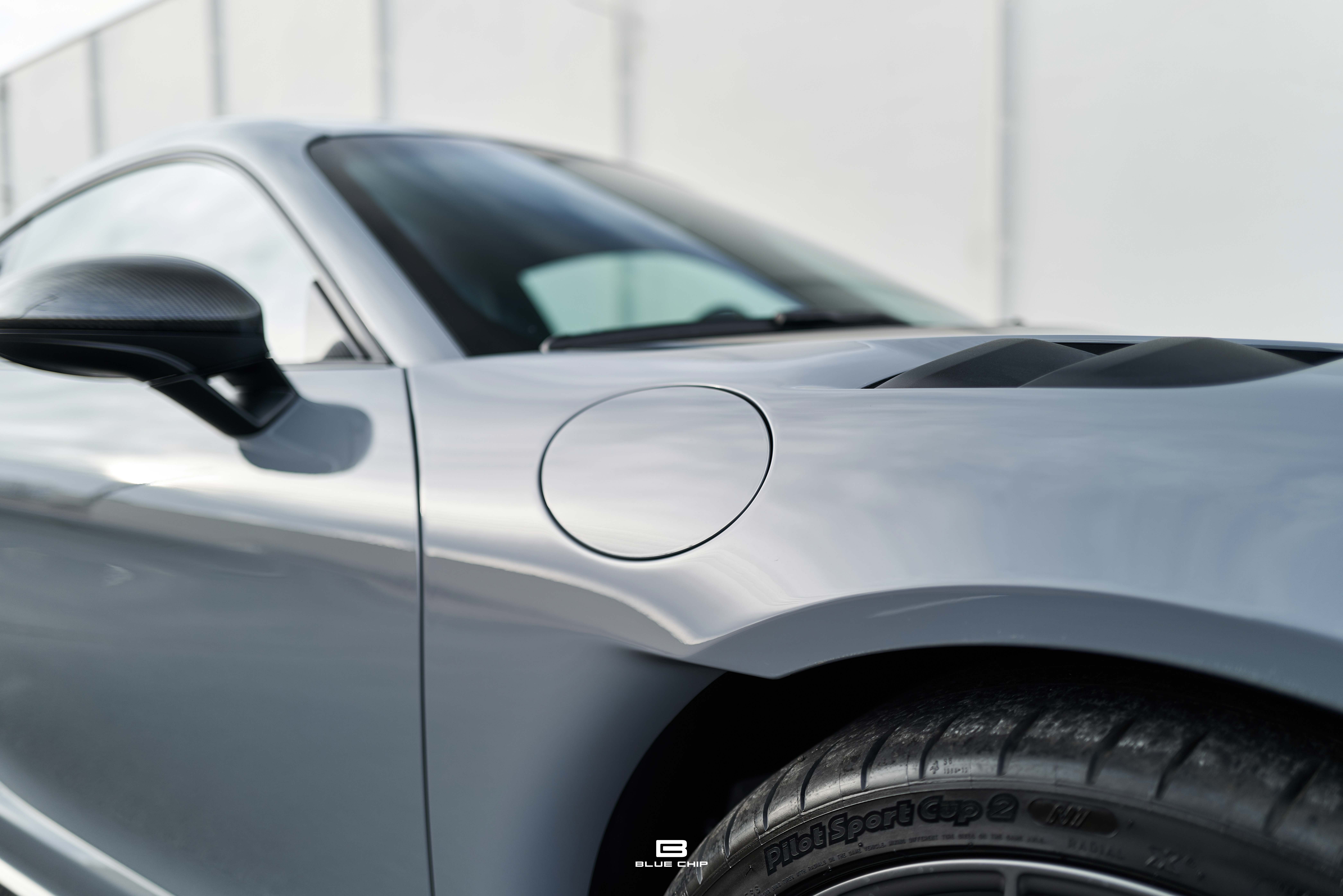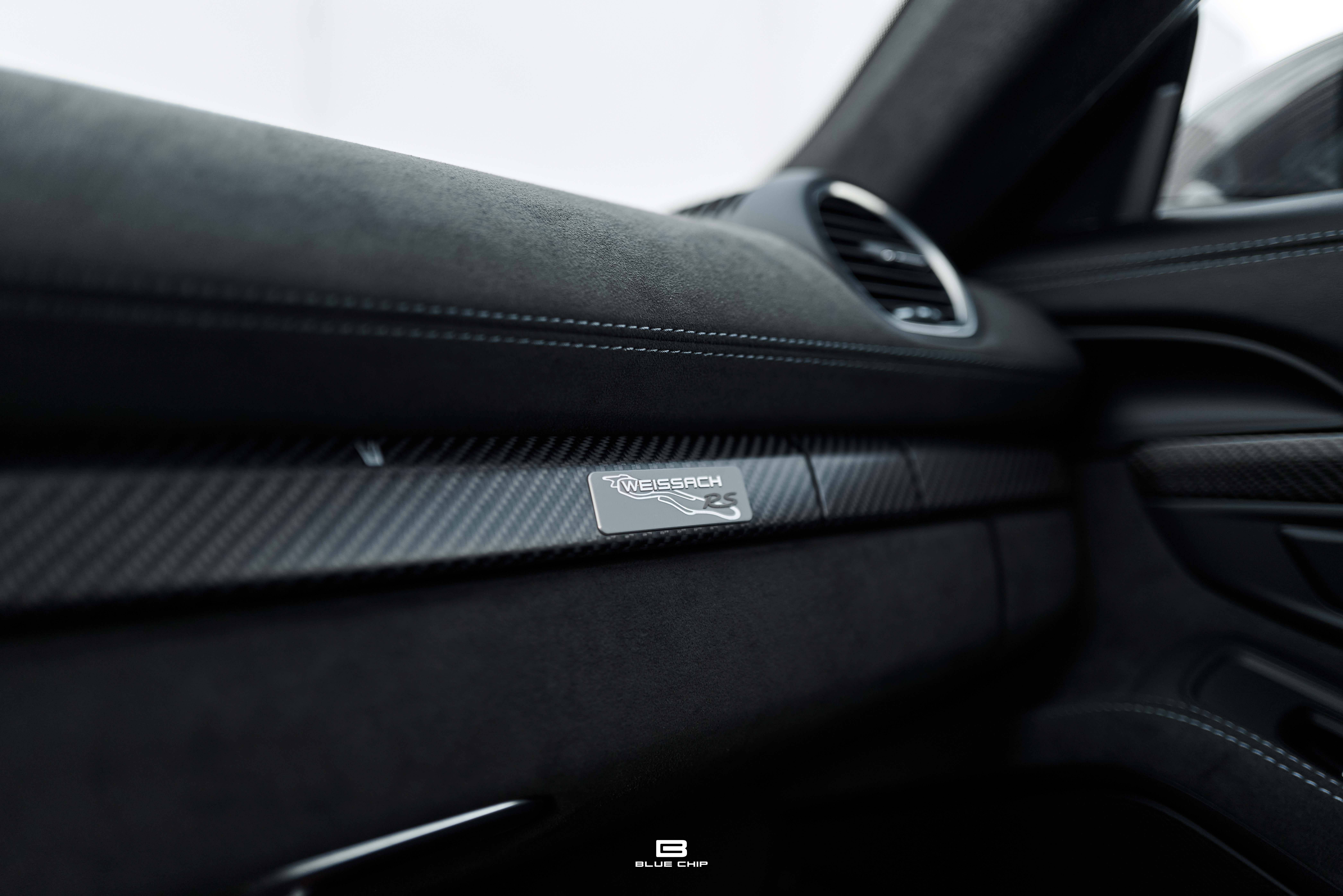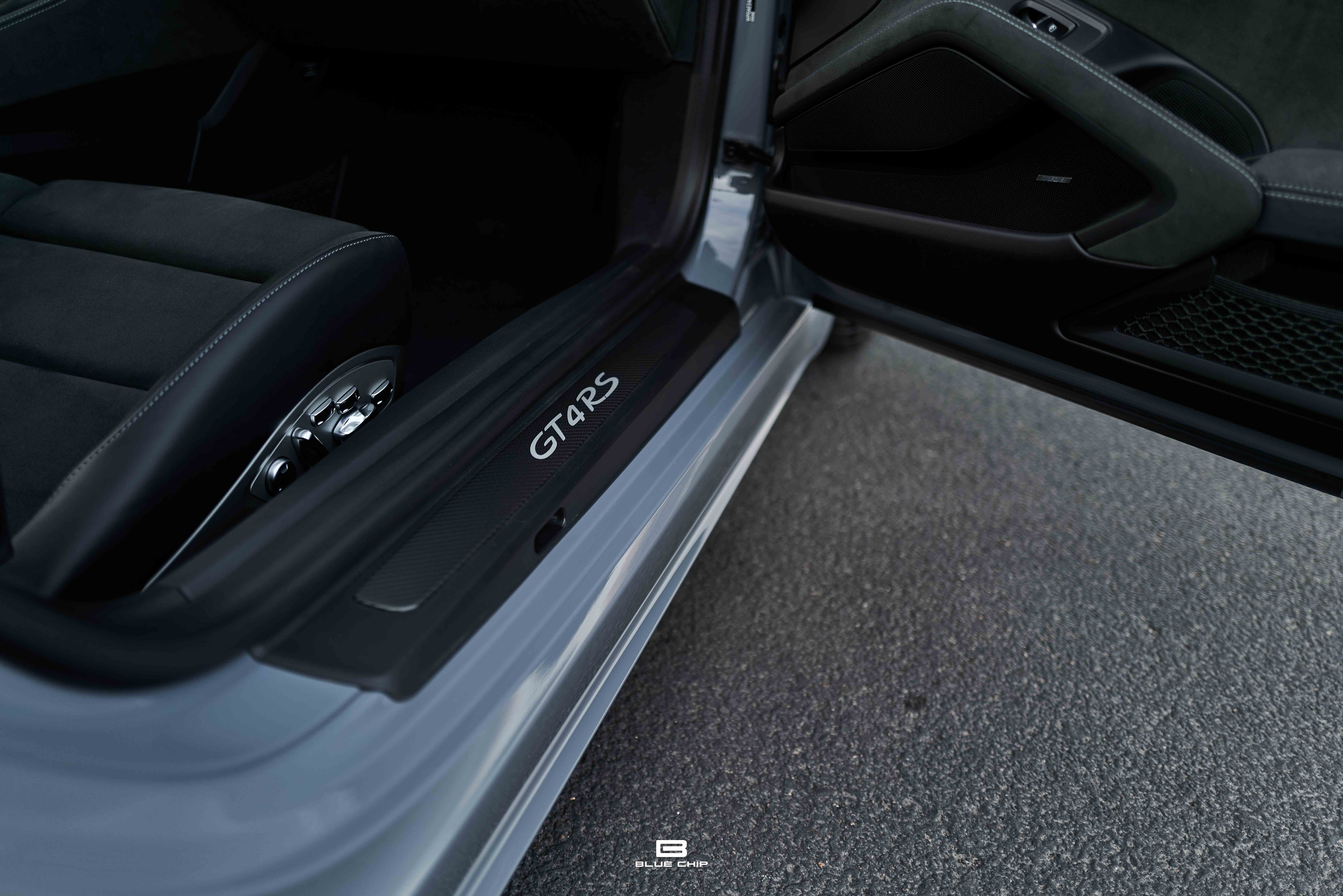 This example is finished in Arctic Grey over a black Leather and Race-Tex interior with matching Arctic Grey stitching. It carries the Weissach Package, Porsche Ceramic Composite Brakes, front axle lift system, Chrono Package, Carbon Fiber Window Triangles, Adaptive Sport Seats Plus with 18-way adjustment, heated seats, Bose Surround Sound, and the Light Design Package — a specification that covers both track-day utility and daily usability without compromise. At 2,467 miles, it has been lightly used and is presented in excellent condition.