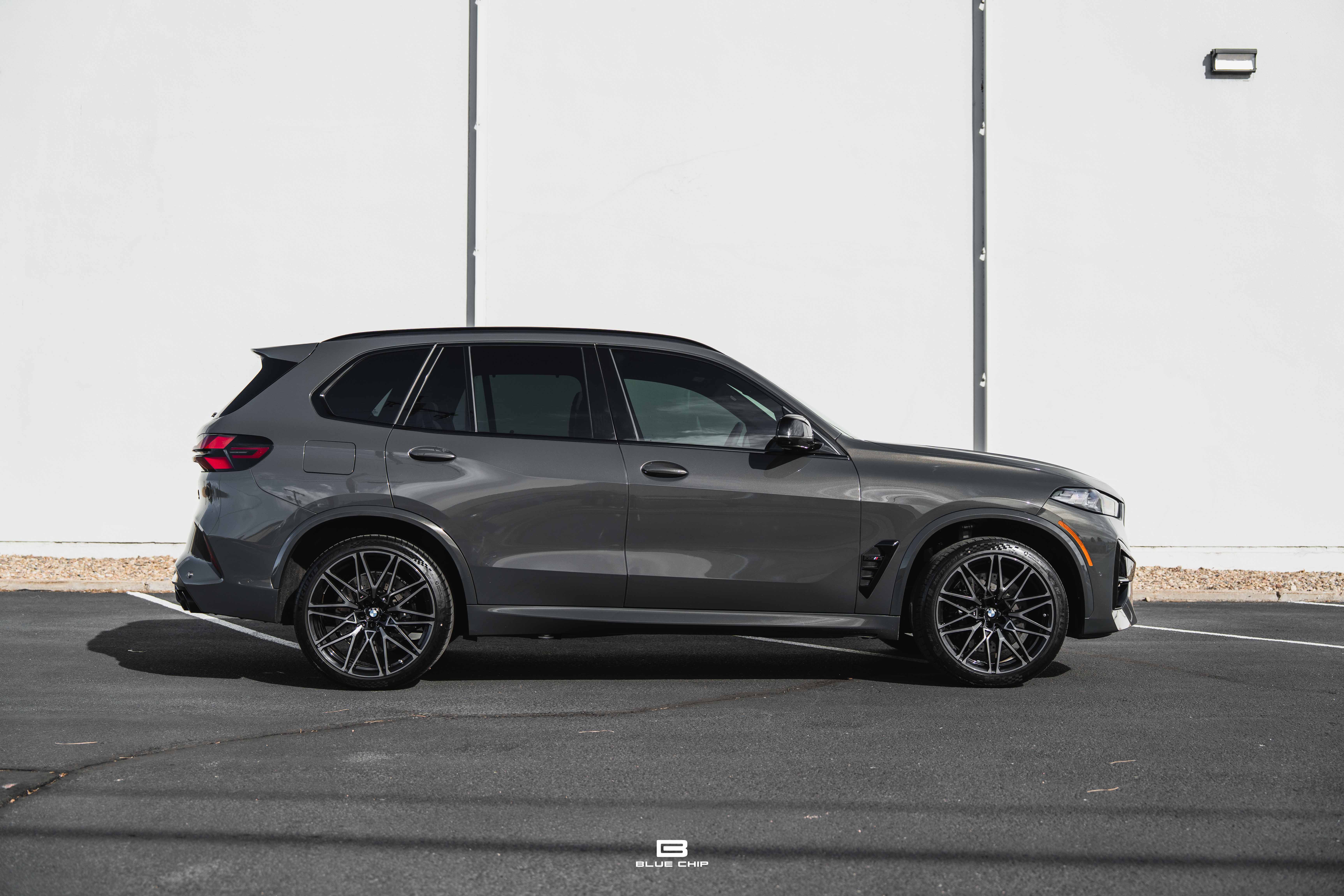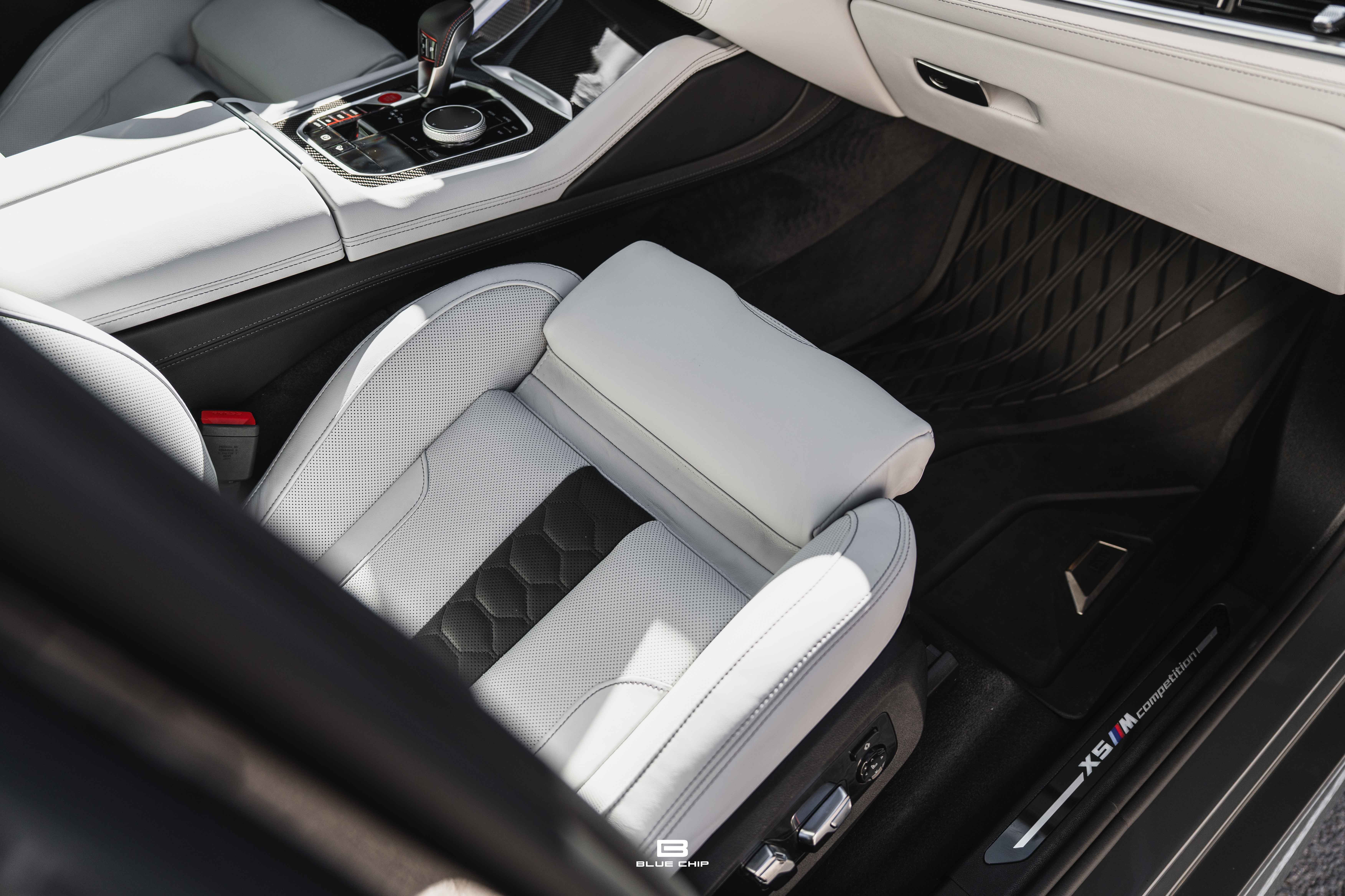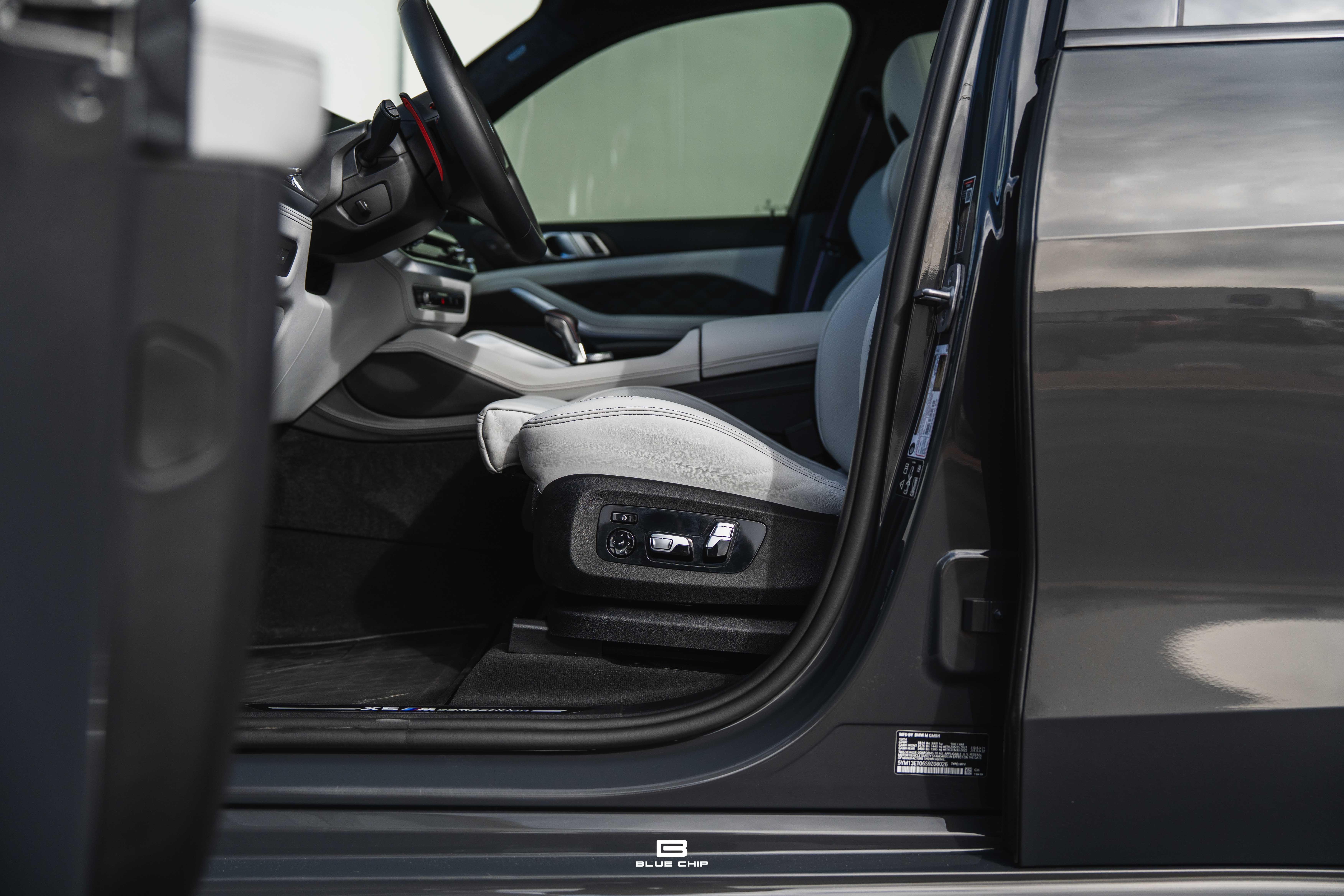 This 2025 BMW X5 M Competition shows just 8,121 miles from new and is finished in Dravit Grey Metallic over Individual Ivory White/Atlas Grey full leather. The understated exterior finish highlights the model’s purposeful design—defined by enlarged cooling apertures, quad exhaust outlets, and signature M aerodynamic detailing—while the Individual interior provides a tailored, high-luxury environment befitting its flagship status.