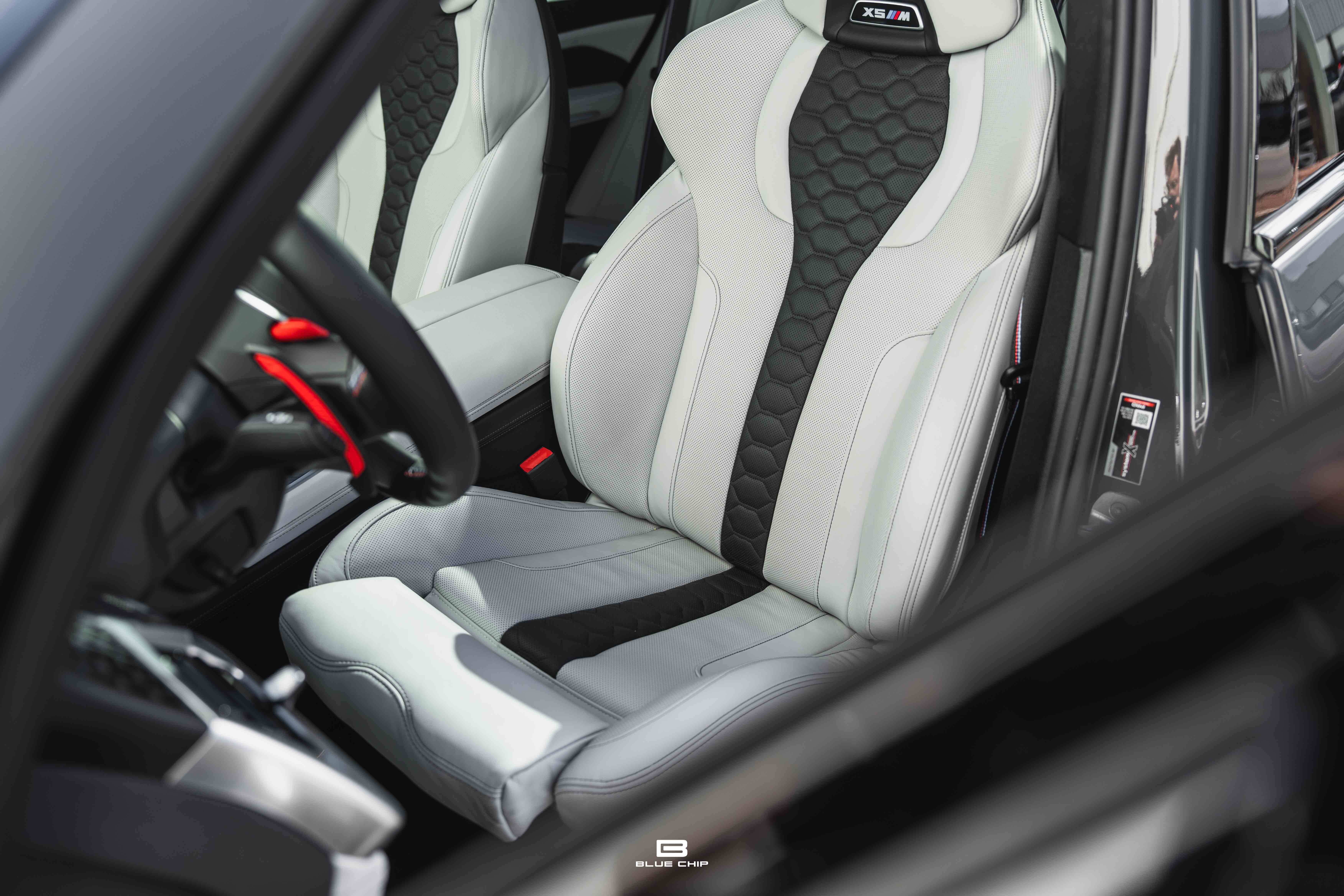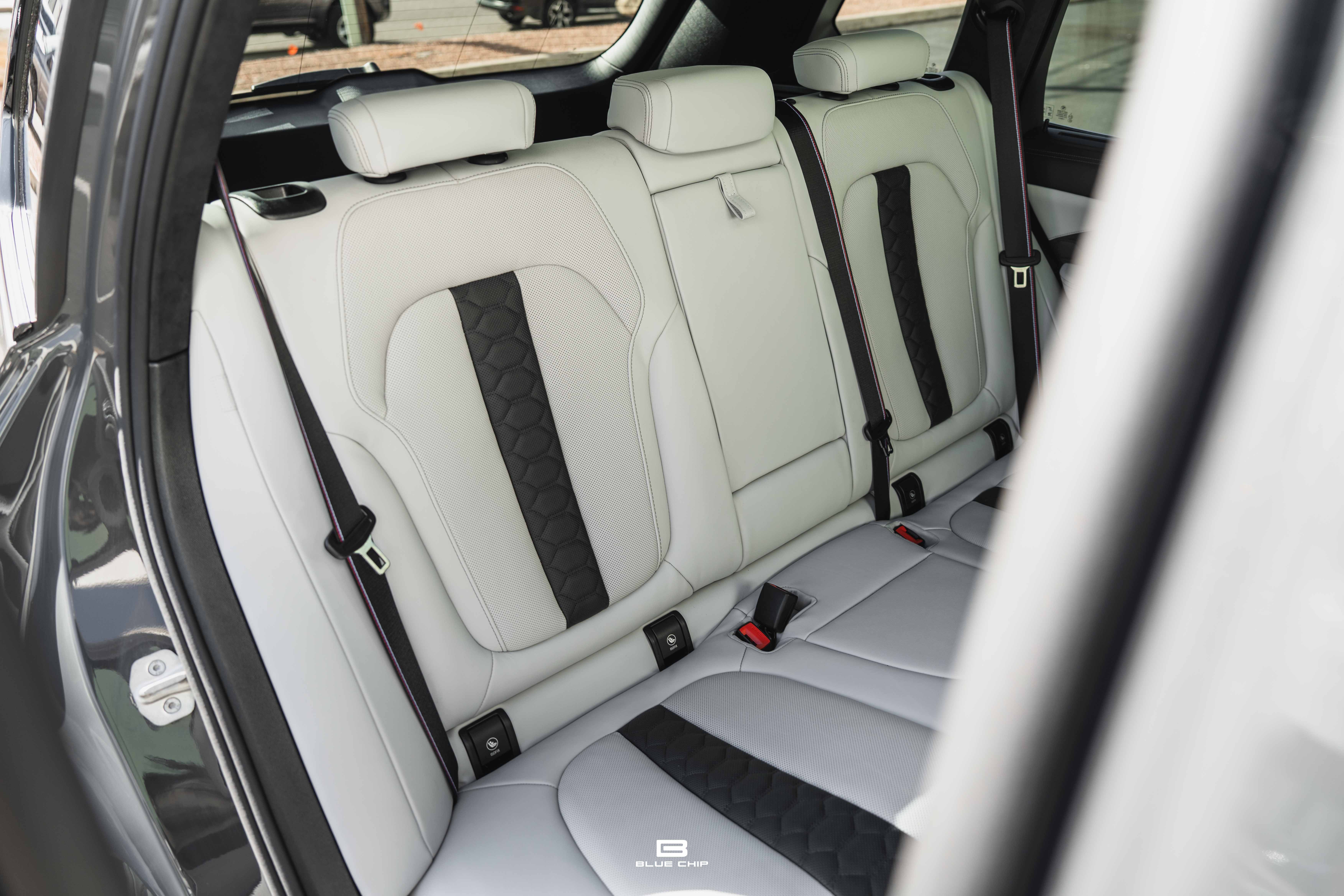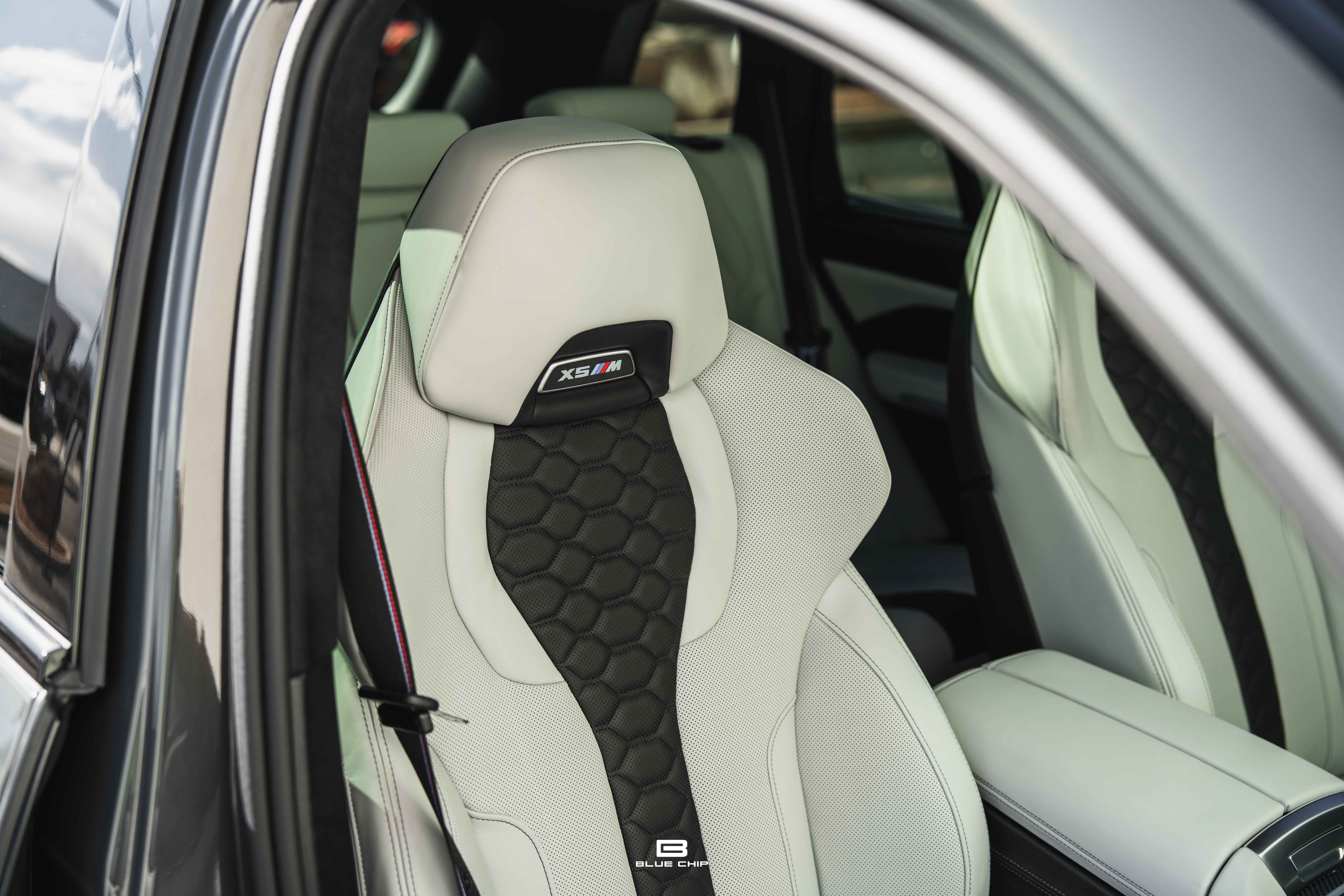 This 2025 BMW X5 M Competition shows just 8,121 miles from new and is finished in Dravit Grey Metallic over Individual Ivory White/Atlas Grey full leather. The understated exterior finish highlights the model’s purposeful design—defined by enlarged cooling apertures, quad exhaust outlets, and signature M aerodynamic detailing—while the Individual interior provides a tailored, high-luxury environment befitting its flagship status.