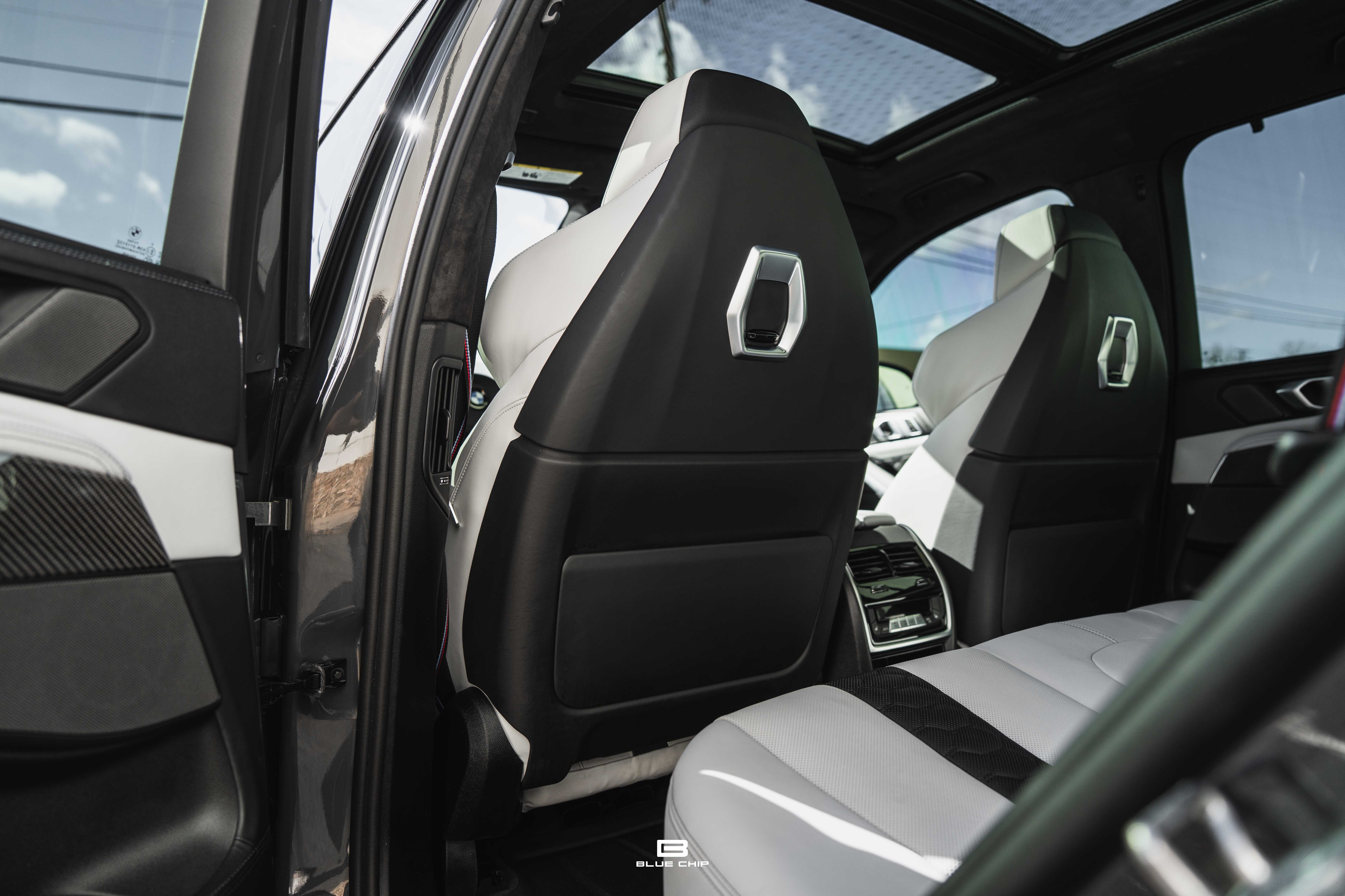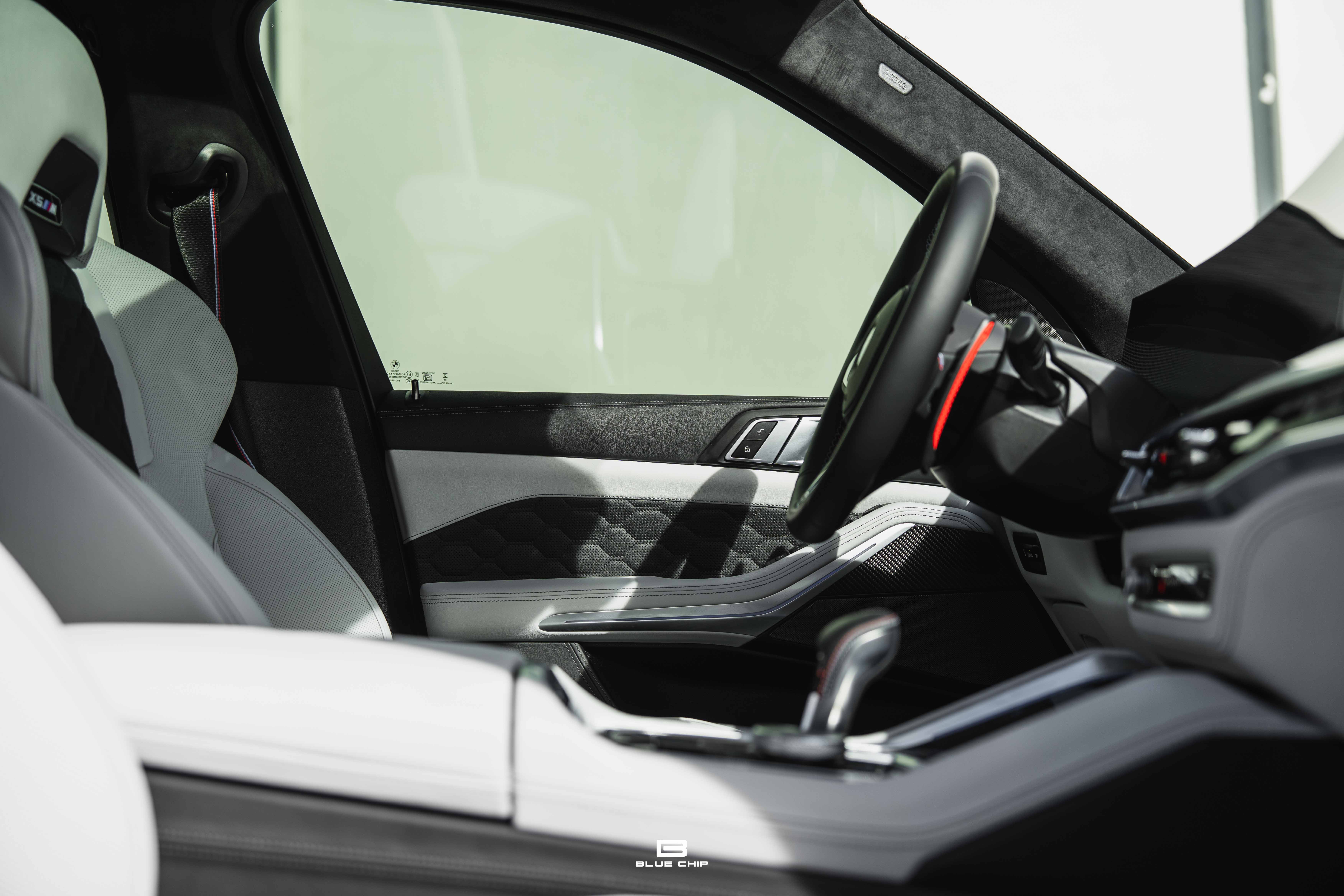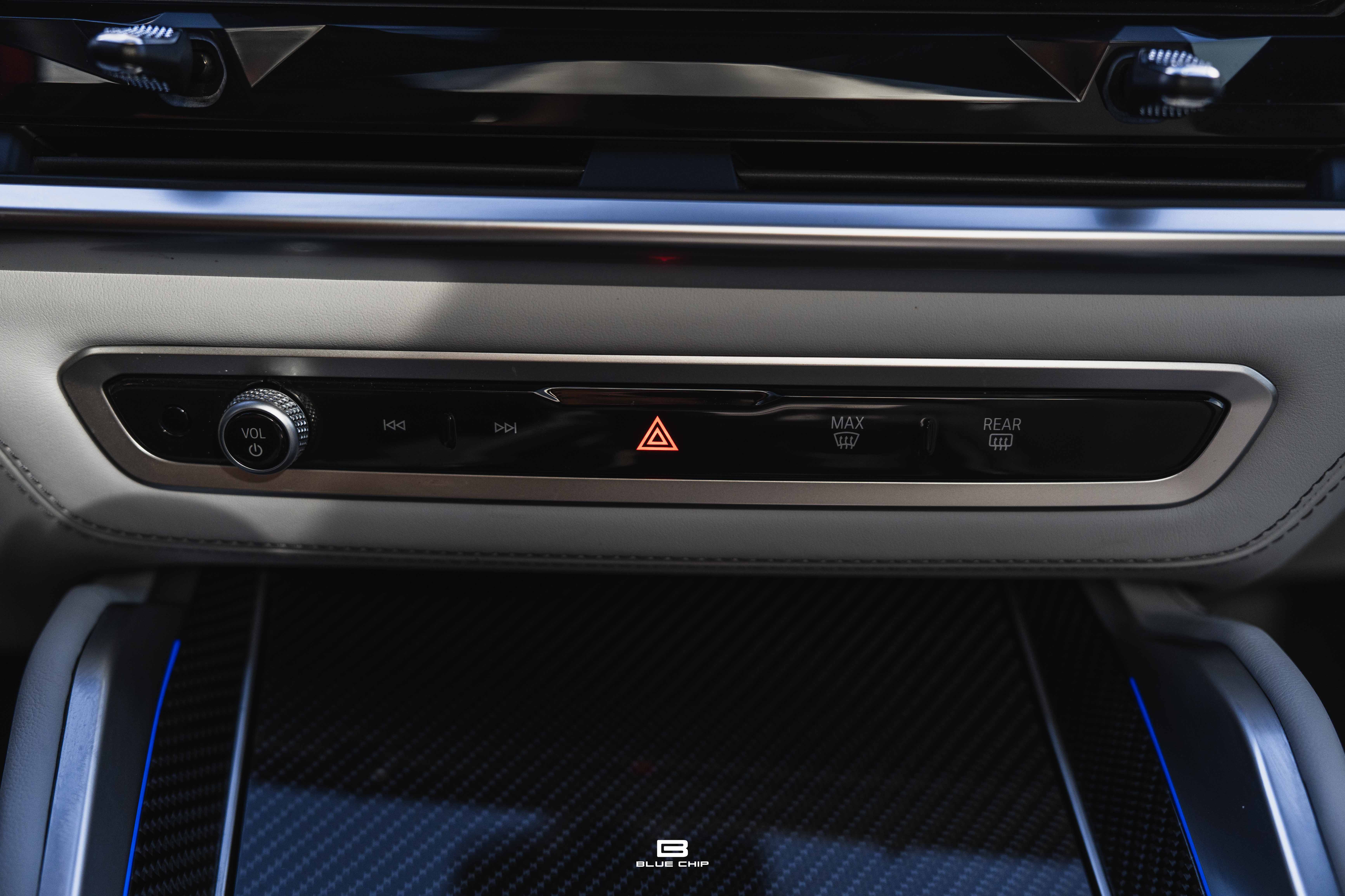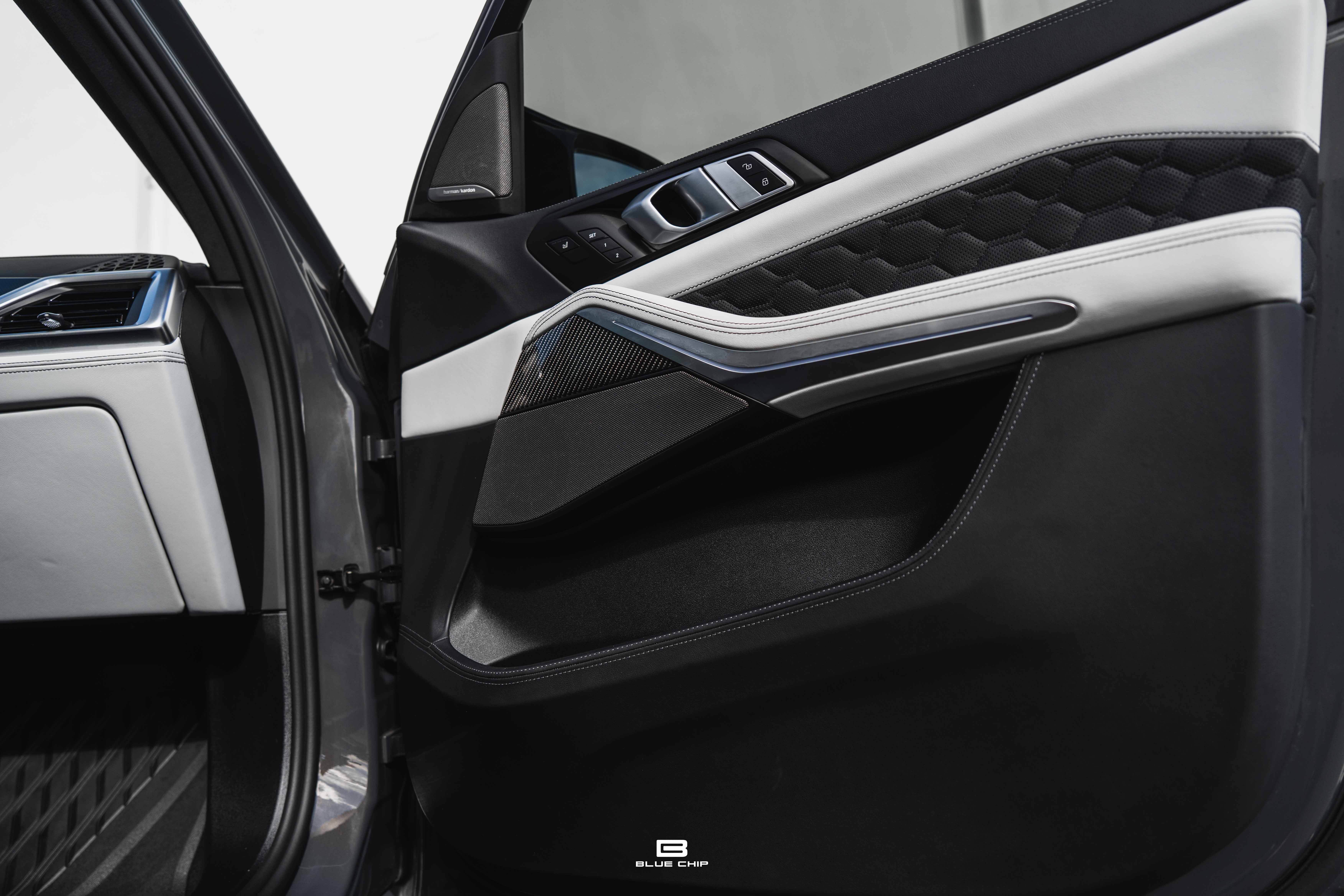 Inside, the cabin combines performance instrumentation with contemporary BMW technology, including a curved digital display interface, advanced driver-assistance systems, multi-zone climate control, heated and ventilated seating, and a premium surround audio system. Carbon fiber and extended leather surfaces reinforce the vehicle’s dual character as both high-performance machine and executive transport.