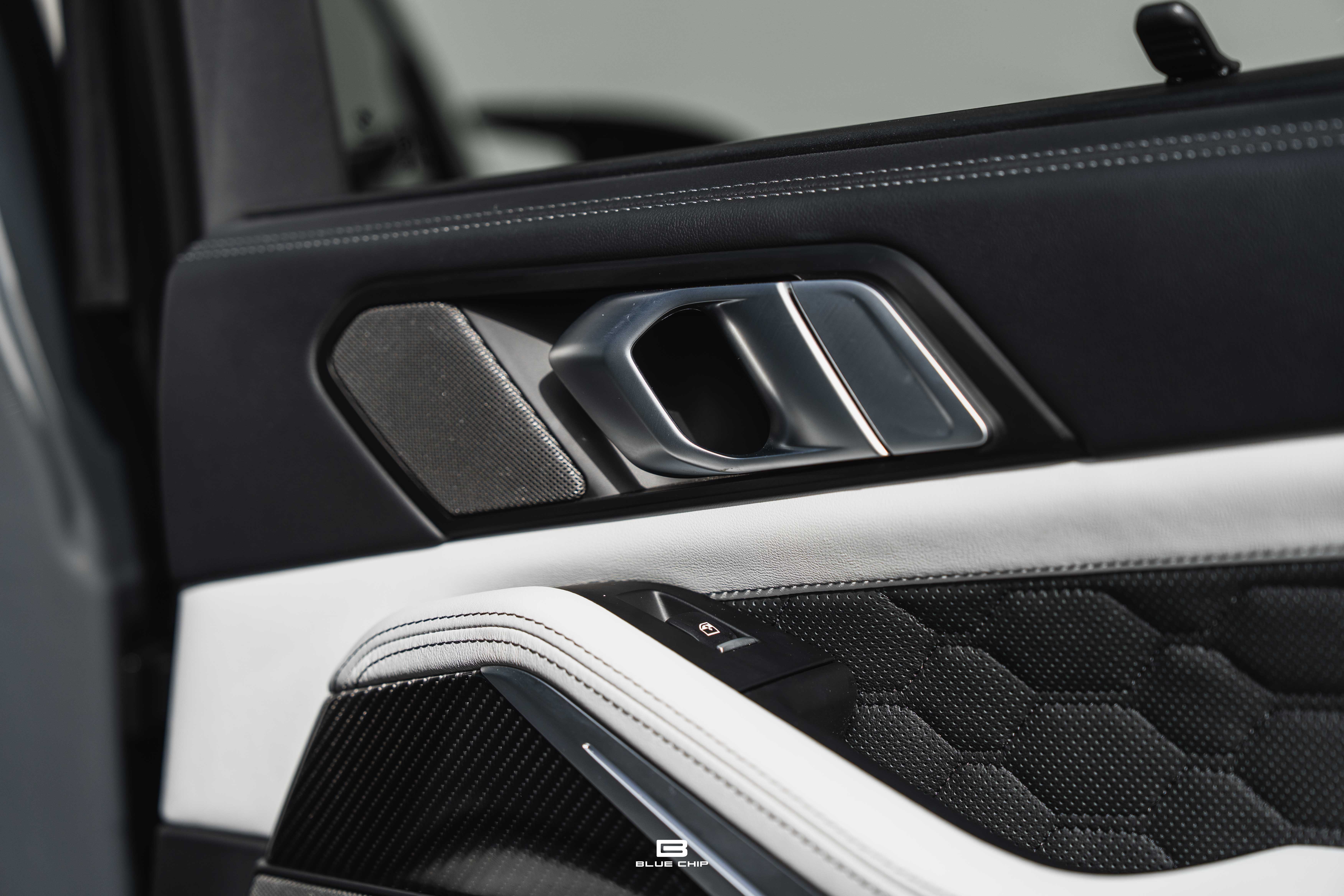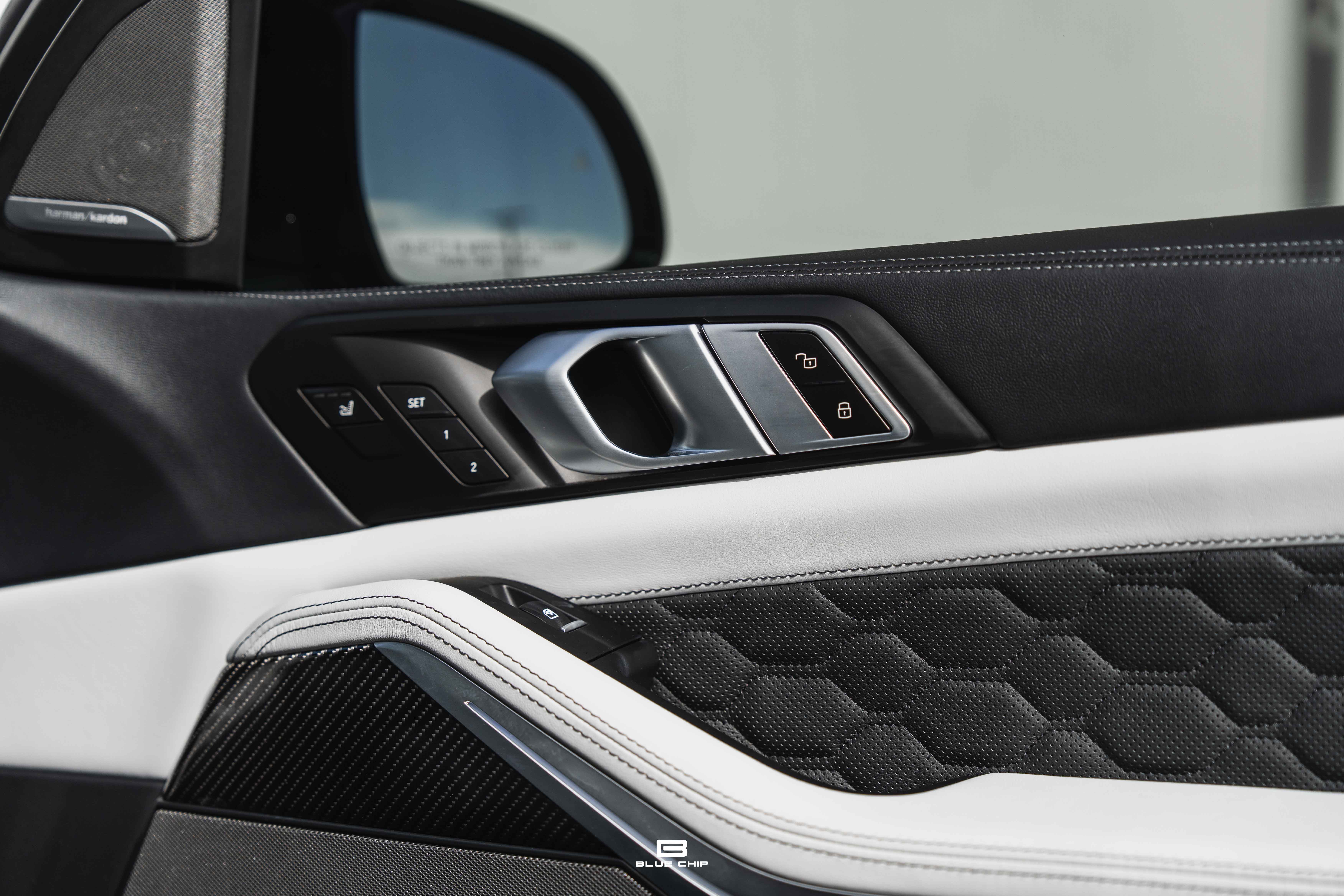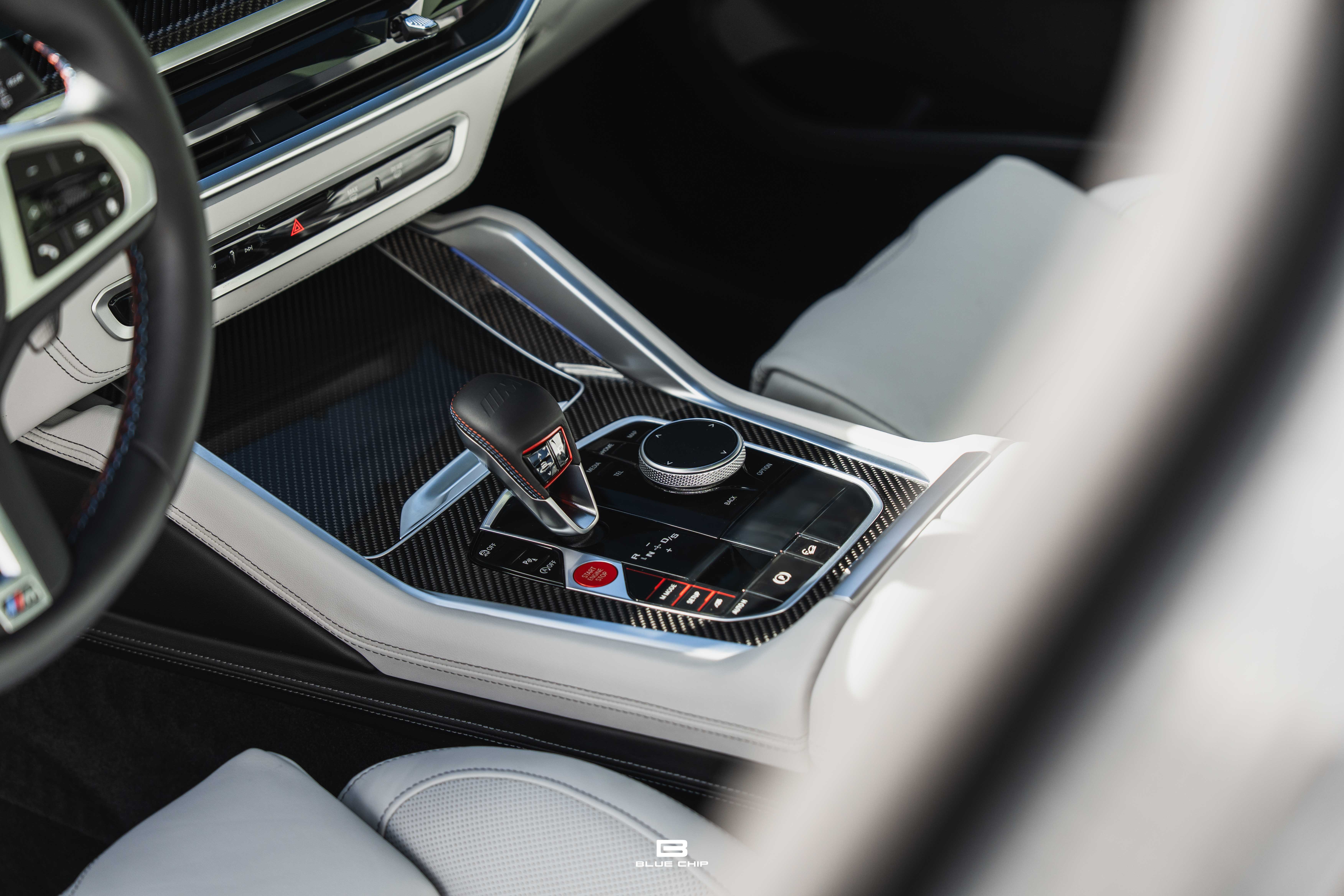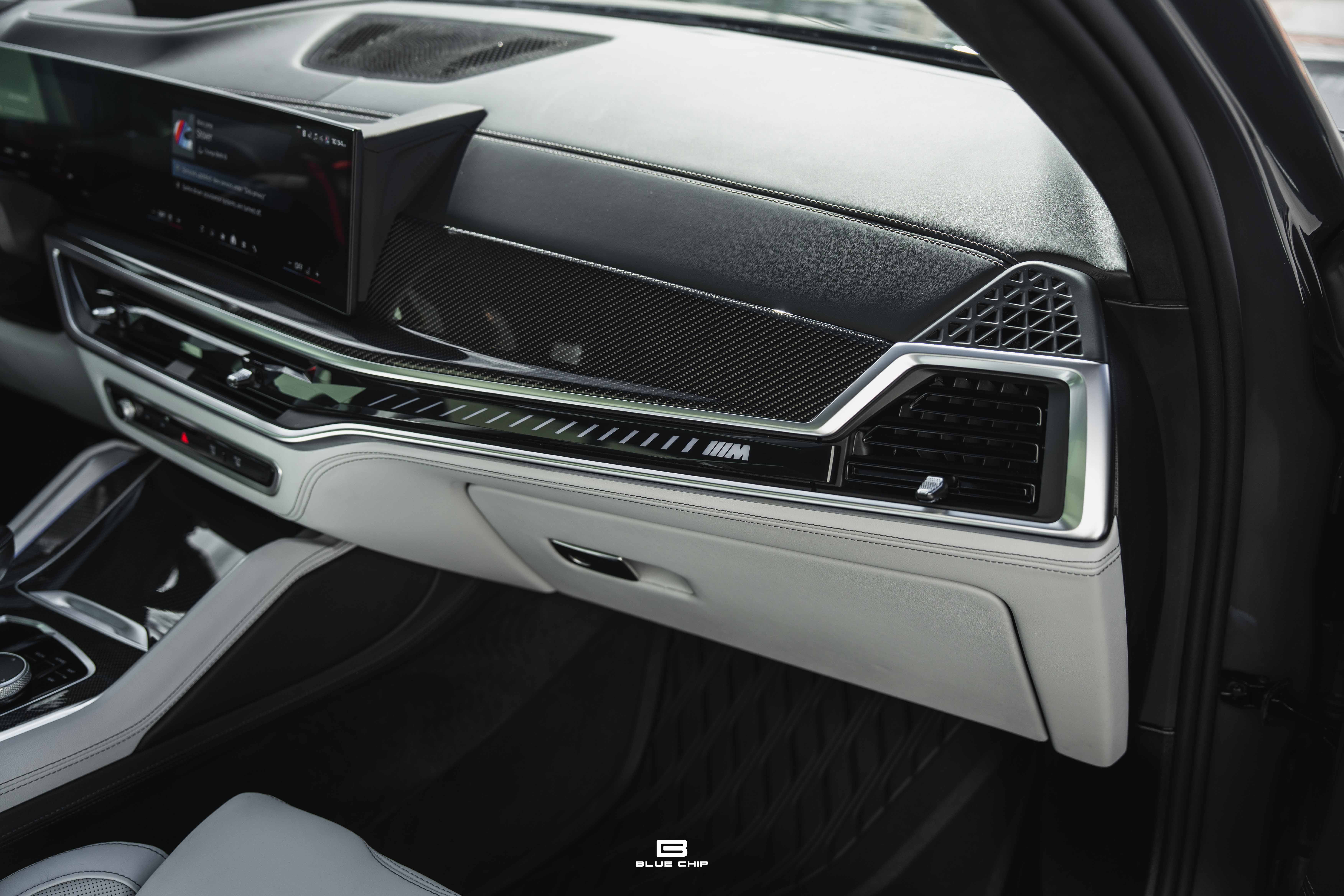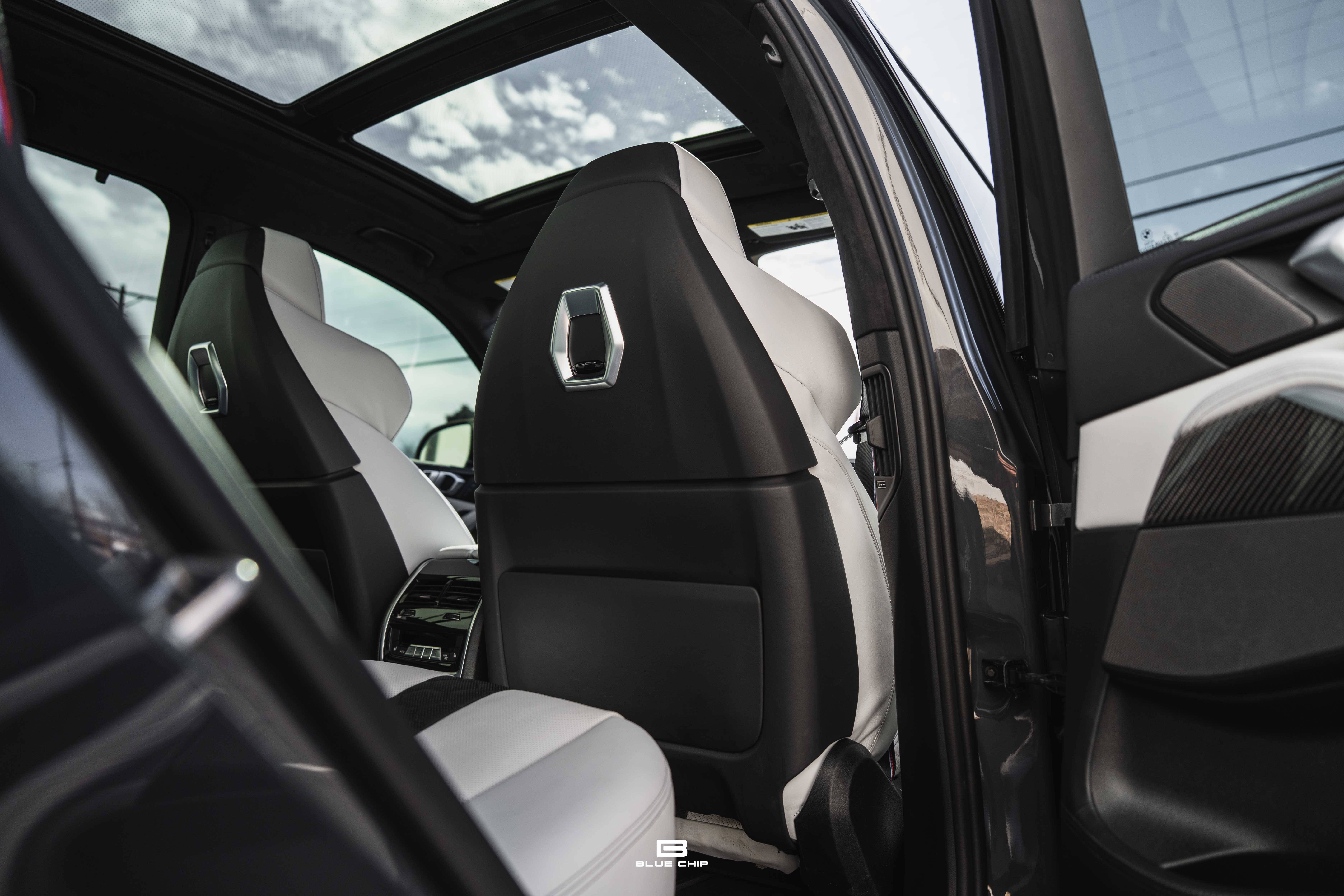Inside, the cabin combines performance instrumentation with contemporary BMW technology, including a curved digital display interface, advanced driver-assistance systems, multi-zone climate control, heated and ventilated seating, and a premium surround audio system. Carbon fiber and extended leather surfaces reinforce the vehicle’s dual character as both high-performance machine and executive transport.
