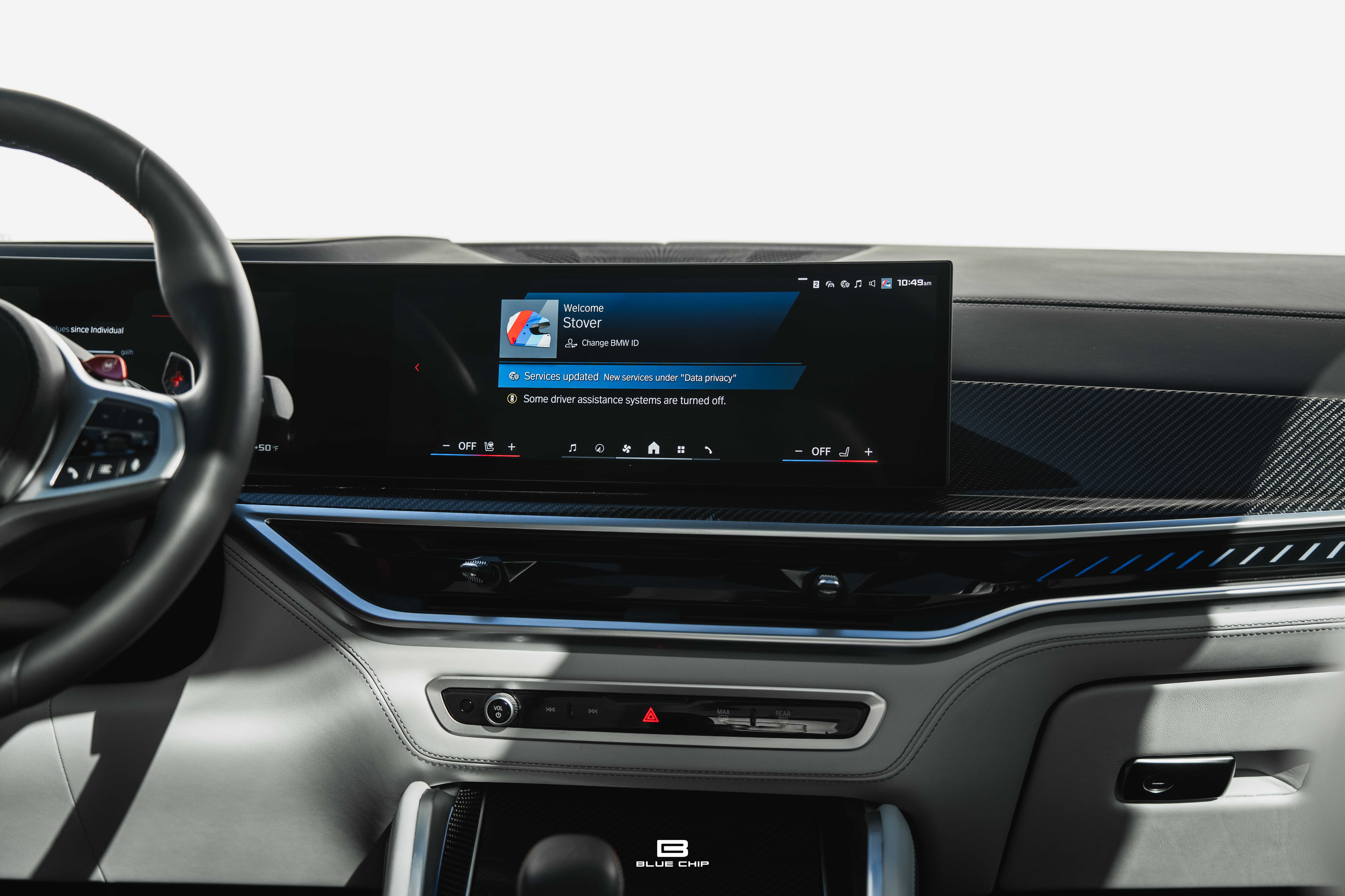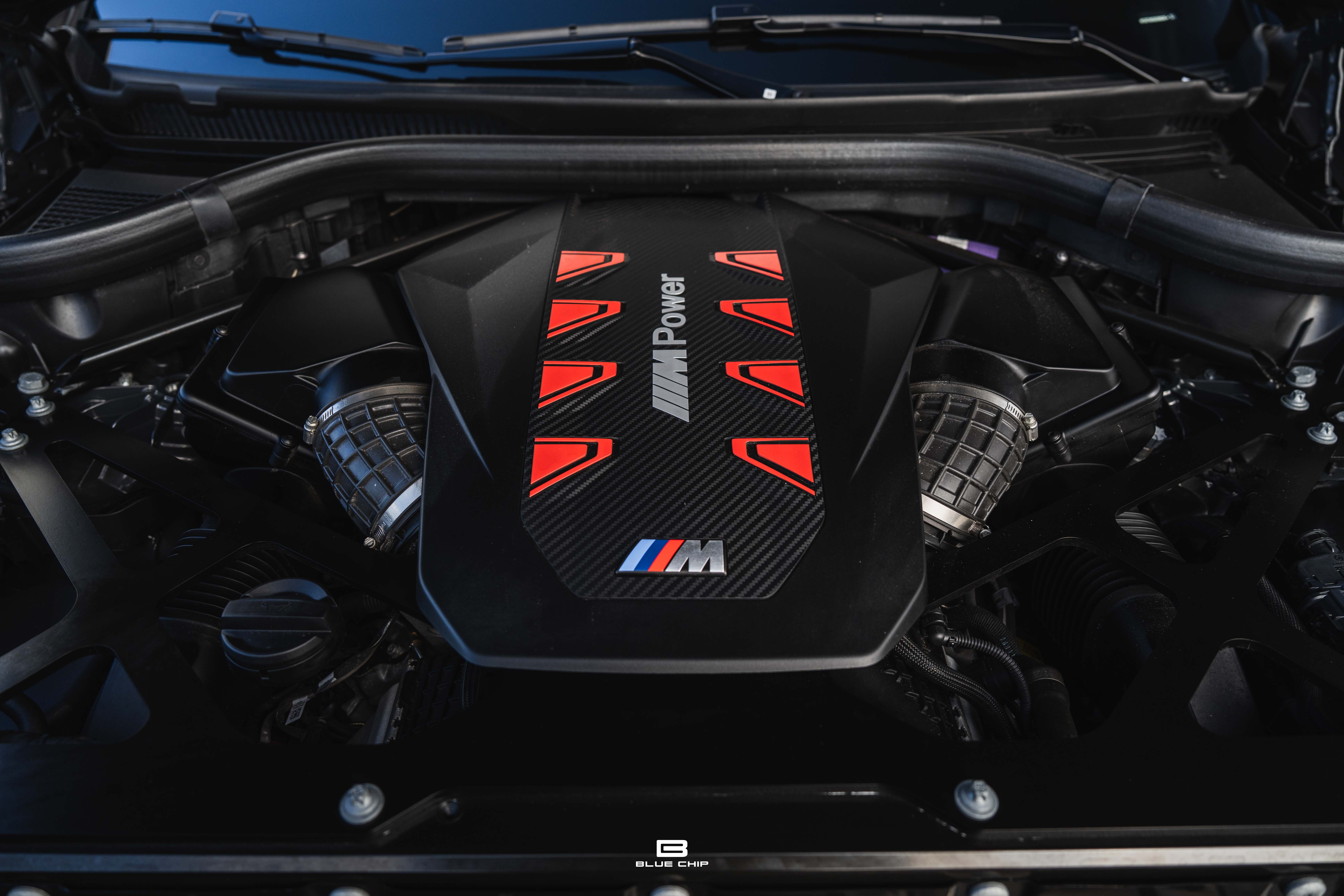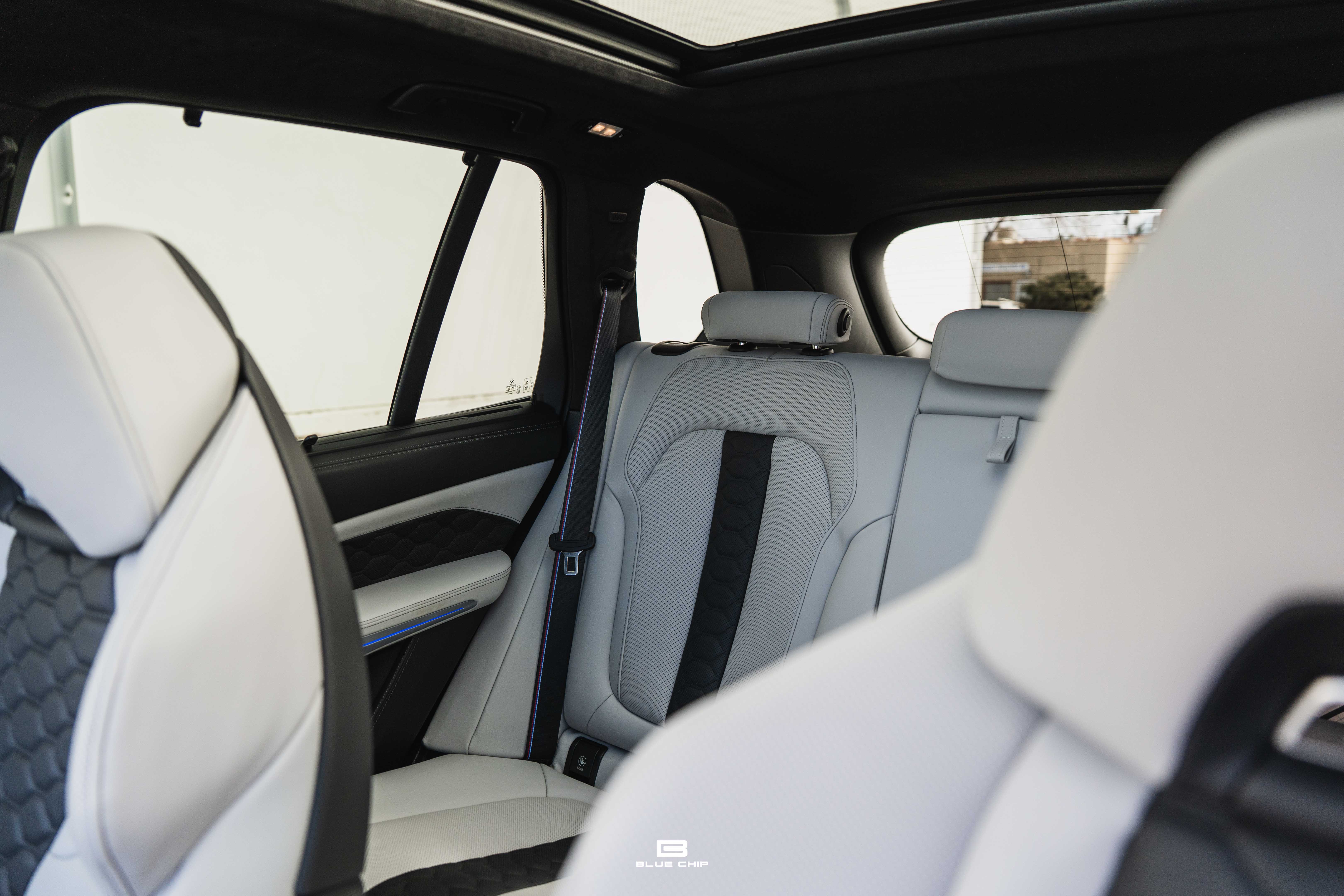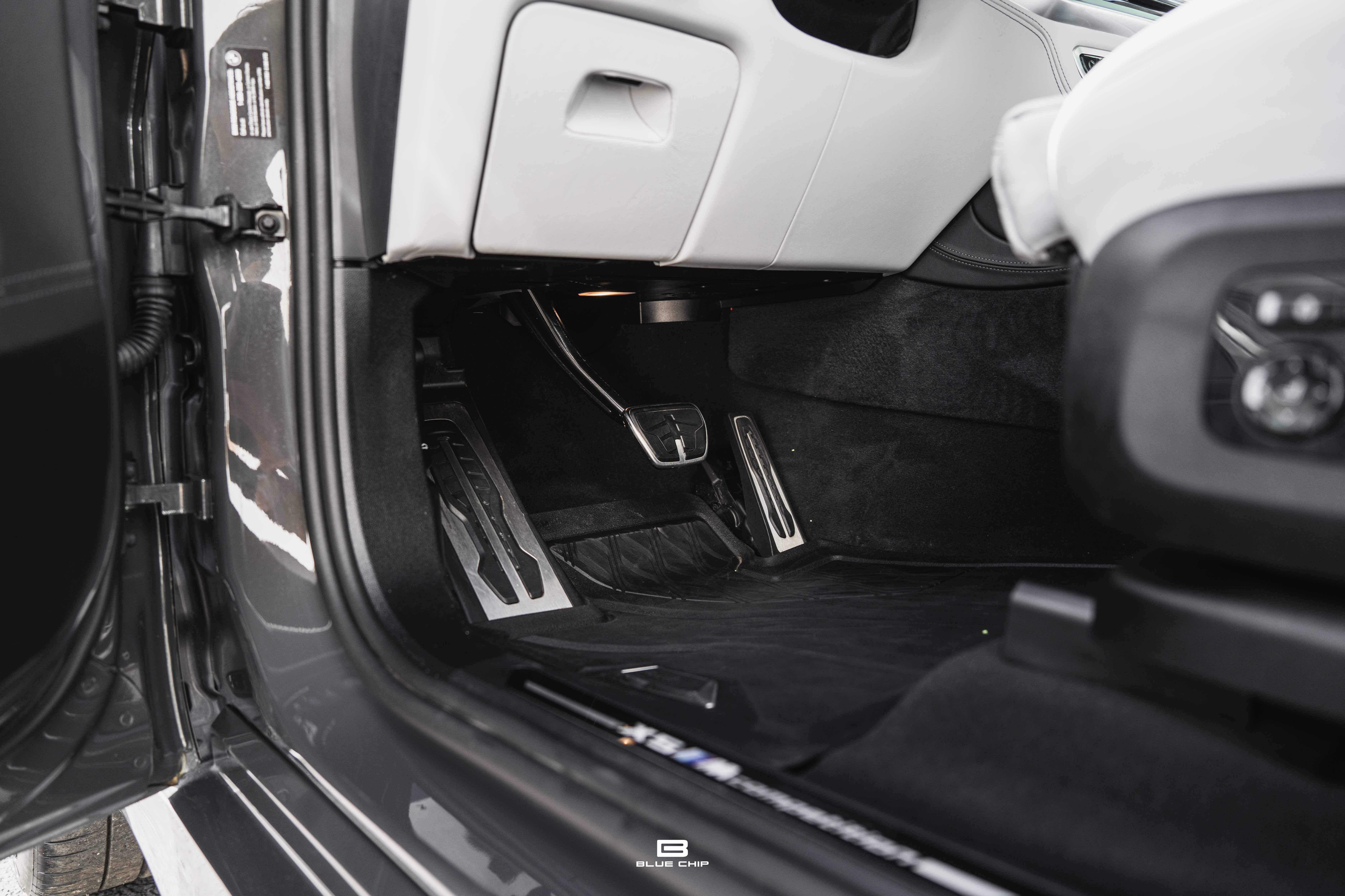 Inside, the cabin combines performance instrumentation with contemporary BMW technology, including a curved digital display interface, advanced driver-assistance systems, multi-zone climate control, heated and ventilated seating, and a premium surround audio system. Carbon fiber and extended leather surfaces reinforce the vehicle’s dual character as both high-performance machine and executive transport.
