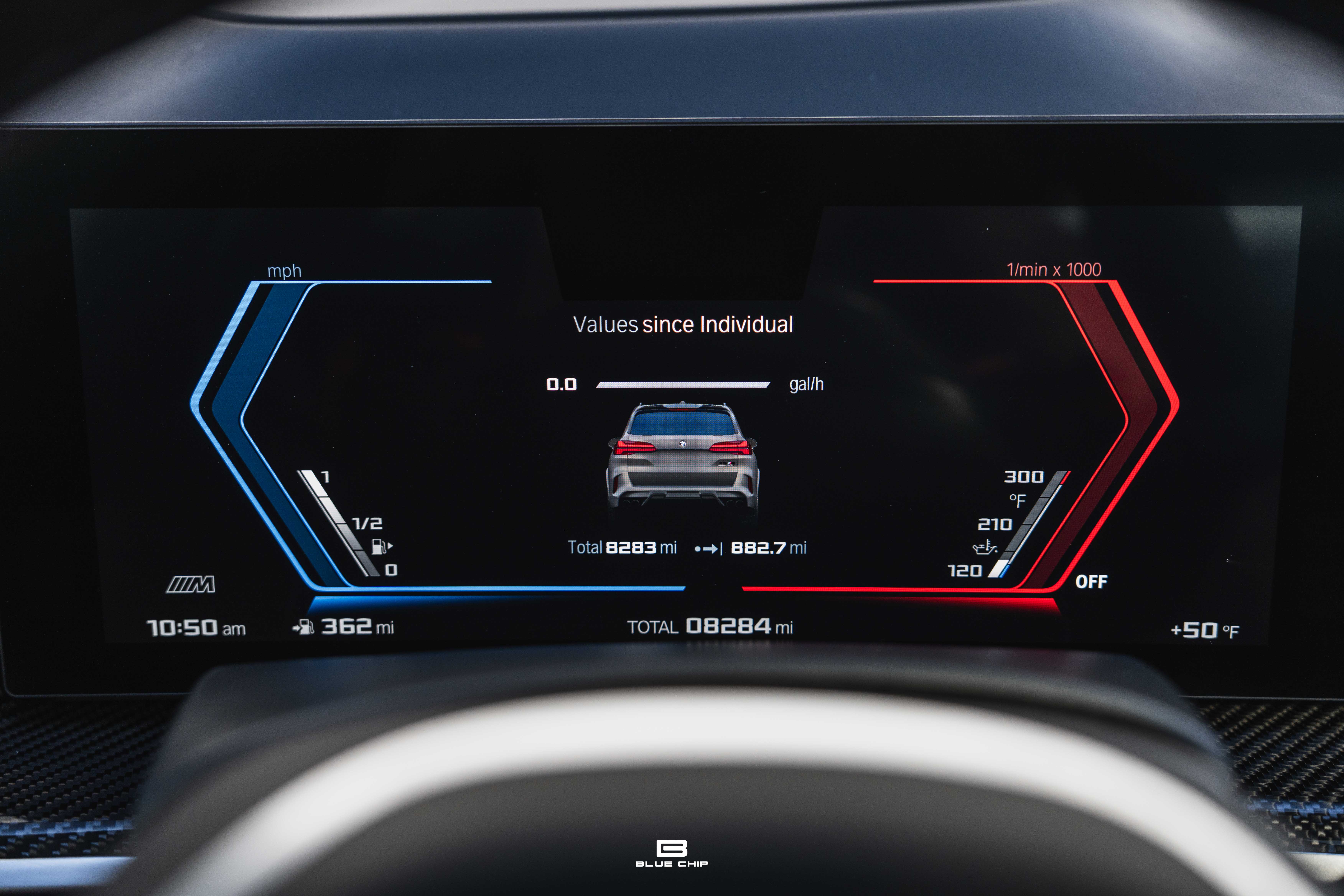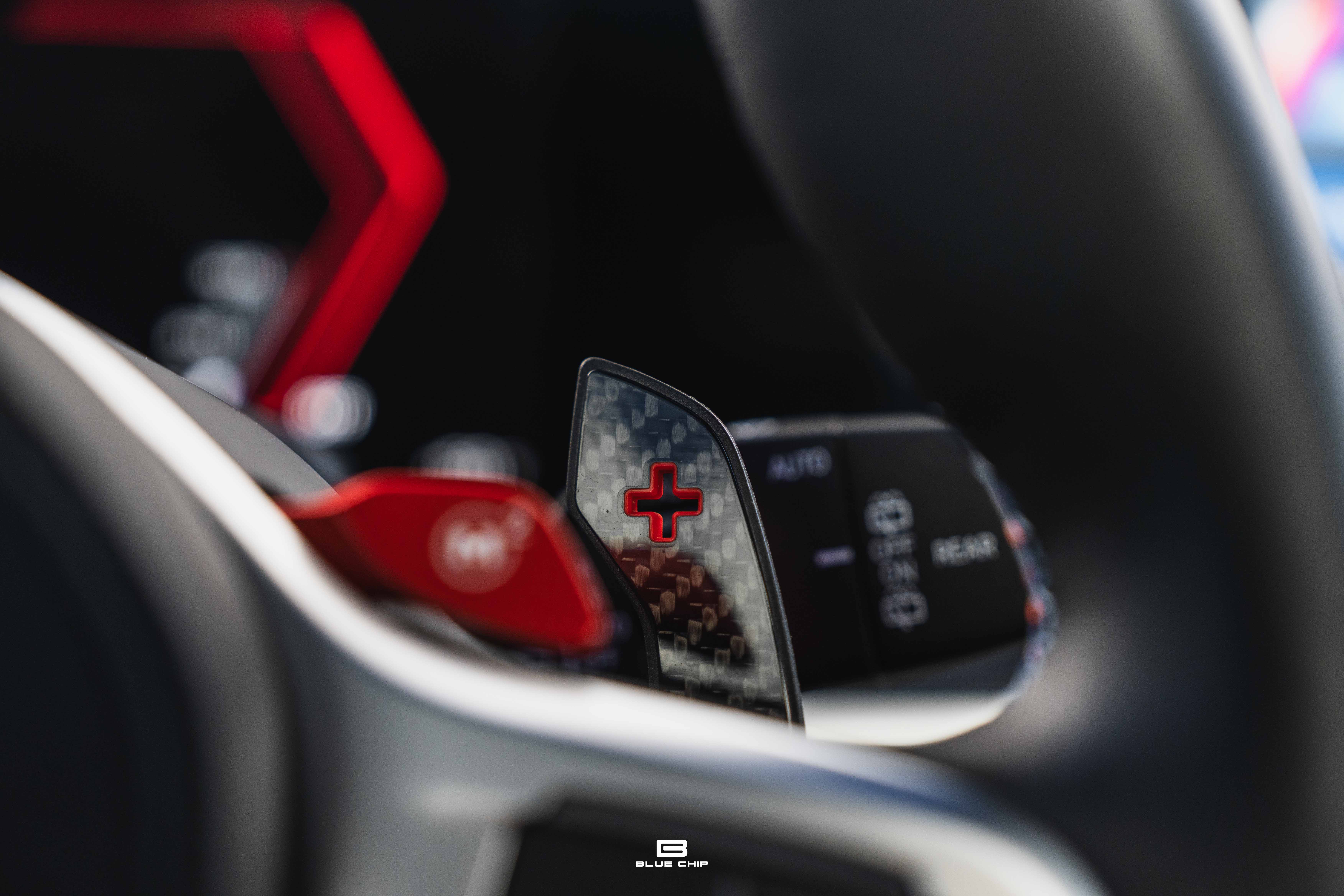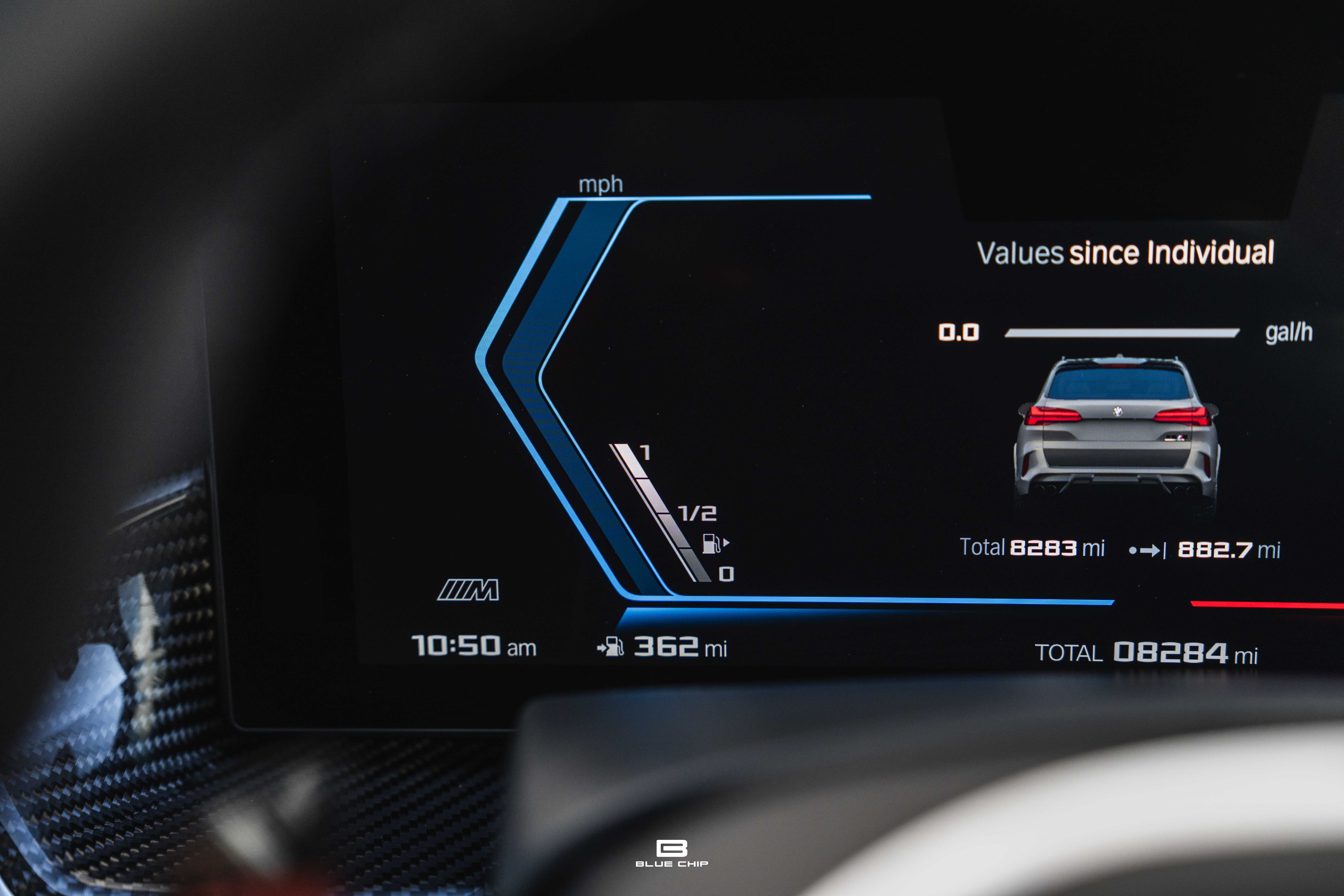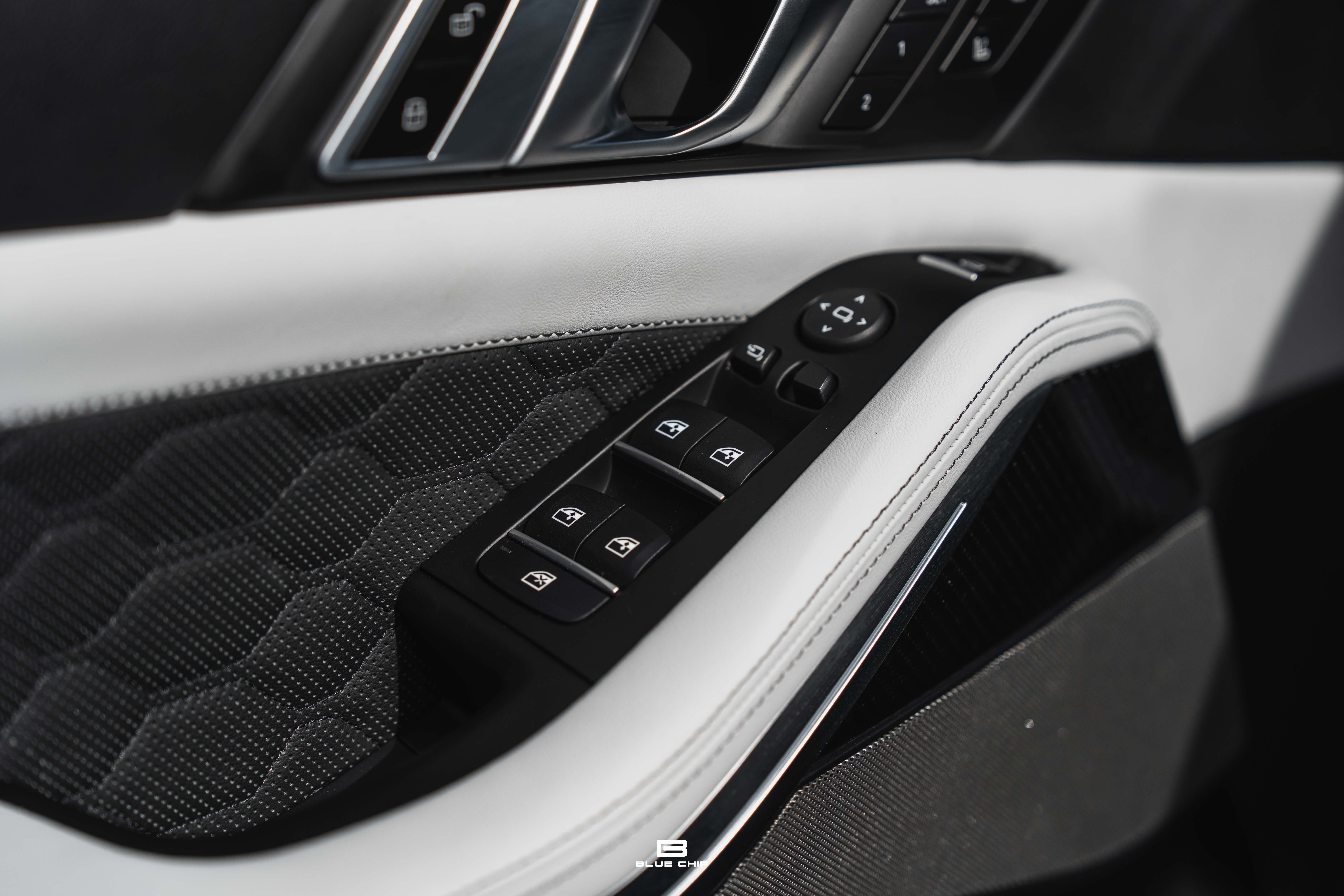Inside, the cabin combines performance instrumentation with contemporary BMW technology, including a curved digital display interface, advanced driver-assistance systems, multi-zone climate control, heated and ventilated seating, and a premium surround audio system. Carbon fiber and extended leather surfaces reinforce the vehicle’s dual character as both high-performance machine and executive transport.