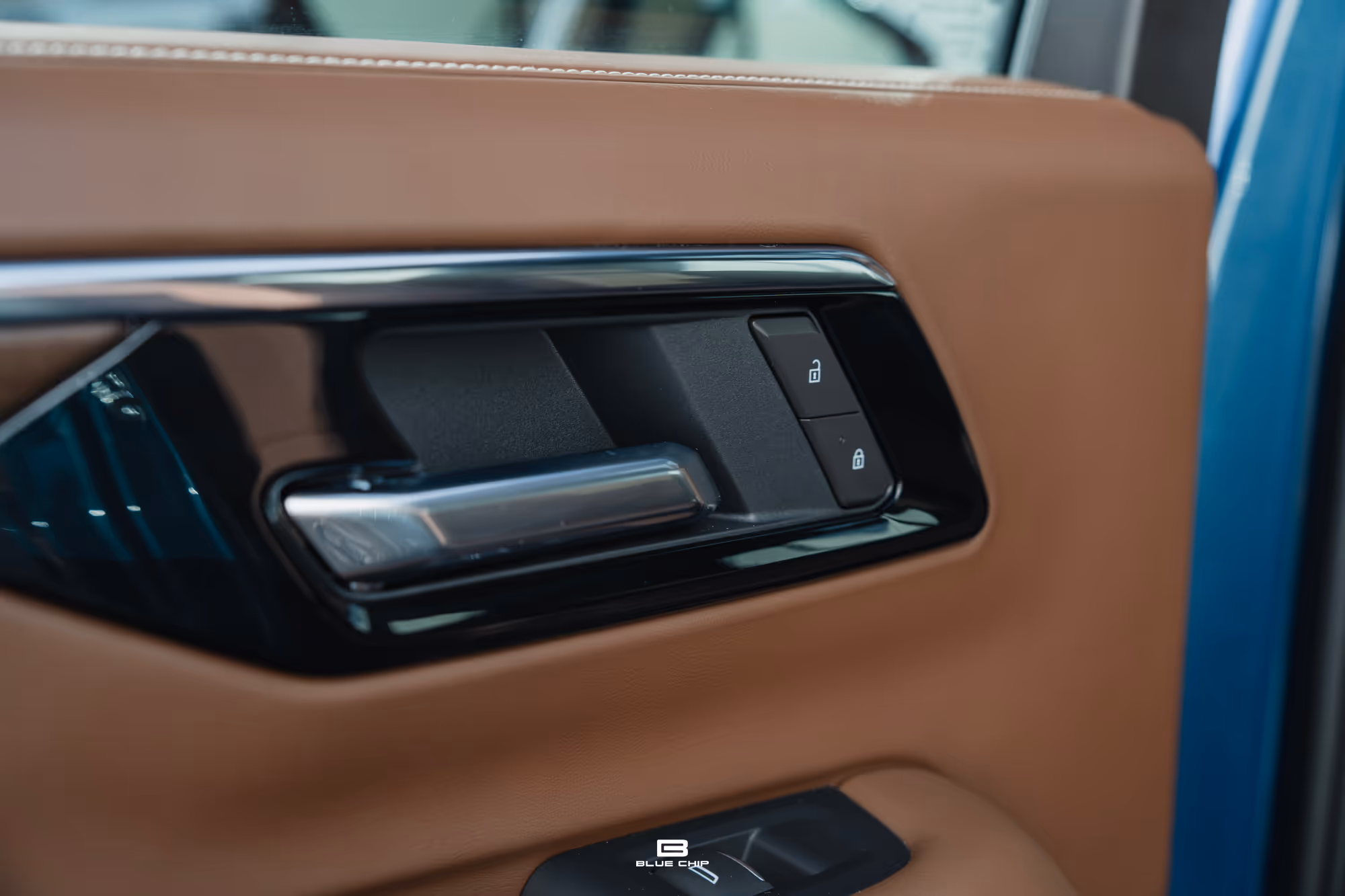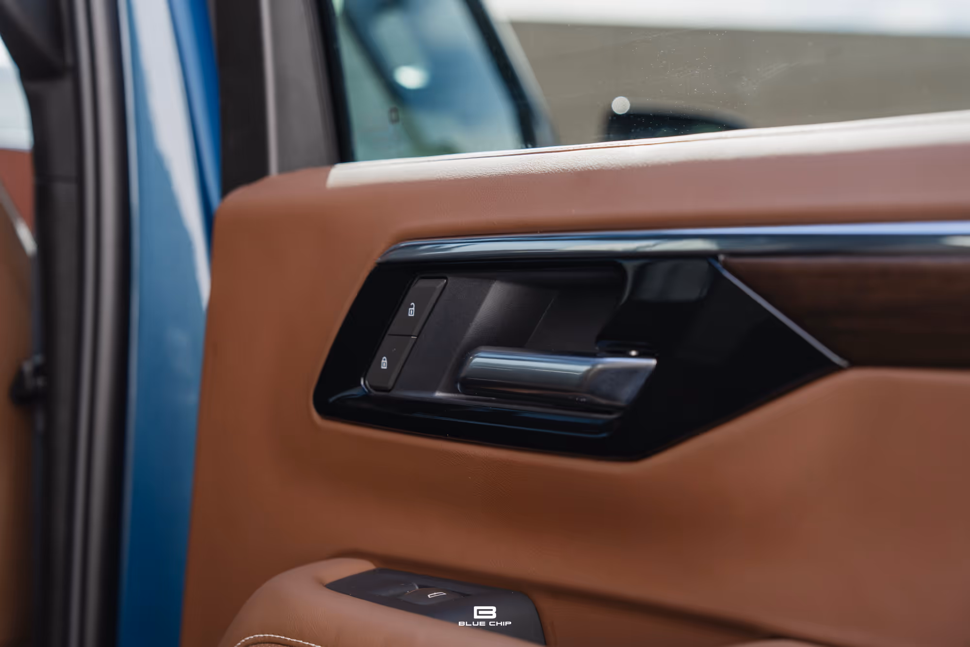 Sitting on 24-inch machined aluminium wheels finished in high-gloss black and secured with wheel locks, creating a distinctive stance that perfectly complements the Lakeshore Blue Metallic paintwork. Inside you have Jet Black and Mocha Leather seats and appointments.