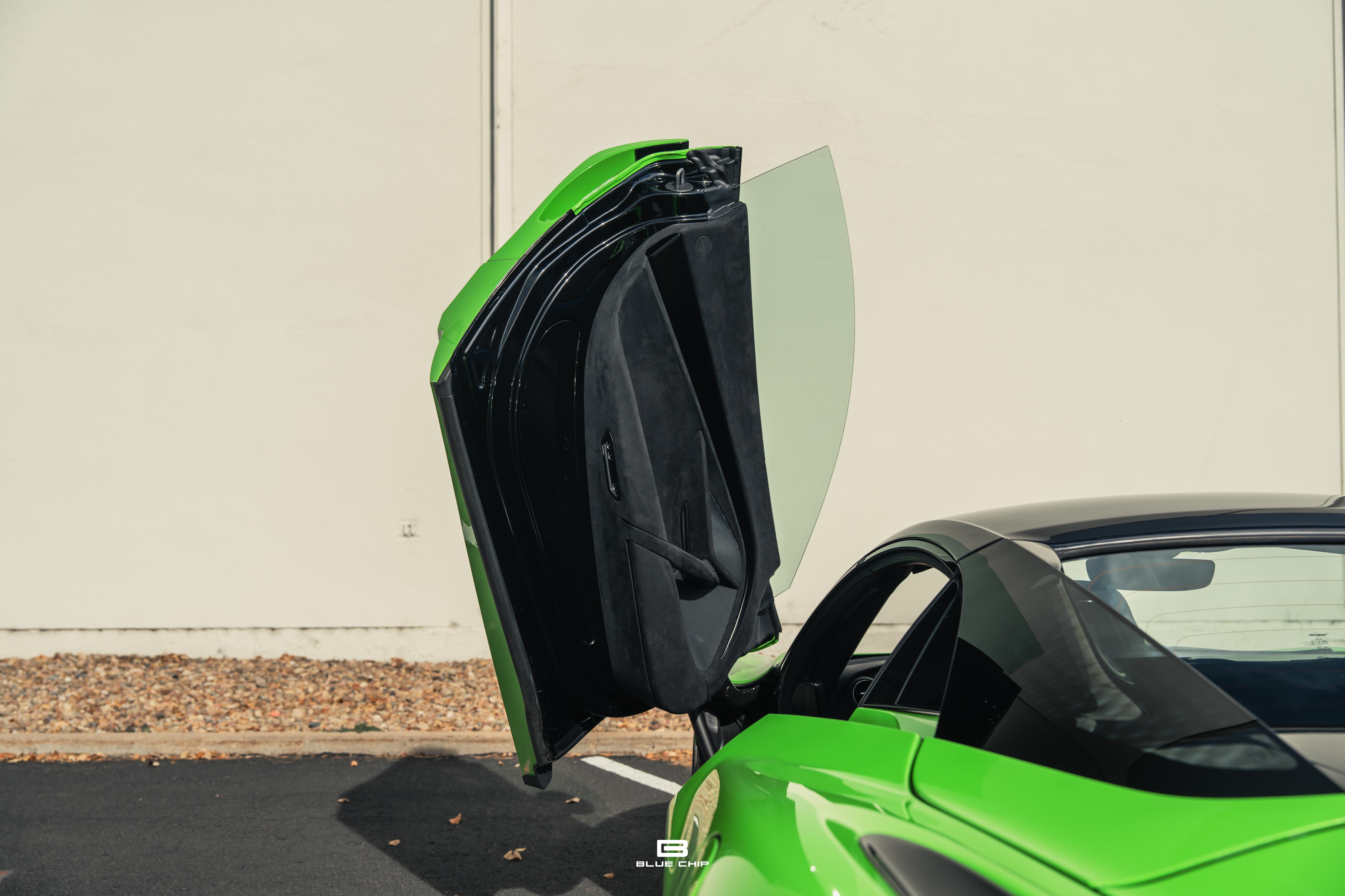 Presented here is a striking example finished in Mantis Green over Carbon Black, a specification that accentuates the car’s dramatic aerodynamics—its lengthened front splitter, enlarged air intakes, and active rear wing all meticulously sculpted to generate increased downforce without compromising McLaren’s obsession with minimizing mass. Inside, the driver-focused cockpit features lightweight materials, intuitive control placement, and the brand’s signature instrument binnacle and central display, ensuring that nothing detracts from the immediacy of the driving experience.